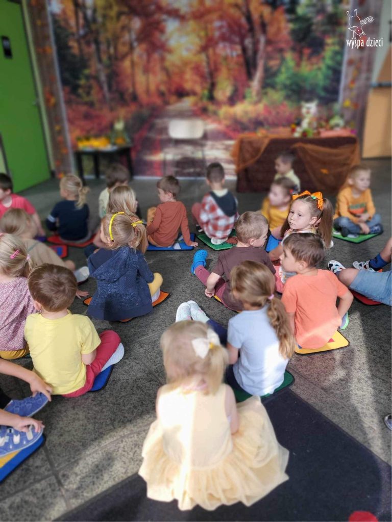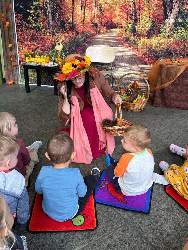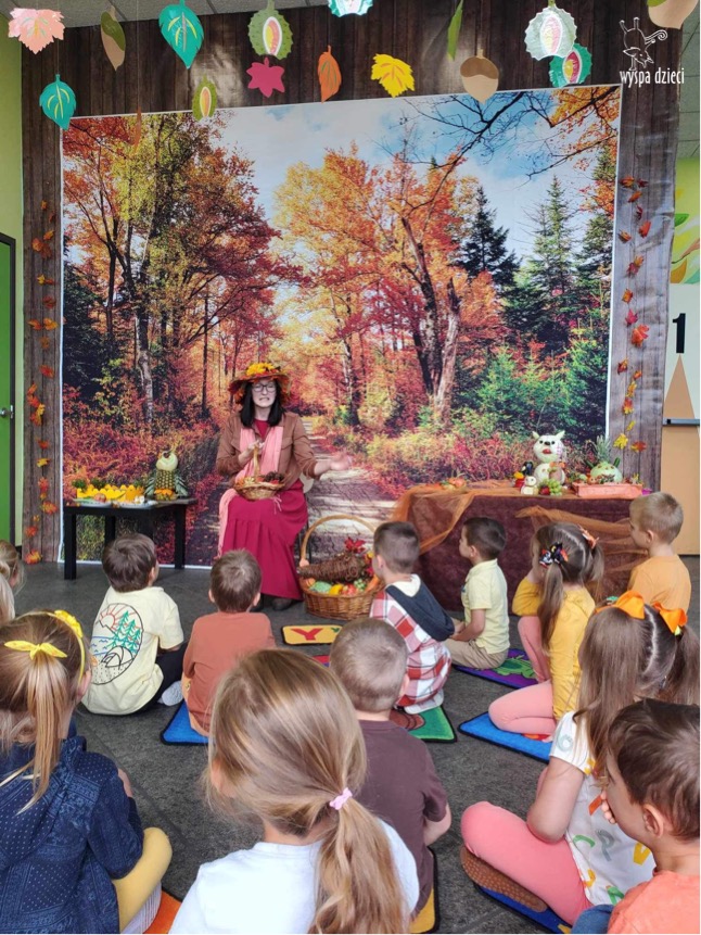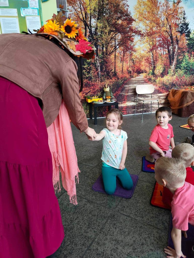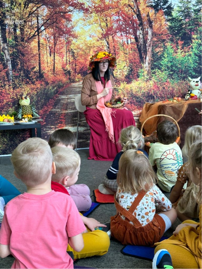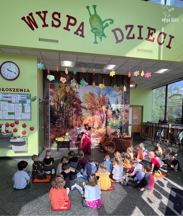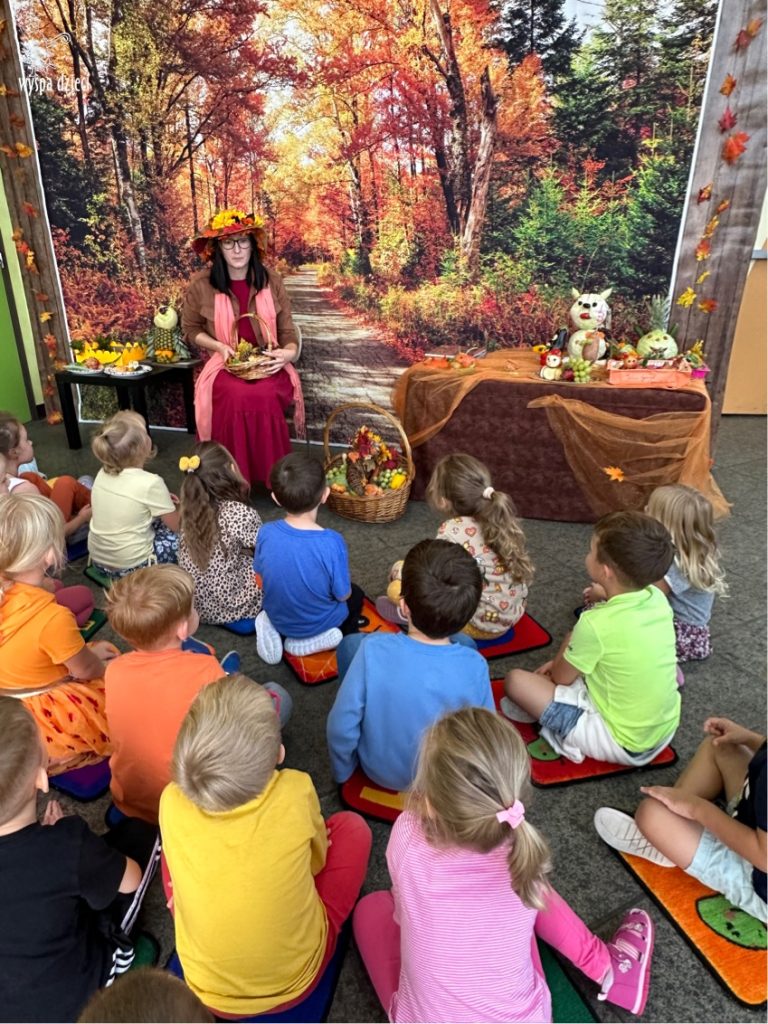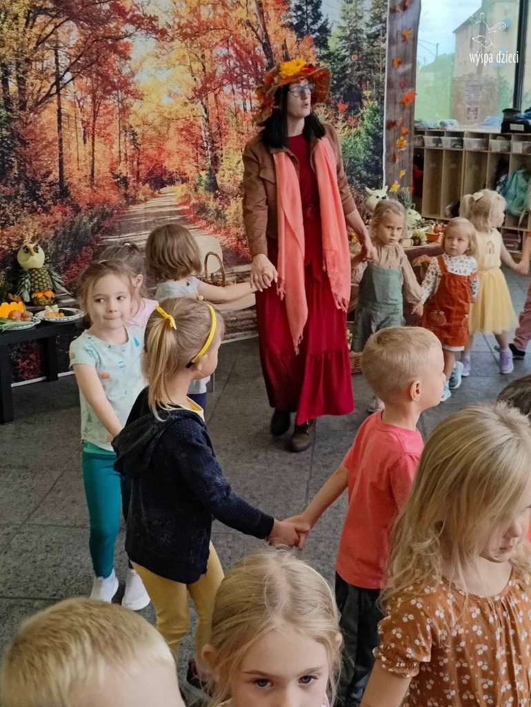 O tym, że mamy już jesień przekonały się nasze przedszkolaki wraz z nauczycielami z Wyspy Dzieci w River Grove . W dniu 25 września zapukała do naszych drzwi piękna, barwna Pani Jesień. Na głowie miała wspaniały kapelusz z liści, a w dłoni bardzo ciężki kosz z darami. Pani Jesień sprawdziła, czy nasze przedszkolaki rozpoznają warzywa, owoce, a także leśne dary. Razem z Panią Jesienią zaśpiewaliśmy „Jesienną Piosenkę” oraz wspólnie zatańczylismy.  Celem naszych zajęć w tym dniu było utrwalenie wiadomości o porze roku- Jesieni, jak również rozpoznawanie jej charakterystycznych cech . Podczas wizyty Pani Jesieni  przedszkolaki przypomniały i utrwaliły wiadomości o aspekcie przyrodniczym, m.in. dlaczego jesienią  liście zmieniają kolor, czy dary jesieni są potrzebne tylko ludziom.  Na te i wiele innych pytań dzieci odpowiadały bez wahania. W tym dniu podczas zajęc plastycznych dzieci wykonywały pomysłowe prace o tematyce jesiennej.