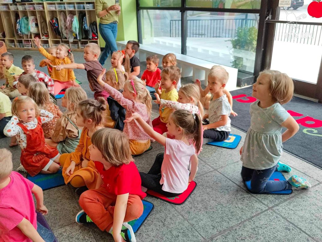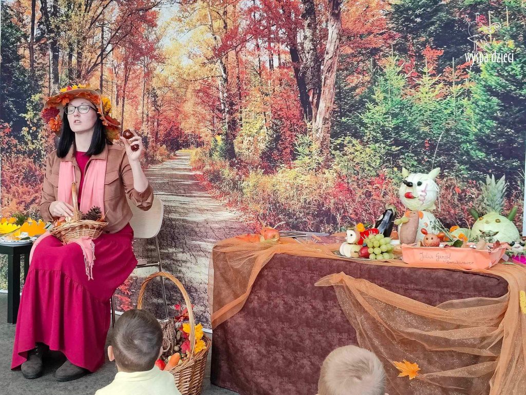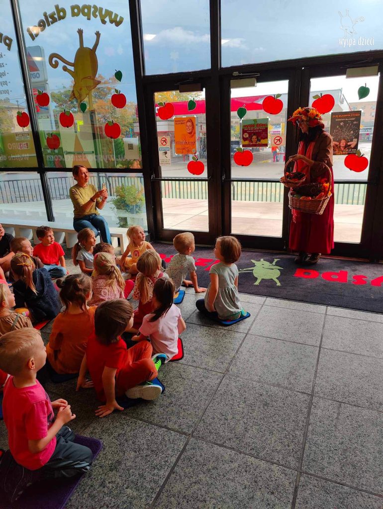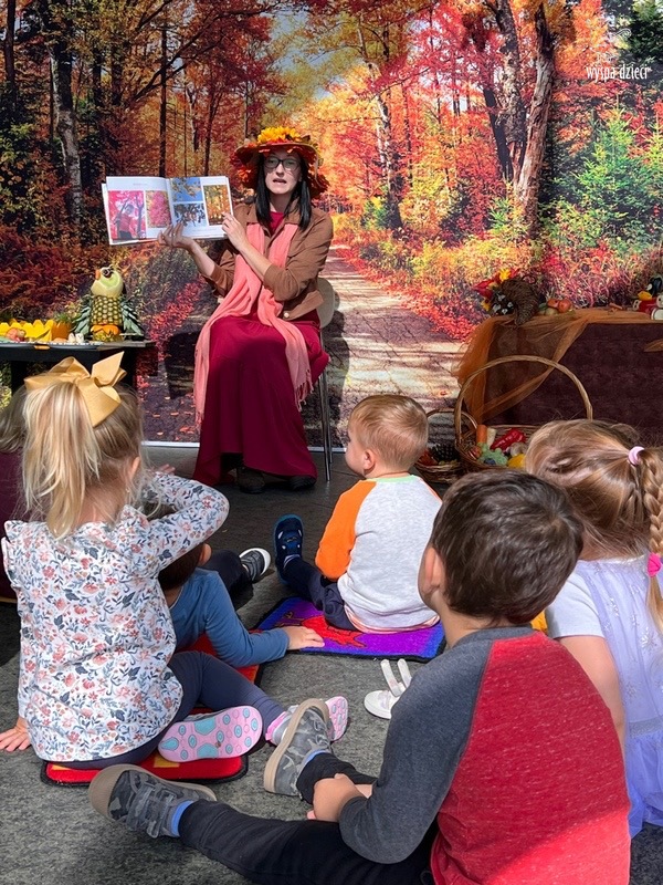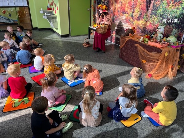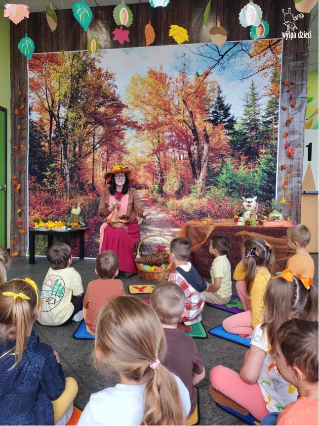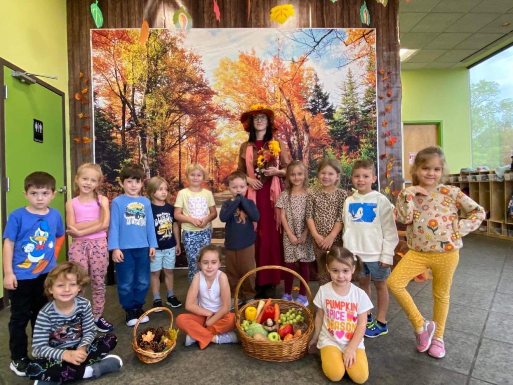 O tym, że mamy już jesień przekonały się nasze przedszkolaki wraz z nauczycielami z Wyspy Dzieci w River Grove . W dniu 25 września zapukała do naszych drzwi piękna, barwna Pani Jesień. Na głowie miała wspaniały kapelusz z liści, a w dłoni bardzo ciężki kosz z darami. Pani Jesień sprawdziła, czy nasze przedszkolaki rozpoznają warzywa, owoce, a także leśne dary. Razem z Panią Jesienią zaśpiewaliśmy „Jesienną Piosenkę” oraz wspólnie zatańczylismy.  Celem naszych zajęć w tym dniu było utrwalenie wiadomości o porze roku- Jesieni, jak również rozpoznawanie jej charakterystycznych cech . Podczas wizyty Pani Jesieni  przedszkolaki przypomniały i utrwaliły wiadomości o aspekcie przyrodniczym, m.in. dlaczego jesienią  liście zmieniają kolor, czy dary jesieni są potrzebne tylko ludziom.  Na te i wiele innych pytań dzieci odpowiadały bez wahania. W tym dniu podczas zajęc plastycznych dzieci wykonywały pomysłowe prace o tematyce jesiennej.