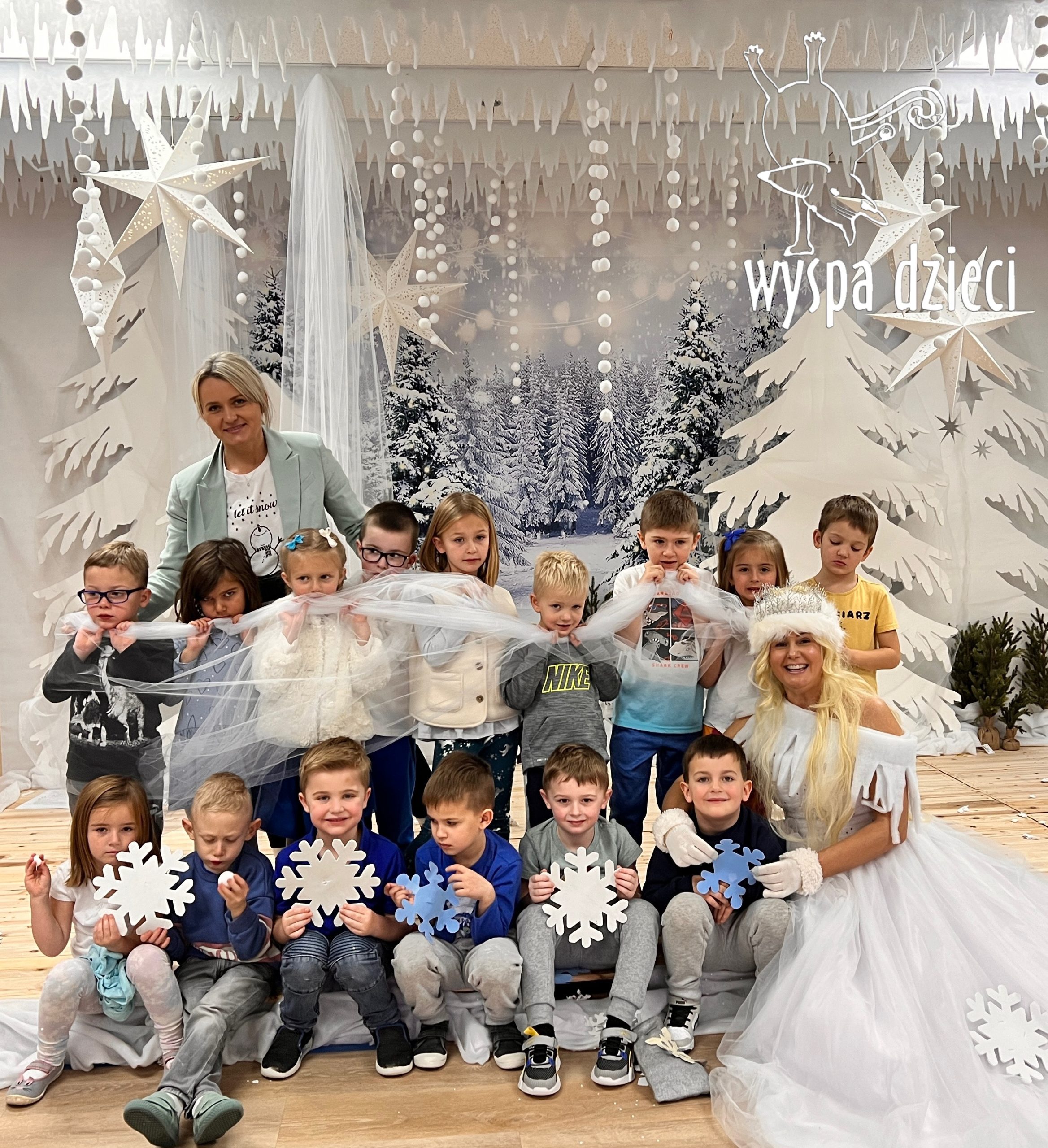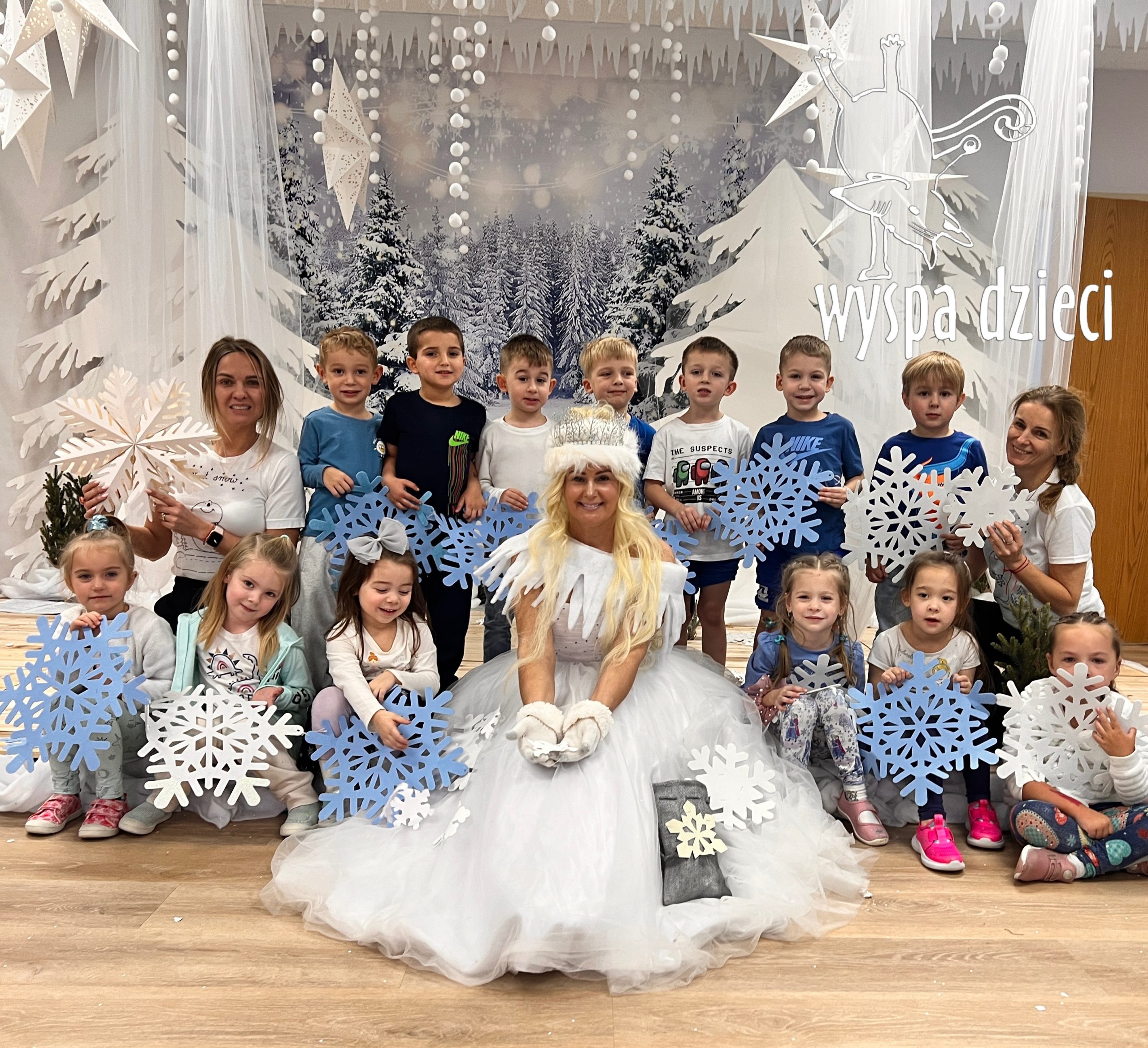 Jedzie pani Zimana koniku białym,spotkały ją dzieci,pięknie powitały: