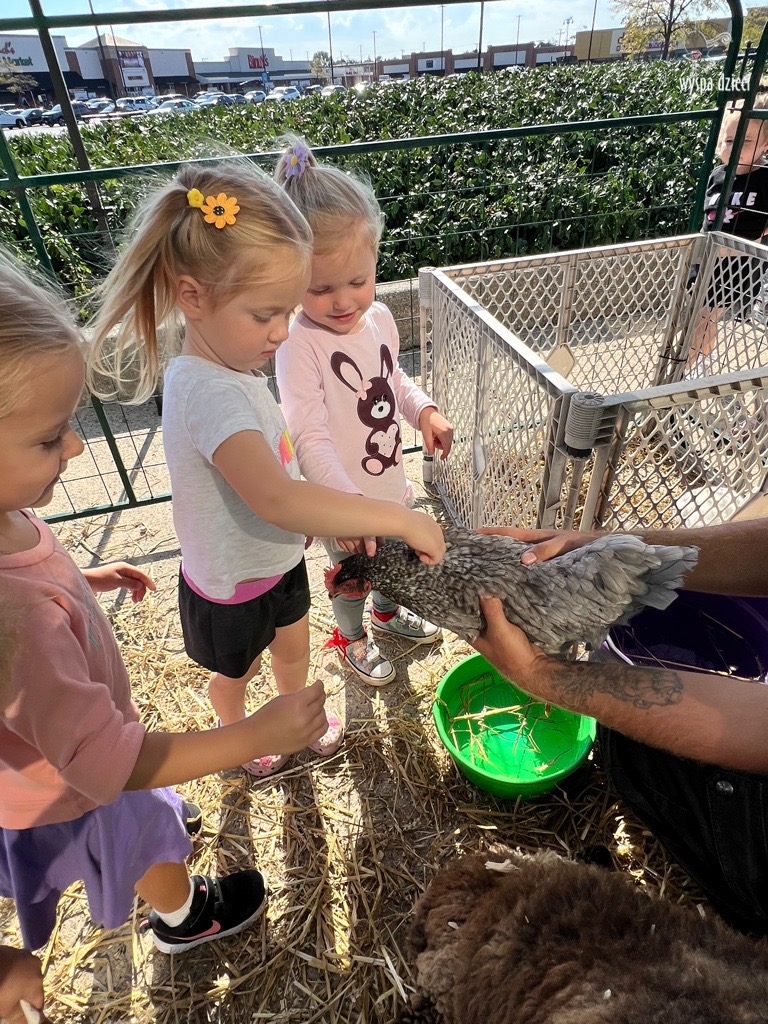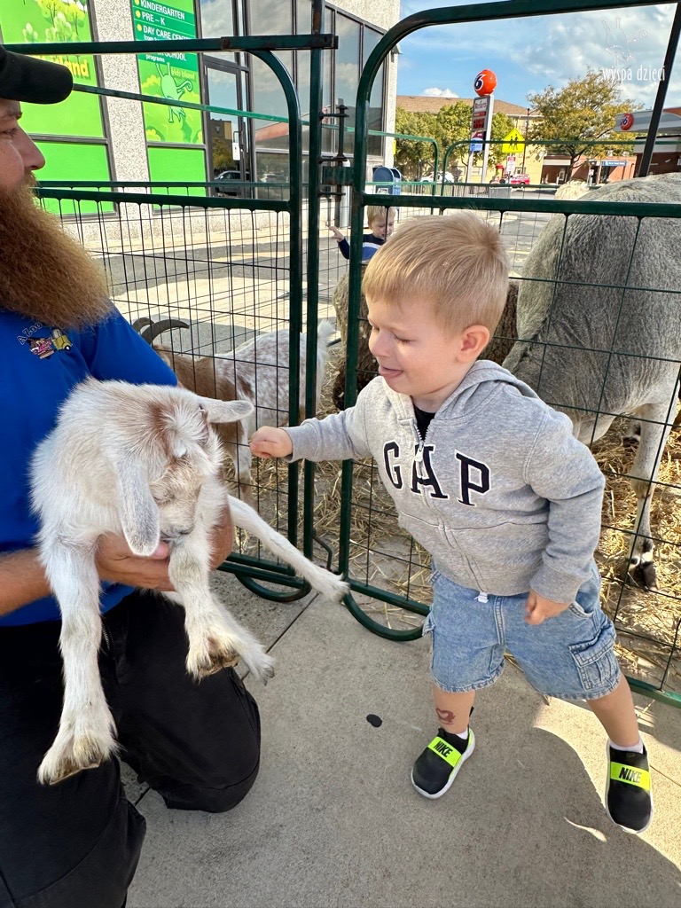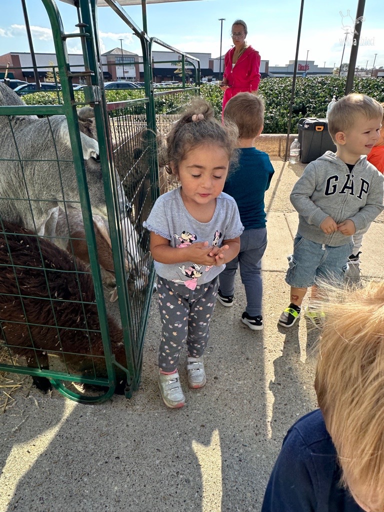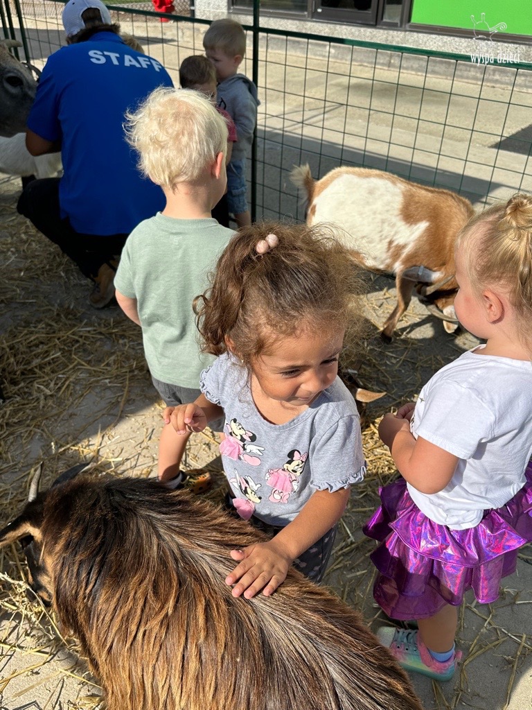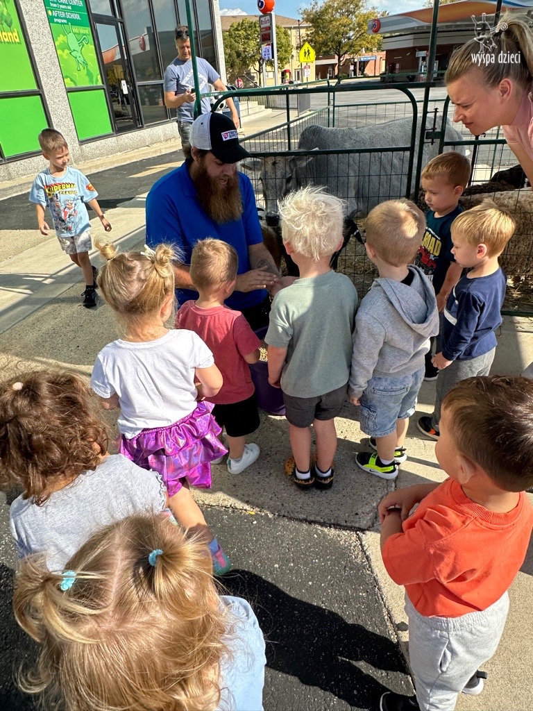 W tamtym tygodniu nasze przedszkolaki z Wyspy Dzieci River Grove przez cały tydzień poznawały życie na wsi. Ponieważ najmłodsza nasza grupa Misi ( 2-3 latki)  nie mogła z nami jechać na farmę , dlatego postanowiliśmy zrobić im niespodziankę i zaprosiliśmy do naszego przedszkola Petting Zoo. Była tam mała krówka, owieczki, kózki, osiołek oraz kurka i króliczek. Było to dla wszystkich dzieci ogromne przeżycie i wiele radości.