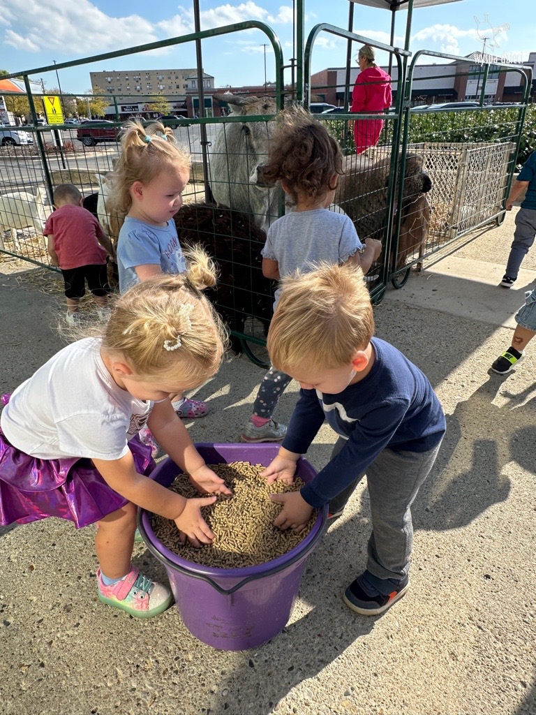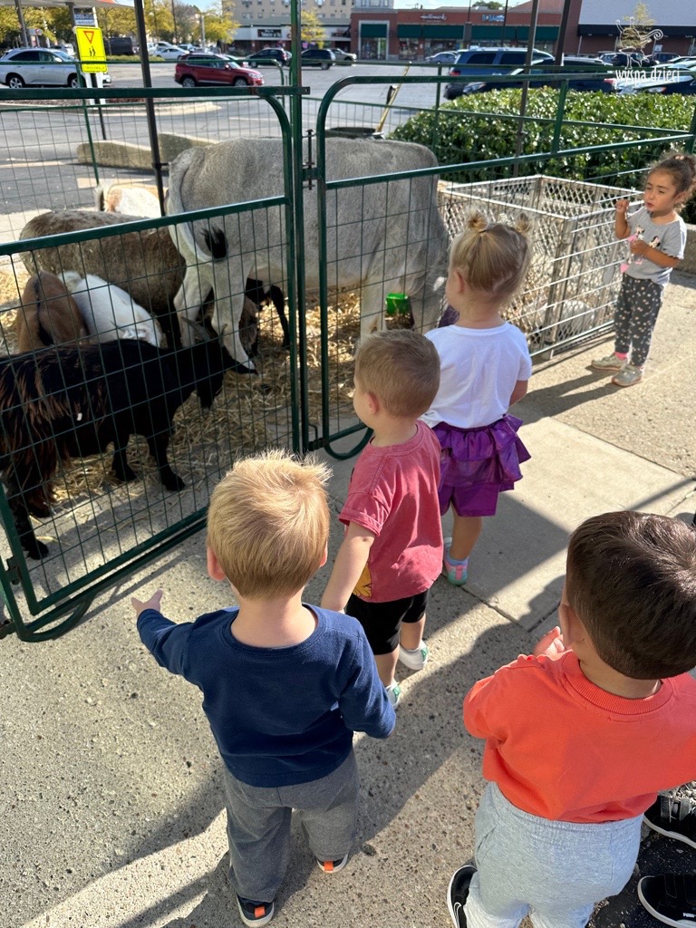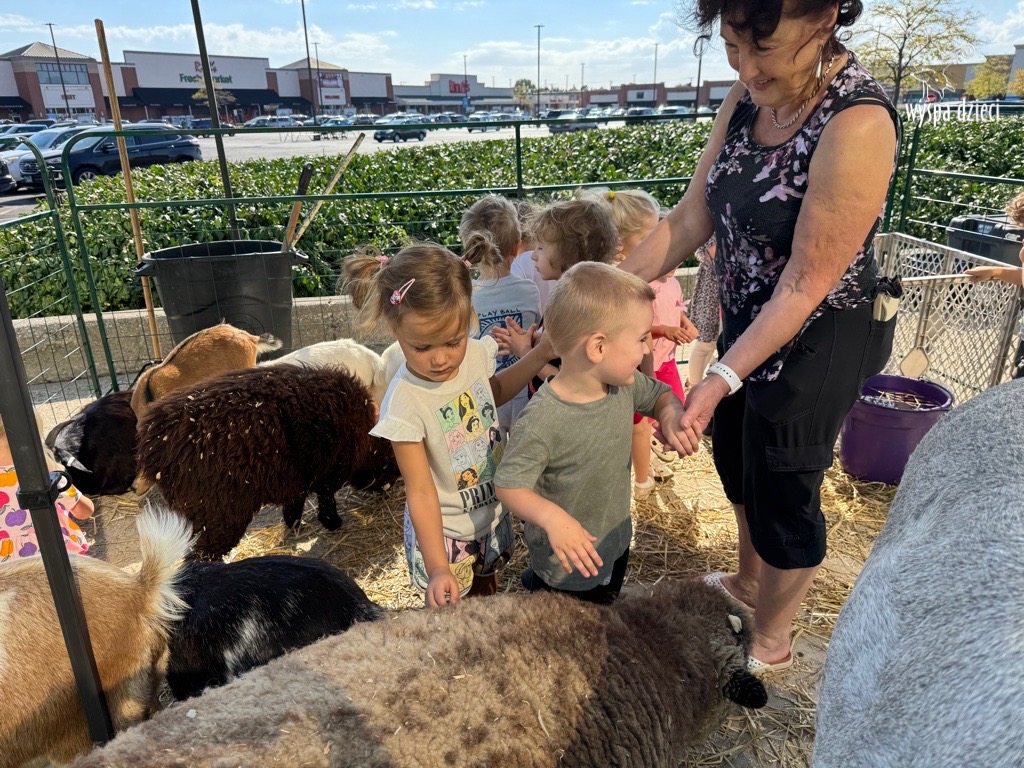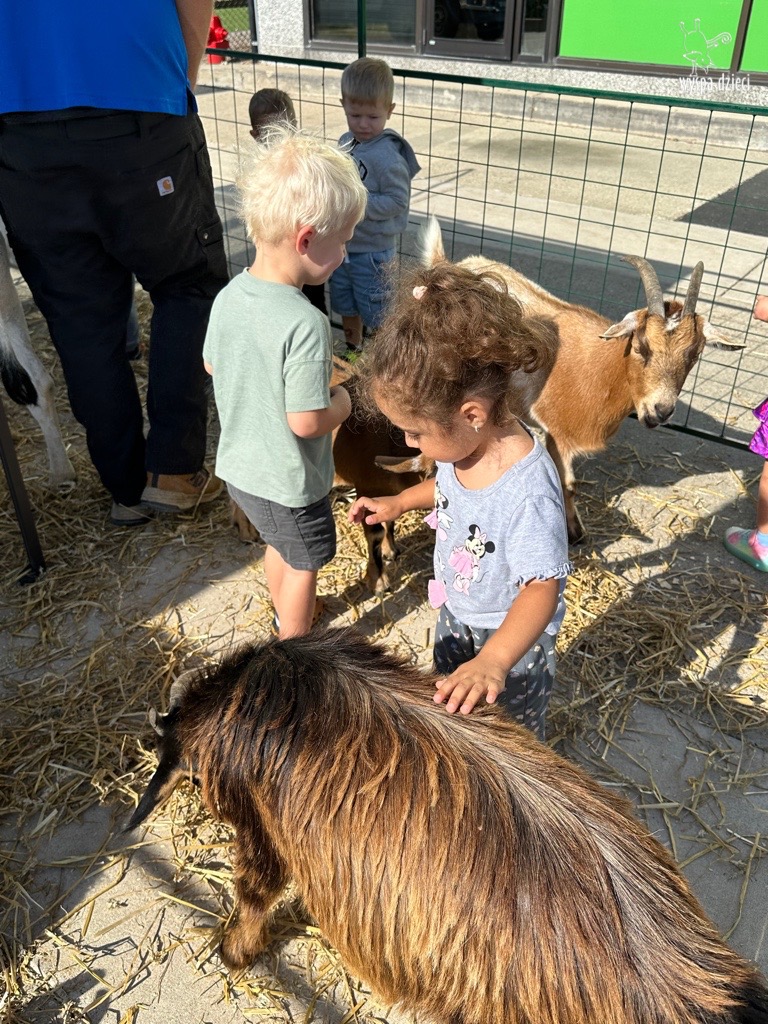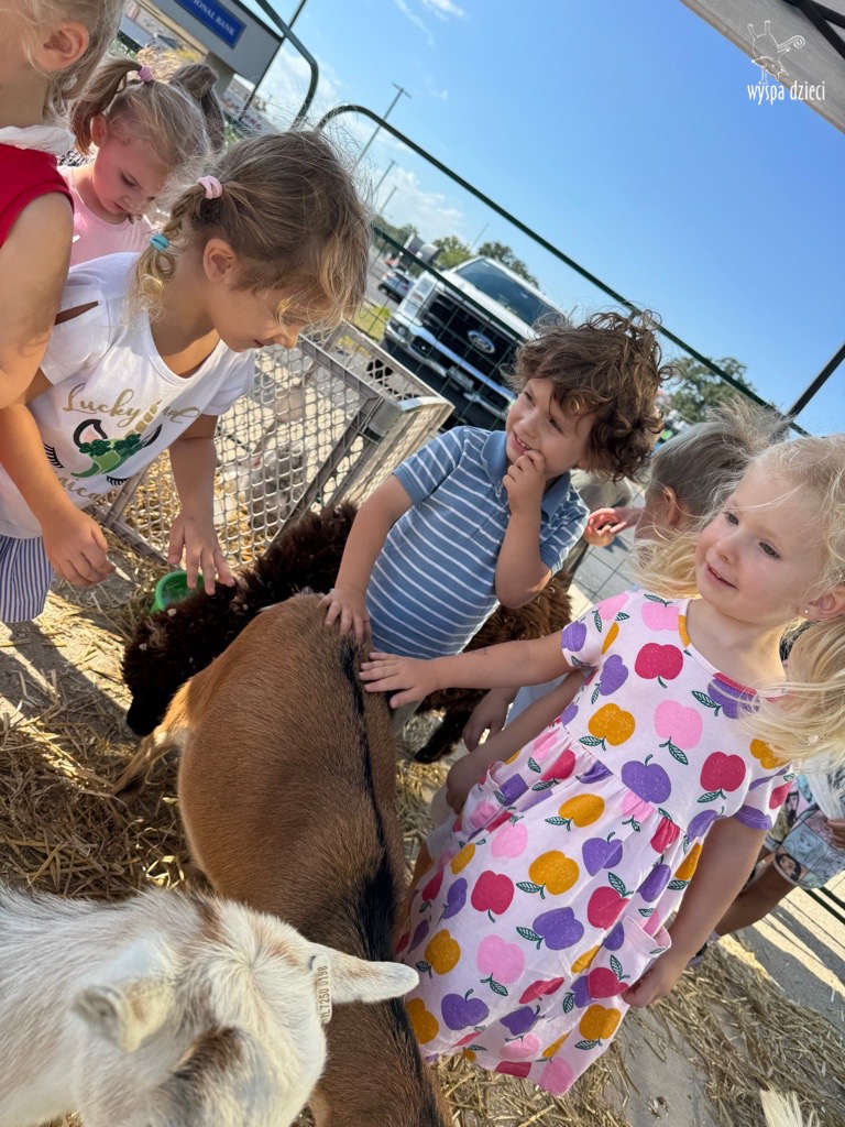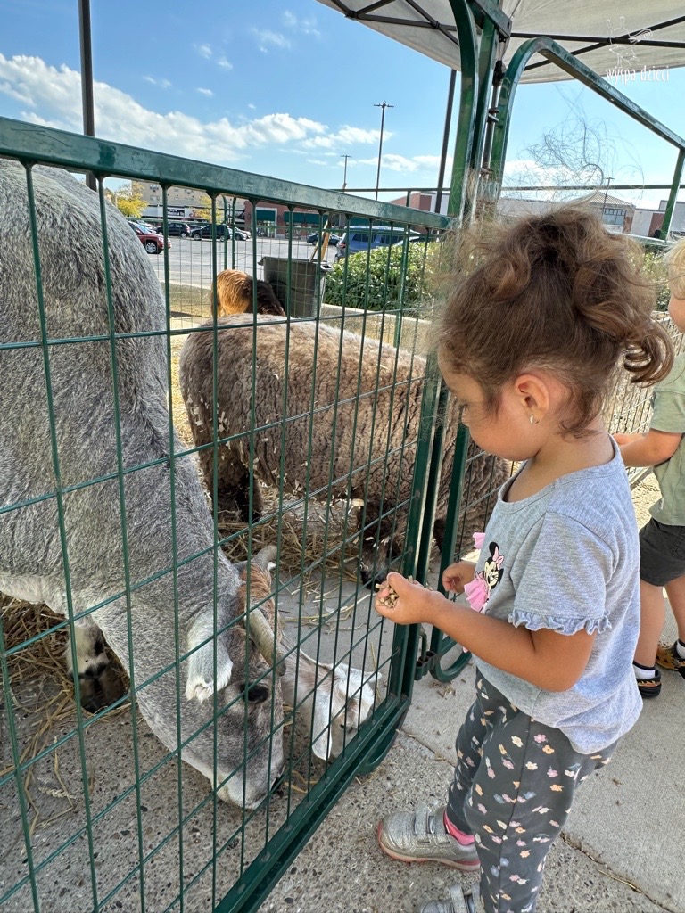 W tamtym tygodniu nasze przedszkolaki z Wyspy Dzieci River Grove przez cały tydzień poznawały życie na wsi. Ponieważ najmłodsza nasza grupa Misi ( 2-3 latki)  nie mogła z nami jechać na farmę , dlatego postanowiliśmy zrobić im niespodziankę i zaprosiliśmy do naszego przedszkola Petting Zoo. Była tam mała krówka, owieczki, kózki, osiołek oraz kurka i króliczek. Było to dla wszystkich dzieci ogromne przeżycie i wiele radości.