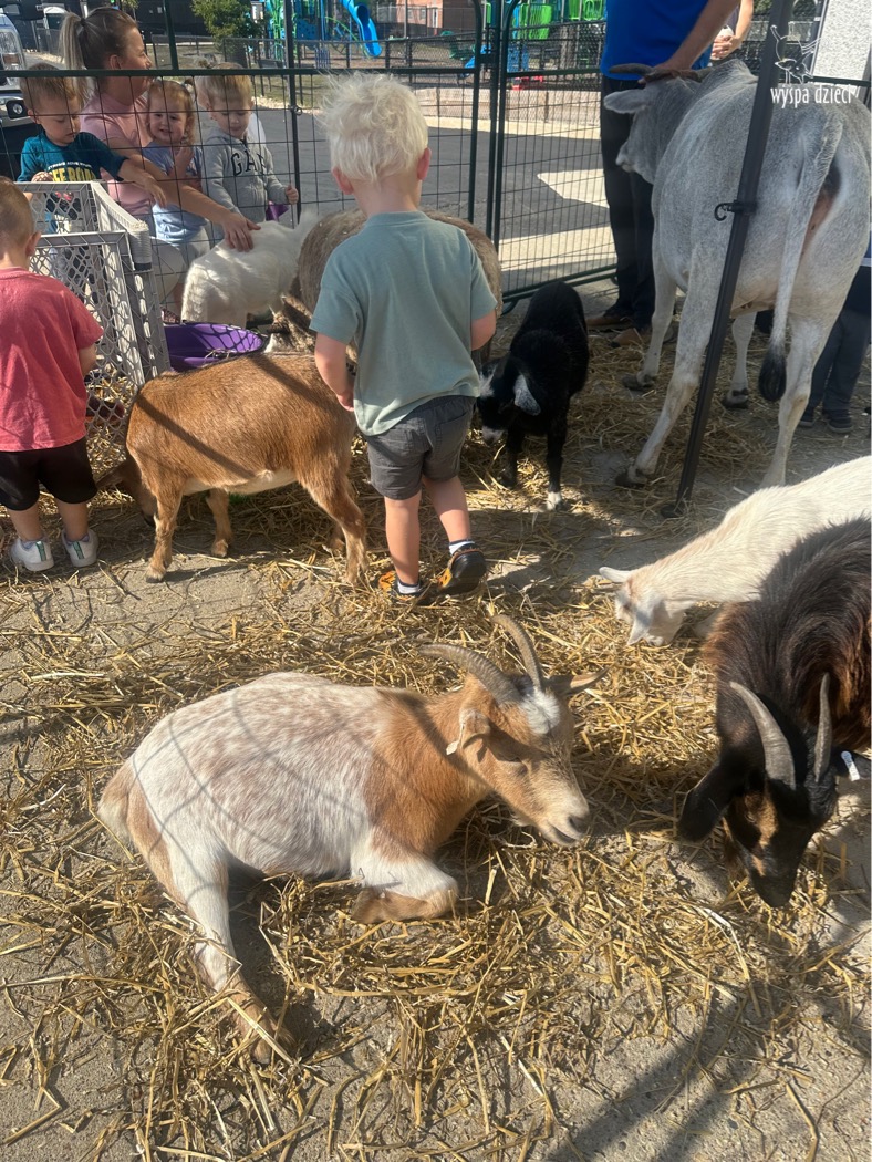 W tamtym tygodniu nasze przedszkolaki z Wyspy Dzieci River Grove przez cały tydzień poznawały życie na wsi. Ponieważ najmłodsza nasza grupa Misi ( 2-3 latki)  nie mogła z nami jechać na farmę , dlatego postanowiliśmy zrobić im niespodziankę i zaprosiliśmy do naszego przedszkola Petting Zoo. Była tam mała krówka, owieczki, kózki, osiołek oraz kurka i króliczek. Było to dla wszystkich dzieci ogromne przeżycie i wiele radości.