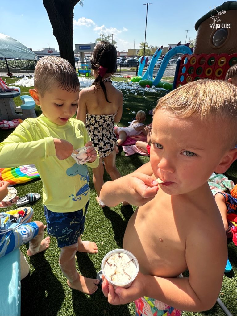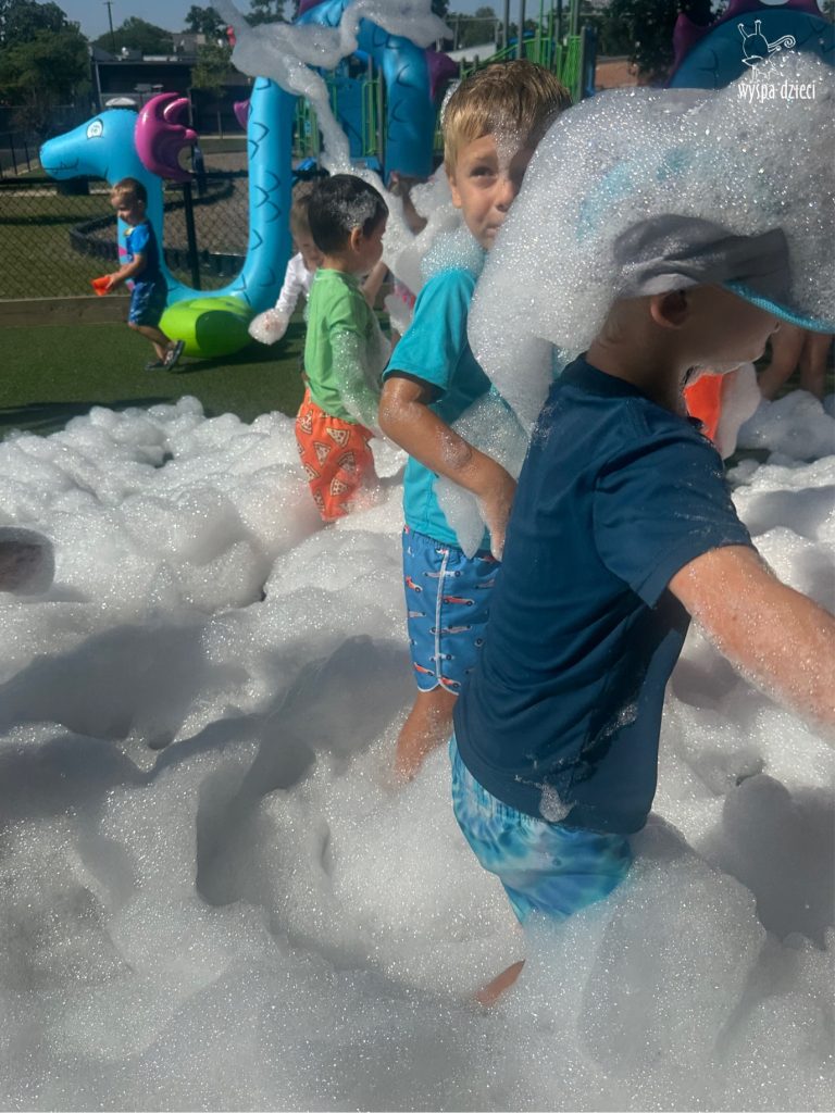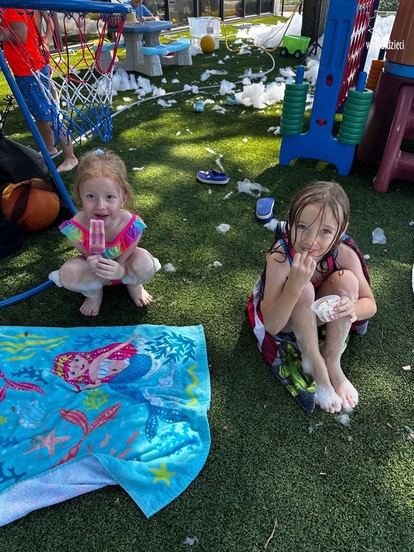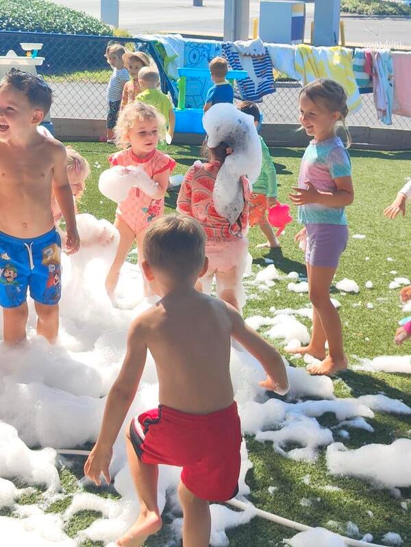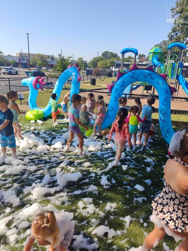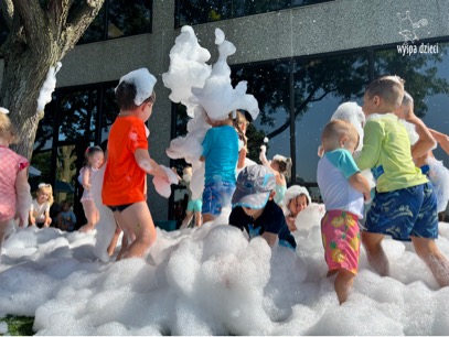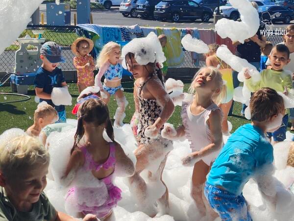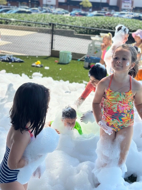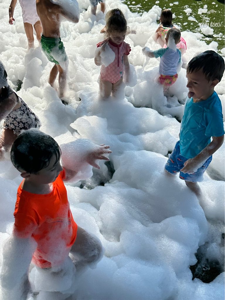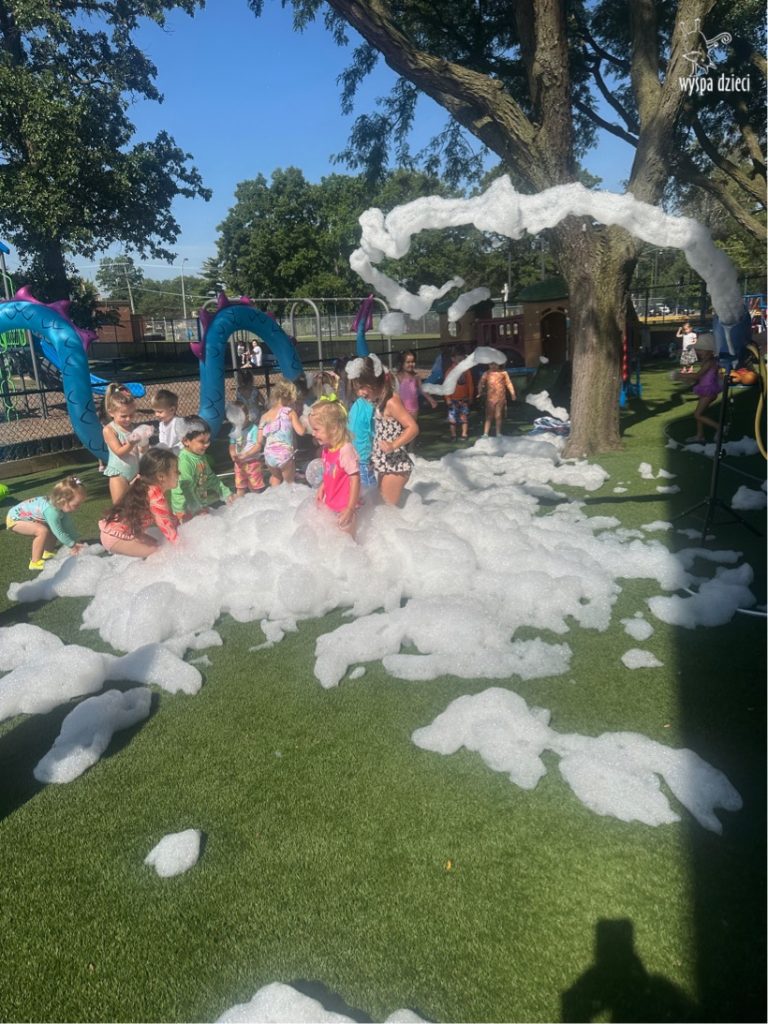 W czwartek 14 sierpnia 2025 roku w Wyspie Dzieci River Grove zakończyliśmy sezon „splash time wakacje 2025”. Dla dzieci przygotowane były niespodzianki. Ogromna atrakcją dla dzieci była „PIANA PARTY” 🌞🎉 Nasz przedszkolny plac zabaw zamienił się w morze piany i rozpoczęło się szaleństwo – zabawy w pianie i z pianą, a dla ochłody przygotowaliśmy pyszne lody.