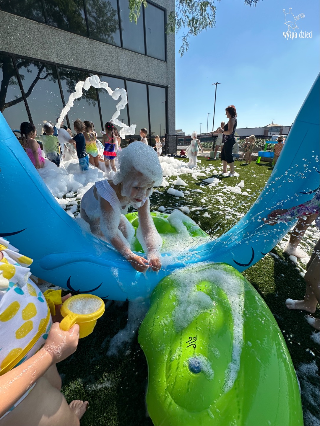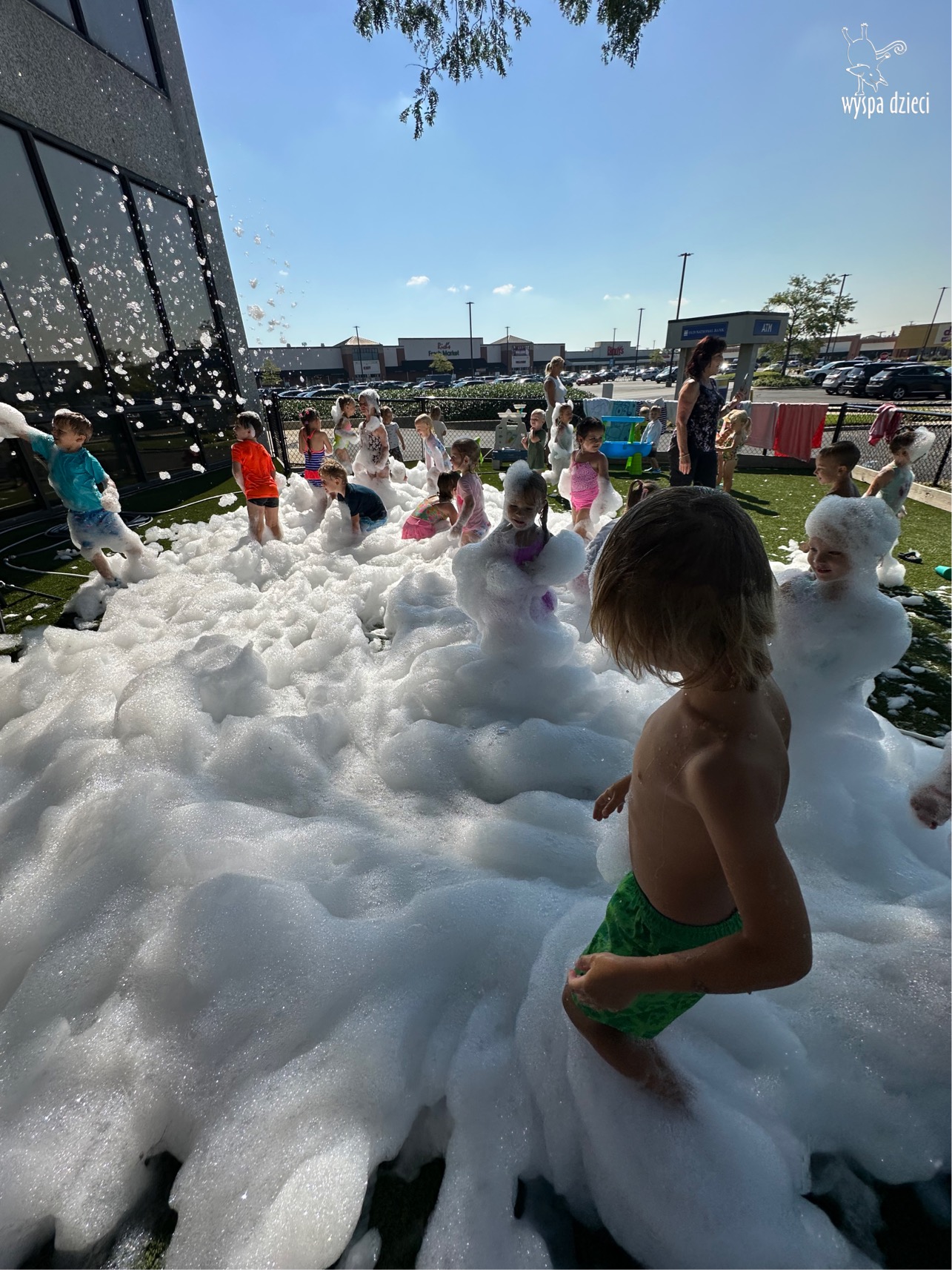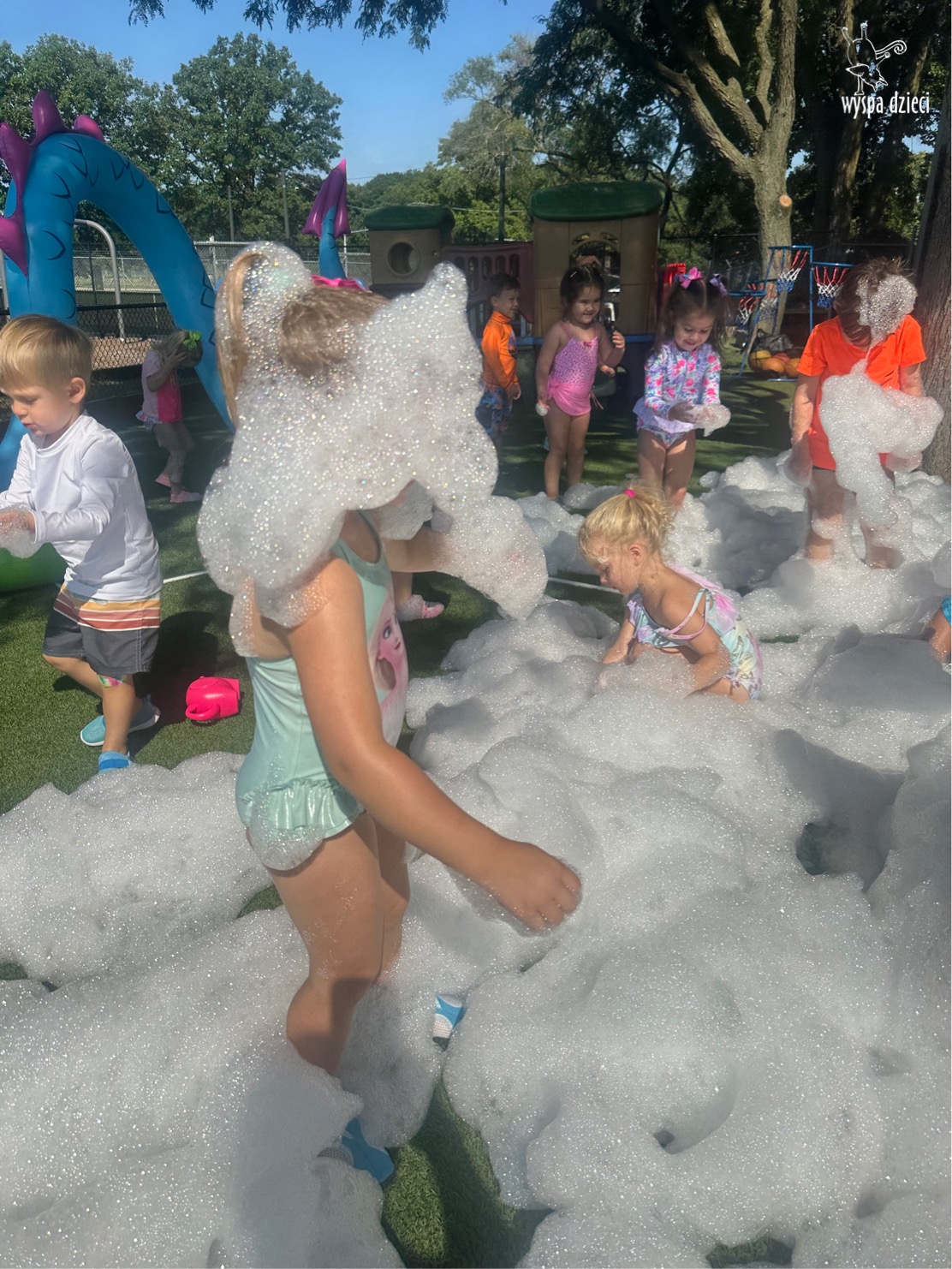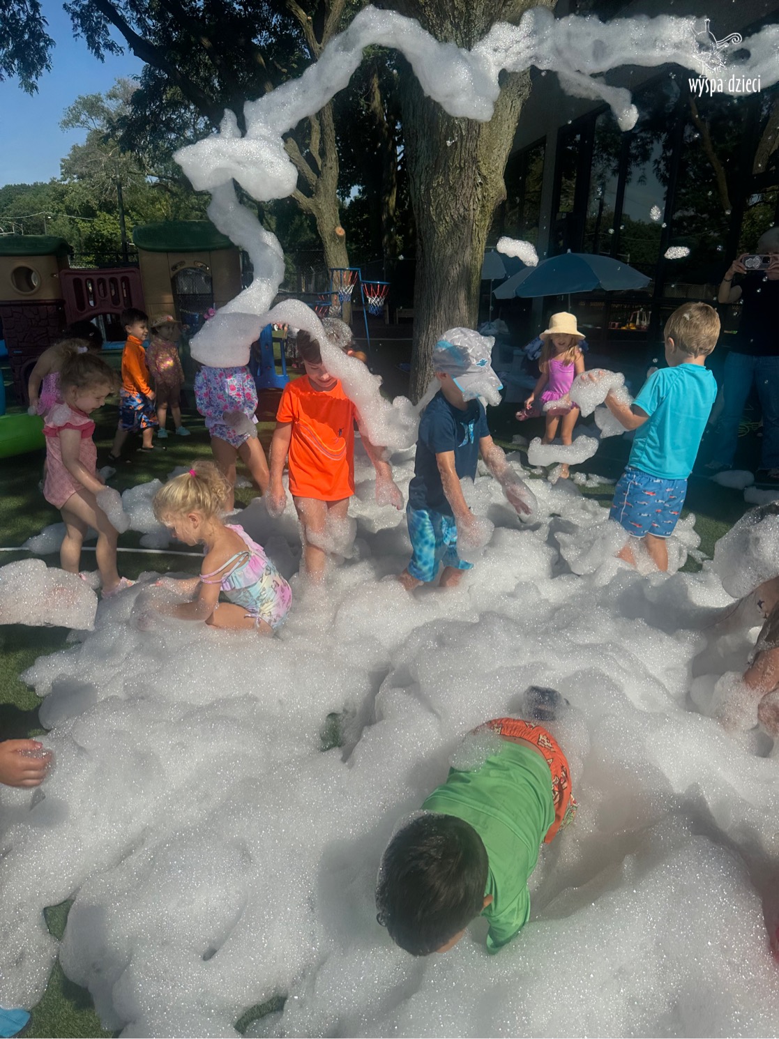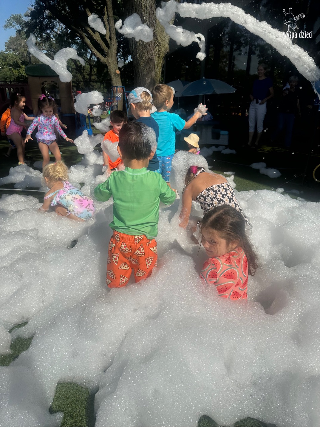 W czwartek 14 sierpnia 2025 roku w Wyspie Dzieci River Grove zakończyliśmy sezon „splash time wakacje 2025”. Dla dzieci przygotowane były niespodzianki. Ogromna atrakcją dla dzieci była „PIANA PARTY” 🌞🎉 Nasz przedszkolny plac zabaw zamienił się w morze piany i rozpoczęło się szaleństwo – zabawy w pianie i z pianą, a dla ochłody przygotowaliśmy pyszne lody.