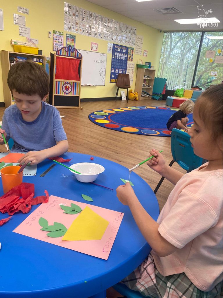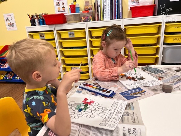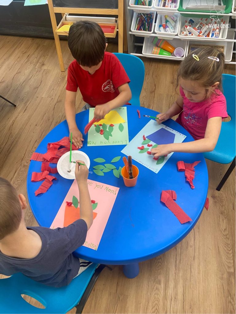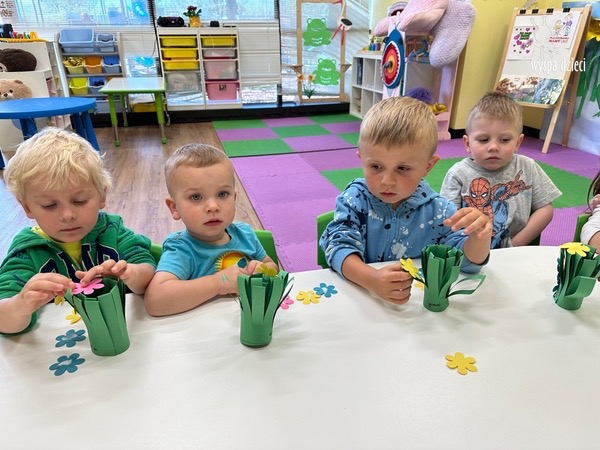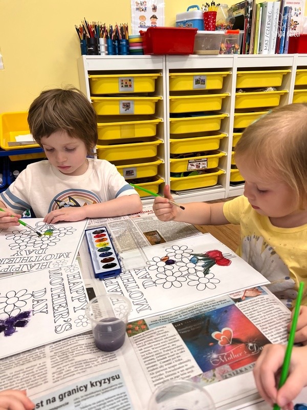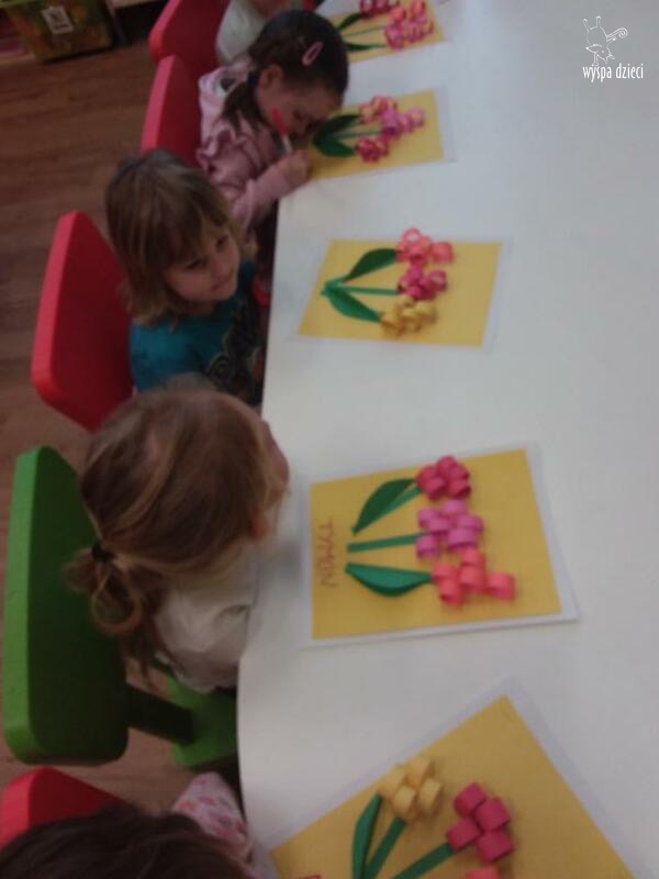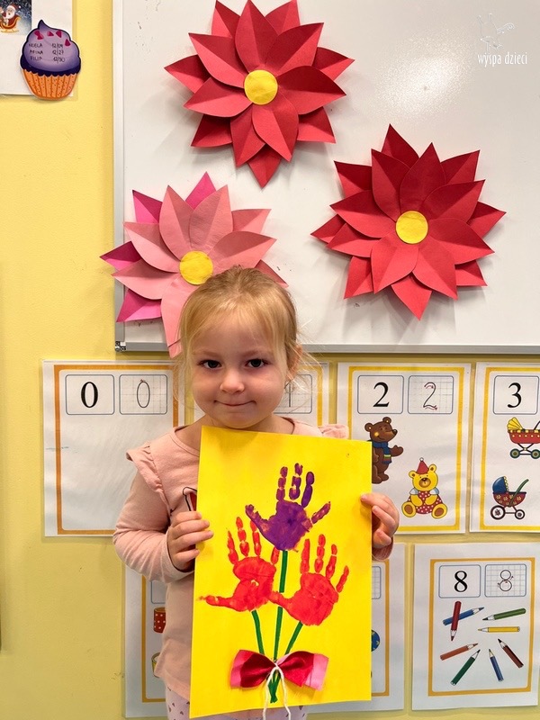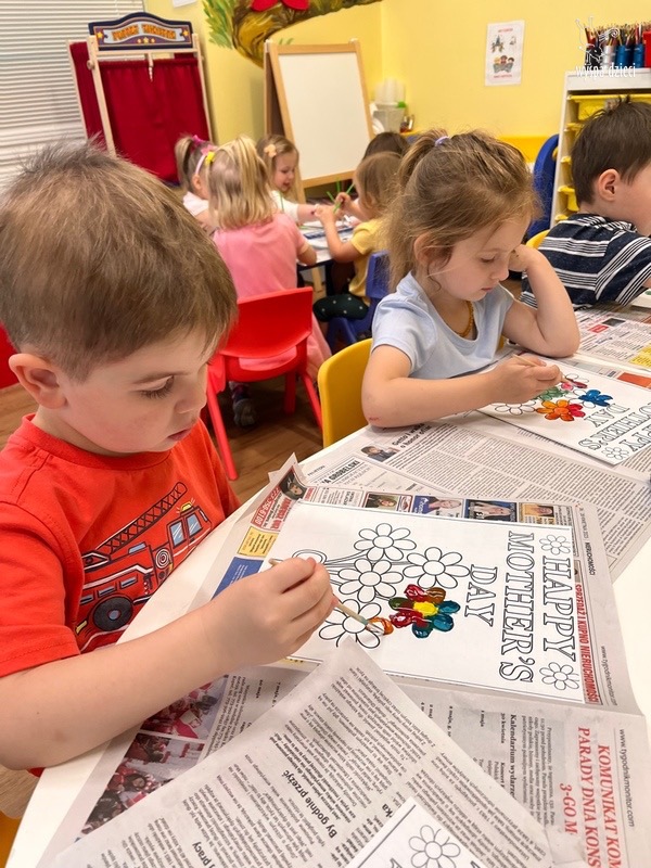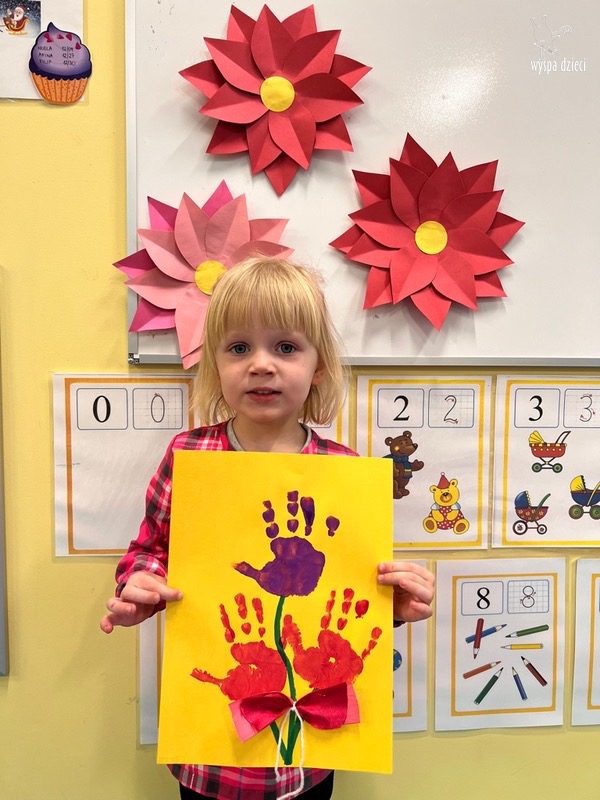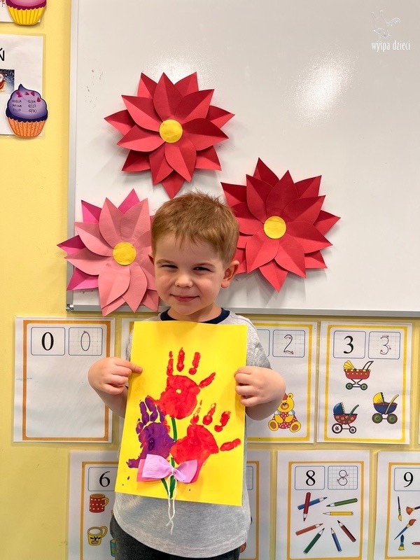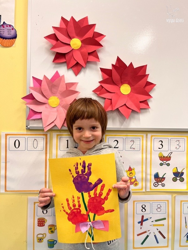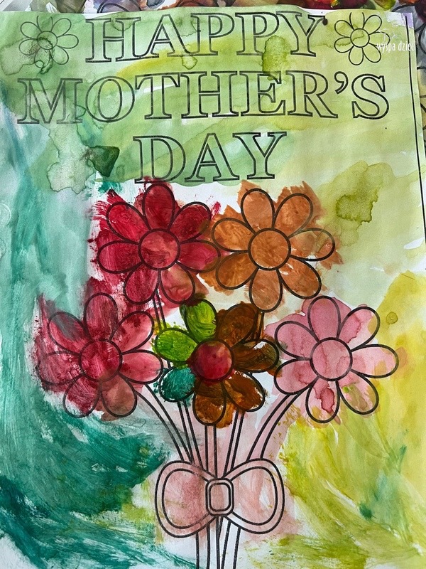 Organizacja w póżniejszym terminie naszych ważnych uroczystości nie przeszkodziła w przygotowaniu na zajęciach pięknych projektów dla Mam naszych przedszkolaków.