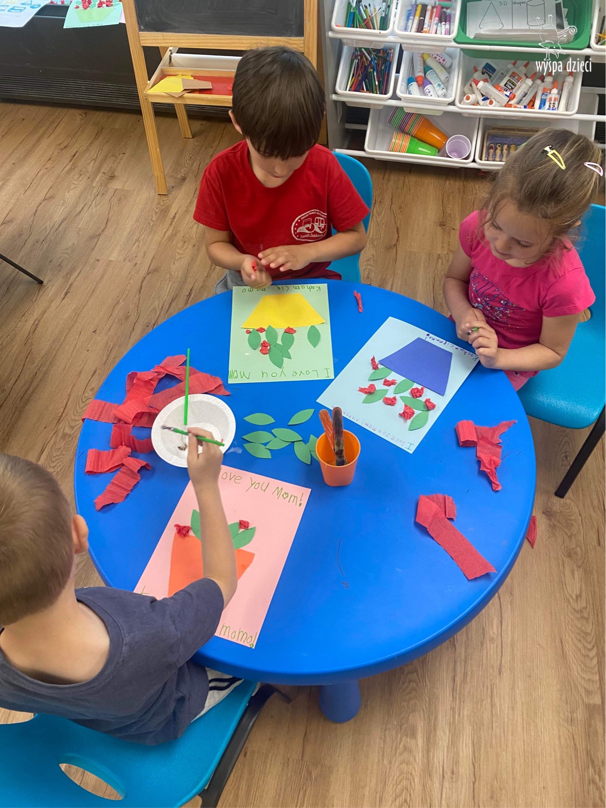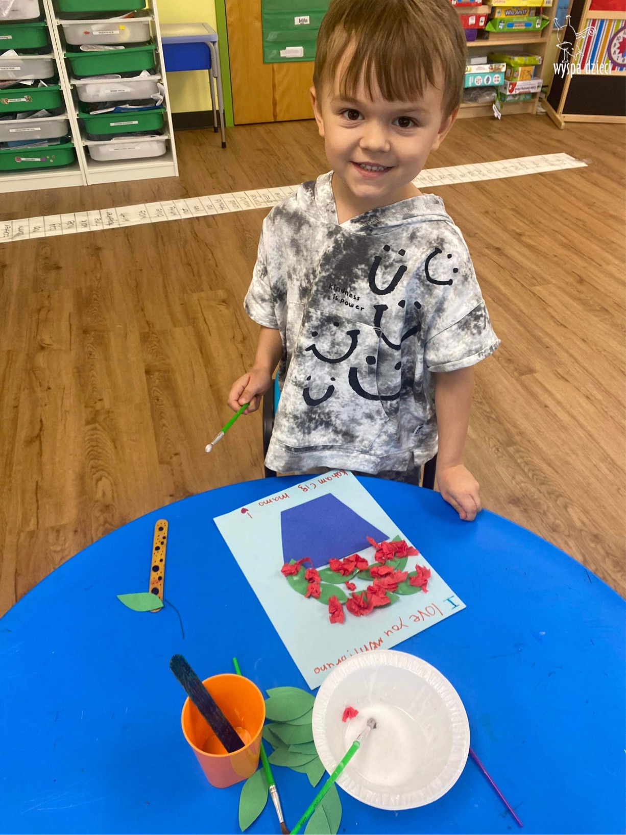 Organizacja w póżniejszym terminie naszych ważnych uroczystości nie przeszkodziła w przygotowaniu na zajęciach pięknych projektów dla Mam naszych przedszkolaków.