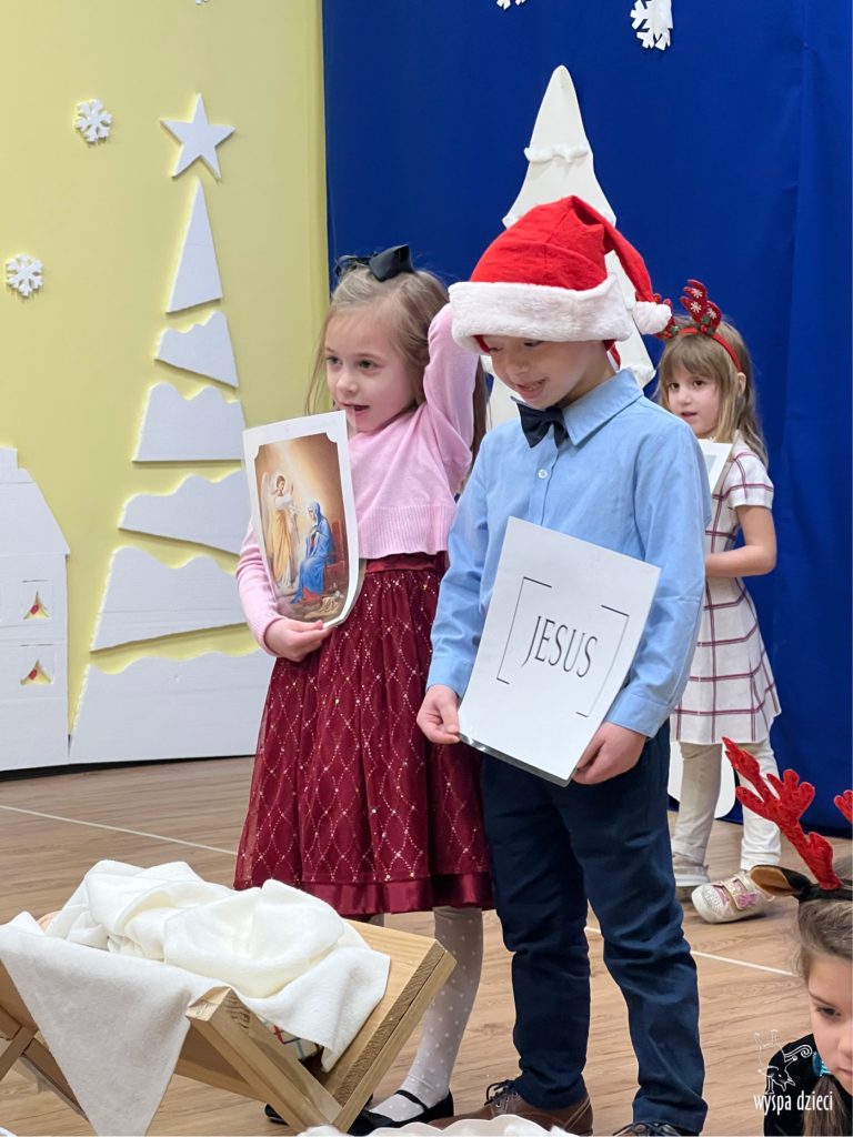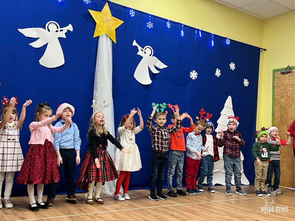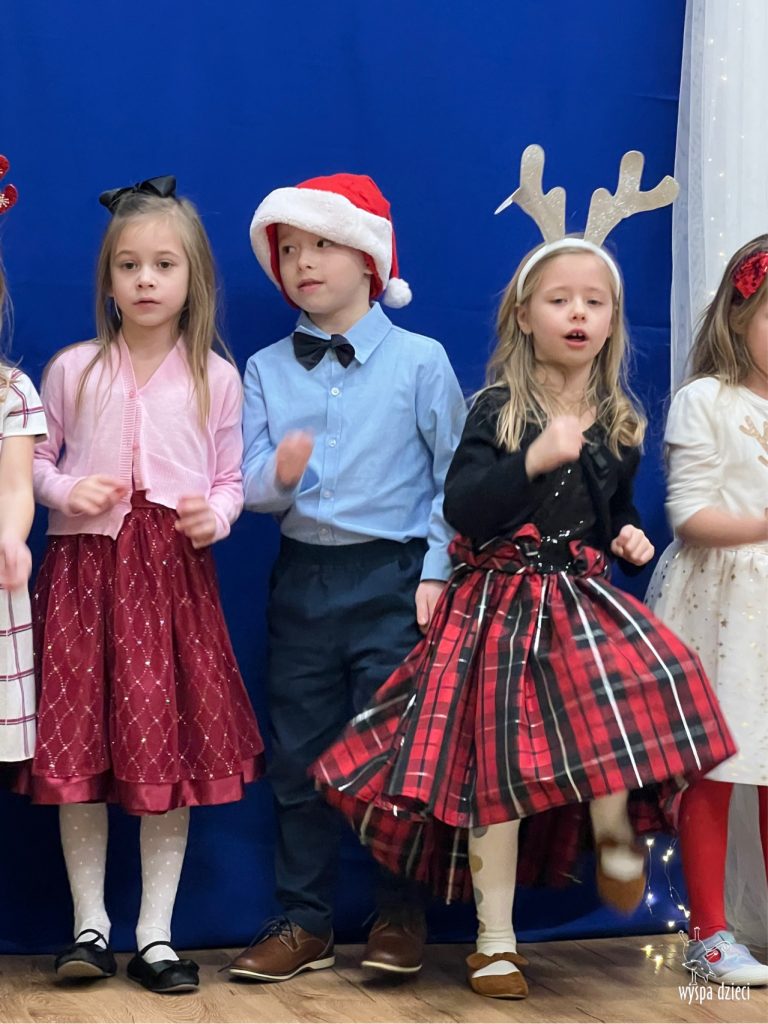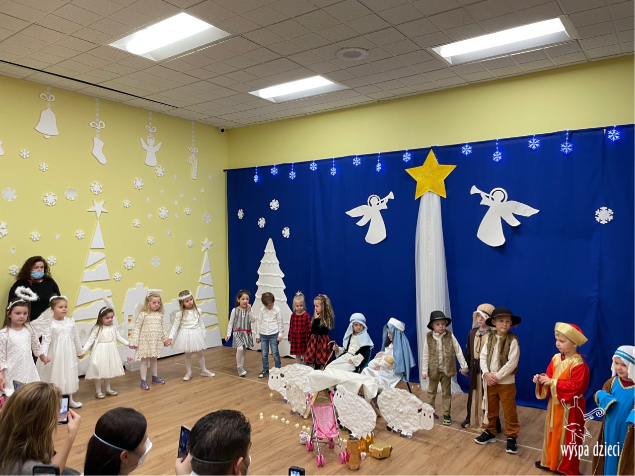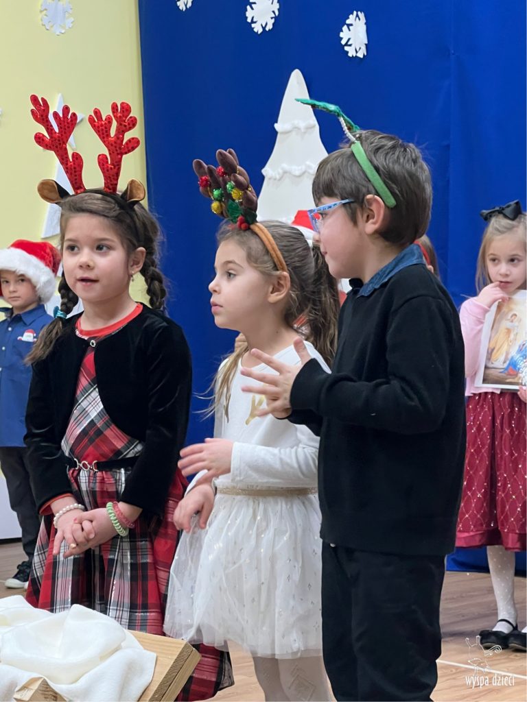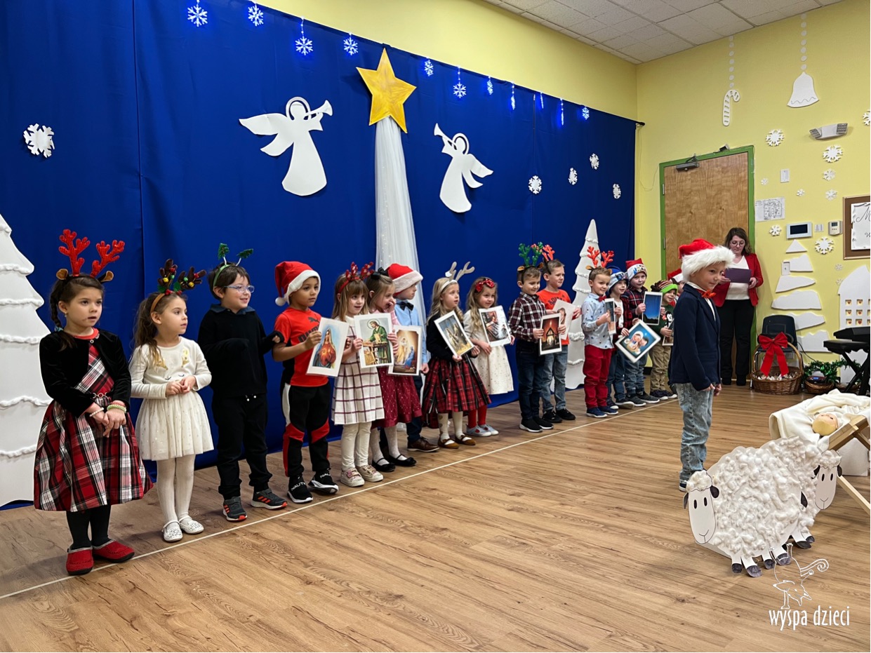 16 i 17 grudnia w naszej Wyspie Dzieci w River Grove odbyły się Koncerty Świąteczne oraz Jasełka każdej grupy. W czwartek 16 grudnia zaprezentowaly sie Misie, Krasnale, Smerfy oraz Bystrzaki. Natomiast w piatek 17 grudnia wystapily grupy Podroznikow, Poszukiwaczy, Odkrywców, Wynalazców . Tym bardziej był to dla nas ważny dzień, ponieważ po raz pierwszy rodzice przeszli progi naszej nowej lokalizacji. Głównym celem naszych uroczystości było wprowadzenie w radosną atmosferę Świąt Bożego Narodzenia. Wystepy odbyły się w naszej sali gimnastycznej na pierwszym pietrze. Dekoracja w sali byla przepiękna i przygotowana przez naszych nauczycieli. Przedstawienia były wyjątkowe. Mali aktorzy, prezentowali się doskonale. Dzieci recytowały teksty i interpretowały w sposób aktorski swoje role. Sala wypełniona byla śpiewem. Niektóre grupy zaprezentowały program bardziej nowoczesny, a w niektorych do szopki przybyli też pastuszkowie oraz dzieci z różnych stron świata, które przyniosły Dzieciątku dary oraz serduszka. Nasi artyści śpiewali pastorałki i kolędy, wykonywali układy taneczno-ruchowe. Całej tej uroczystości towarzyszyła przepiękna gama kolęd i pastorałek.