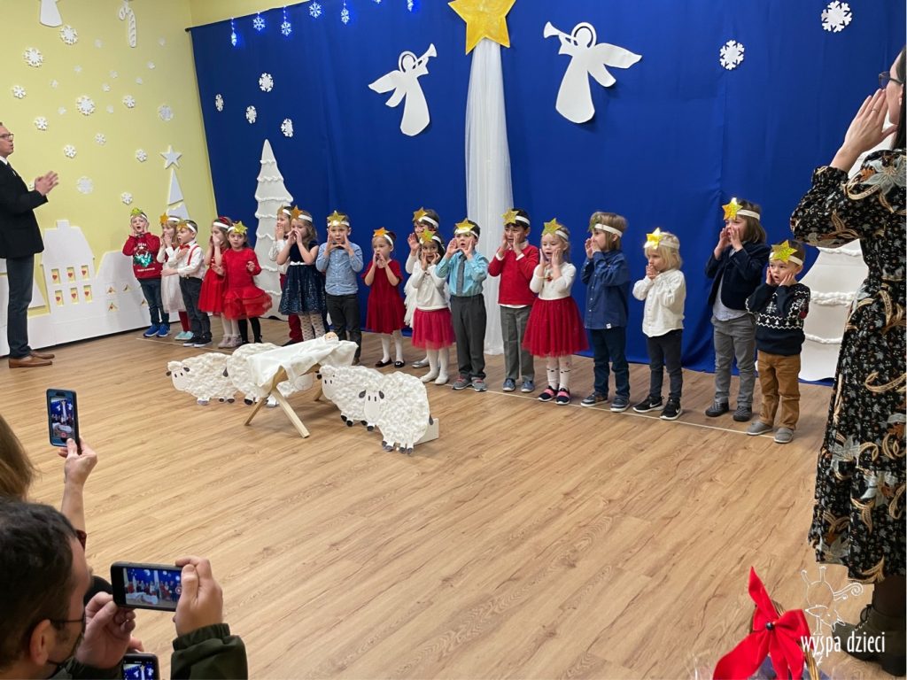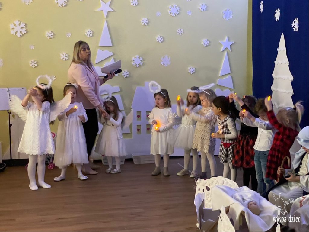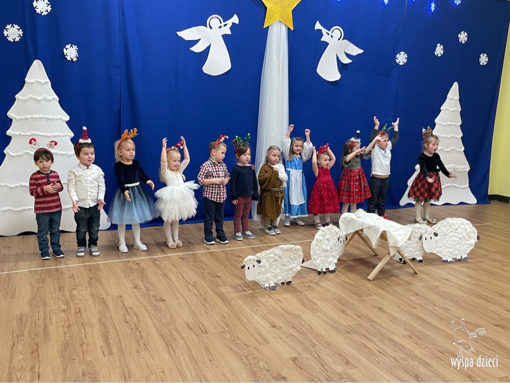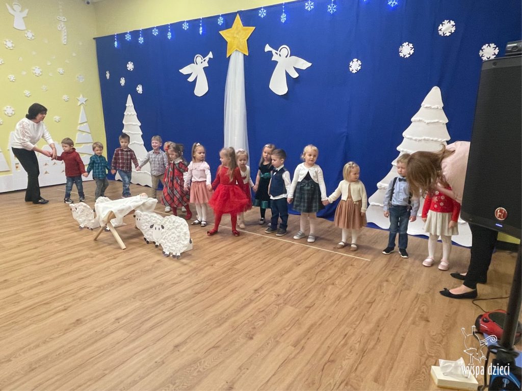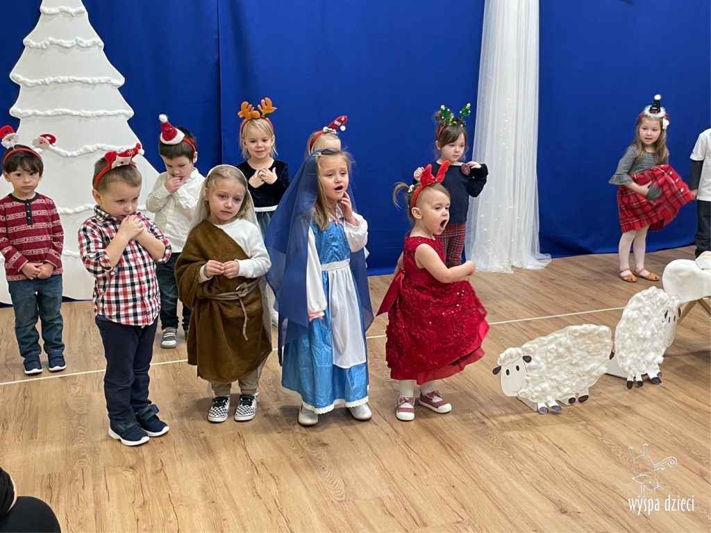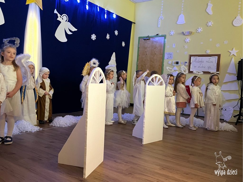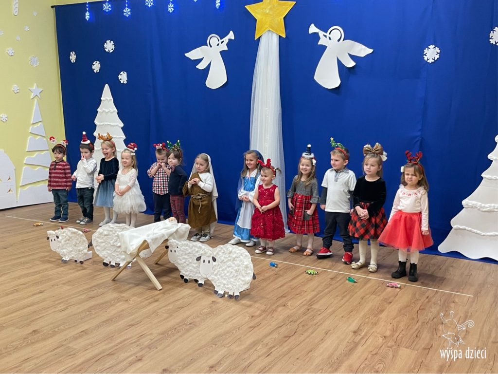 16 i 17 grudnia w naszej Wyspie Dzieci w River Grove odbyły się Koncerty Świąteczne oraz Jasełka każdej grupy. W czwartek 16 grudnia zaprezentowaly sie Misie, Krasnale, Smerfy oraz Bystrzaki. Natomiast w piatek 17 grudnia wystapily grupy Podroznikow, Poszukiwaczy, Odkrywców, Wynalazców . Tym bardziej był to dla nas ważny dzień, ponieważ po raz pierwszy rodzice przeszli progi naszej nowej lokalizacji. Głównym celem naszych uroczystości było wprowadzenie w radosną atmosferę Świąt Bożego Narodzenia. Wystepy odbyły się w naszej sali gimnastycznej na pierwszym pietrze. Dekoracja w sali byla przepiękna i przygotowana przez naszych nauczycieli. Przedstawienia były wyjątkowe. Mali aktorzy, prezentowali się doskonale. Dzieci recytowały teksty i interpretowały w sposób aktorski swoje role. Sala wypełniona byla śpiewem. Niektóre grupy zaprezentowały program bardziej nowoczesny, a w niektorych do szopki przybyli też pastuszkowie oraz dzieci z różnych stron świata, które przyniosły Dzieciątku dary oraz serduszka. Nasi artyści śpiewali pastorałki i kolędy, wykonywali układy taneczno-ruchowe. Całej tej uroczystości towarzyszyła przepiękna gama kolęd i pastorałek.