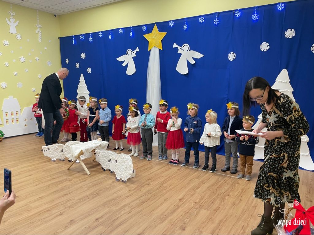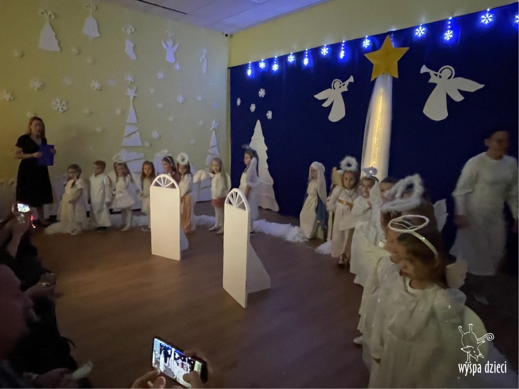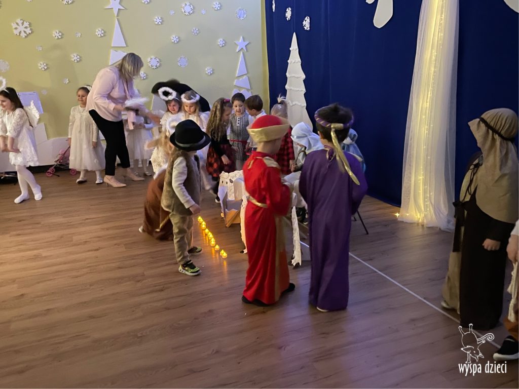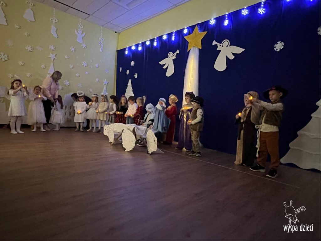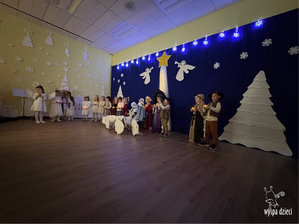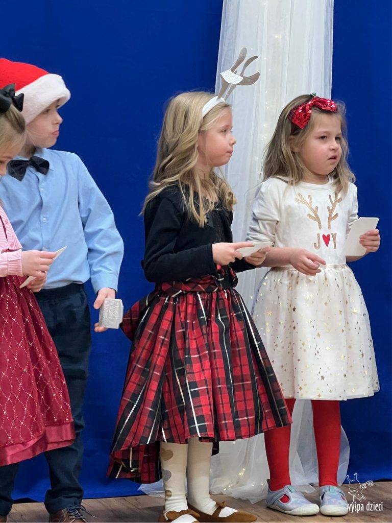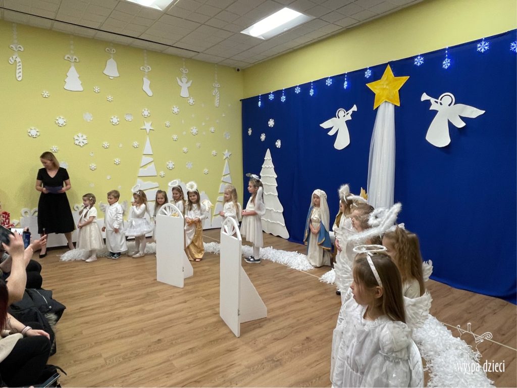 16 i 17 grudnia w naszej Wyspie Dzieci w River Grove odbyły się Koncerty Świąteczne oraz Jasełka każdej grupy. W czwartek 16 grudnia zaprezentowaly sie Misie, Krasnale, Smerfy oraz Bystrzaki. Natomiast w piatek 17 grudnia wystapily grupy Podroznikow, Poszukiwaczy, Odkrywców, Wynalazców . Tym bardziej był to dla nas ważny dzień, ponieważ po raz pierwszy rodzice przeszli progi naszej nowej lokalizacji. Głównym celem naszych uroczystości było wprowadzenie w radosną atmosferę Świąt Bożego Narodzenia. Wystepy odbyły się w naszej sali gimnastycznej na pierwszym pietrze. Dekoracja w sali byla przepiękna i przygotowana przez naszych nauczycieli. Przedstawienia były wyjątkowe. Mali aktorzy, prezentowali się doskonale. Dzieci recytowały teksty i interpretowały w sposób aktorski swoje role. Sala wypełniona byla śpiewem. Niektóre grupy zaprezentowały program bardziej nowoczesny, a w niektorych do szopki przybyli też pastuszkowie oraz dzieci z różnych stron świata, które przyniosły Dzieciątku dary oraz serduszka. Nasi artyści śpiewali pastorałki i kolędy, wykonywali układy taneczno-ruchowe. Całej tej uroczystości towarzyszyła przepiękna gama kolęd i pastorałek.