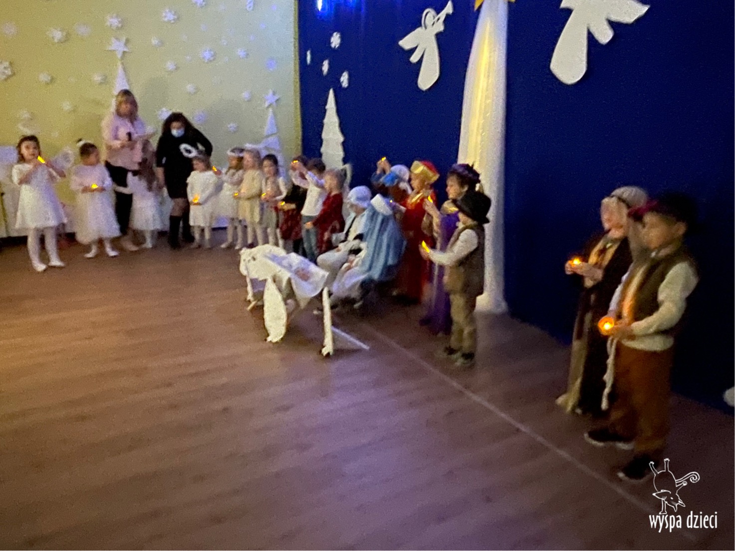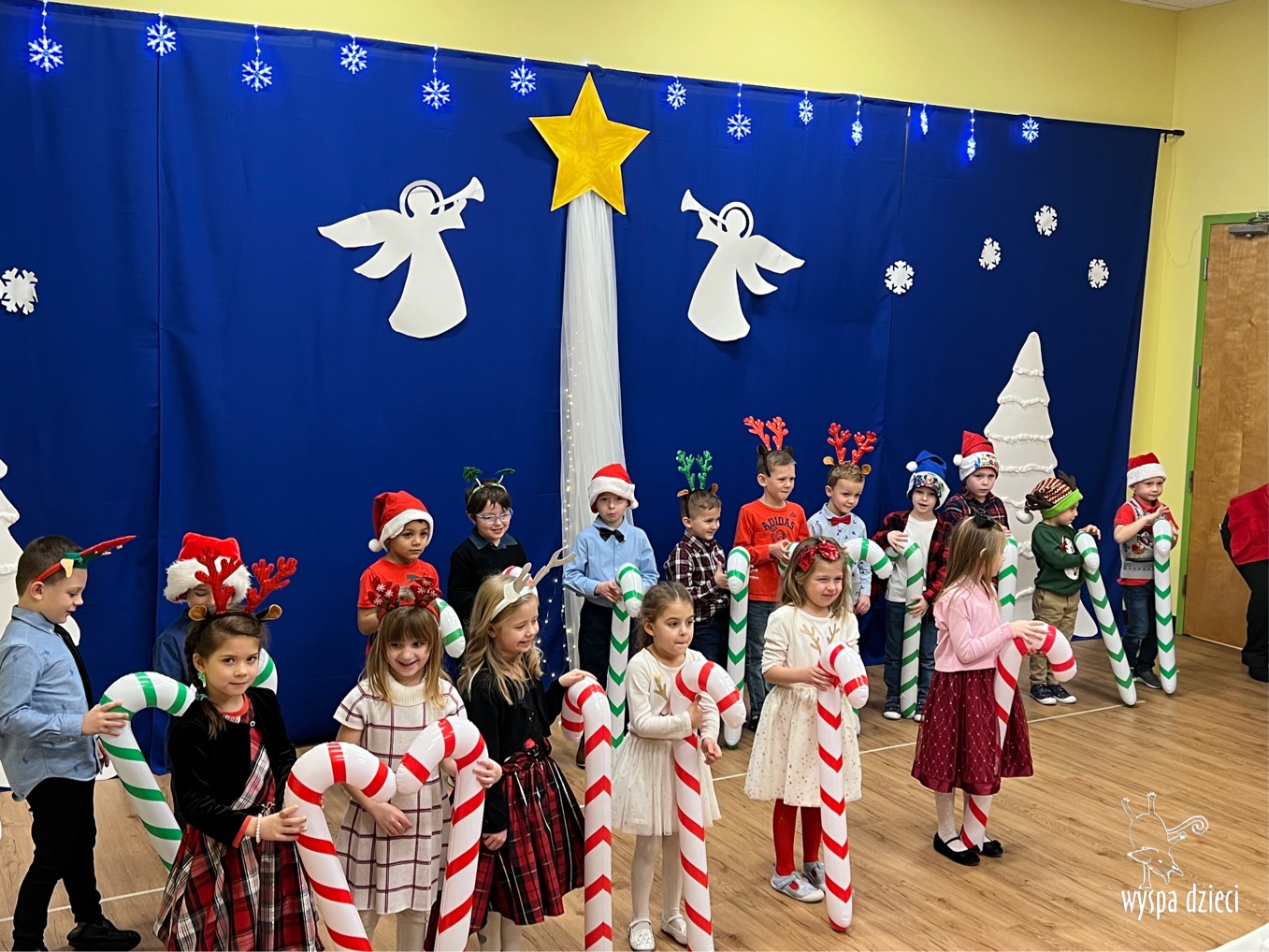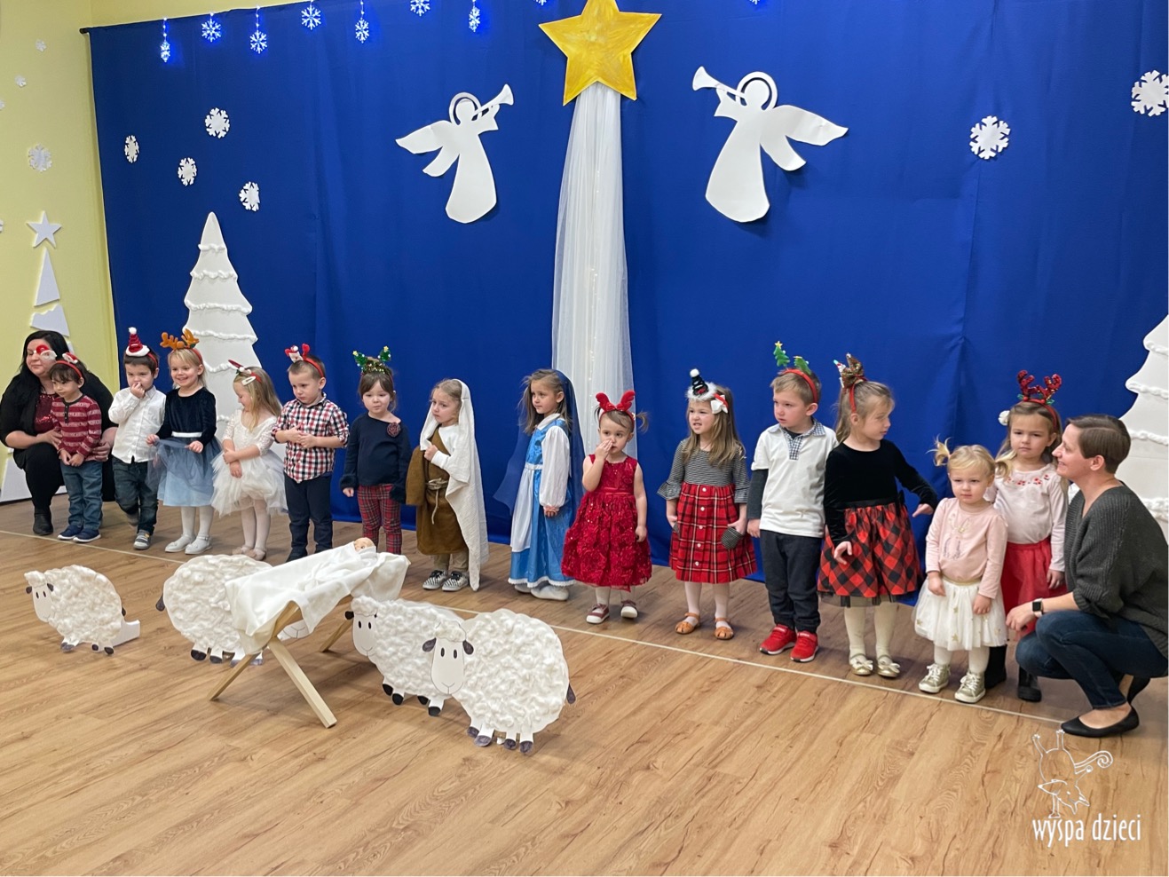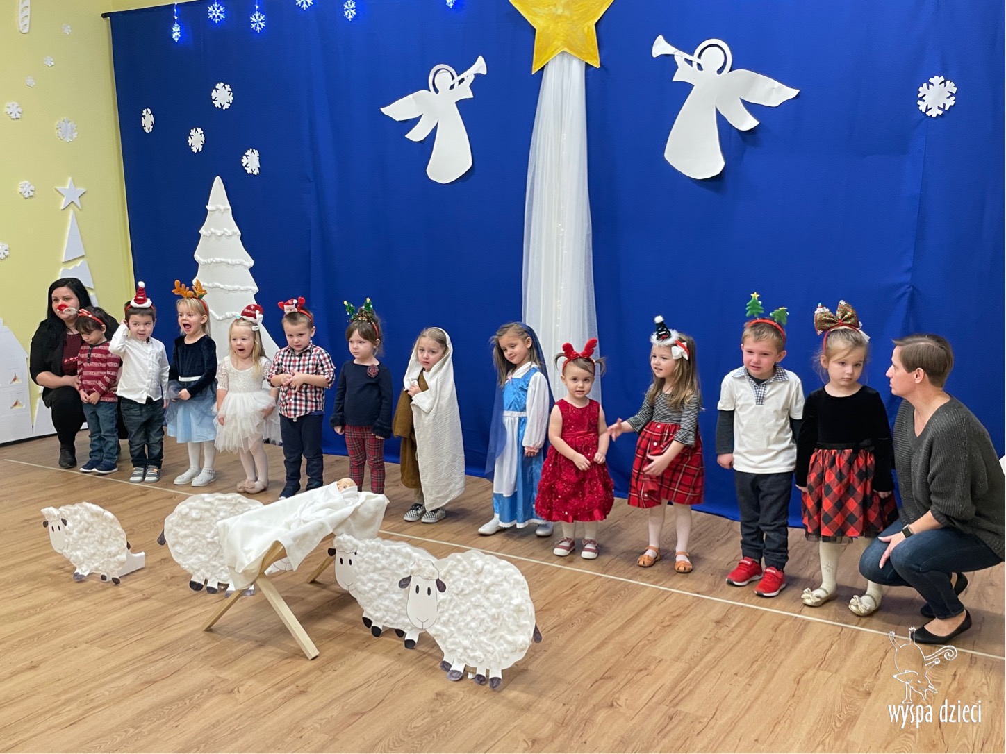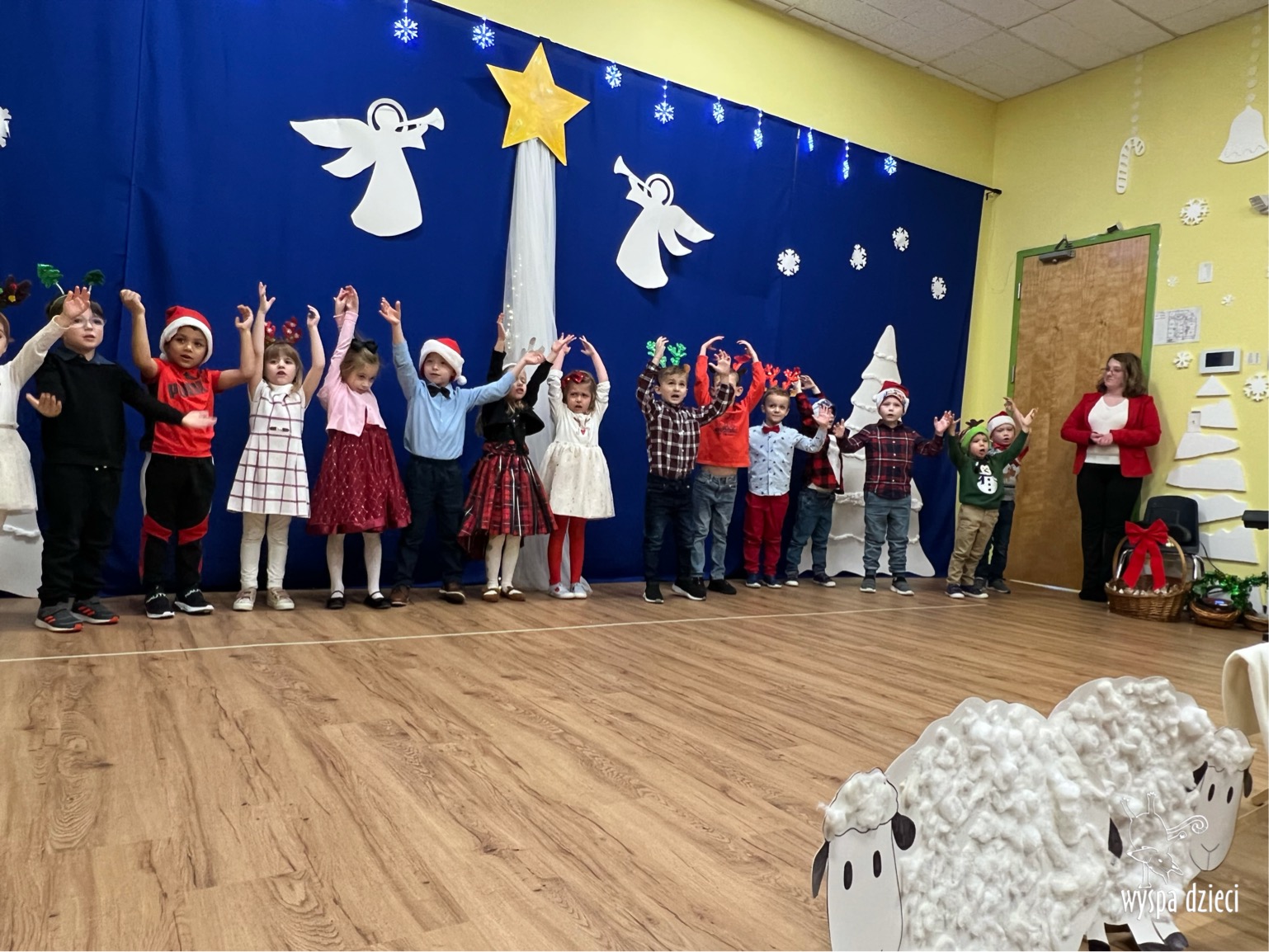 16 i 17 grudnia w naszej Wyspie Dzieci w River Grove odbyły się Koncerty Świąteczne oraz Jasełka każdej grupy. W czwartek 16 grudnia zaprezentowaly sie Misie, Krasnale, Smerfy oraz Bystrzaki. Natomiast w piatek 17 grudnia wystapily grupy Podroznikow, Poszukiwaczy, Odkrywców, Wynalazców . Tym bardziej był to dla nas ważny dzień, ponieważ po raz pierwszy rodzice przeszli progi naszej nowej lokalizacji. Głównym celem naszych uroczystości było wprowadzenie w radosną atmosferę Świąt Bożego Narodzenia. Wystepy odbyły się w naszej sali gimnastycznej na pierwszym pietrze. Dekoracja w sali byla przepiękna i przygotowana przez naszych nauczycieli. Przedstawienia były wyjątkowe. Mali aktorzy, prezentowali się doskonale. Dzieci recytowały teksty i interpretowały w sposób aktorski swoje role. Sala wypełniona byla śpiewem. Niektóre grupy zaprezentowały program bardziej nowoczesny, a w niektorych do szopki przybyli też pastuszkowie oraz dzieci z różnych stron świata, które przyniosły Dzieciątku dary oraz serduszka. Nasi artyści śpiewali pastorałki i kolędy, wykonywali układy taneczno-ruchowe. Całej tej uroczystości towarzyszyła przepiękna gama kolęd i pastorałek.