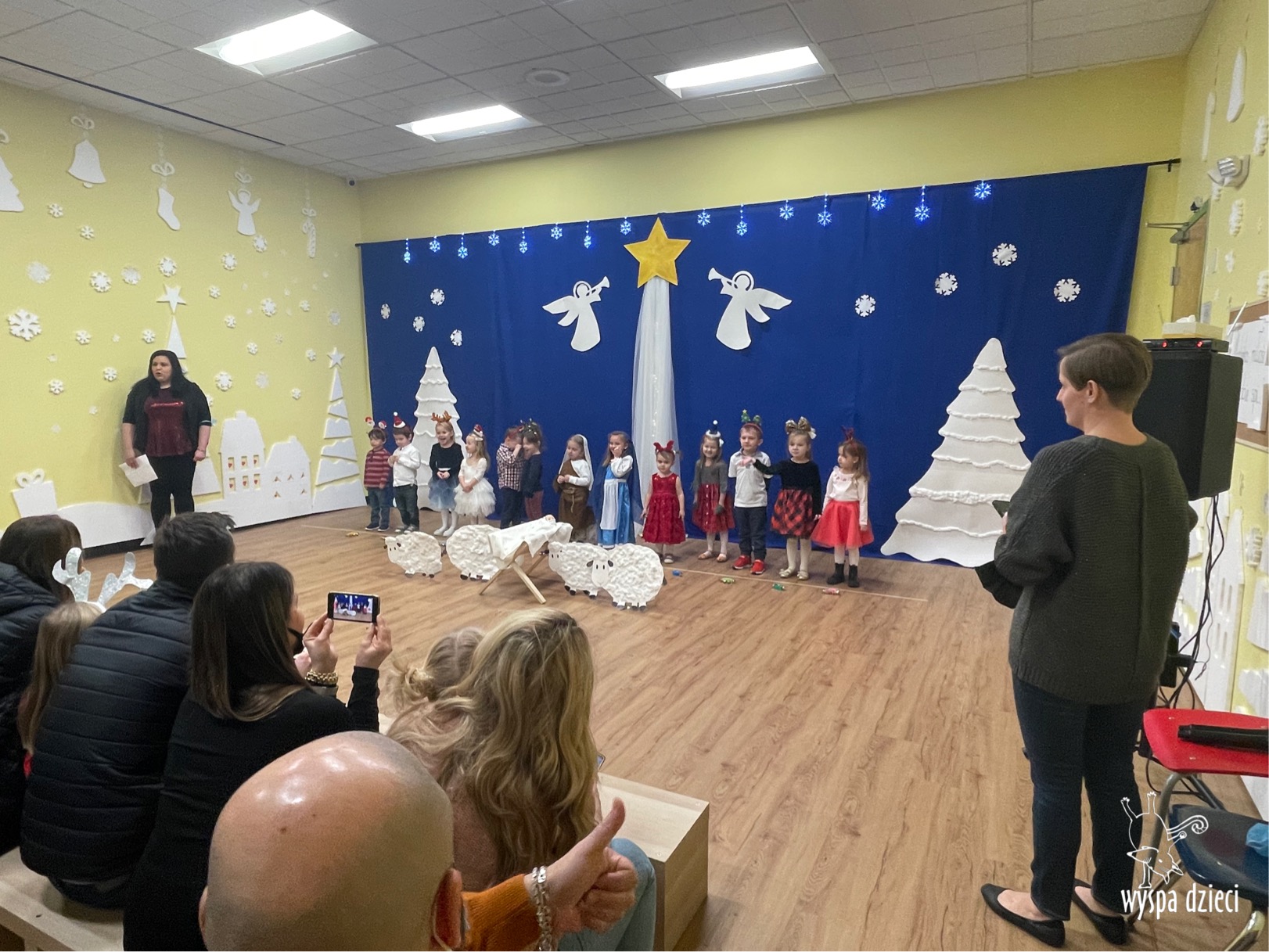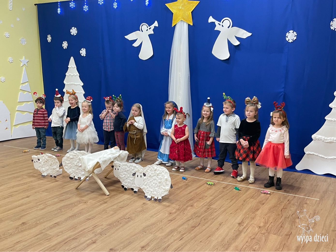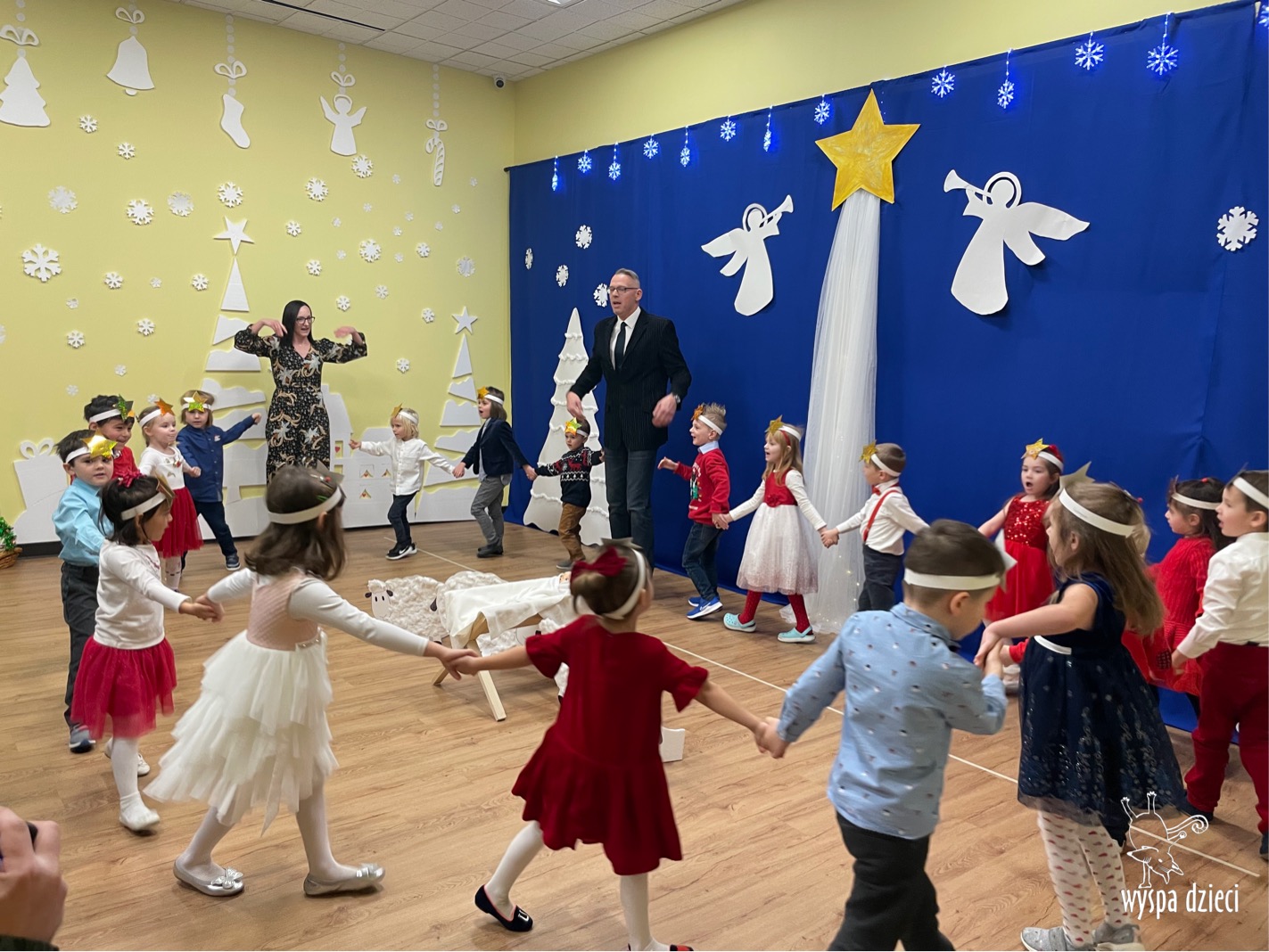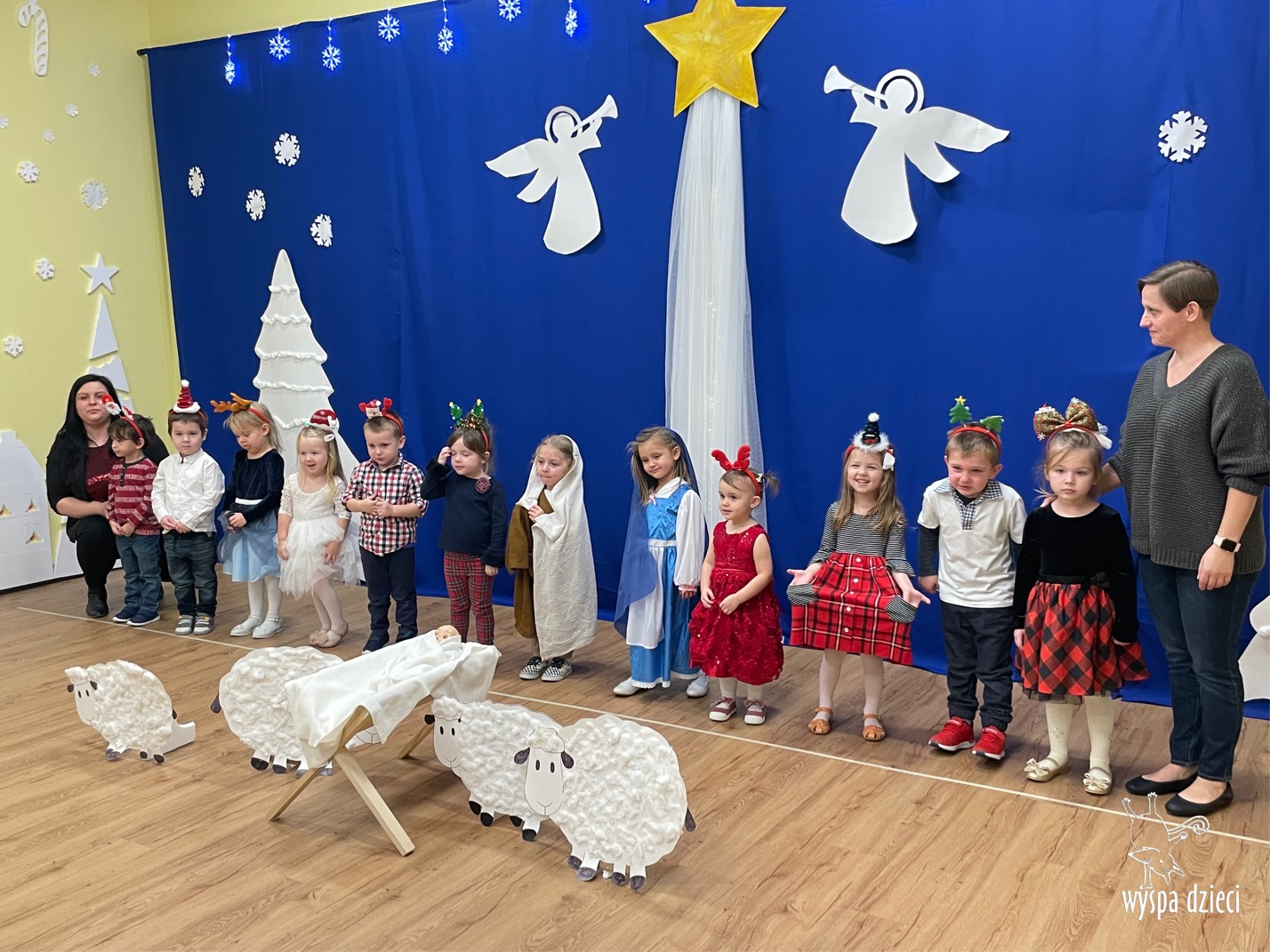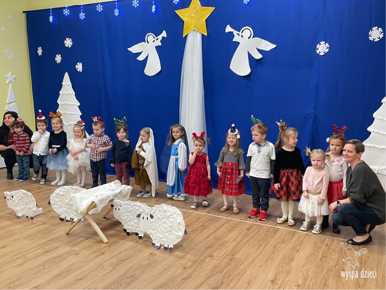 16 i 17 grudnia w naszej Wyspie Dzieci w River Grove odbyły się Koncerty Świąteczne oraz Jasełka każdej grupy. W czwartek 16 grudnia zaprezentowaly sie Misie, Krasnale, Smerfy oraz Bystrzaki. Natomiast w piatek 17 grudnia wystapily grupy Podroznikow, Poszukiwaczy, Odkrywców, Wynalazców . Tym bardziej był to dla nas ważny dzień, ponieważ po raz pierwszy rodzice przeszli progi naszej nowej lokalizacji. Głównym celem naszych uroczystości było wprowadzenie w radosną atmosferę Świąt Bożego Narodzenia. Wystepy odbyły się w naszej sali gimnastycznej na pierwszym pietrze. Dekoracja w sali byla przepiękna i przygotowana przez naszych nauczycieli. Przedstawienia były wyjątkowe. Mali aktorzy, prezentowali się doskonale. Dzieci recytowały teksty i interpretowały w sposób aktorski swoje role. Sala wypełniona byla śpiewem. Niektóre grupy zaprezentowały program bardziej nowoczesny, a w niektorych do szopki przybyli też pastuszkowie oraz dzieci z różnych stron świata, które przyniosły Dzieciątku dary oraz serduszka. Nasi artyści śpiewali pastorałki i kolędy, wykonywali układy taneczno-ruchowe. Całej tej uroczystości towarzyszyła przepiękna gama kolęd i pastorałek.