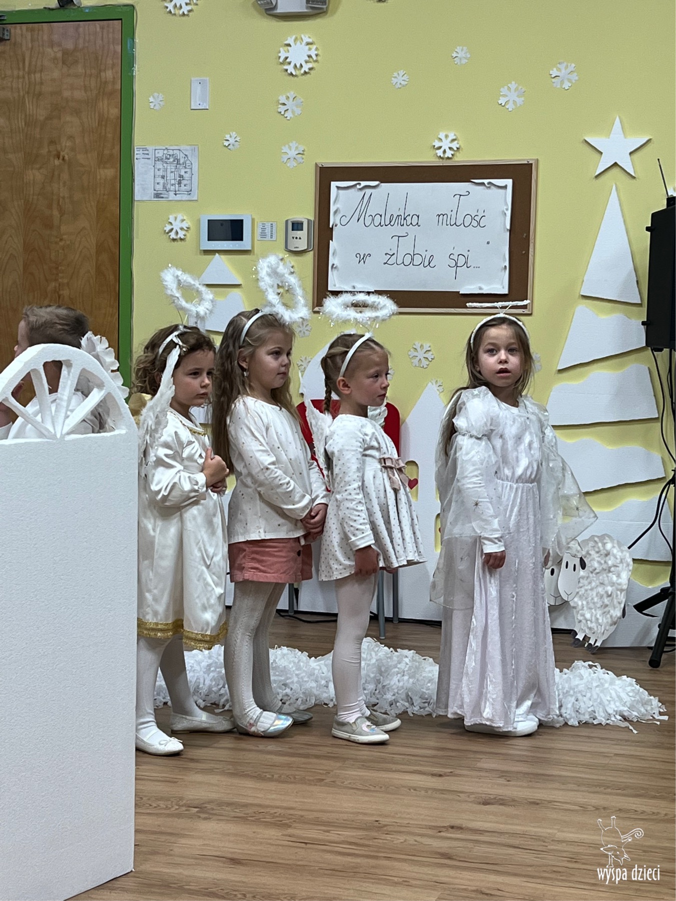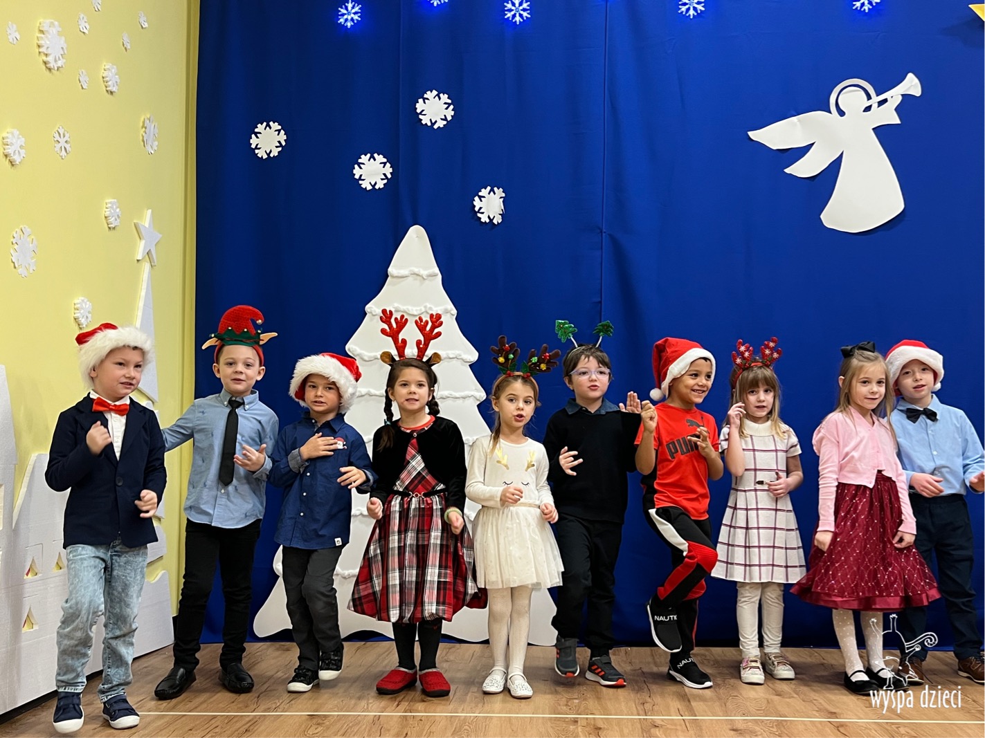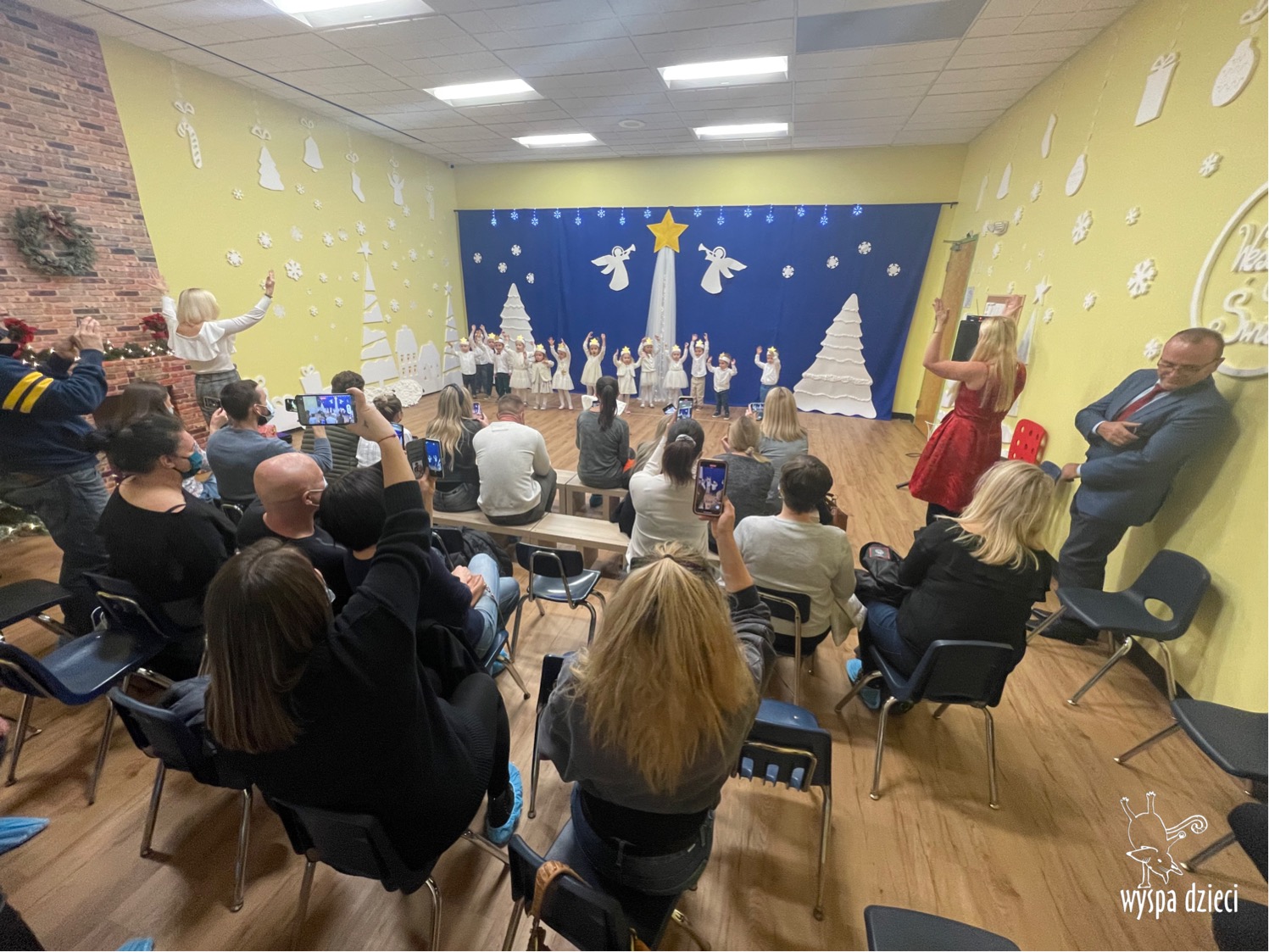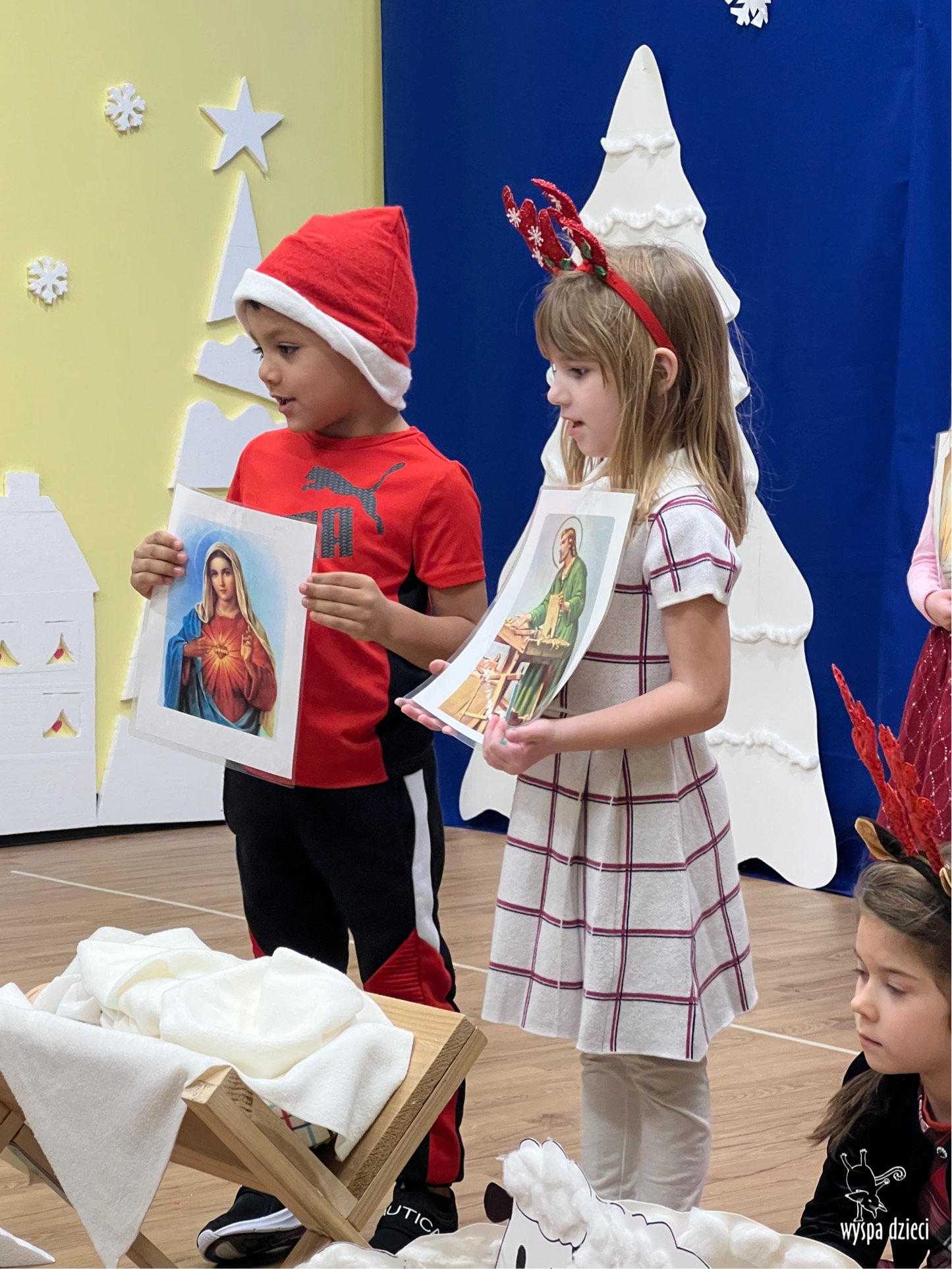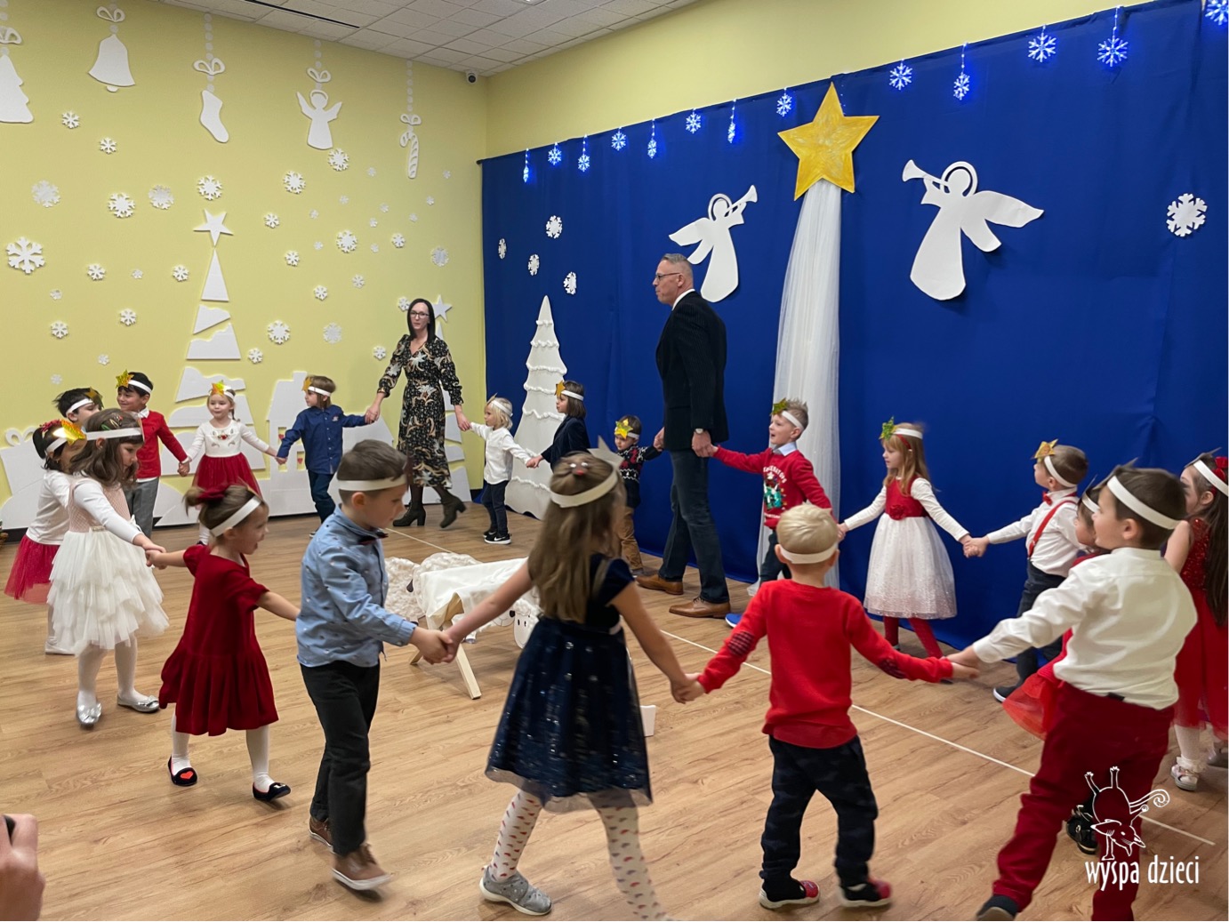 16 i 17 grudnia w naszej Wyspie Dzieci w River Grove odbyły się Koncerty Świąteczne oraz Jasełka każdej grupy. W czwartek 16 grudnia zaprezentowaly sie Misie, Krasnale, Smerfy oraz Bystrzaki. Natomiast w piatek 17 grudnia wystapily grupy Podroznikow, Poszukiwaczy, Odkrywców, Wynalazców . Tym bardziej był to dla nas ważny dzień, ponieważ po raz pierwszy rodzice przeszli progi naszej nowej lokalizacji. Głównym celem naszych uroczystości było wprowadzenie w radosną atmosferę Świąt Bożego Narodzenia. Wystepy odbyły się w naszej sali gimnastycznej na pierwszym pietrze. Dekoracja w sali byla przepiękna i przygotowana przez naszych nauczycieli. Przedstawienia były wyjątkowe. Mali aktorzy, prezentowali się doskonale. Dzieci recytowały teksty i interpretowały w sposób aktorski swoje role. Sala wypełniona byla śpiewem. Niektóre grupy zaprezentowały program bardziej nowoczesny, a w niektorych do szopki przybyli też pastuszkowie oraz dzieci z różnych stron świata, które przyniosły Dzieciątku dary oraz serduszka. Nasi artyści śpiewali pastorałki i kolędy, wykonywali układy taneczno-ruchowe. Całej tej uroczystości towarzyszyła przepiękna gama kolęd i pastorałek.