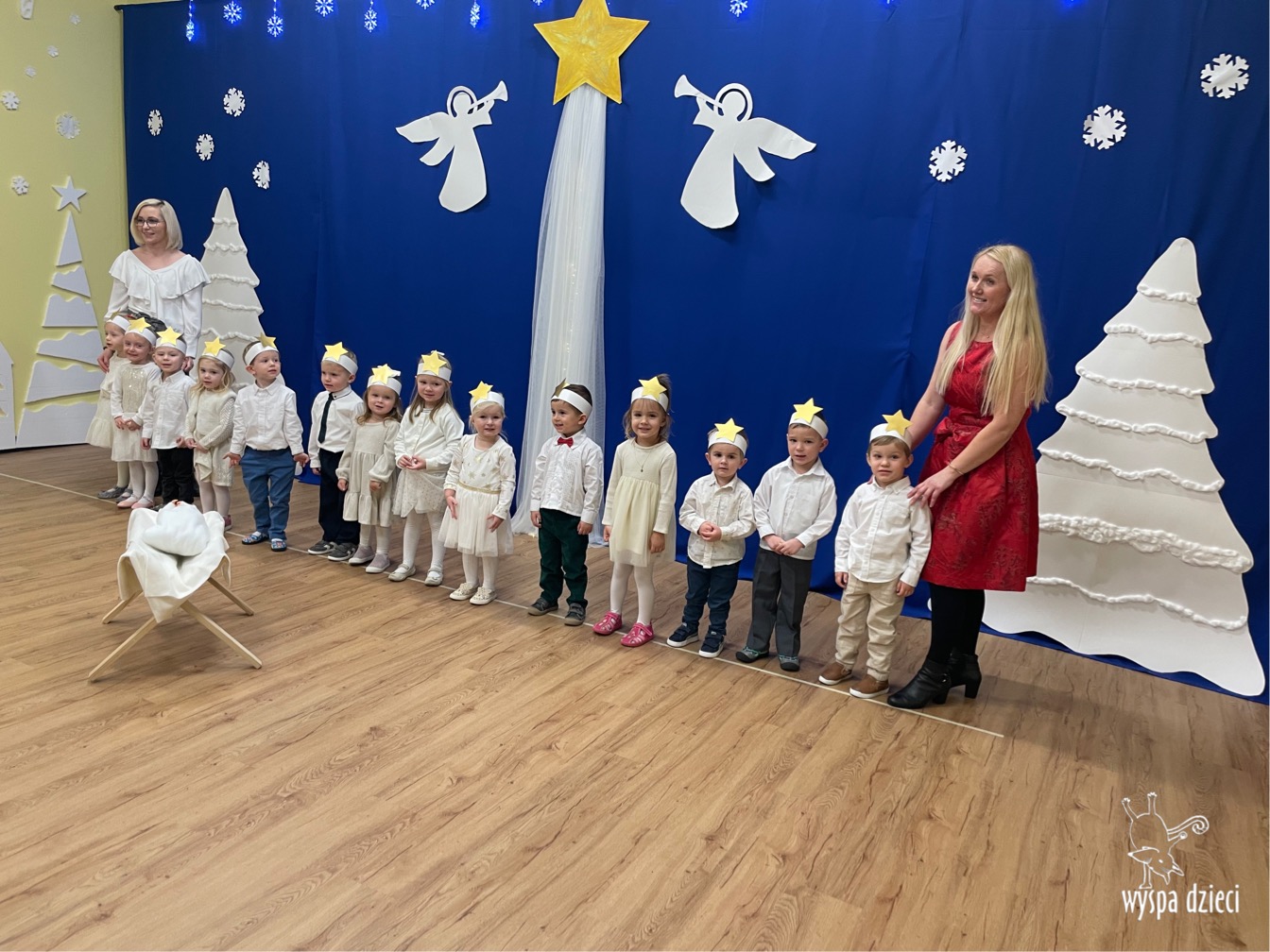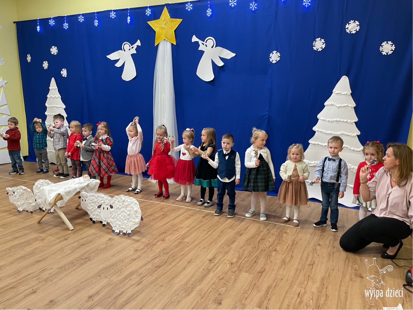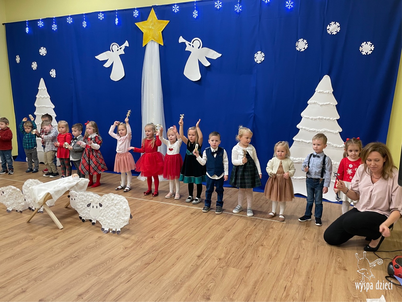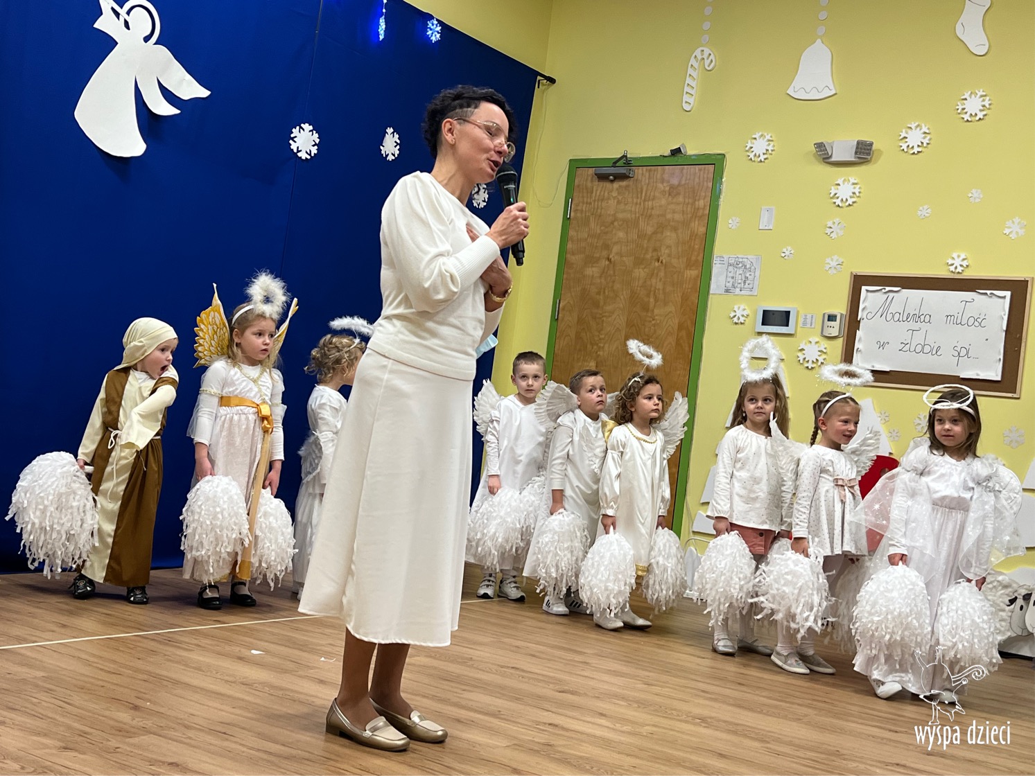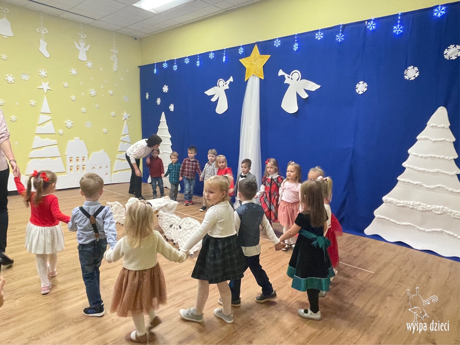 16 i 17 grudnia w naszej Wyspie Dzieci w River Grove odbyły się Koncerty Świąteczne oraz Jasełka każdej grupy. W czwartek 16 grudnia zaprezentowaly sie Misie, Krasnale, Smerfy oraz Bystrzaki. Natomiast w piatek 17 grudnia wystapily grupy Podroznikow, Poszukiwaczy, Odkrywców, Wynalazców . Tym bardziej był to dla nas ważny dzień, ponieważ po raz pierwszy rodzice przeszli progi naszej nowej lokalizacji. Głównym celem naszych uroczystości było wprowadzenie w radosną atmosferę Świąt Bożego Narodzenia. Wystepy odbyły się w naszej sali gimnastycznej na pierwszym pietrze. Dekoracja w sali byla przepiękna i przygotowana przez naszych nauczycieli. Przedstawienia były wyjątkowe. Mali aktorzy, prezentowali się doskonale. Dzieci recytowały teksty i interpretowały w sposób aktorski swoje role. Sala wypełniona byla śpiewem. Niektóre grupy zaprezentowały program bardziej nowoczesny, a w niektorych do szopki przybyli też pastuszkowie oraz dzieci z różnych stron świata, które przyniosły Dzieciątku dary oraz serduszka. Nasi artyści śpiewali pastorałki i kolędy, wykonywali układy taneczno-ruchowe. Całej tej uroczystości towarzyszyła przepiękna gama kolęd i pastorałek.