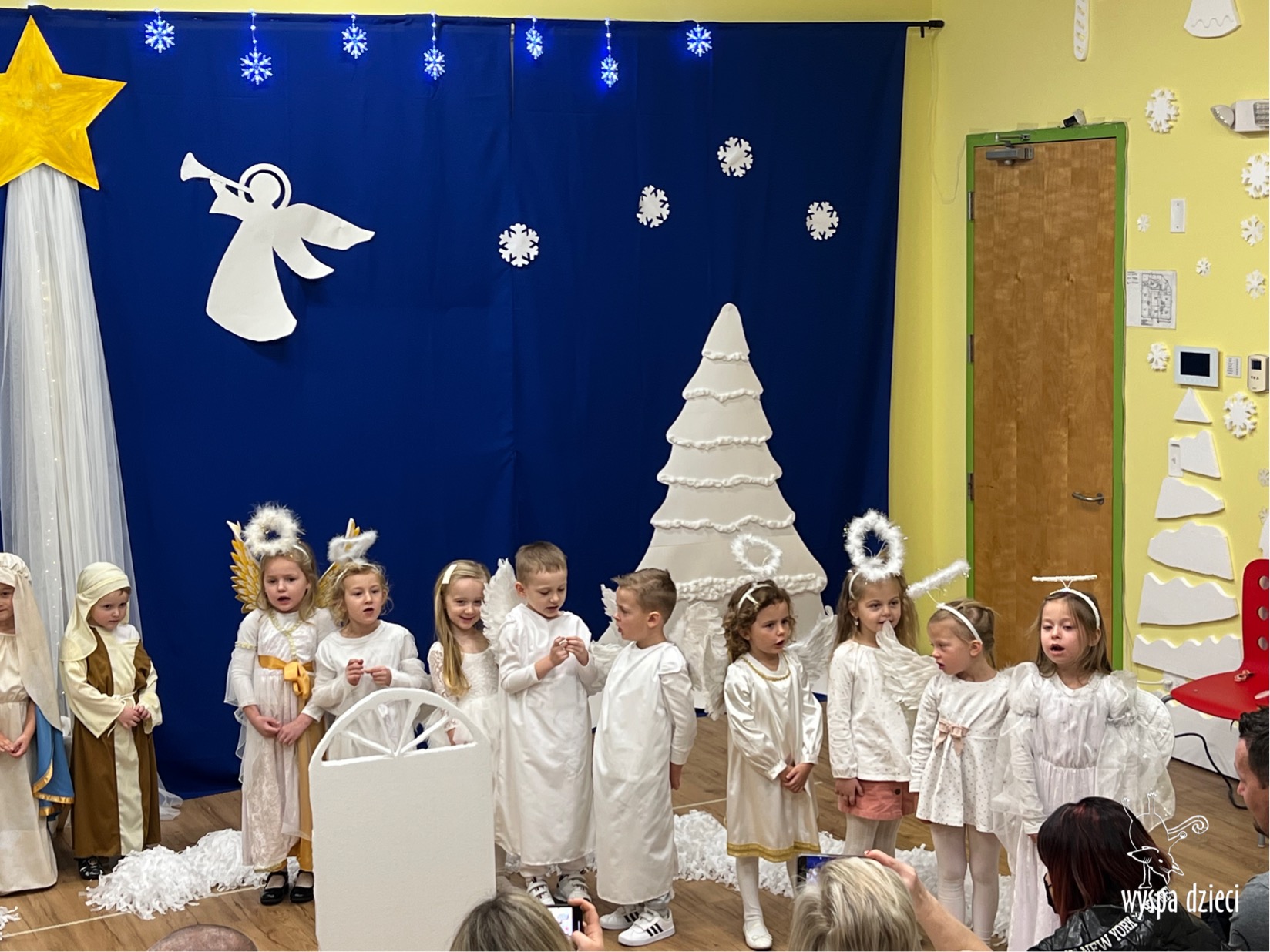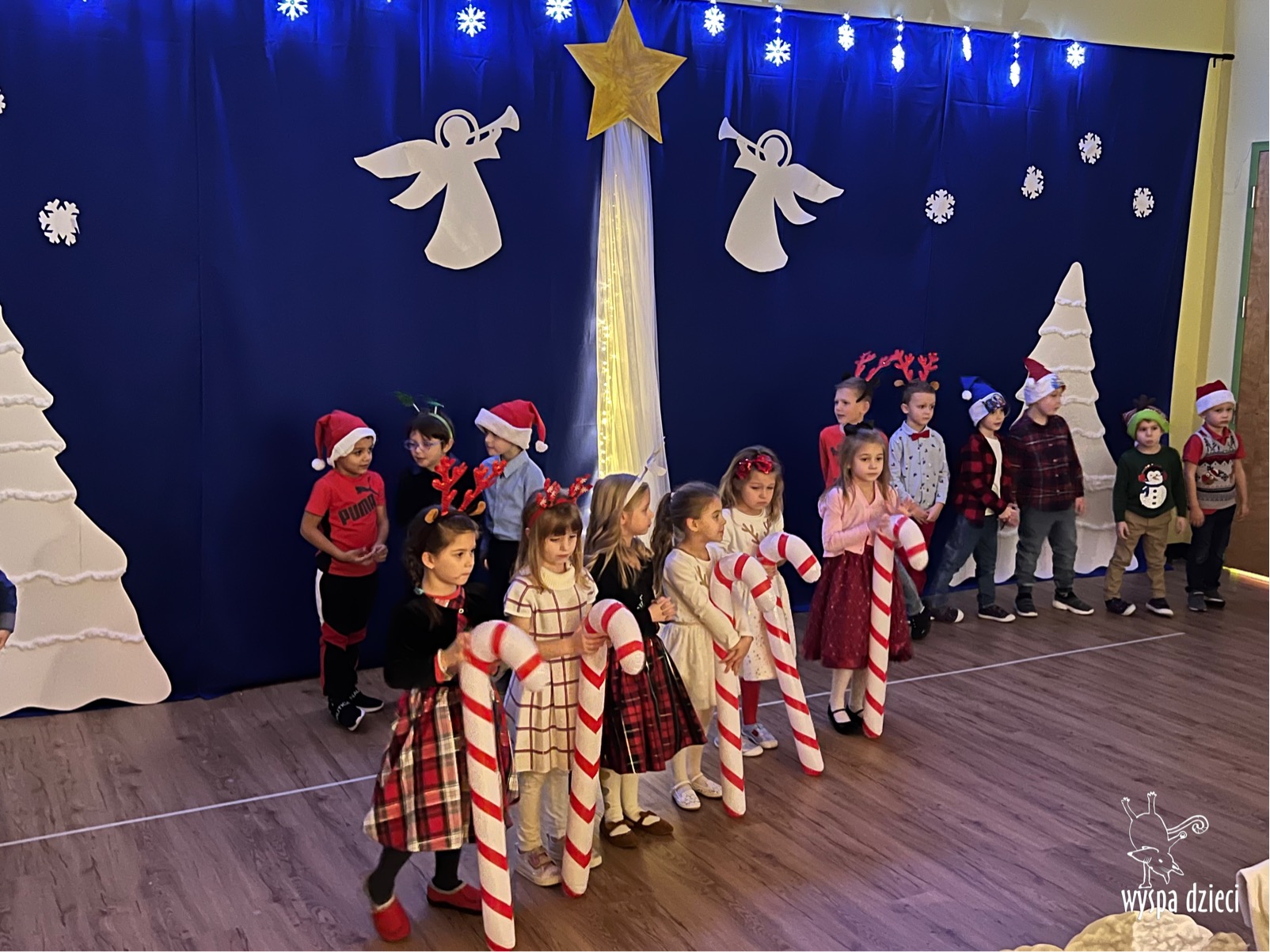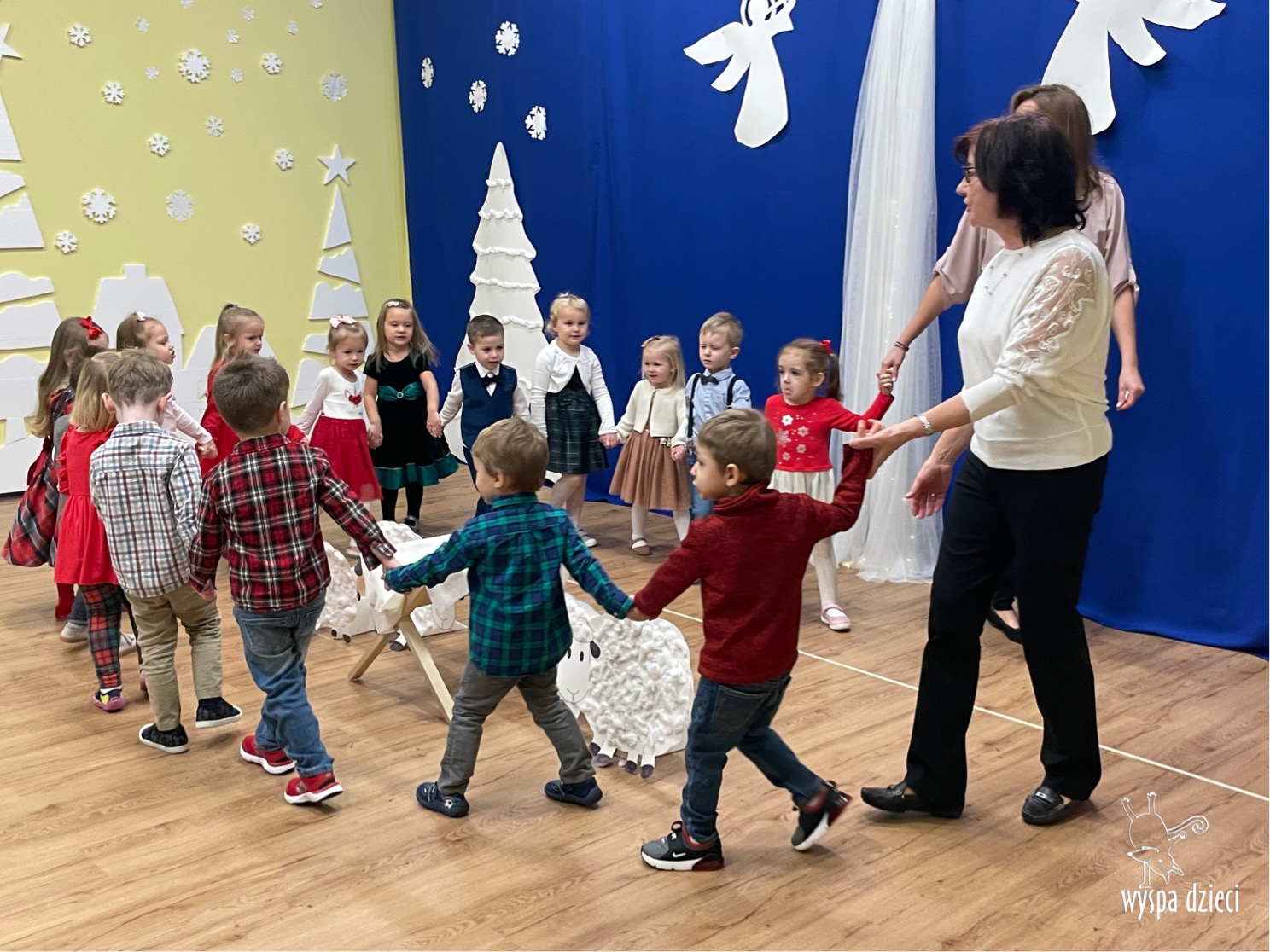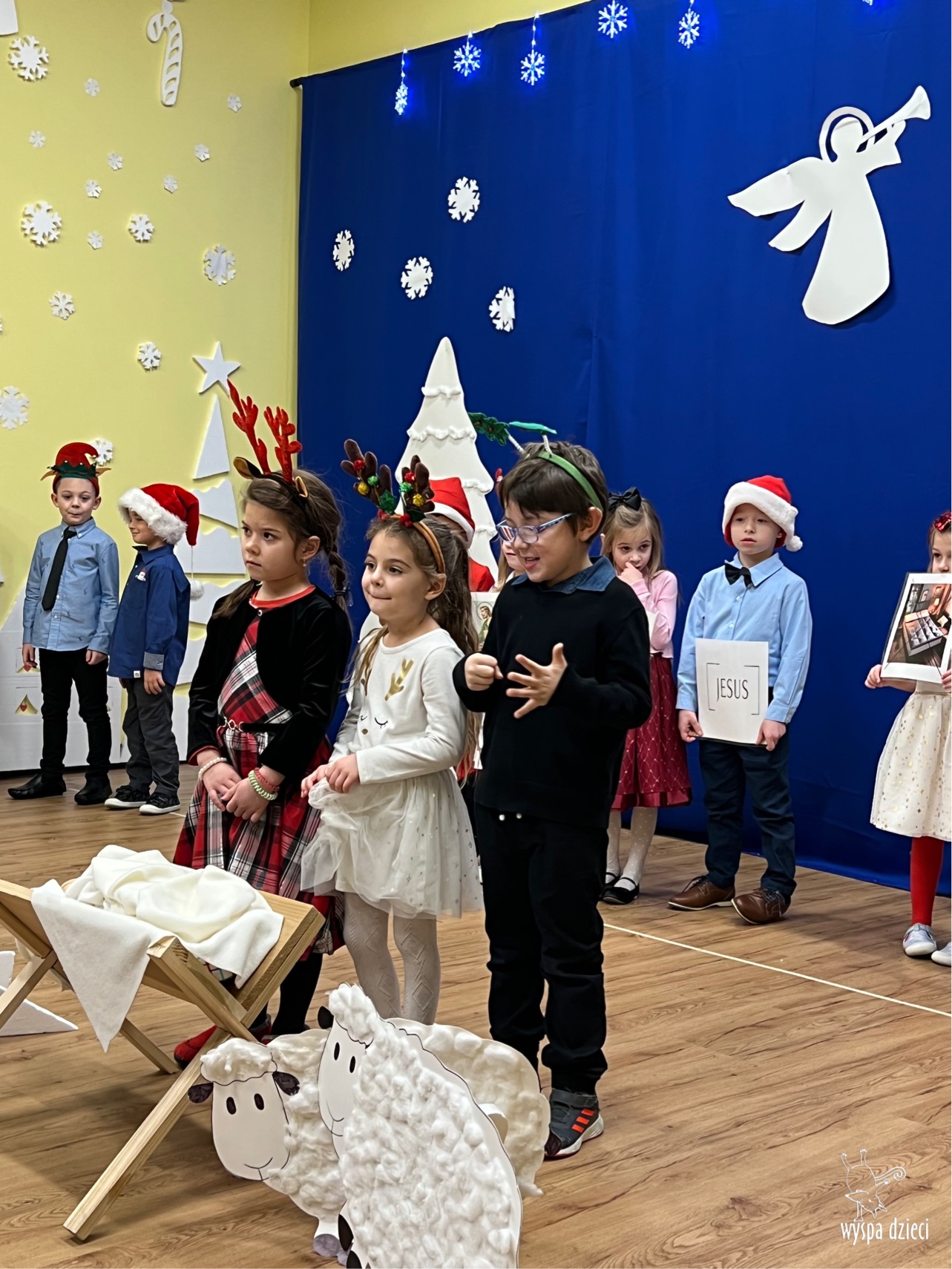 16 i 17 grudnia w naszej Wyspie Dzieci w River Grove odbyły się Koncerty Świąteczne oraz Jasełka każdej grupy. W czwartek 16 grudnia zaprezentowaly sie Misie, Krasnale, Smerfy oraz Bystrzaki. Natomiast w piatek 17 grudnia wystapily grupy Podroznikow, Poszukiwaczy, Odkrywców, Wynalazców . Tym bardziej był to dla nas ważny dzień, ponieważ po raz pierwszy rodzice przeszli progi naszej nowej lokalizacji. Głównym celem naszych uroczystości było wprowadzenie w radosną atmosferę Świąt Bożego Narodzenia. Wystepy odbyły się w naszej sali gimnastycznej na pierwszym pietrze. Dekoracja w sali byla przepiękna i przygotowana przez naszych nauczycieli. Przedstawienia były wyjątkowe. Mali aktorzy, prezentowali się doskonale. Dzieci recytowały teksty i interpretowały w sposób aktorski swoje role. Sala wypełniona byla śpiewem. Niektóre grupy zaprezentowały program bardziej nowoczesny, a w niektorych do szopki przybyli też pastuszkowie oraz dzieci z różnych stron świata, które przyniosły Dzieciątku dary oraz serduszka. Nasi artyści śpiewali pastorałki i kolędy, wykonywali układy taneczno-ruchowe. Całej tej uroczystości towarzyszyła przepiękna gama kolęd i pastorałek.