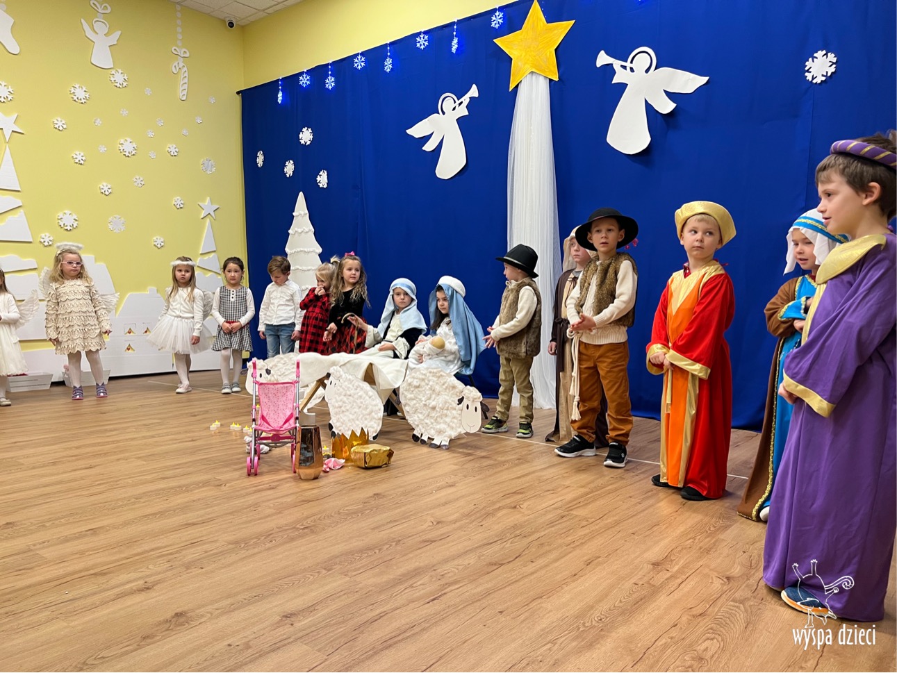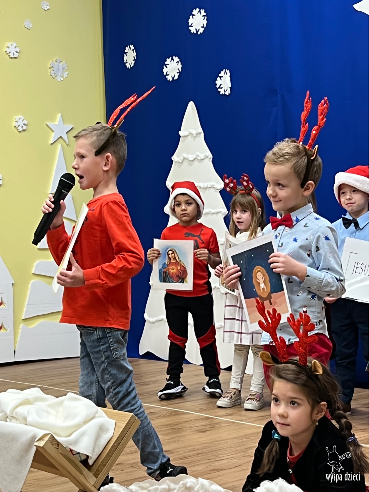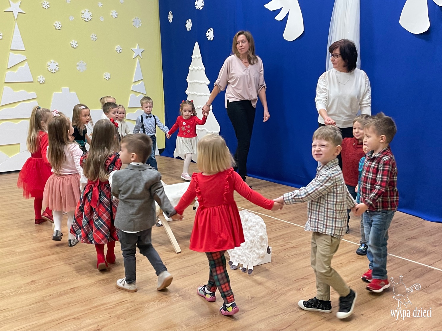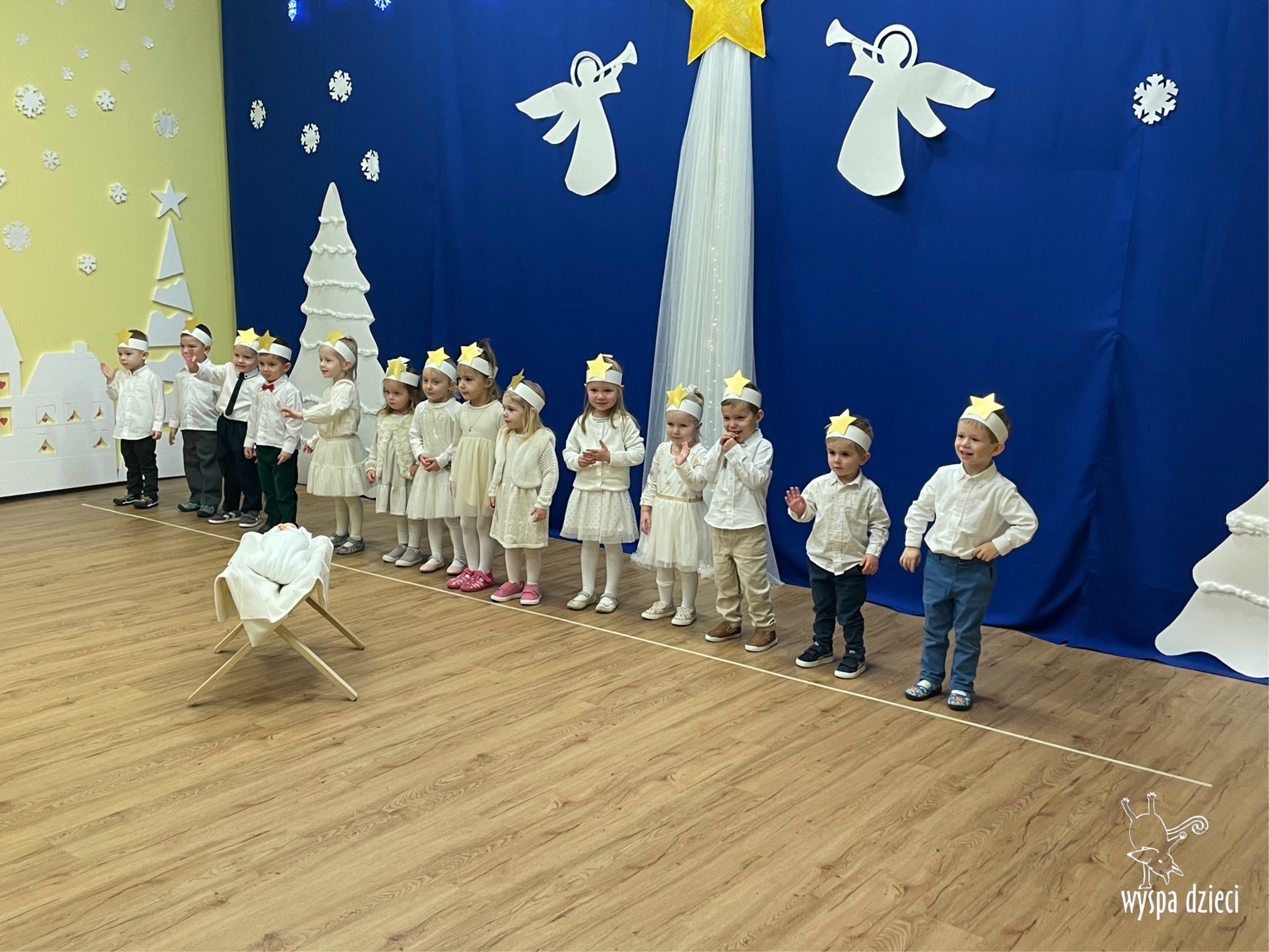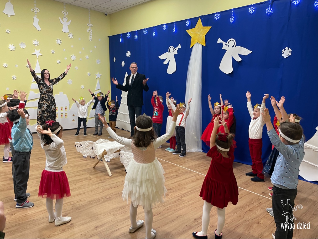 16 i 17 grudnia w naszej Wyspie Dzieci w River Grove odbyły się Koncerty Świąteczne oraz Jasełka każdej grupy. W czwartek 16 grudnia zaprezentowaly sie Misie, Krasnale, Smerfy oraz Bystrzaki. Natomiast w piatek 17 grudnia wystapily grupy Podroznikow, Poszukiwaczy, Odkrywców, Wynalazców . Tym bardziej był to dla nas ważny dzień, ponieważ po raz pierwszy rodzice przeszli progi naszej nowej lokalizacji. Głównym celem naszych uroczystości było wprowadzenie w radosną atmosferę Świąt Bożego Narodzenia. Wystepy odbyły się w naszej sali gimnastycznej na pierwszym pietrze. Dekoracja w sali byla przepiękna i przygotowana przez naszych nauczycieli. Przedstawienia były wyjątkowe. Mali aktorzy, prezentowali się doskonale. Dzieci recytowały teksty i interpretowały w sposób aktorski swoje role. Sala wypełniona byla śpiewem. Niektóre grupy zaprezentowały program bardziej nowoczesny, a w niektorych do szopki przybyli też pastuszkowie oraz dzieci z różnych stron świata, które przyniosły Dzieciątku dary oraz serduszka. Nasi artyści śpiewali pastorałki i kolędy, wykonywali układy taneczno-ruchowe. Całej tej uroczystości towarzyszyła przepiękna gama kolęd i pastorałek.
