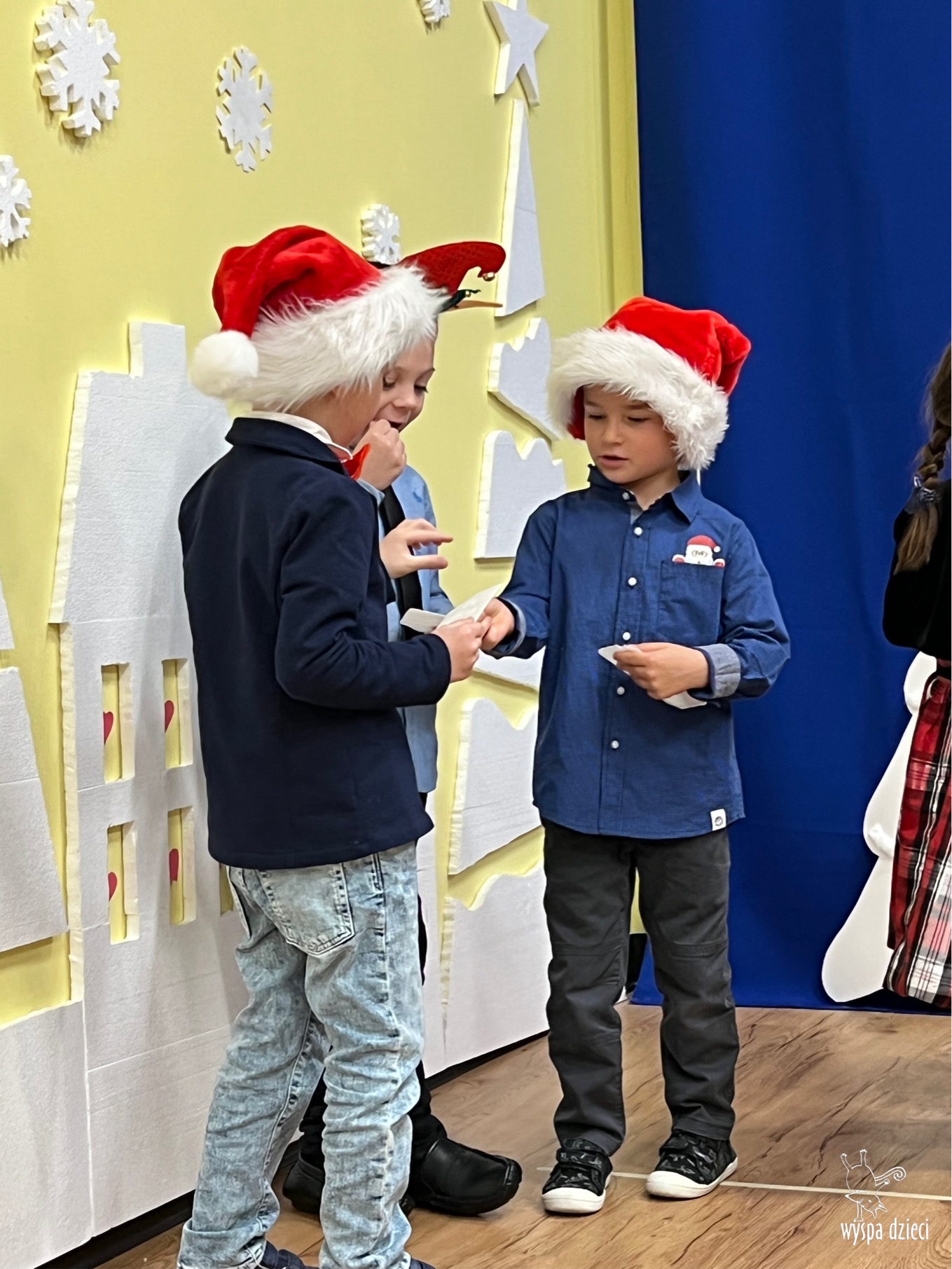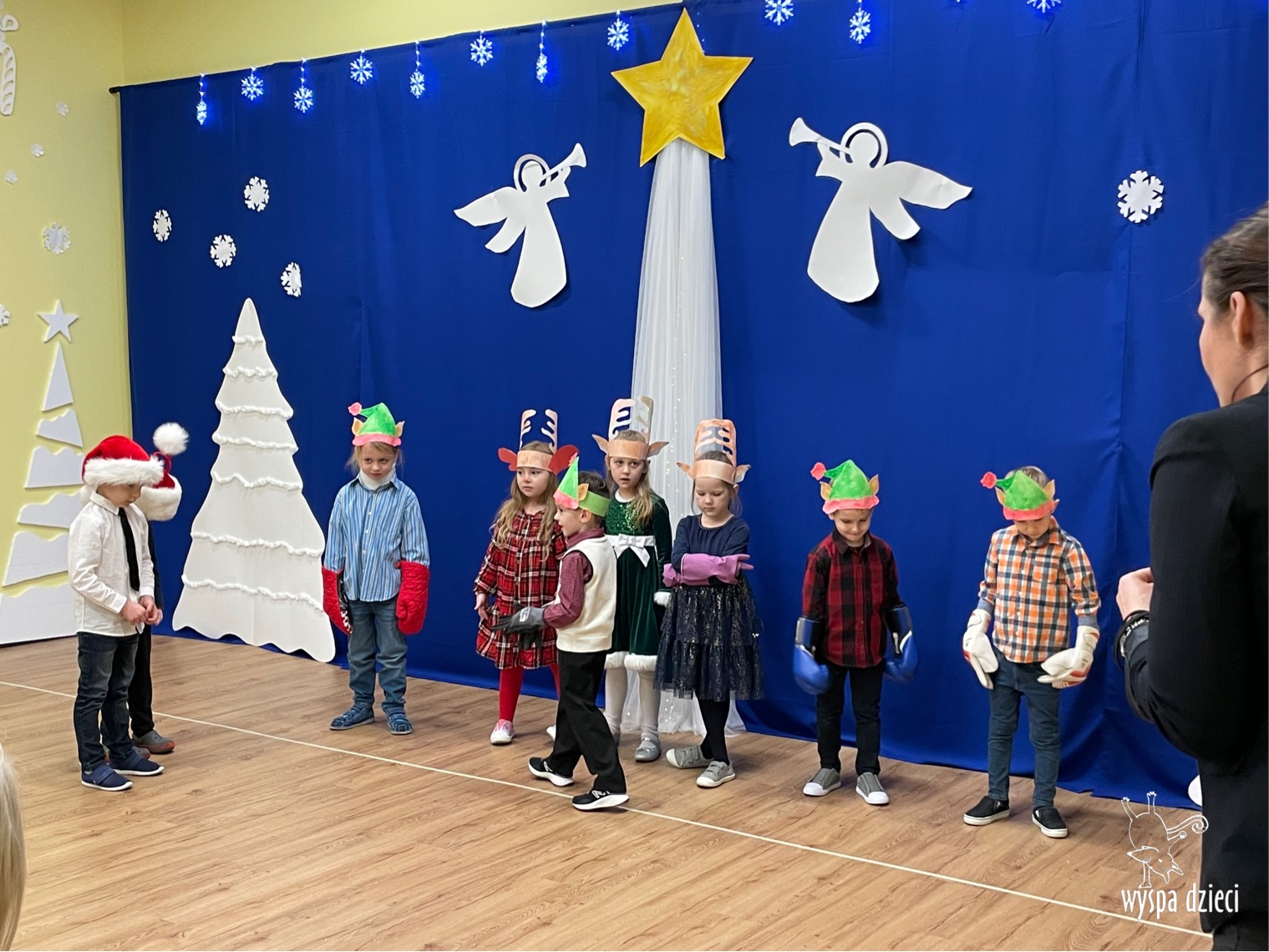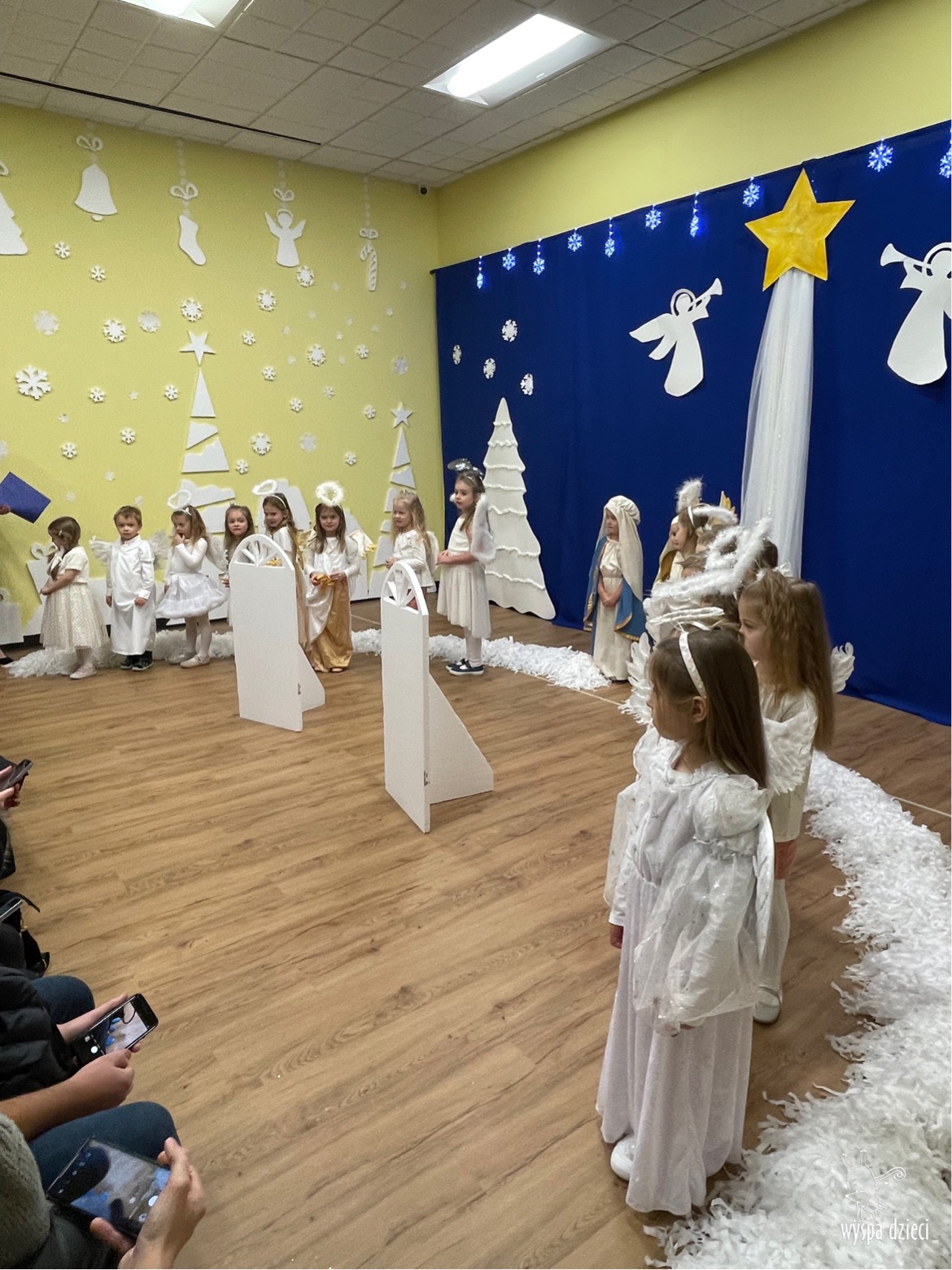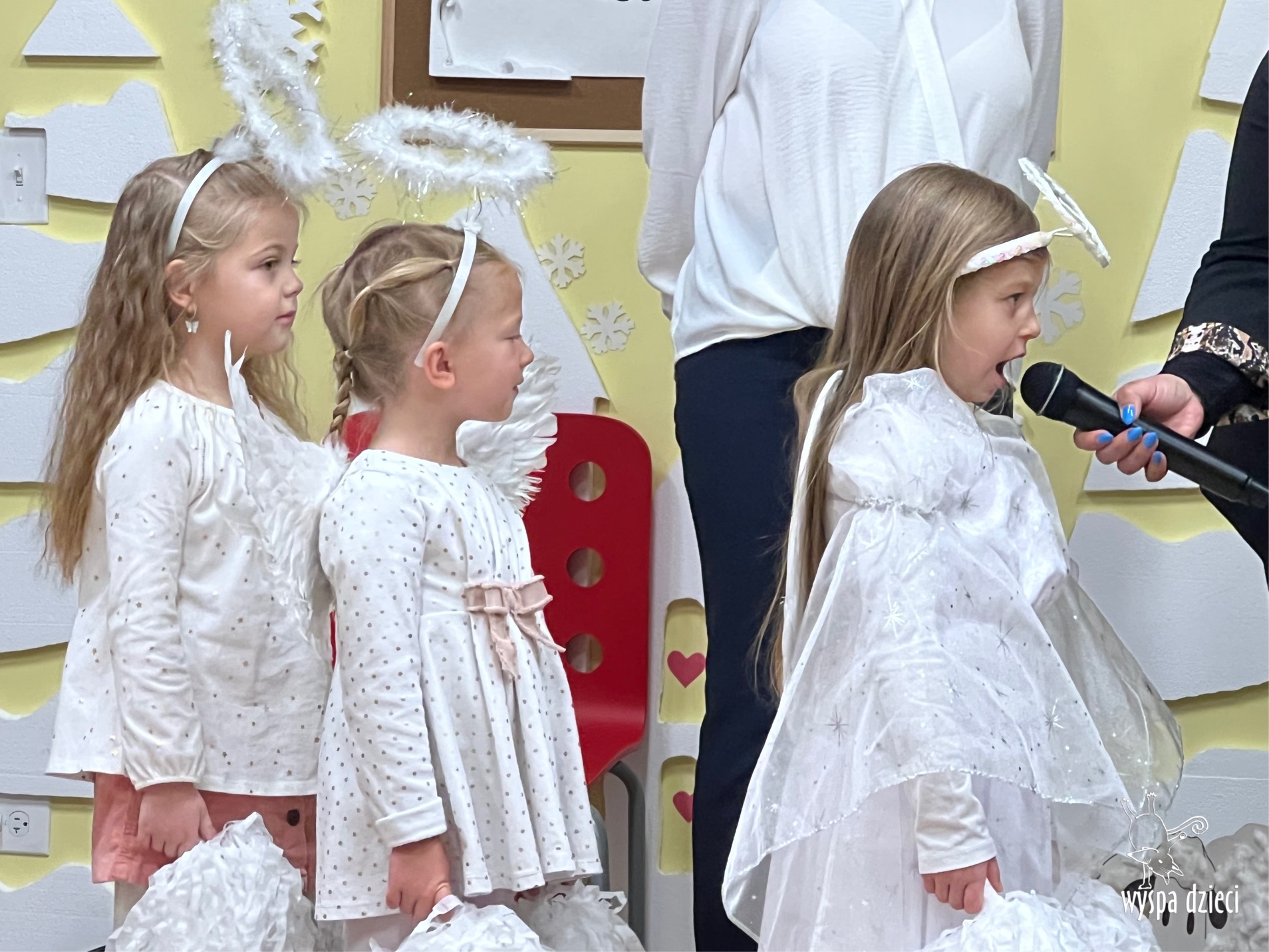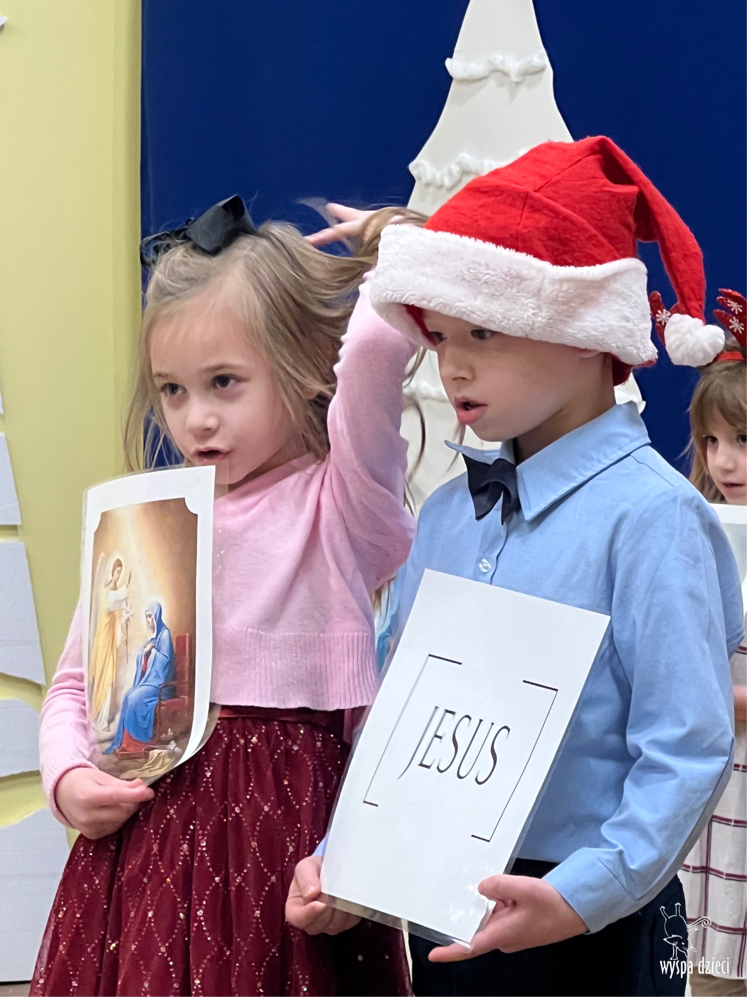 16 i 17 grudnia w naszej Wyspie Dzieci w River Grove odbyły się Koncerty Świąteczne oraz Jasełka każdej grupy. W czwartek 16 grudnia zaprezentowaly sie Misie, Krasnale, Smerfy oraz Bystrzaki. Natomiast w piatek 17 grudnia wystapily grupy Podroznikow, Poszukiwaczy, Odkrywców, Wynalazców . Tym bardziej był to dla nas ważny dzień, ponieważ po raz pierwszy rodzice przeszli progi naszej nowej lokalizacji. Głównym celem naszych uroczystości było wprowadzenie w radosną atmosferę Świąt Bożego Narodzenia. Wystepy odbyły się w naszej sali gimnastycznej na pierwszym pietrze. Dekoracja w sali byla przepiękna i przygotowana przez naszych nauczycieli. Przedstawienia były wyjątkowe. Mali aktorzy, prezentowali się doskonale. Dzieci recytowały teksty i interpretowały w sposób aktorski swoje role. Sala wypełniona byla śpiewem. Niektóre grupy zaprezentowały program bardziej nowoczesny, a w niektorych do szopki przybyli też pastuszkowie oraz dzieci z różnych stron świata, które przyniosły Dzieciątku dary oraz serduszka. Nasi artyści śpiewali pastorałki i kolędy, wykonywali układy taneczno-ruchowe. Całej tej uroczystości towarzyszyła przepiękna gama kolęd i pastorałek.