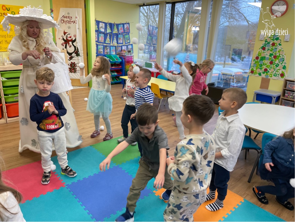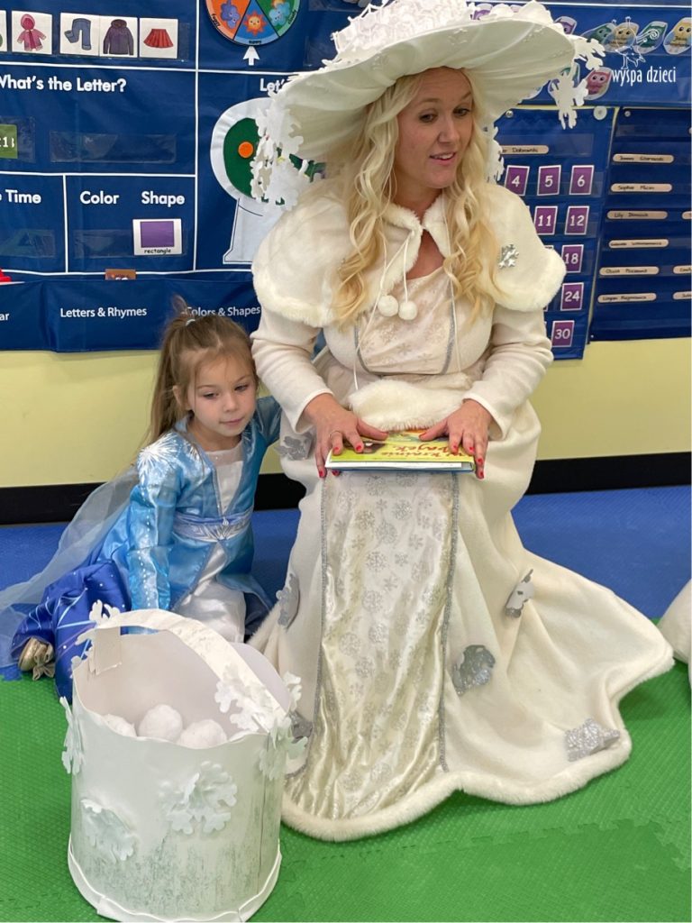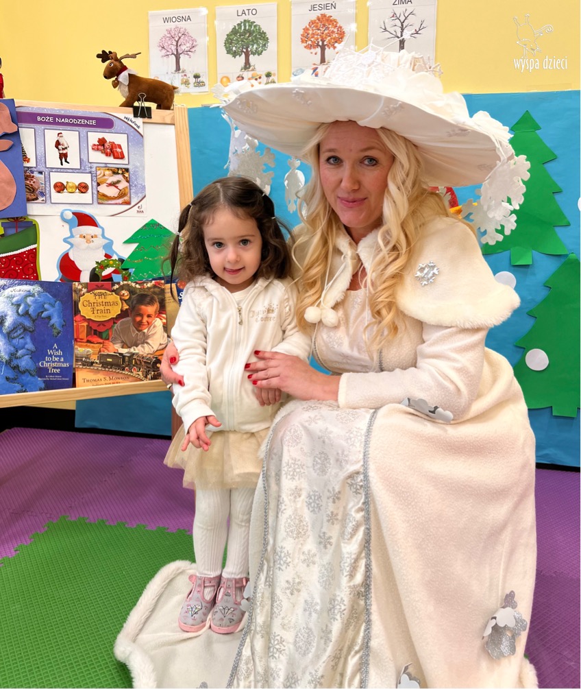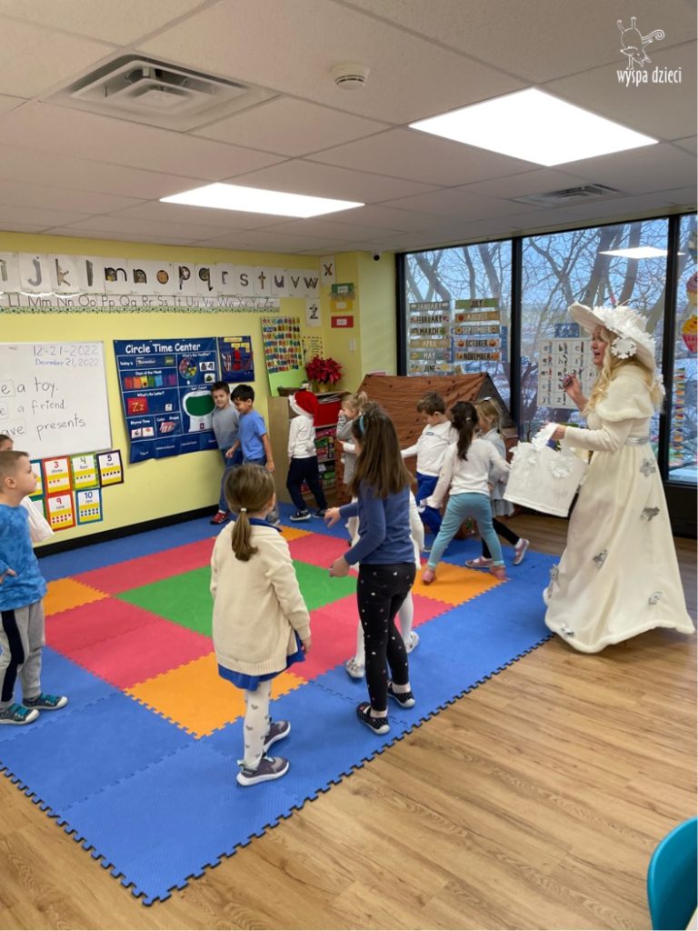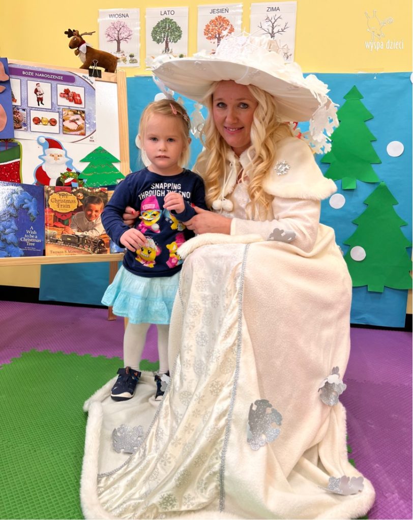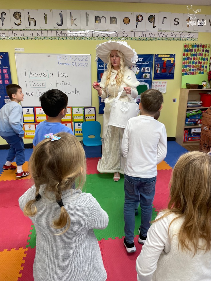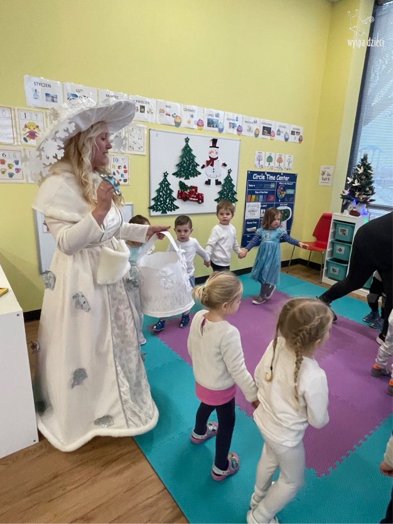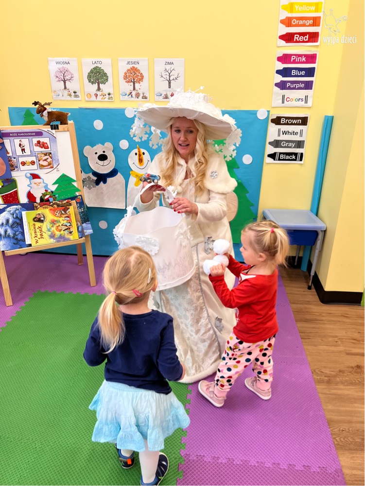 Dnia 21 grudnia 2022 roku, naszą Wyspę Dzieci w River Grove odwiedziła Pani Zima. Wizyta odbyła się pod hasłem: „My się zimy nie boimy i wesoło się bawimy”. Pani Zima odwiedziła każdą grupę. Wchodząc do naszych klas śpiewała piosenkę „Zima , zima, zima pada, pada śnieg”. Od najmłodszej grupy – Misie po najstarsze grupy kindergarten, wszyscy od razu przyłączyli się do wspólnego śpiewania tej piosenki. Pani Zima urządziła nam również zawody w rzucaniu śnieżkami. Ale było wesoło !!!!! Następnie omówiła z dziećmi zasady bezpiecznych zabaw, sposoby ubierania się i dbania o zdrowie, gdy na dworze jest zimno, a także jak ważne jest dokarmianie zwierząt. Przeczytała nam bardzo mądry tekst o dokarmianiu ptaszków i zachęciła nas do przygotowania dla nich karmników. Przygotowała dla naszych przedszkolaków zimowe rymowanki oraz zagadki. Wszyscy bardzo wesoło spędzili czas i obiecali, że wkrótce na naszym placu zabaw staną duże, piękne bałwany. Dziękujemy Pani Zimo za wspaniałą zabawę. Teraz czekamy tylko na Święta i śnieg 🙂 A podobno już jutro ma być go bardzo dużo !!!!