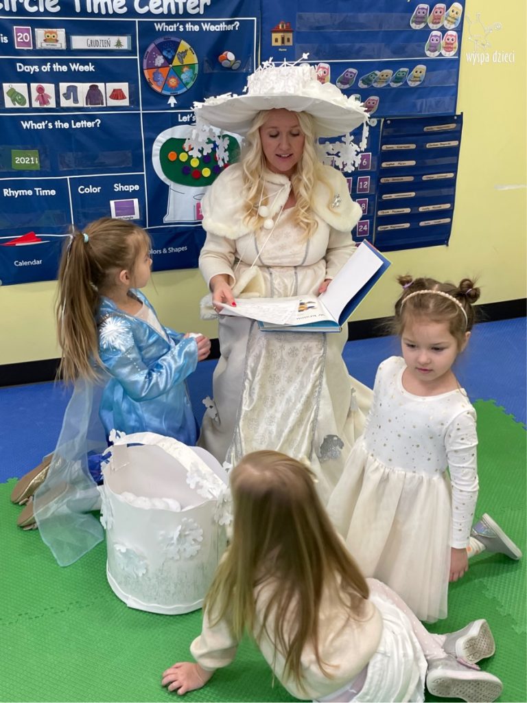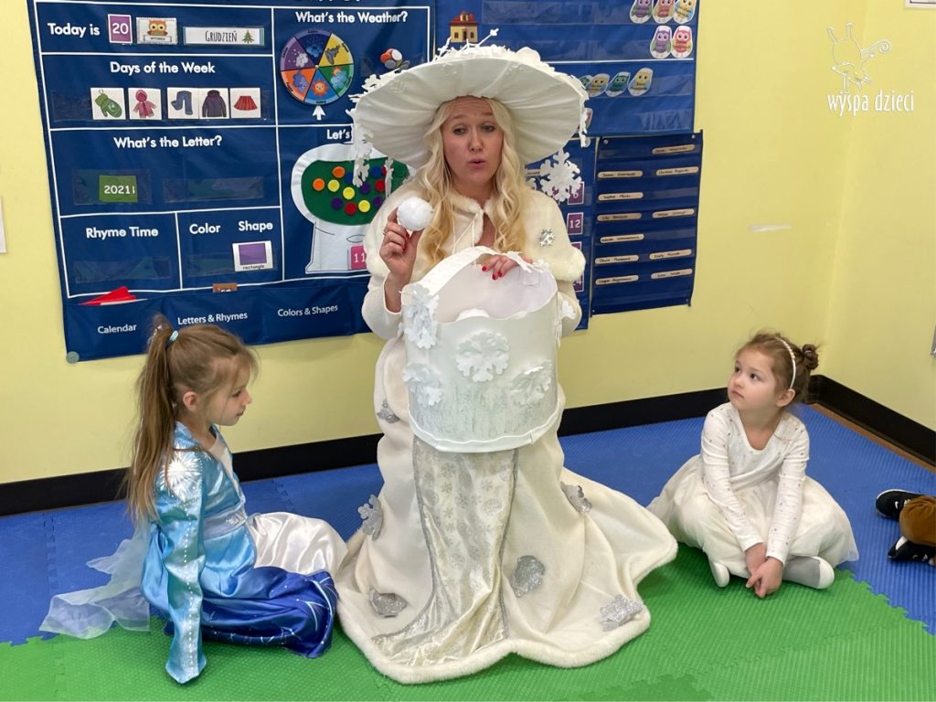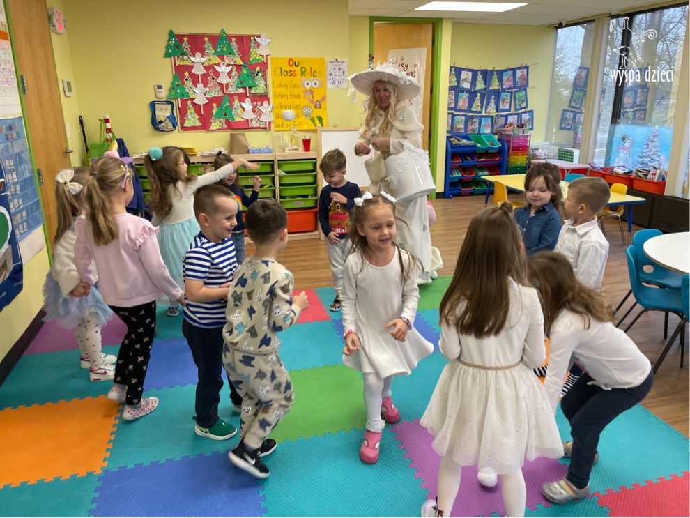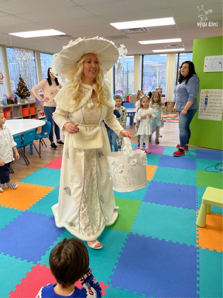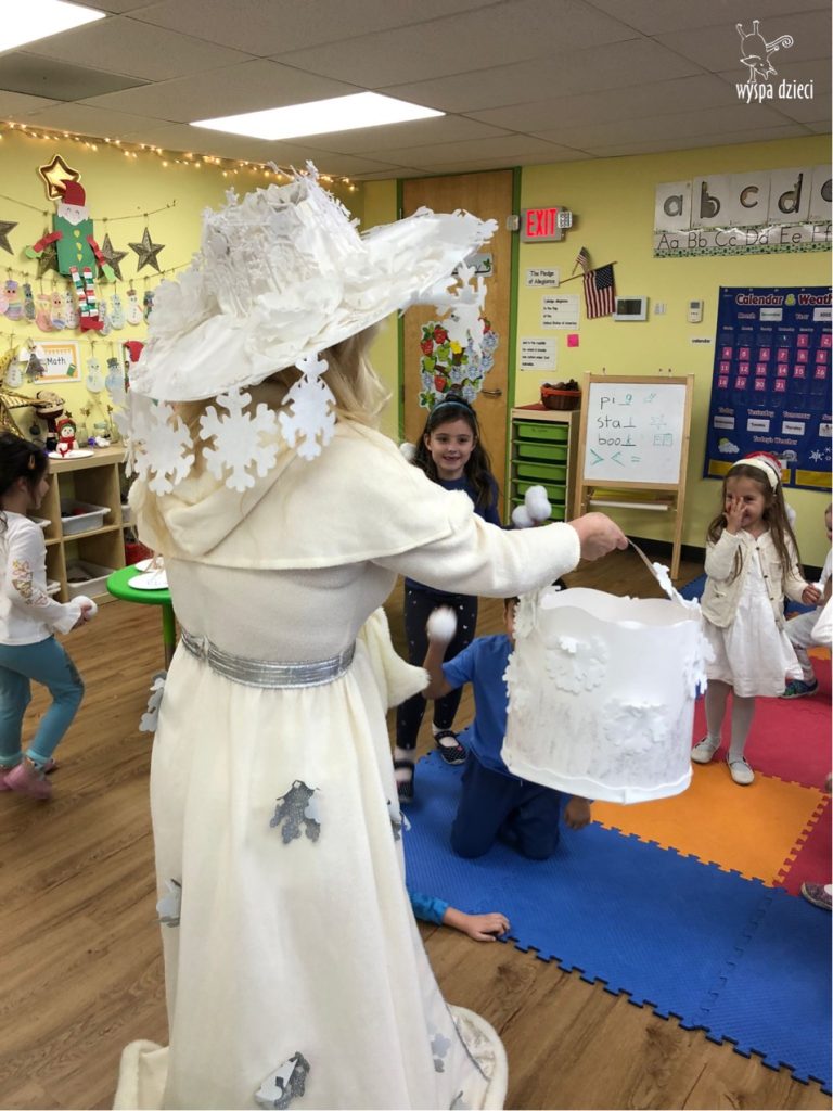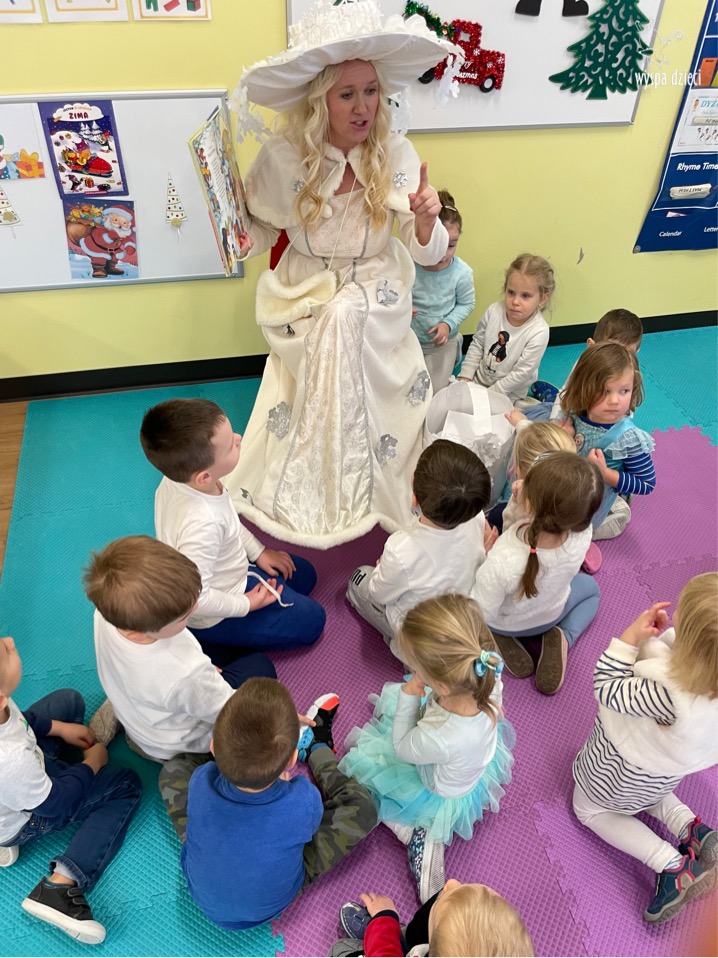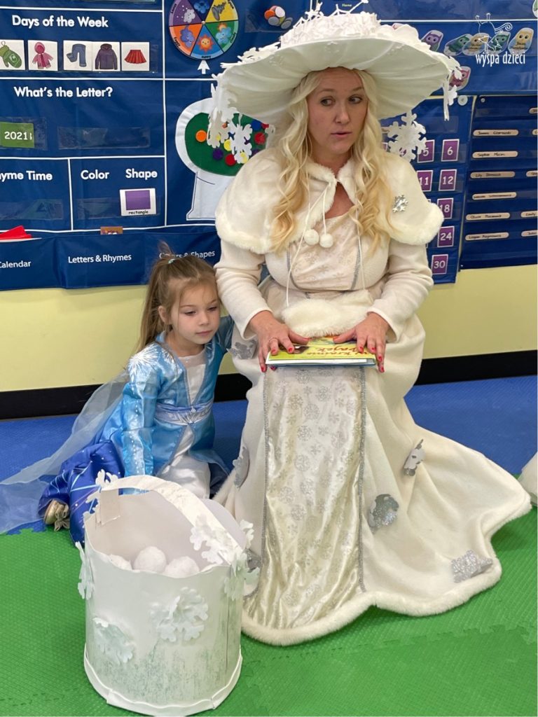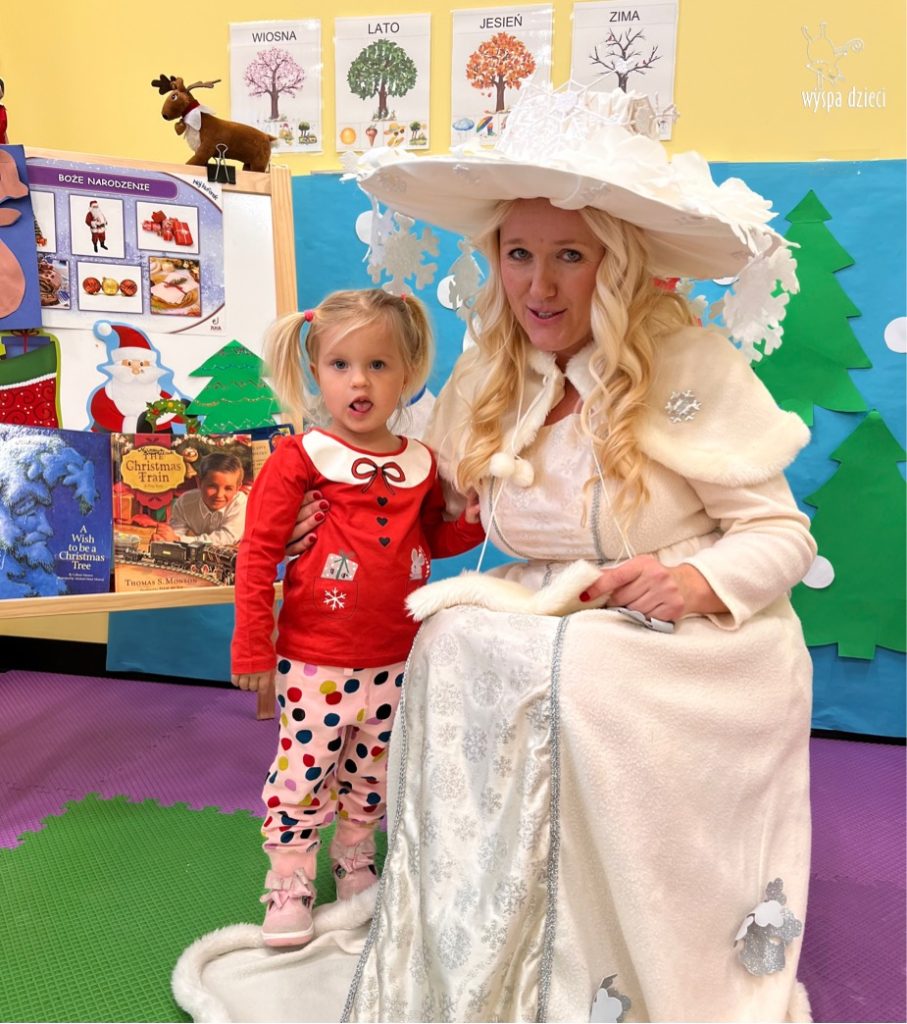 Dnia 21 grudnia 2022 roku, naszą Wyspę Dzieci w River Grove odwiedziła Pani Zima. Wizyta odbyła się pod hasłem: „My się zimy nie boimy i wesoło się bawimy”. Pani Zima odwiedziła każdą grupę. Wchodząc do naszych klas śpiewała piosenkę „Zima , zima, zima pada, pada śnieg”. Od najmłodszej grupy – Misie po najstarsze grupy kindergarten, wszyscy od razu przyłączyli się do wspólnego śpiewania tej piosenki. Pani Zima urządziła nam również zawody w rzucaniu śnieżkami. Ale było wesoło !!!!! Następnie omówiła z dziećmi zasady bezpiecznych zabaw, sposoby ubierania się i dbania o zdrowie, gdy na dworze jest zimno, a także jak ważne jest dokarmianie zwierząt. Przeczytała nam bardzo mądry tekst o dokarmianiu ptaszków i zachęciła nas do przygotowania dla nich karmników. Przygotowała dla naszych przedszkolaków zimowe rymowanki oraz zagadki. Wszyscy bardzo wesoło spędzili czas i obiecali, że wkrótce na naszym placu zabaw staną duże, piękne bałwany. Dziękujemy Pani Zimo za wspaniałą zabawę. Teraz czekamy tylko na Święta i śnieg 🙂 A podobno już jutro ma być go bardzo dużo !!!!