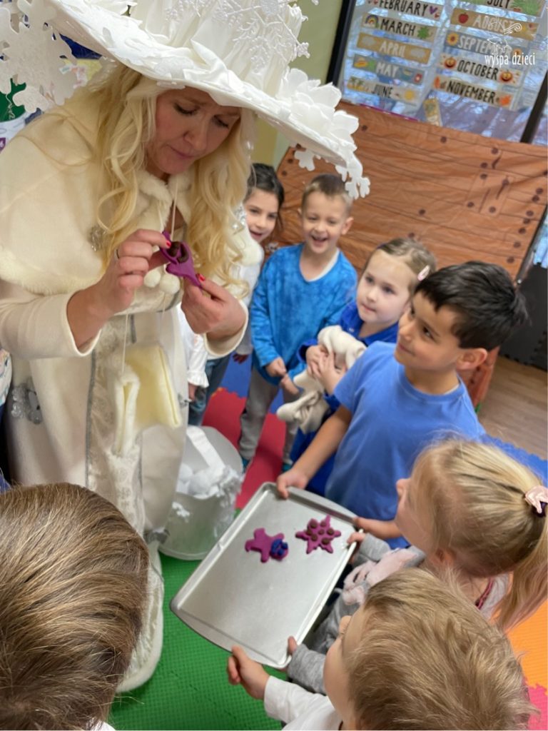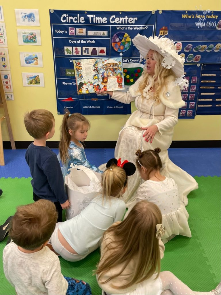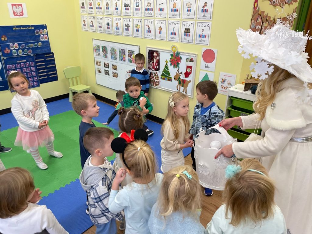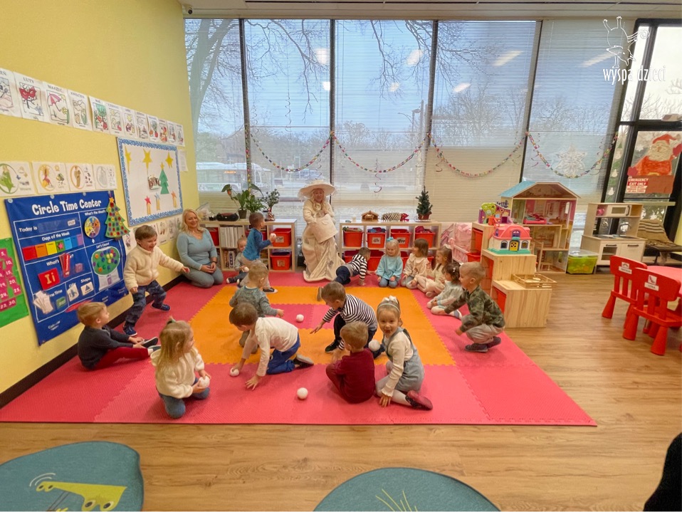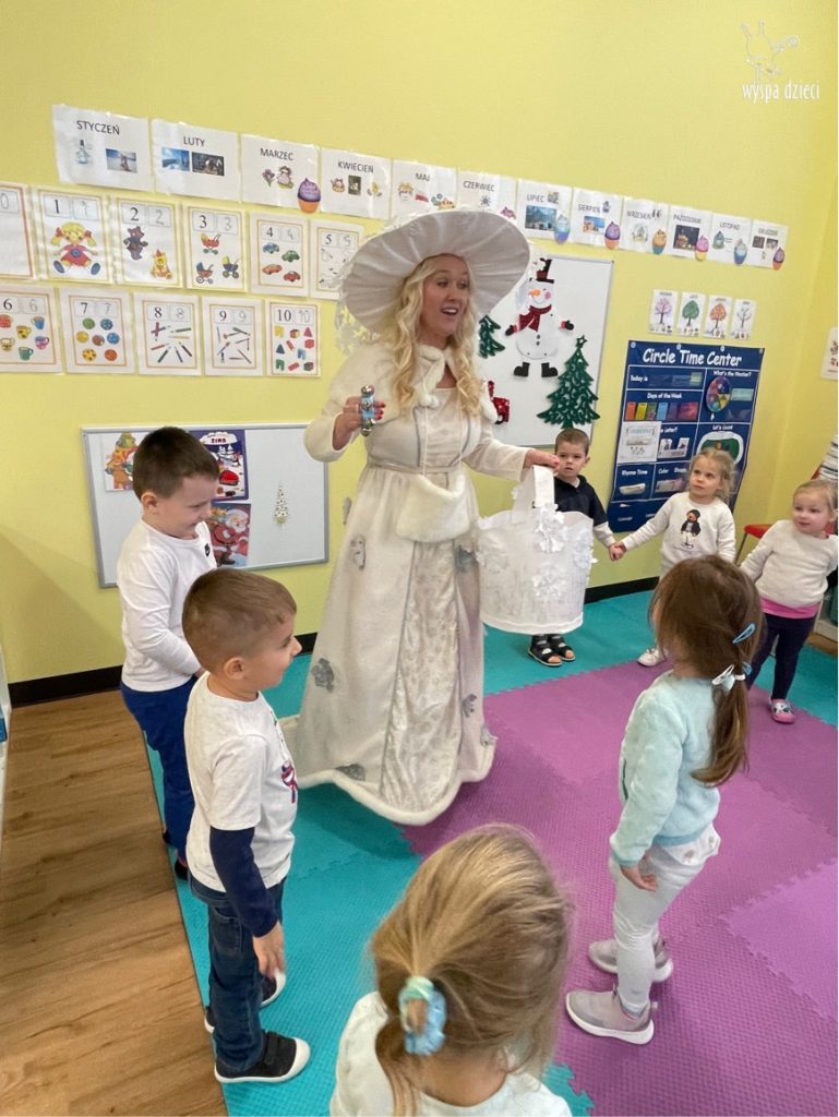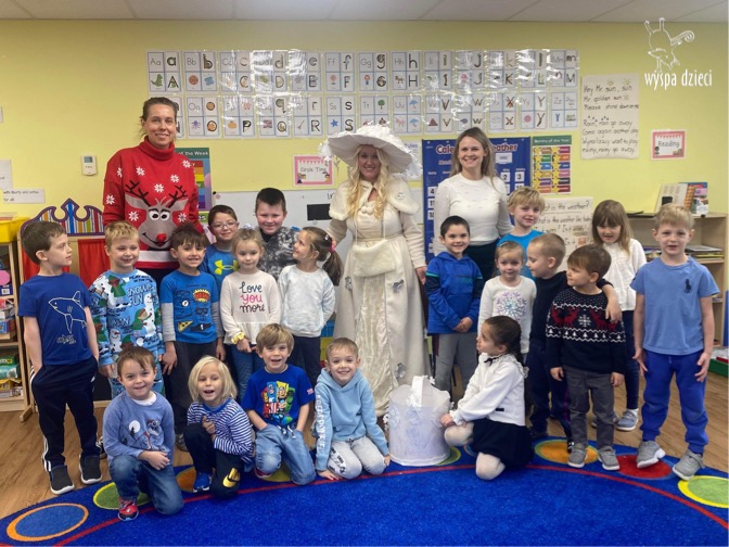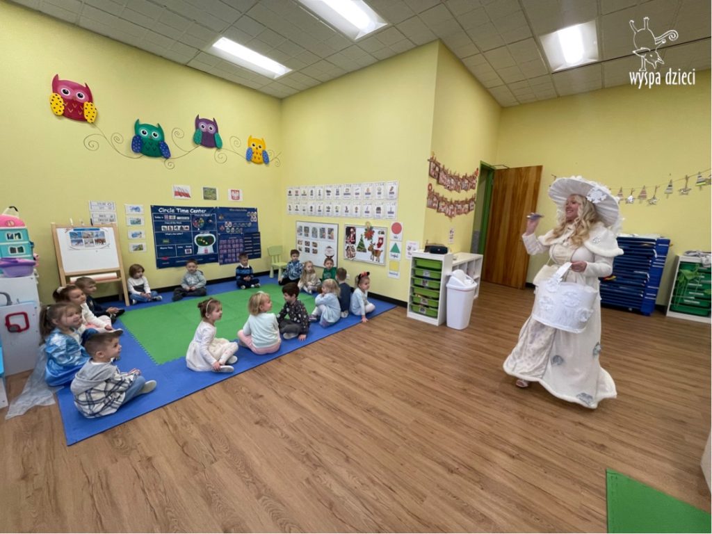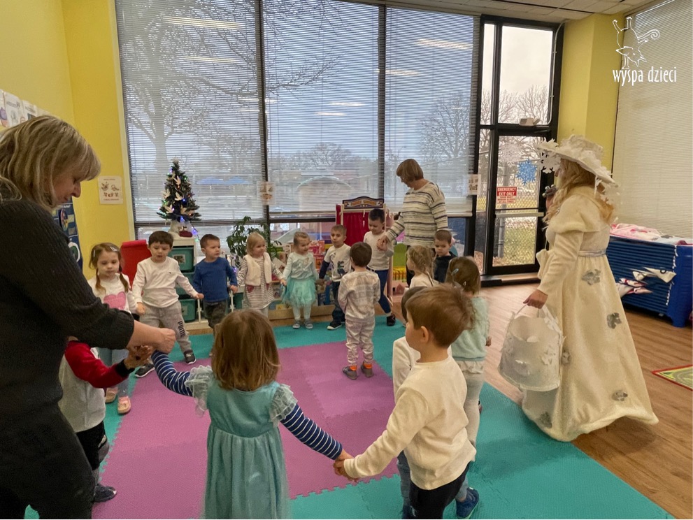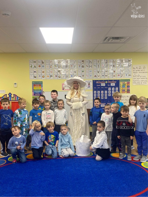 Dnia 21 grudnia 2022 roku, naszą Wyspę Dzieci w River Grove odwiedziła Pani Zima. Wizyta odbyła się pod hasłem: „My się zimy nie boimy i wesoło się bawimy”. Pani Zima odwiedziła każdą grupę. Wchodząc do naszych klas śpiewała piosenkę „Zima , zima, zima pada, pada śnieg”. Od najmłodszej grupy – Misie po najstarsze grupy kindergarten, wszyscy od razu przyłączyli się do wspólnego śpiewania tej piosenki. Pani Zima urządziła nam również zawody w rzucaniu śnieżkami. Ale było wesoło !!!!! Następnie omówiła z dziećmi zasady bezpiecznych zabaw, sposoby ubierania się i dbania o zdrowie, gdy na dworze jest zimno, a także jak ważne jest dokarmianie zwierząt. Przeczytała nam bardzo mądry tekst o dokarmianiu ptaszków i zachęciła nas do przygotowania dla nich karmników. Przygotowała dla naszych przedszkolaków zimowe rymowanki oraz zagadki. Wszyscy bardzo wesoło spędzili czas i obiecali, że wkrótce na naszym placu zabaw staną duże, piękne bałwany. Dziękujemy Pani Zimo za wspaniałą zabawę. Teraz czekamy tylko na Święta i śnieg 🙂 A podobno już jutro ma być go bardzo dużo !!!!