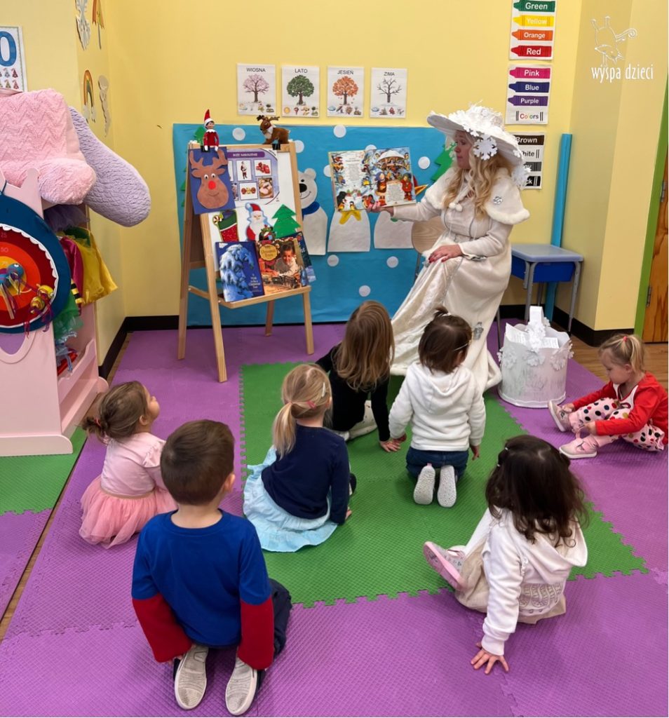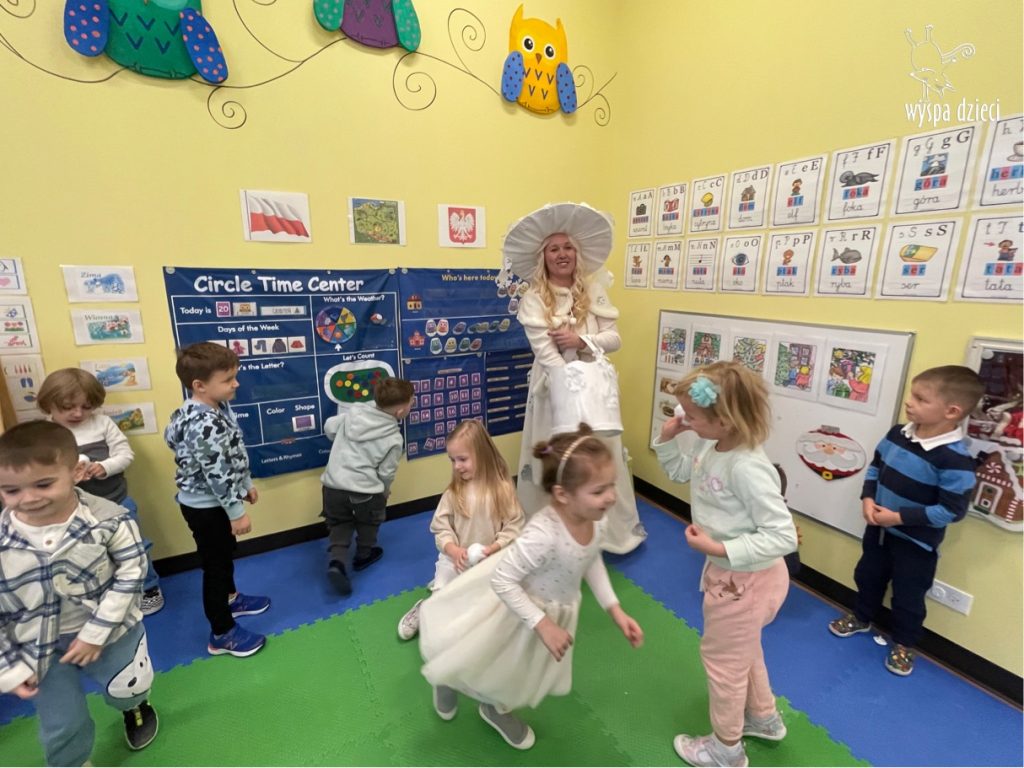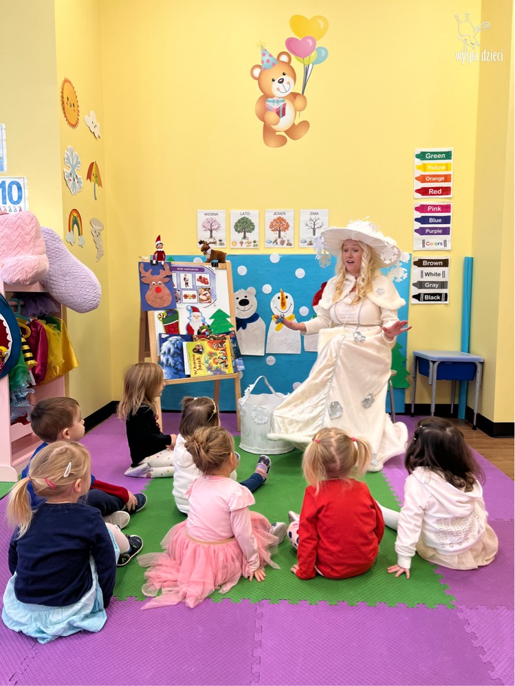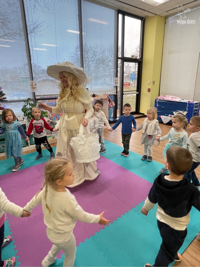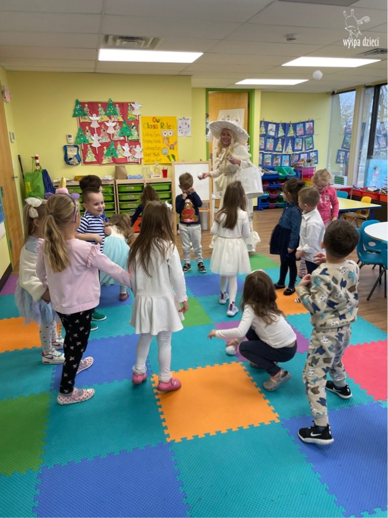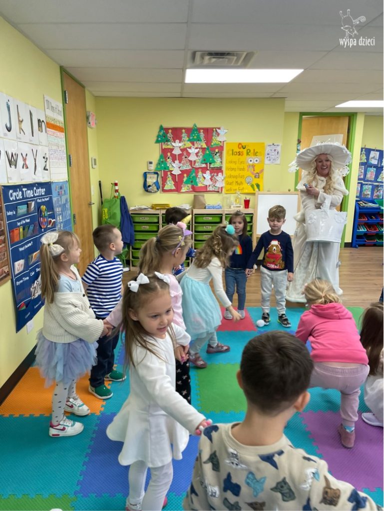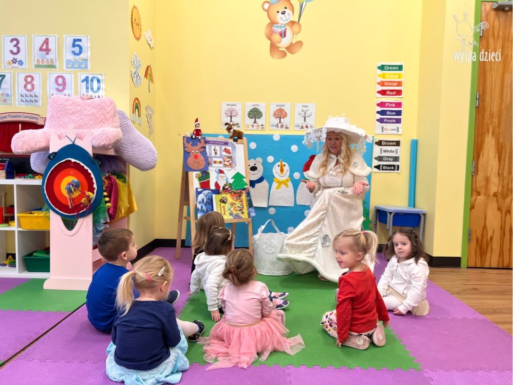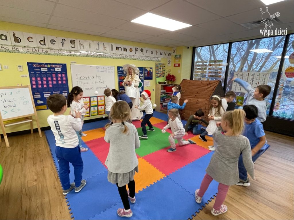 Dnia 21 grudnia 2022 roku, naszą Wyspę Dzieci w River Grove odwiedziła Pani Zima. Wizyta odbyła się pod hasłem: „My się zimy nie boimy i wesoło się bawimy”. Pani Zima odwiedziła każdą grupę. Wchodząc do naszych klas śpiewała piosenkę „Zima , zima, zima pada, pada śnieg”. Od najmłodszej grupy – Misie po najstarsze grupy kindergarten, wszyscy od razu przyłączyli się do wspólnego śpiewania tej piosenki. Pani Zima urządziła nam również zawody w rzucaniu śnieżkami. Ale było wesoło !!!!! Następnie omówiła z dziećmi zasady bezpiecznych zabaw, sposoby ubierania się i dbania o zdrowie, gdy na dworze jest zimno, a także jak ważne jest dokarmianie zwierząt. Przeczytała nam bardzo mądry tekst o dokarmianiu ptaszków i zachęciła nas do przygotowania dla nich karmników. Przygotowała dla naszych przedszkolaków zimowe rymowanki oraz zagadki. Wszyscy bardzo wesoło spędzili czas i obiecali, że wkrótce na naszym placu zabaw staną duże, piękne bałwany. Dziękujemy Pani Zimo za wspaniałą zabawę. Teraz czekamy tylko na Święta i śnieg 🙂 A podobno już jutro ma być go bardzo dużo !!!!