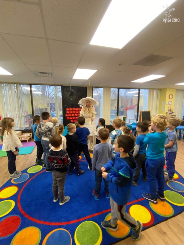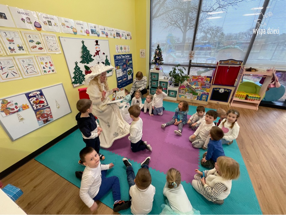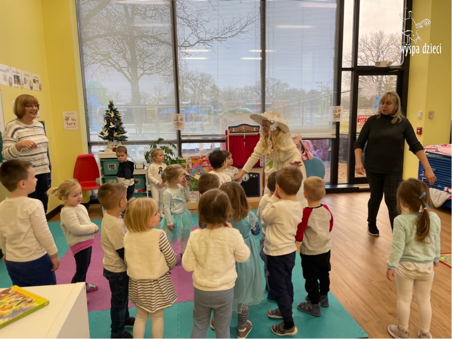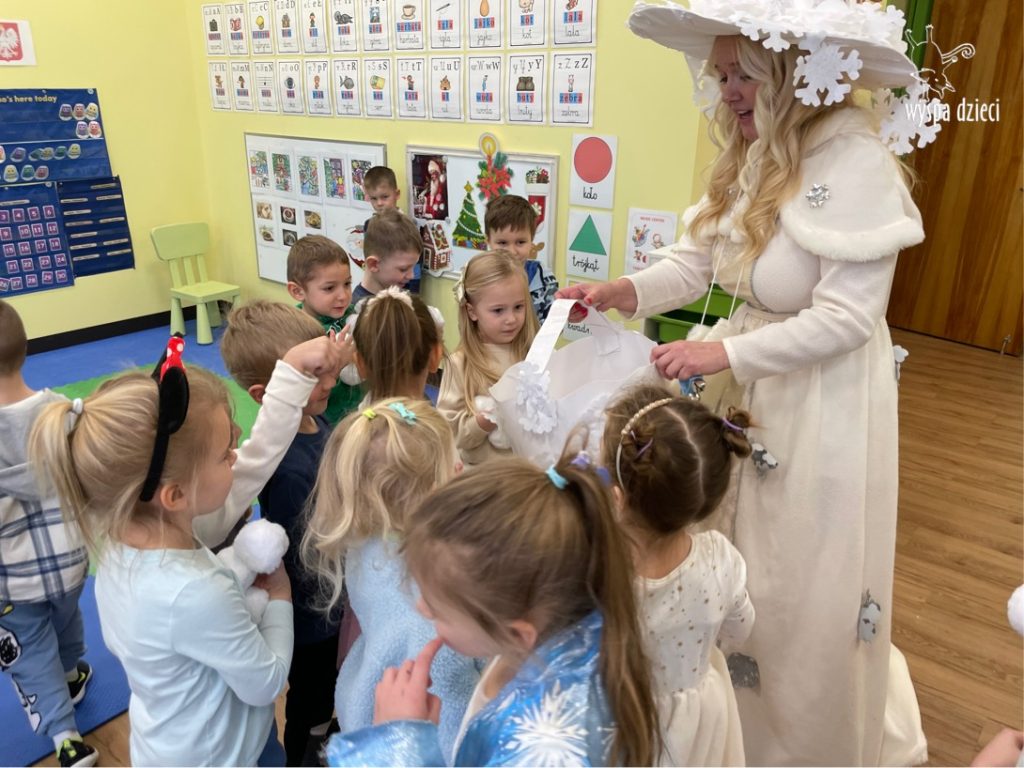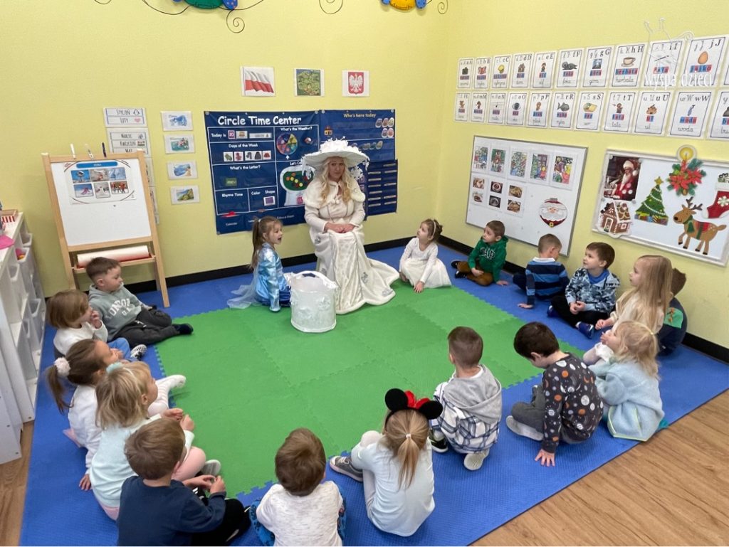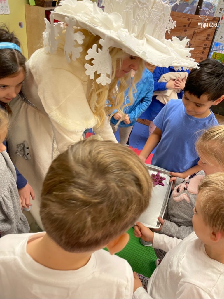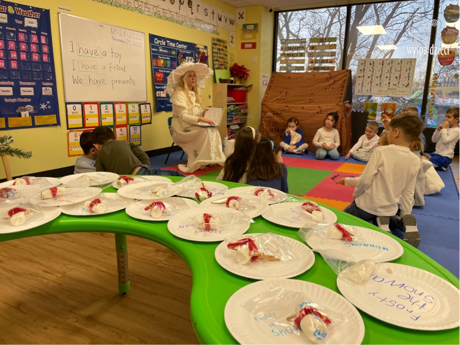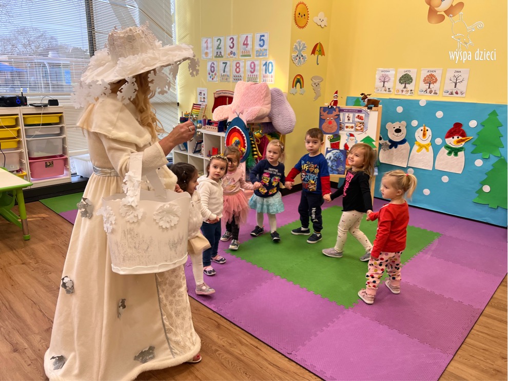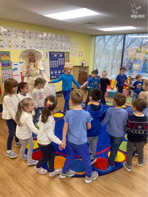 Dnia 21 grudnia 2022 roku, naszą Wyspę Dzieci w River Grove odwiedziła Pani Zima. Wizyta odbyła się pod hasłem: „My się zimy nie boimy i wesoło się bawimy”. Pani Zima odwiedziła każdą grupę. Wchodząc do naszych klas śpiewała piosenkę „Zima , zima, zima pada, pada śnieg”. Od najmłodszej grupy – Misie po najstarsze grupy kindergarten, wszyscy od razu przyłączyli się do wspólnego śpiewania tej piosenki. Pani Zima urządziła nam również zawody w rzucaniu śnieżkami. Ale było wesoło !!!!! Następnie omówiła z dziećmi zasady bezpiecznych zabaw, sposoby ubierania się i dbania o zdrowie, gdy na dworze jest zimno, a także jak ważne jest dokarmianie zwierząt. Przeczytała nam bardzo mądry tekst o dokarmianiu ptaszków i zachęciła nas do przygotowania dla nich karmników. Przygotowała dla naszych przedszkolaków zimowe rymowanki oraz zagadki. Wszyscy bardzo wesoło spędzili czas i obiecali, że wkrótce na naszym placu zabaw staną duże, piękne bałwany. Dziękujemy Pani Zimo za wspaniałą zabawę. Teraz czekamy tylko na Święta i śnieg 🙂 A podobno już jutro ma być go bardzo dużo !!!!