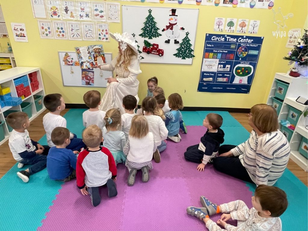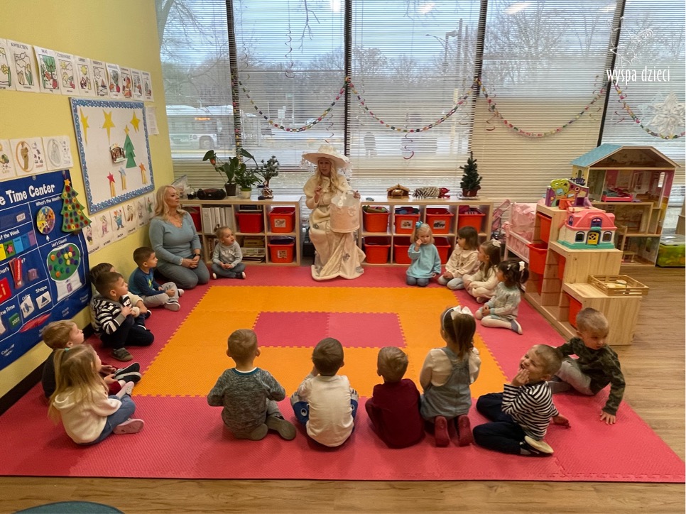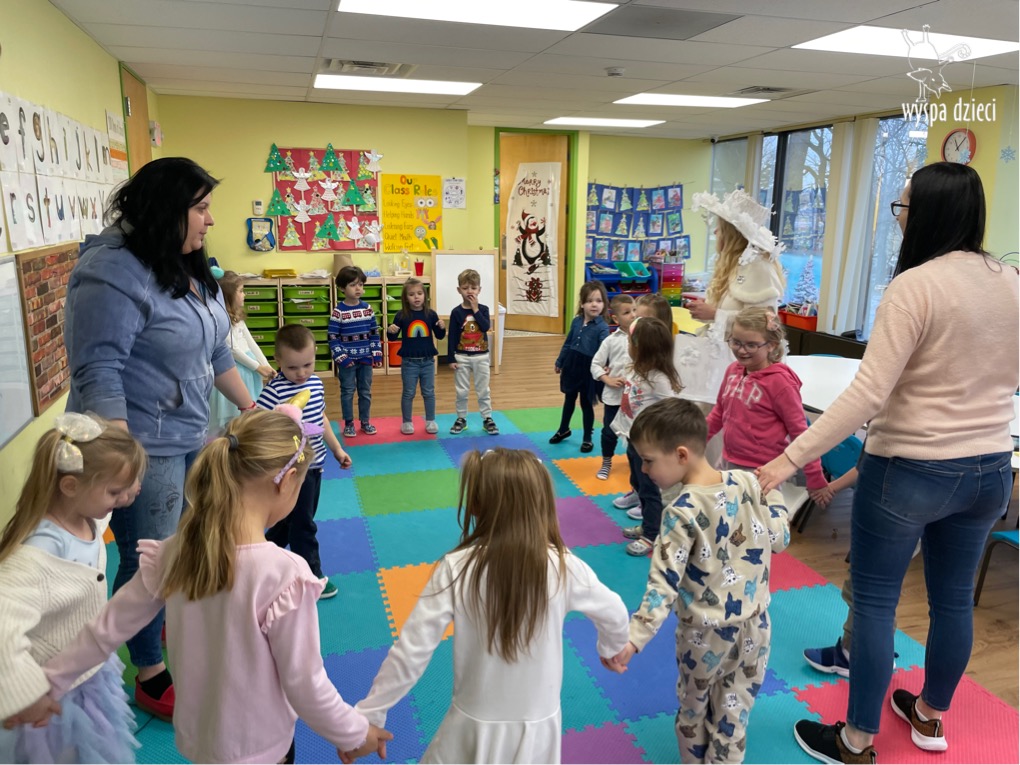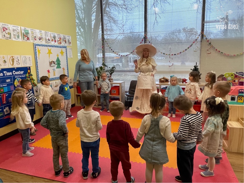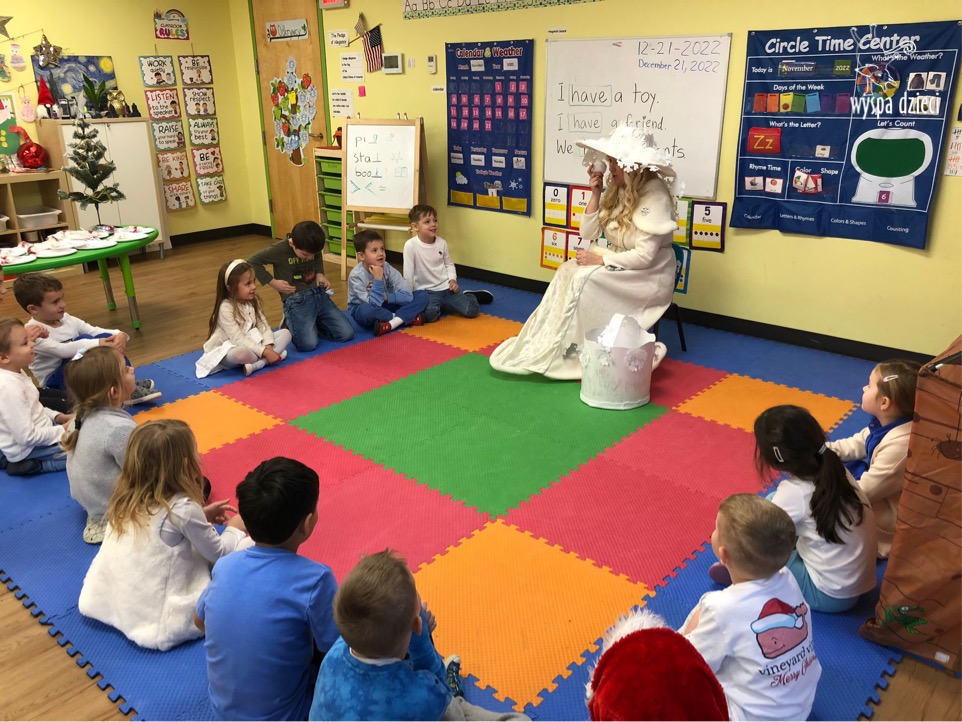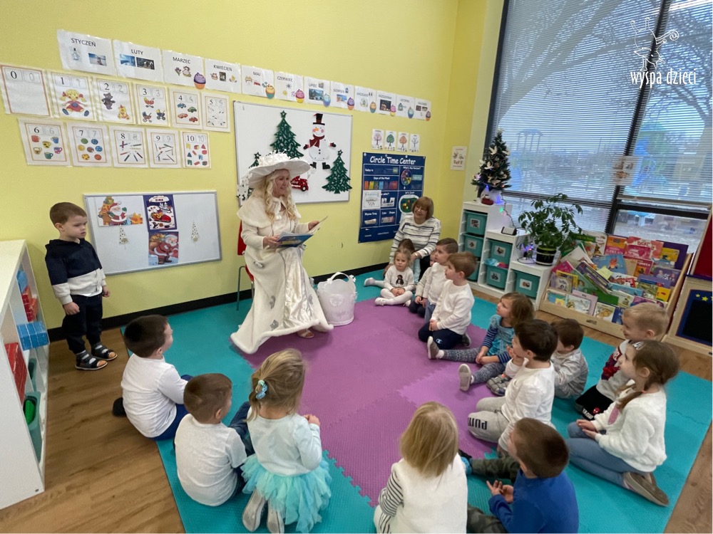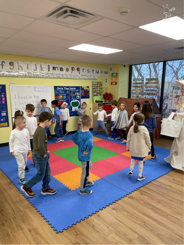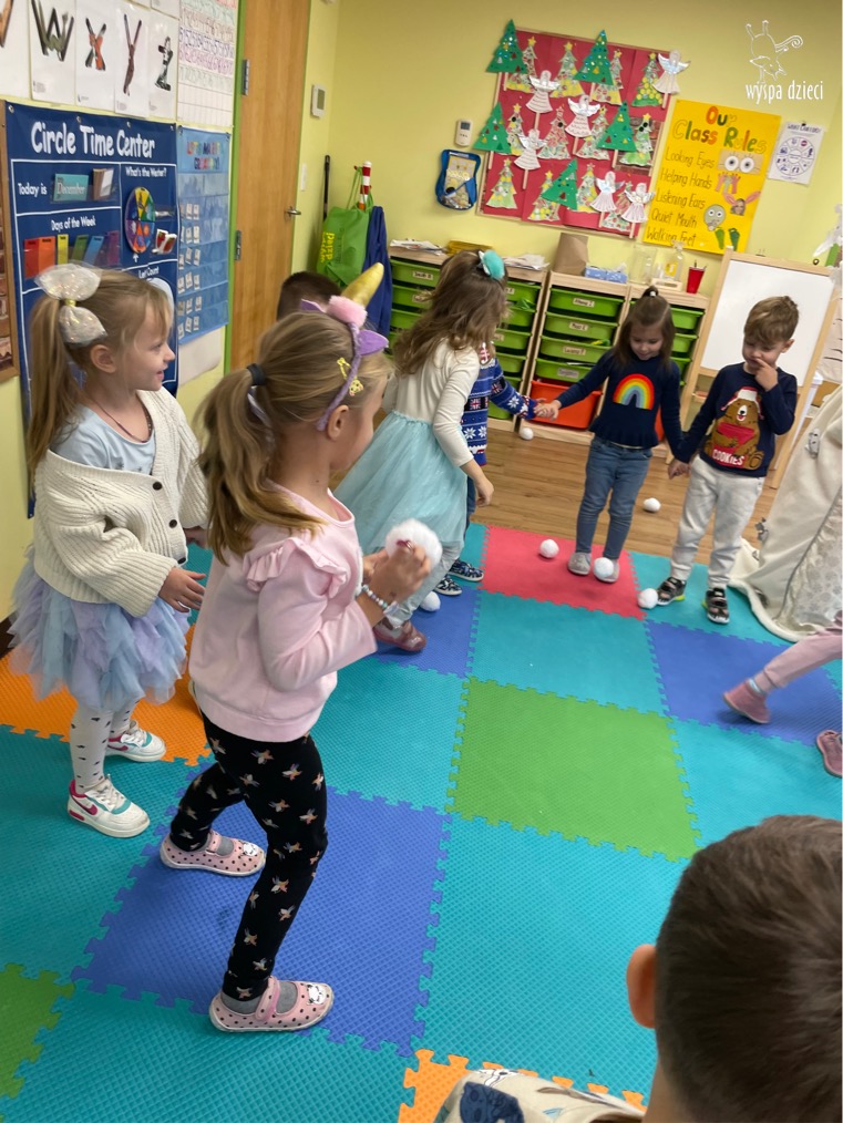Dnia 21 grudnia 2022 roku, naszą Wyspę Dzieci w River Grove odwiedziła Pani Zima. Wizyta odbyła się pod hasłem: „My się zimy nie boimy i wesoło się bawimy”. Pani Zima odwiedziła każdą grupę. Wchodząc do naszych klas śpiewała piosenkę „Zima , zima, zima pada, pada śnieg”. Od najmłodszej grupy – Misie po najstarsze grupy kindergarten, wszyscy od razu przyłączyli się do wspólnego śpiewania tej piosenki. Pani Zima urządziła nam również zawody w rzucaniu śnieżkami. Ale było wesoło !!!!! Następnie omówiła z dziećmi zasady bezpiecznych zabaw, sposoby ubierania się i dbania o zdrowie, gdy na dworze jest zimno, a także jak ważne jest dokarmianie zwierząt. Przeczytała nam bardzo mądry tekst o dokarmianiu ptaszków i zachęciła nas do przygotowania dla nich karmników. Przygotowała dla naszych przedszkolaków zimowe rymowanki oraz zagadki. Wszyscy bardzo wesoło spędzili czas i obiecali, że wkrótce na naszym placu zabaw staną duże, piękne bałwany. Dziękujemy Pani Zimo za wspaniałą zabawę. Teraz czekamy tylko na Święta i śnieg 🙂 A podobno już jutro ma być go bardzo dużo !!!!