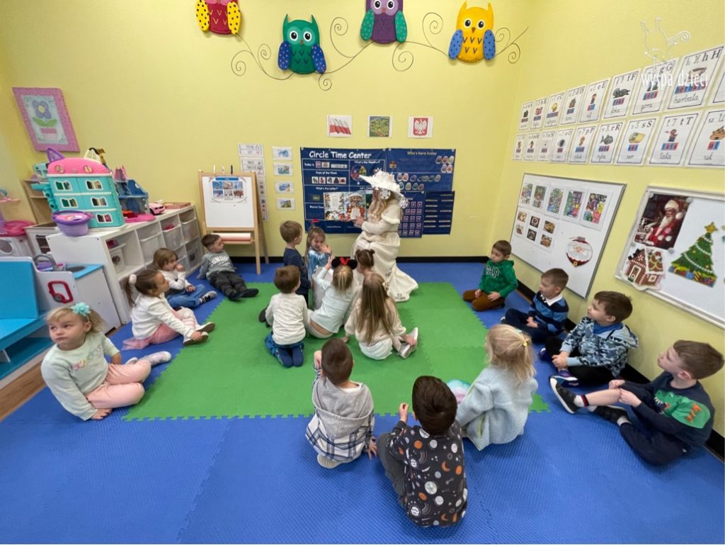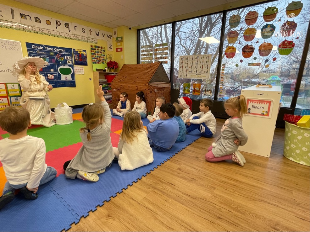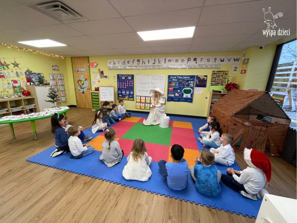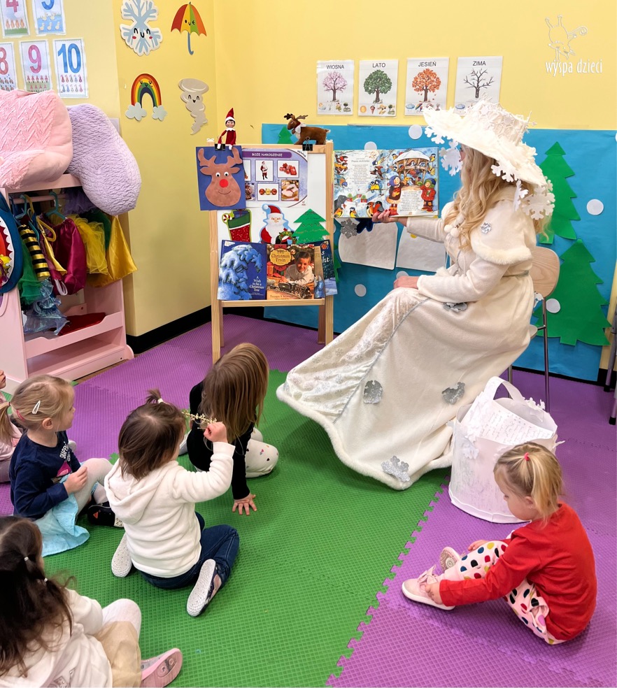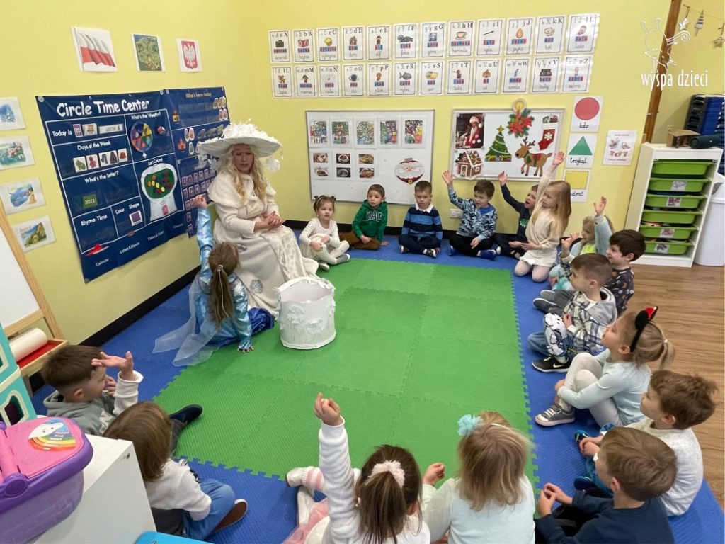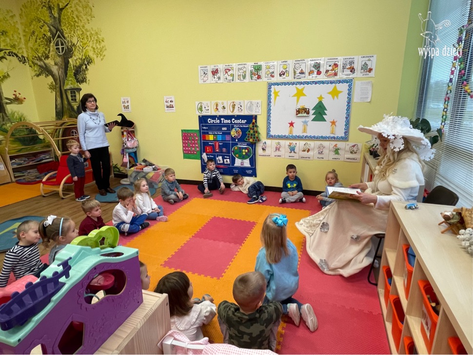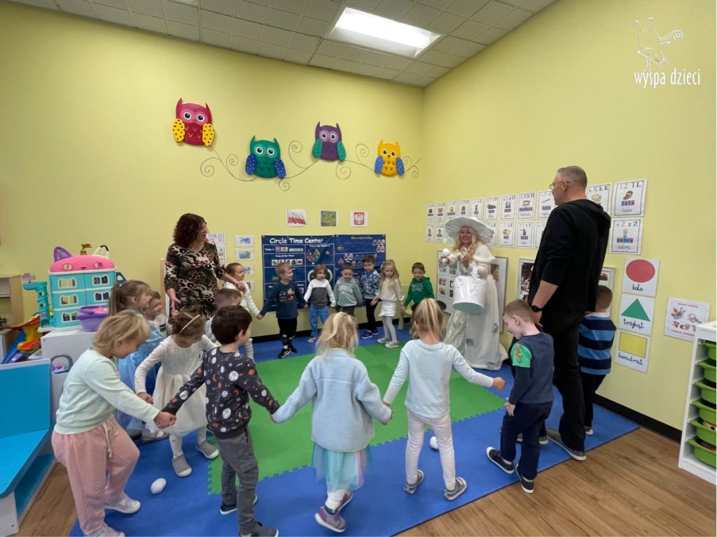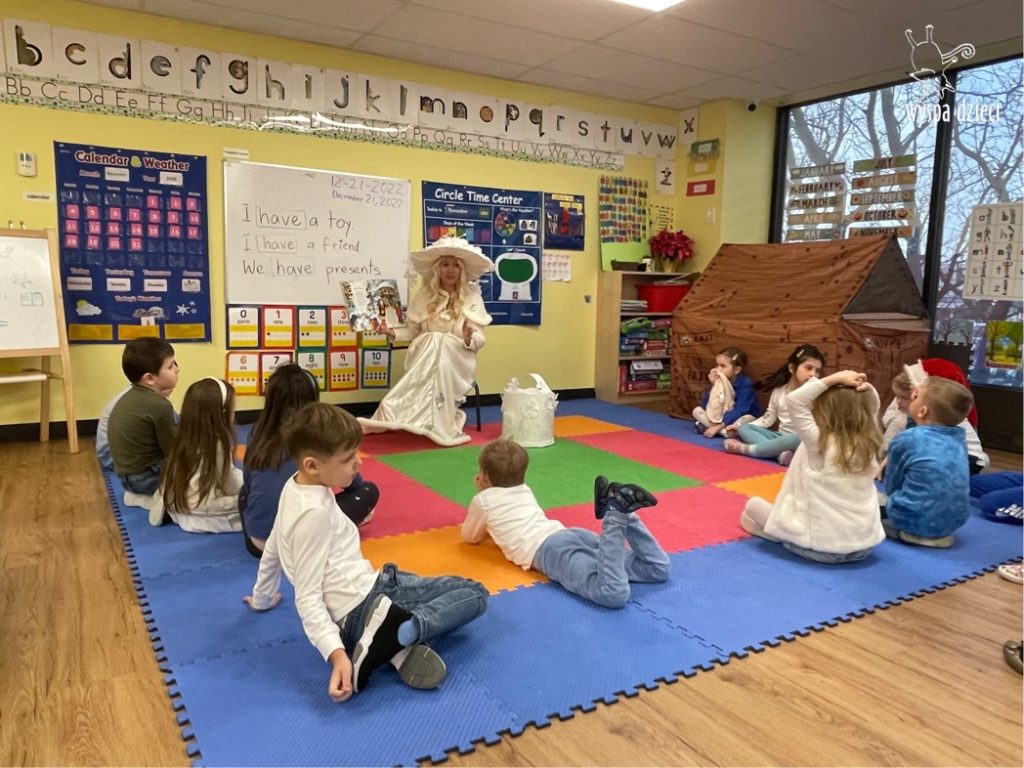 Dnia 21 grudnia 2022 roku, naszą Wyspę Dzieci w River Grove odwiedziła Pani Zima. Wizyta odbyła się pod hasłem: „My się zimy nie boimy i wesoło się bawimy”. Pani Zima odwiedziła każdą grupę. Wchodząc do naszych klas śpiewała piosenkę „Zima , zima, zima pada, pada śnieg”. Od najmłodszej grupy – Misie po najstarsze grupy kindergarten, wszyscy od razu przyłączyli się do wspólnego śpiewania tej piosenki. Pani Zima urządziła nam również zawody w rzucaniu śnieżkami. Ale było wesoło !!!!! Następnie omówiła z dziećmi zasady bezpiecznych zabaw, sposoby ubierania się i dbania o zdrowie, gdy na dworze jest zimno, a także jak ważne jest dokarmianie zwierząt. Przeczytała nam bardzo mądry tekst o dokarmianiu ptaszków i zachęciła nas do przygotowania dla nich karmników. Przygotowała dla naszych przedszkolaków zimowe rymowanki oraz zagadki. Wszyscy bardzo wesoło spędzili czas i obiecali, że wkrótce na naszym placu zabaw staną duże, piękne bałwany. Dziękujemy Pani Zimo za wspaniałą zabawę. Teraz czekamy tylko na Święta i śnieg 🙂 A podobno już jutro ma być go bardzo dużo !!!!