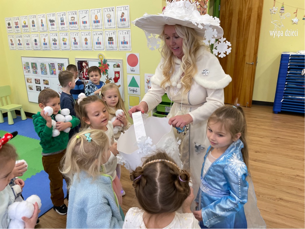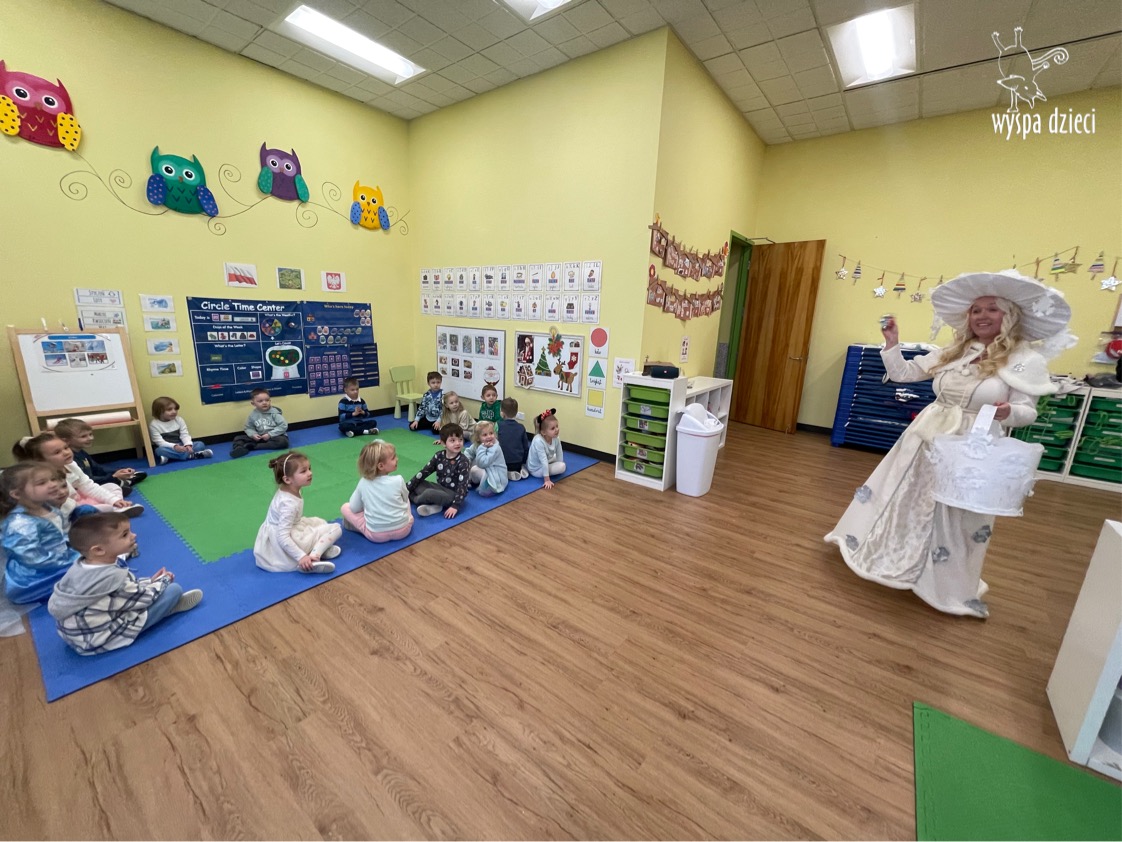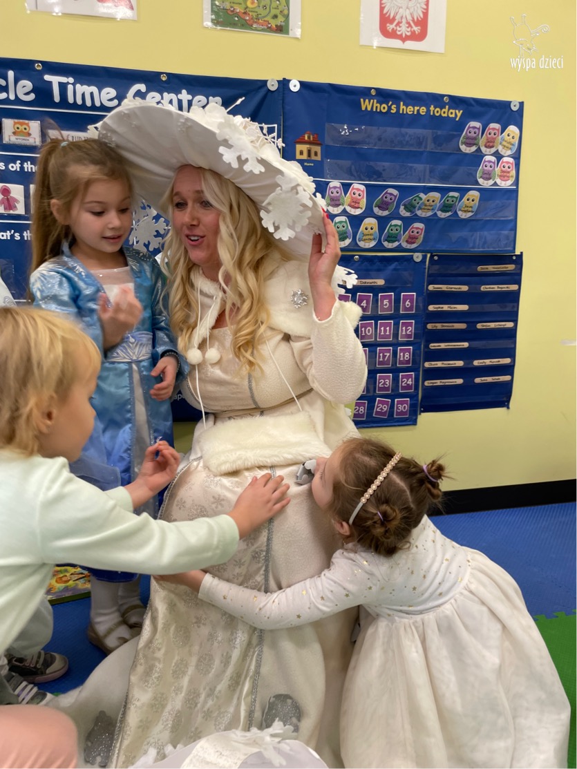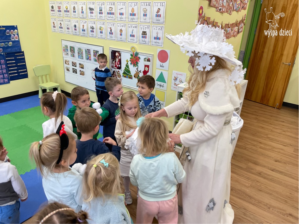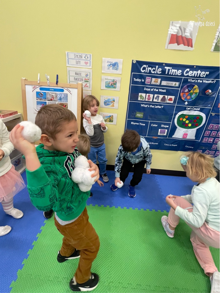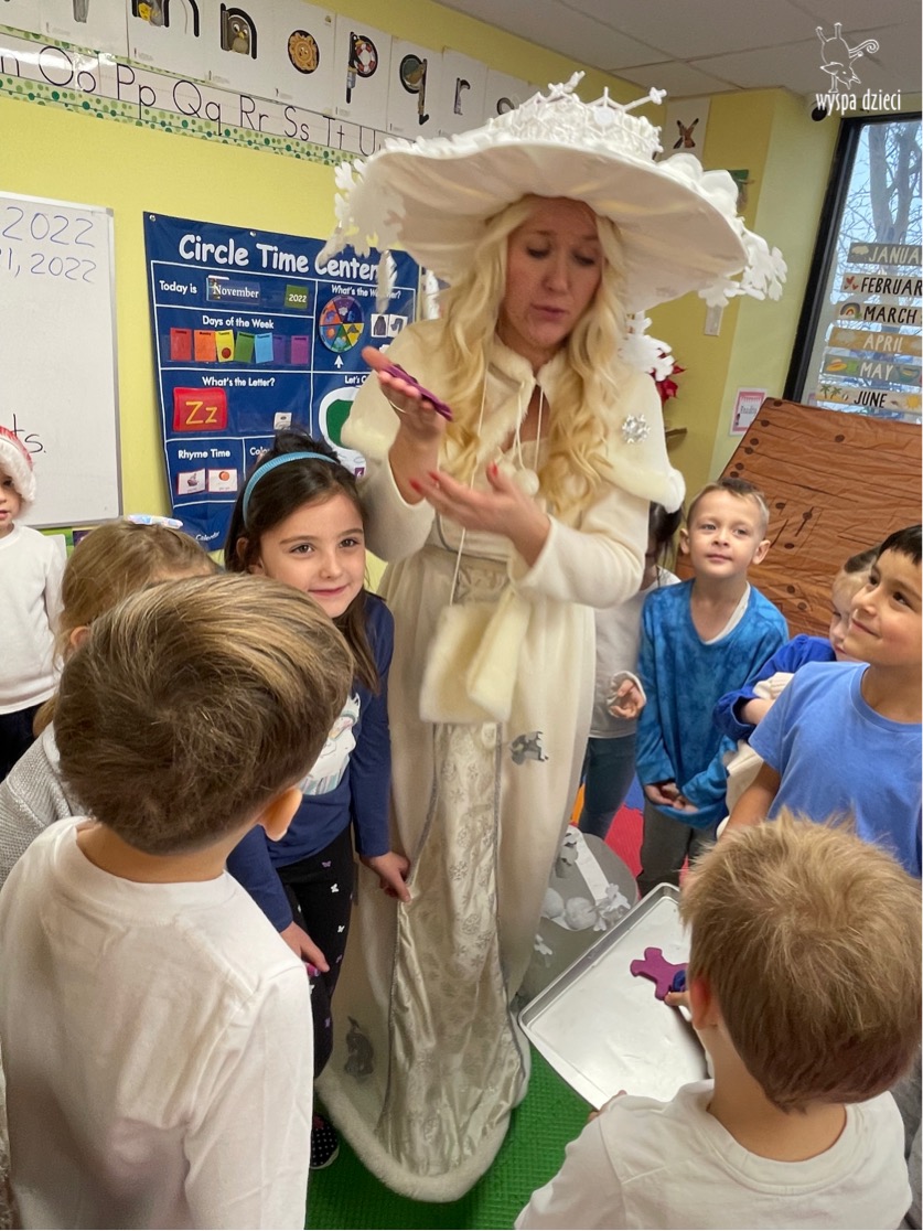 Dnia 21 grudnia 2022 roku, naszą Wyspę Dzieci w River Grove odwiedziła Pani Zima. Wizyta odbyła się pod hasłem: „My się zimy nie boimy i wesoło się bawimy”. Pani Zima odwiedziła każdą grupę. Wchodząc do naszych klas śpiewała piosenkę „Zima , zima, zima pada, pada śnieg”. Od najmłodszej grupy – Misie po najstarsze grupy kindergarten, wszyscy od razu przyłączyli się do wspólnego śpiewania tej piosenki. Pani Zima urządziła nam również zawody w rzucaniu śnieżkami. Ale było wesoło !!!!! Następnie omówiła z dziećmi zasady bezpiecznych zabaw, sposoby ubierania się i dbania o zdrowie, gdy na dworze jest zimno, a także jak ważne jest dokarmianie zwierząt. Przeczytała nam bardzo mądry tekst o dokarmianiu ptaszków i zachęciła nas do przygotowania dla nich karmników. Przygotowała dla naszych przedszkolaków zimowe rymowanki oraz zagadki. Wszyscy bardzo wesoło spędzili czas i obiecali, że wkrótce na naszym placu zabaw staną duże, piękne bałwany. Dziękujemy Pani Zimo za wspaniałą zabawę. Teraz czekamy tylko na Święta i śnieg 🙂 A podobno już jutro ma być go bardzo dużo !!!!