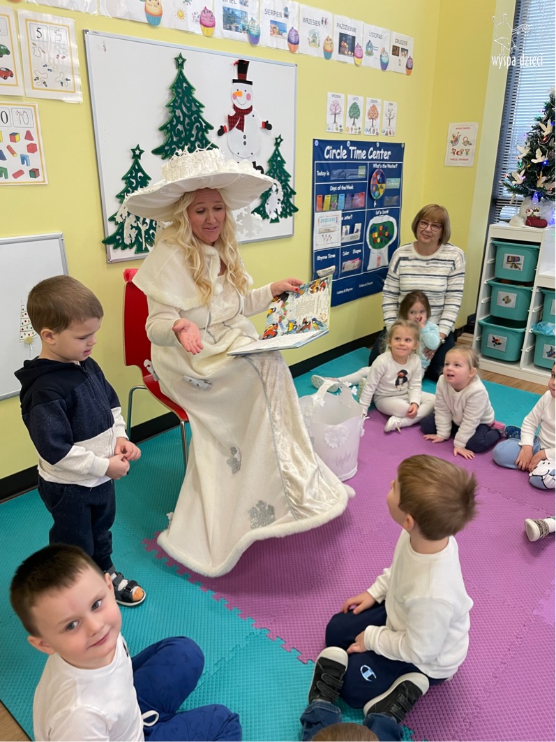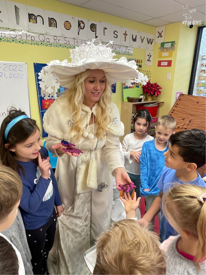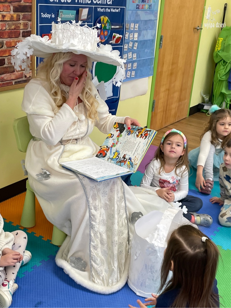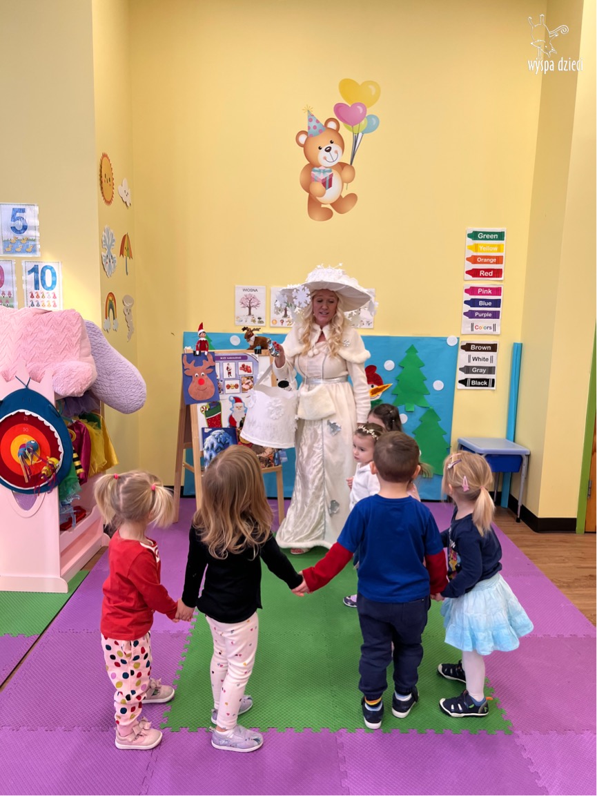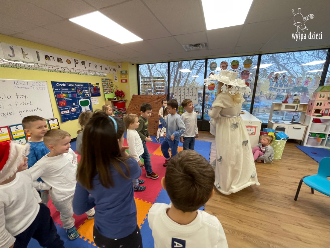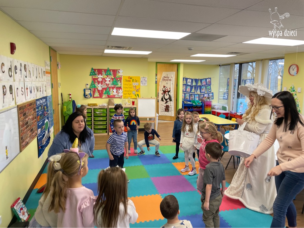 Dnia 21 grudnia 2022 roku, naszą Wyspę Dzieci w River Grove odwiedziła Pani Zima. Wizyta odbyła się pod hasłem: „My się zimy nie boimy i wesoło się bawimy”. Pani Zima odwiedziła każdą grupę. Wchodząc do naszych klas śpiewała piosenkę „Zima , zima, zima pada, pada śnieg”. Od najmłodszej grupy – Misie po najstarsze grupy kindergarten, wszyscy od razu przyłączyli się do wspólnego śpiewania tej piosenki. Pani Zima urządziła nam również zawody w rzucaniu śnieżkami. Ale było wesoło !!!!! Następnie omówiła z dziećmi zasady bezpiecznych zabaw, sposoby ubierania się i dbania o zdrowie, gdy na dworze jest zimno, a także jak ważne jest dokarmianie zwierząt. Przeczytała nam bardzo mądry tekst o dokarmianiu ptaszków i zachęciła nas do przygotowania dla nich karmników. Przygotowała dla naszych przedszkolaków zimowe rymowanki oraz zagadki. Wszyscy bardzo wesoło spędzili czas i obiecali, że wkrótce na naszym placu zabaw staną duże, piękne bałwany. Dziękujemy Pani Zimo za wspaniałą zabawę. Teraz czekamy tylko na Święta i śnieg 🙂 A podobno już jutro ma być go bardzo dużo !!!!