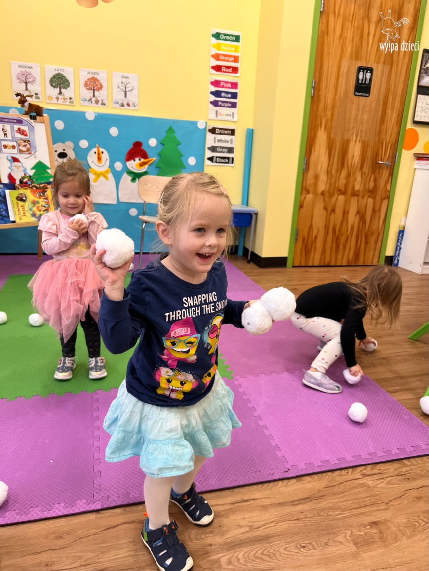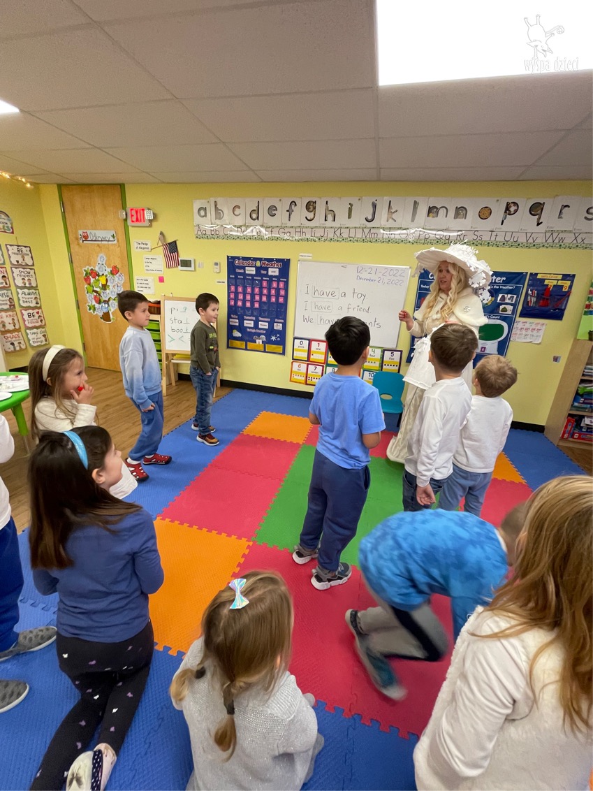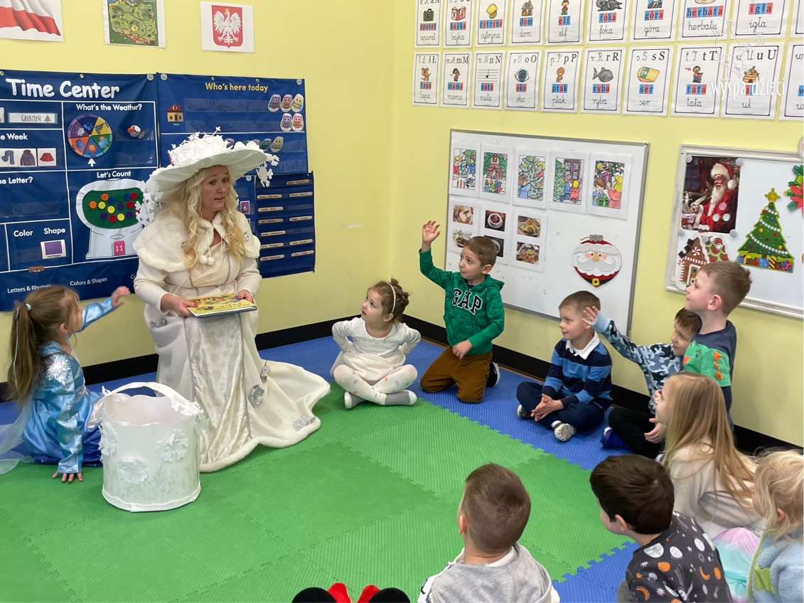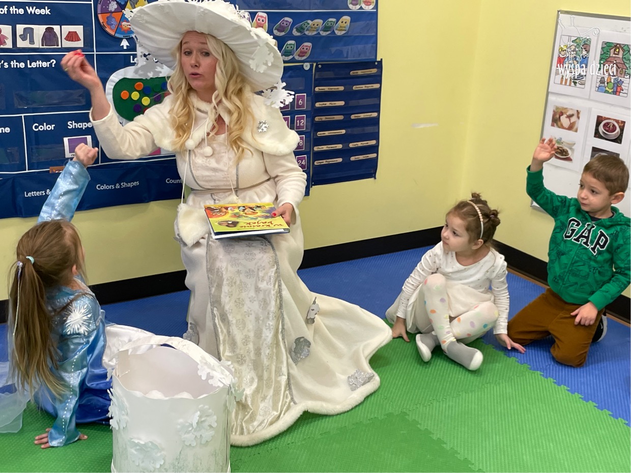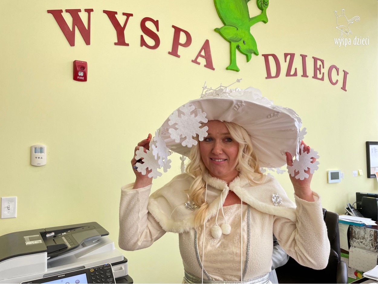 Dnia 21 grudnia 2022 roku, naszą Wyspę Dzieci w River Grove odwiedziła Pani Zima. Wizyta odbyła się pod hasłem: „My się zimy nie boimy i wesoło się bawimy”. Pani Zima odwiedziła każdą grupę. Wchodząc do naszych klas śpiewała piosenkę „Zima , zima, zima pada, pada śnieg”. Od najmłodszej grupy – Misie po najstarsze grupy kindergarten, wszyscy od razu przyłączyli się do wspólnego śpiewania tej piosenki. Pani Zima urządziła nam również zawody w rzucaniu śnieżkami. Ale było wesoło !!!!! Następnie omówiła z dziećmi zasady bezpiecznych zabaw, sposoby ubierania się i dbania o zdrowie, gdy na dworze jest zimno, a także jak ważne jest dokarmianie zwierząt. Przeczytała nam bardzo mądry tekst o dokarmianiu ptaszków i zachęciła nas do przygotowania dla nich karmników. Przygotowała dla naszych przedszkolaków zimowe rymowanki oraz zagadki. Wszyscy bardzo wesoło spędzili czas i obiecali, że wkrótce na naszym placu zabaw staną duże, piękne bałwany. Dziękujemy Pani Zimo za wspaniałą zabawę. Teraz czekamy tylko na Święta i śnieg 🙂 A podobno już jutro ma być go bardzo dużo !!!!