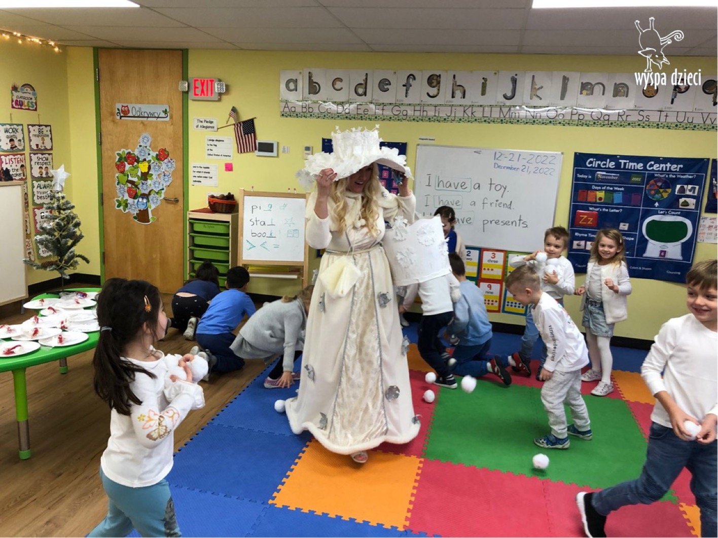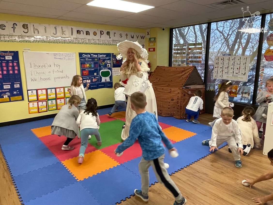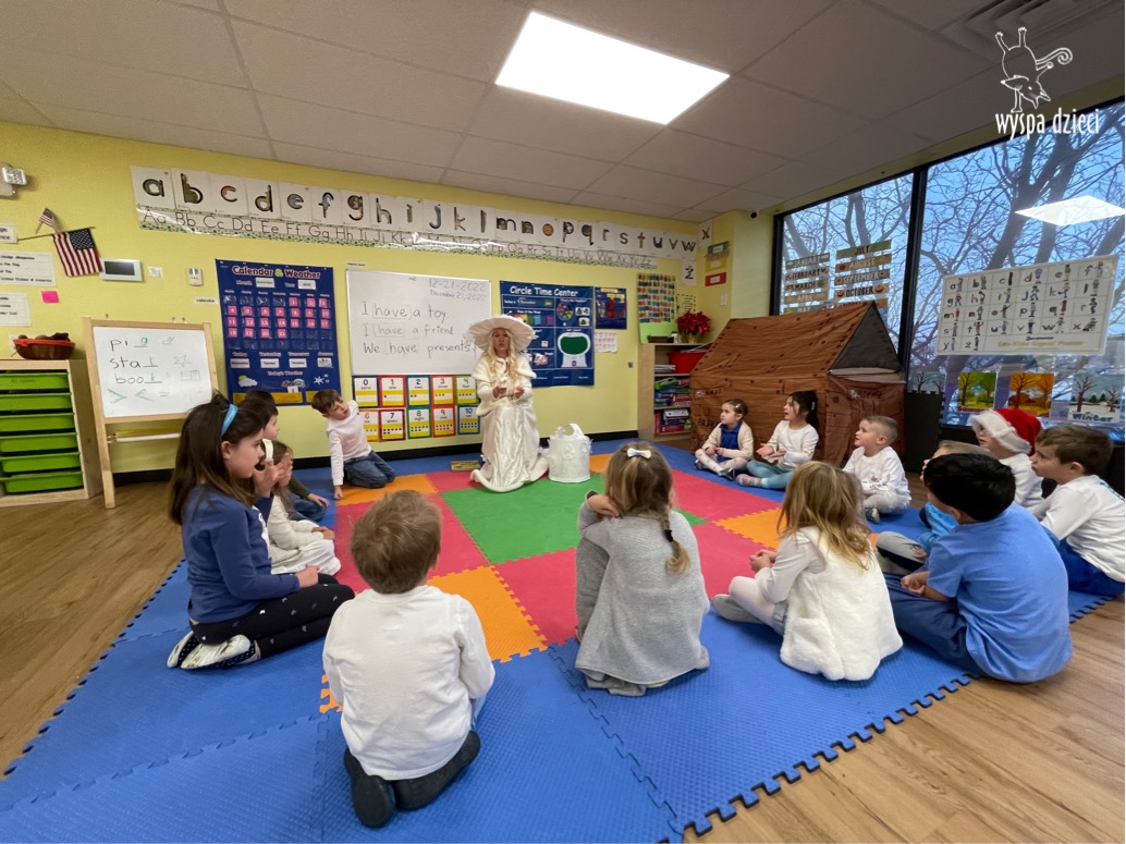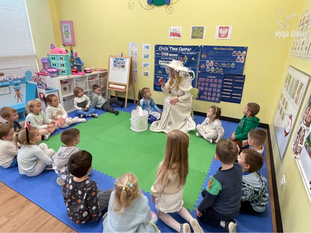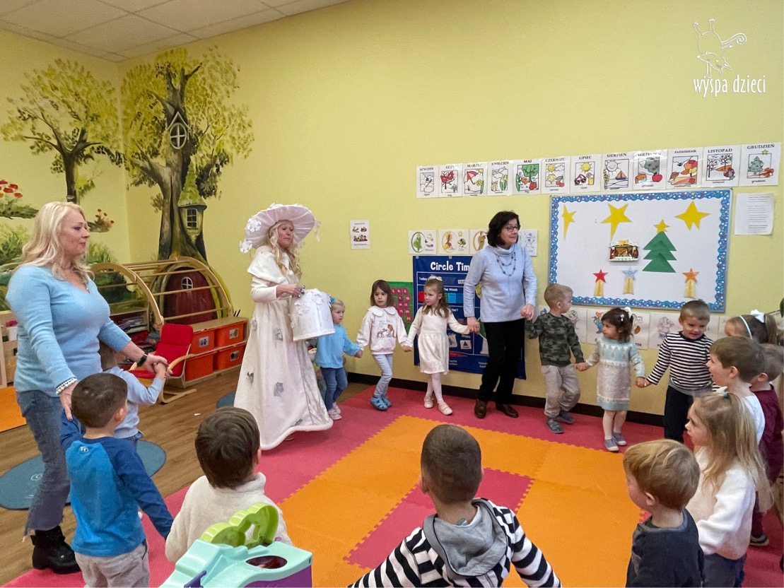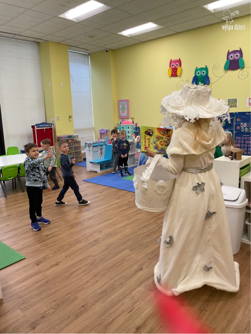 Dnia 21 grudnia 2022 roku, naszą Wyspę Dzieci w River Grove odwiedziła Pani Zima. Wizyta odbyła się pod hasłem: „My się zimy nie boimy i wesoło się bawimy”. Pani Zima odwiedziła każdą grupę. Wchodząc do naszych klas śpiewała piosenkę „Zima , zima, zima pada, pada śnieg”. Od najmłodszej grupy – Misie po najstarsze grupy kindergarten, wszyscy od razu przyłączyli się do wspólnego śpiewania tej piosenki. Pani Zima urządziła nam również zawody w rzucaniu śnieżkami. Ale było wesoło !!!!! Następnie omówiła z dziećmi zasady bezpiecznych zabaw, sposoby ubierania się i dbania o zdrowie, gdy na dworze jest zimno, a także jak ważne jest dokarmianie zwierząt. Przeczytała nam bardzo mądry tekst o dokarmianiu ptaszków i zachęciła nas do przygotowania dla nich karmników. Przygotowała dla naszych przedszkolaków zimowe rymowanki oraz zagadki. Wszyscy bardzo wesoło spędzili czas i obiecali, że wkrótce na naszym placu zabaw staną duże, piękne bałwany. Dziękujemy Pani Zimo za wspaniałą zabawę. Teraz czekamy tylko na Święta i śnieg 🙂 A podobno już jutro ma być go bardzo dużo !!!!