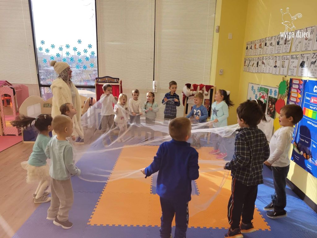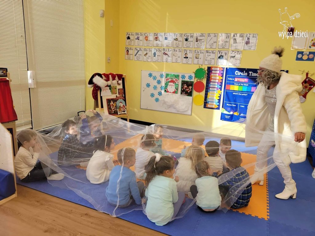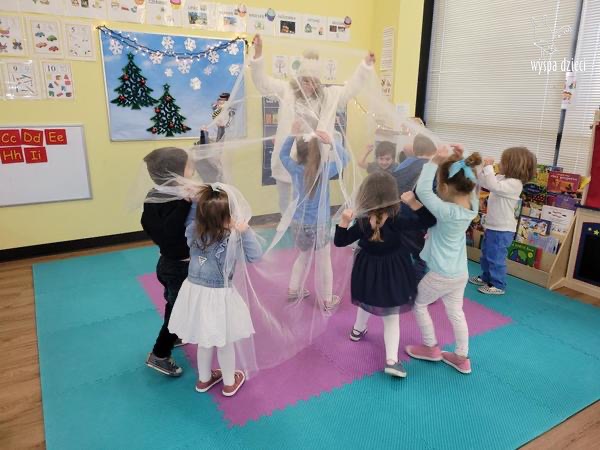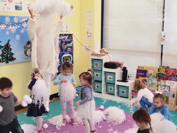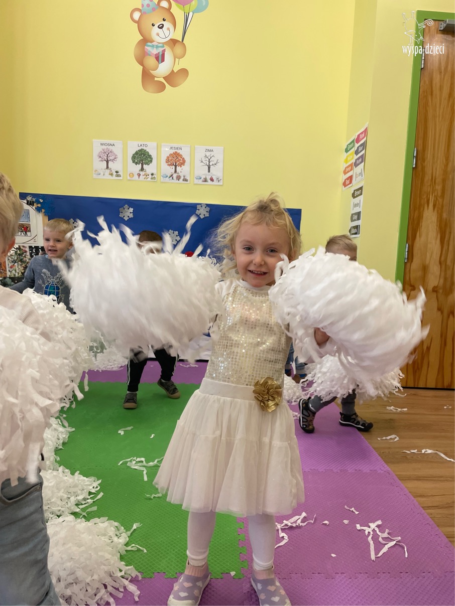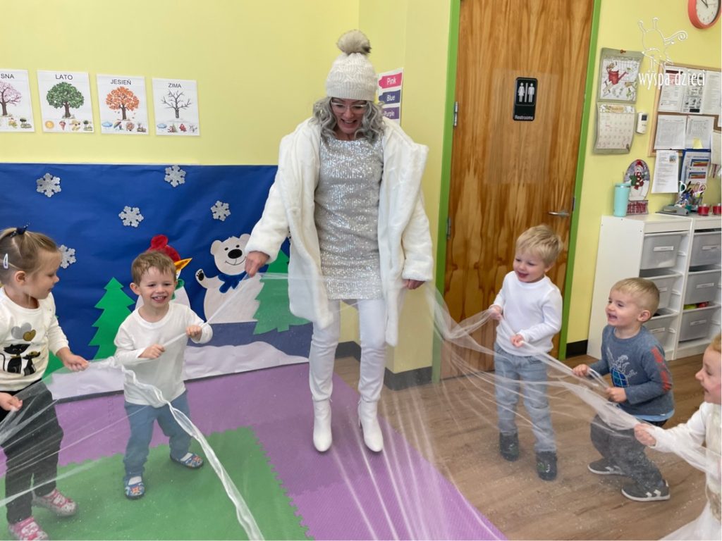 Była to taka nowoczesna Pani Zima ?. Miała zimowe srebrne włosy oraz moc niespodzianek. Odwiedziła każdą grupę i przygotowała dla dzieci mnostwo zimowych zabaw, były również wspólne tańce 🙂