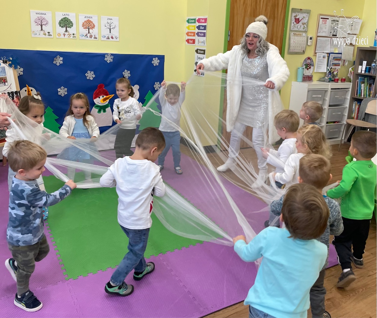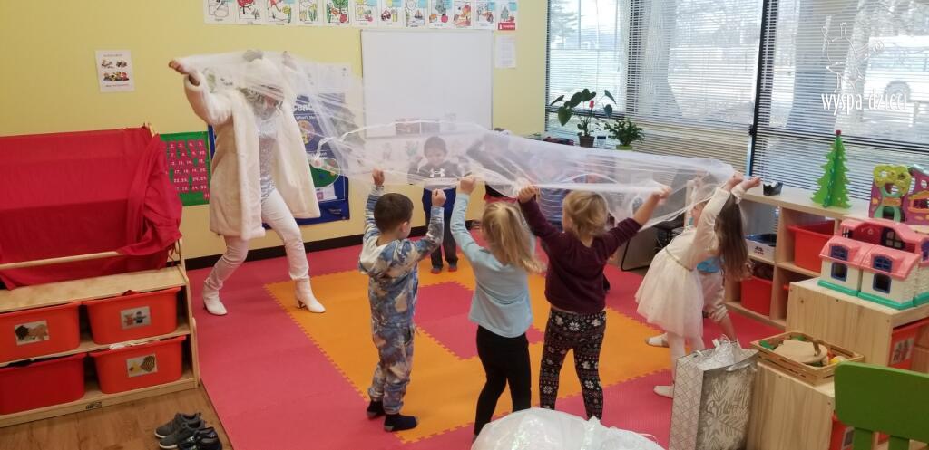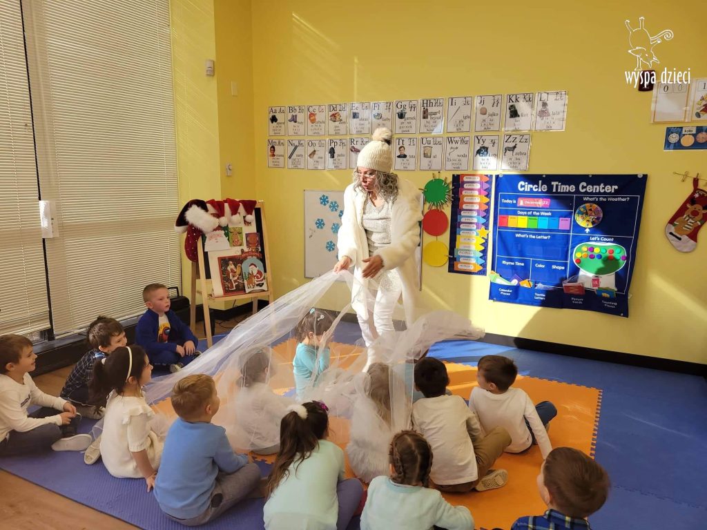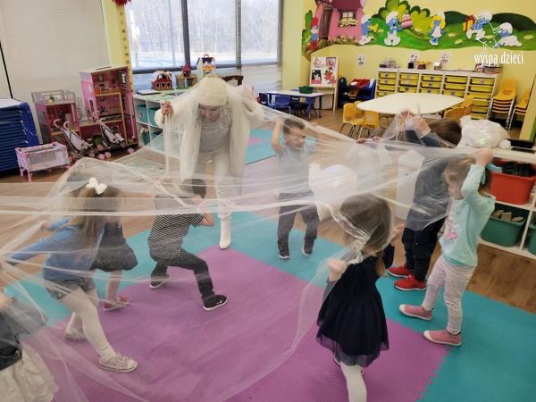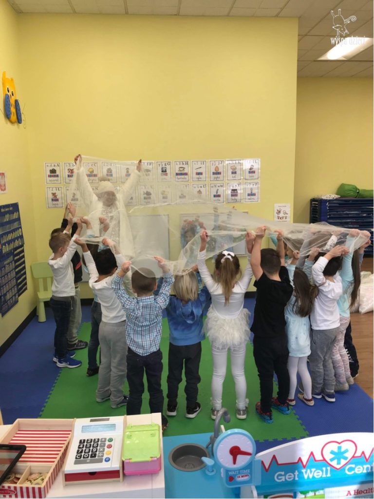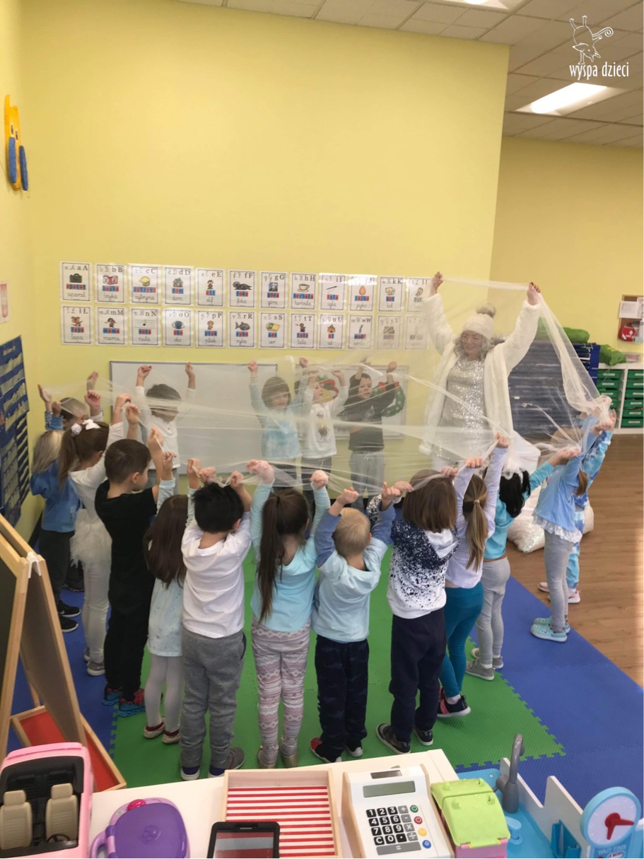 Była to taka nowoczesna Pani Zima ?. Miała zimowe srebrne włosy oraz moc niespodzianek. Odwiedziła każdą grupę i przygotowała dla dzieci mnostwo zimowych zabaw, były również wspólne tańce 🙂