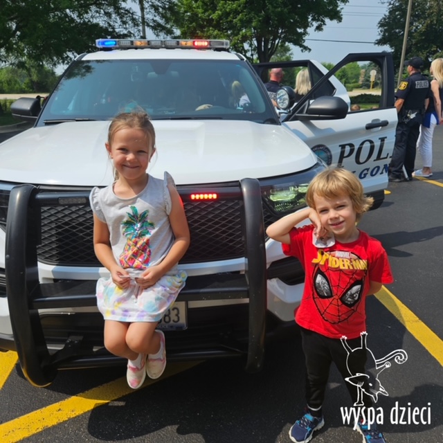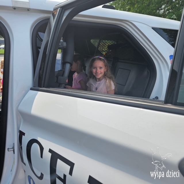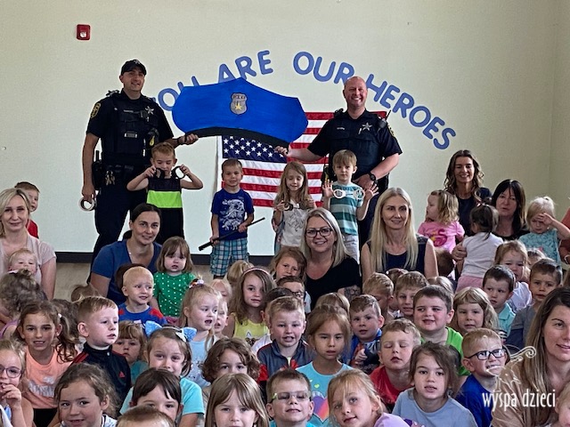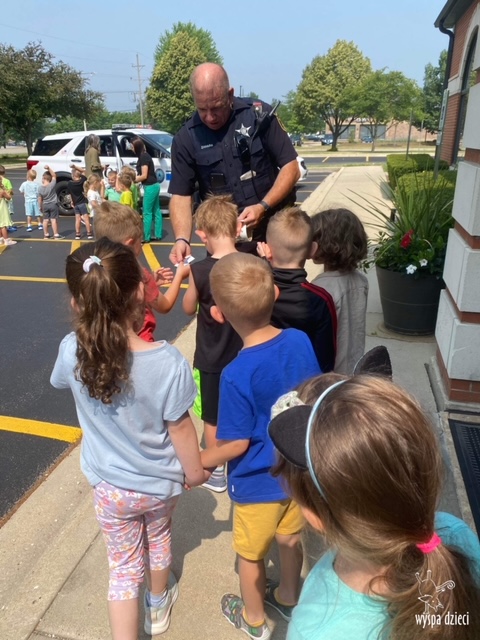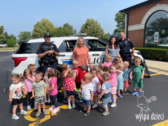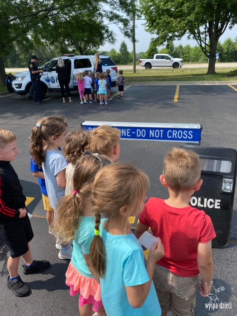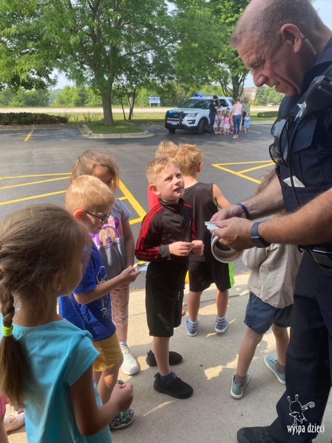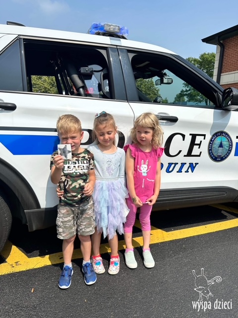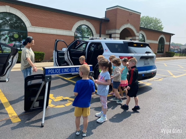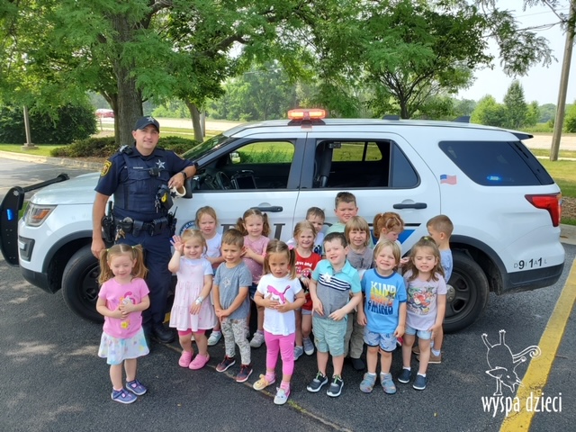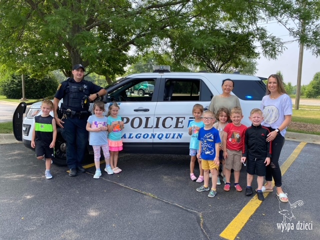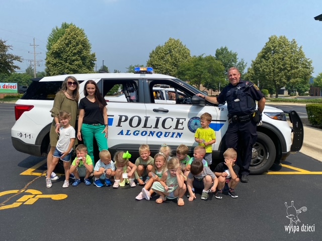 Wyspę Dzieci w Algonquin odwiedzili zaprzyjaźnieni z naszym przedszkolem policjanci z Police Department w Algonquin. Poprzednim razem funkcjonariusze policji opowiadali o bezpieczeństwie na wakacjach, tym razem szerzej przedstawili pracę policjanta. Maluchy mogły dowiedzieć się jakie zadania ma policjant, jak wygląda jego dzień, a także dokładniej przyjrzały się ubraniom naszych policjantów. Przedszkolaki miały możliwość zadania wielu pytań, a tym samym mogły dowiedzieć się wielu ciekawostek o pracy w policji. Każde dziecko dostało naklejke, a także mogło usiąść w samochodzie policyjnym! To była fajna przygoda;)
