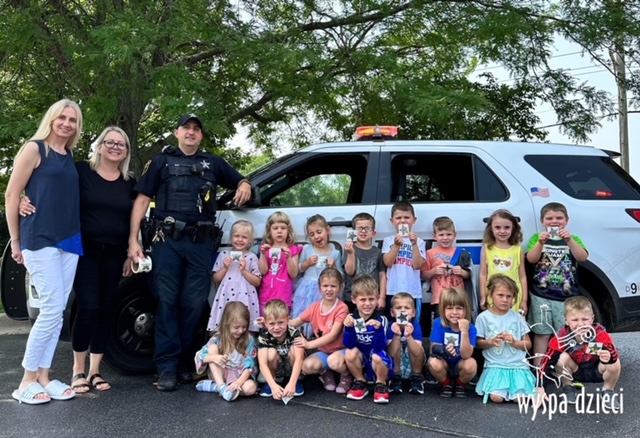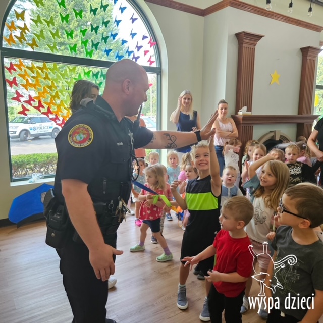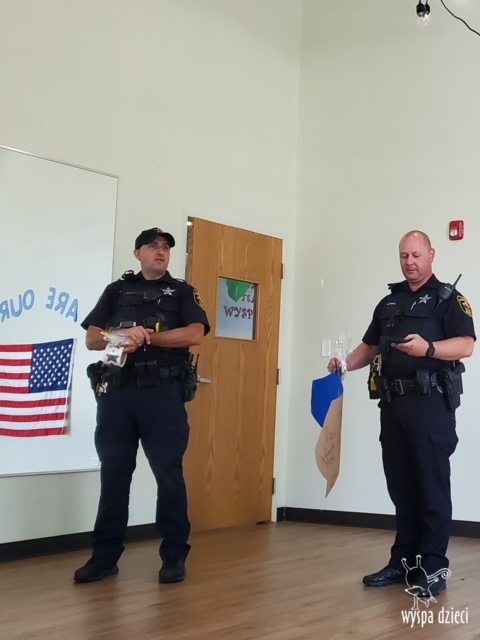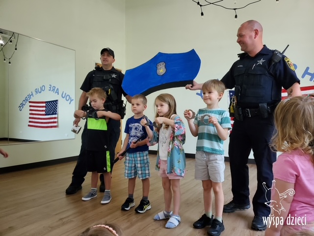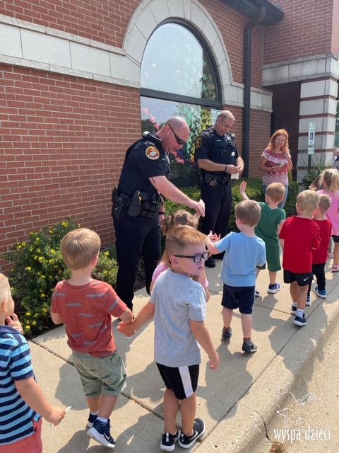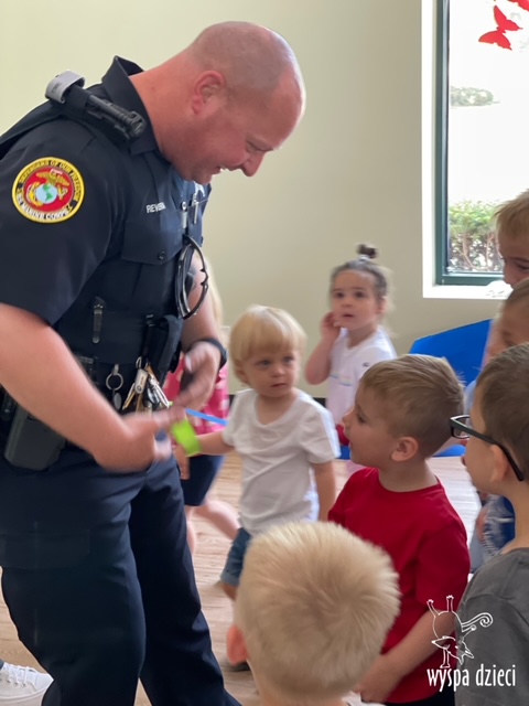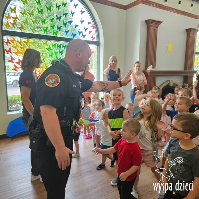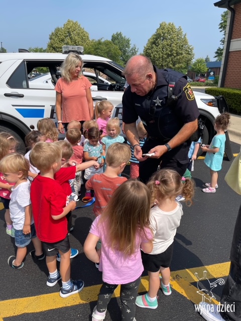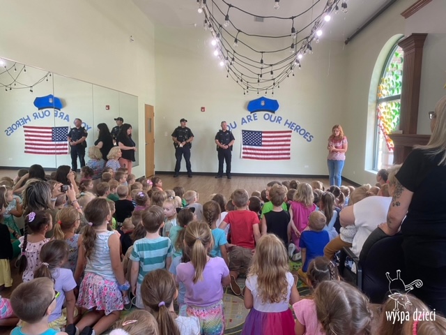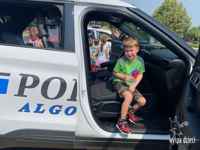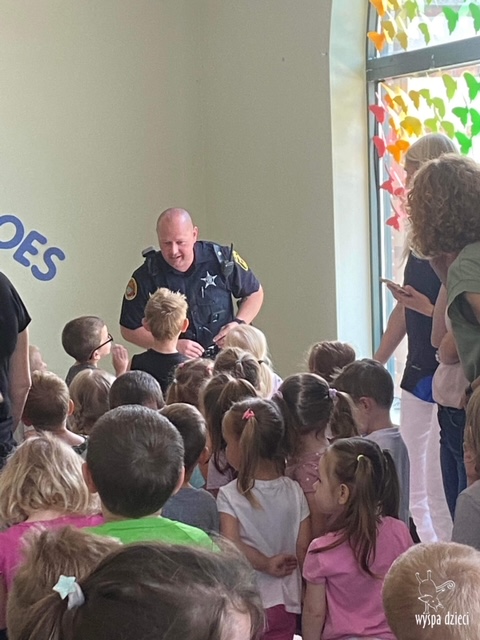 Wyspę Dzieci w Algonquin odwiedzili zaprzyjaźnieni z naszym przedszkolem policjanci z Police Department w Algonquin. Poprzednim razem funkcjonariusze policji opowiadali o bezpieczeństwie na wakacjach, tym razem szerzej przedstawili pracę policjanta. Maluchy mogły dowiedzieć się jakie zadania ma policjant, jak wygląda jego dzień, a także dokładniej przyjrzały się ubraniom naszych policjantów. Przedszkolaki miały możliwość zadania wielu pytań, a tym samym mogły dowiedzieć się wielu ciekawostek o pracy w policji. Każde dziecko dostało naklejke, a także mogło usiąść w samochodzie policyjnym! To była fajna przygoda;)
