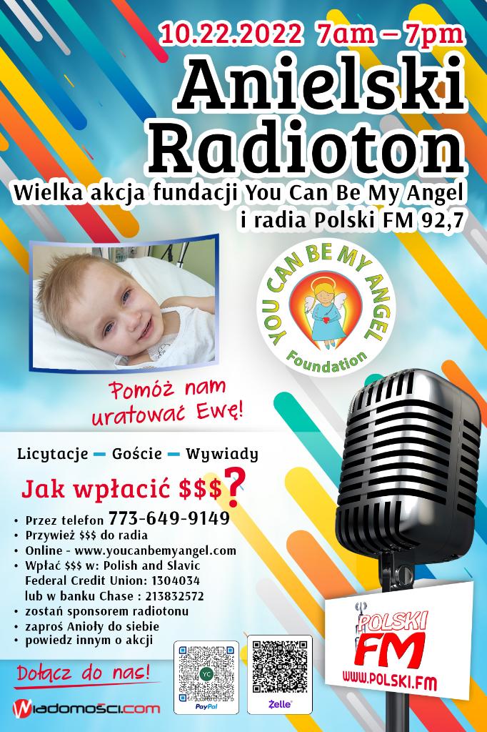 Natomiast dzisiaj, tj. 21 października jak co roku nasza lokalizacja w River Grove włączyła się do Akcji Fundacji You Can Be my Angel – Pomocy dla małej Ewy i zbieramy pieniążki, które przekażemy podczas sobotniego Radiotonu – 22 października, który odbędzie się na Falach Radia Polski FM.