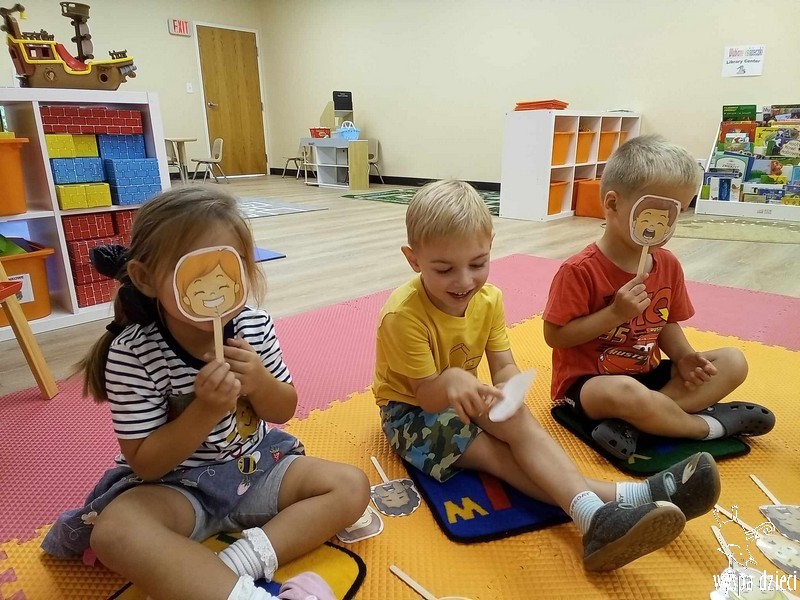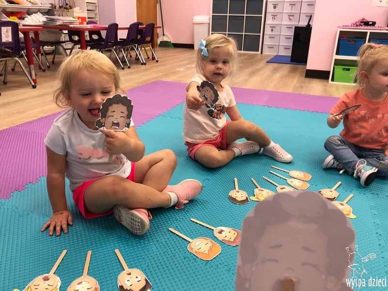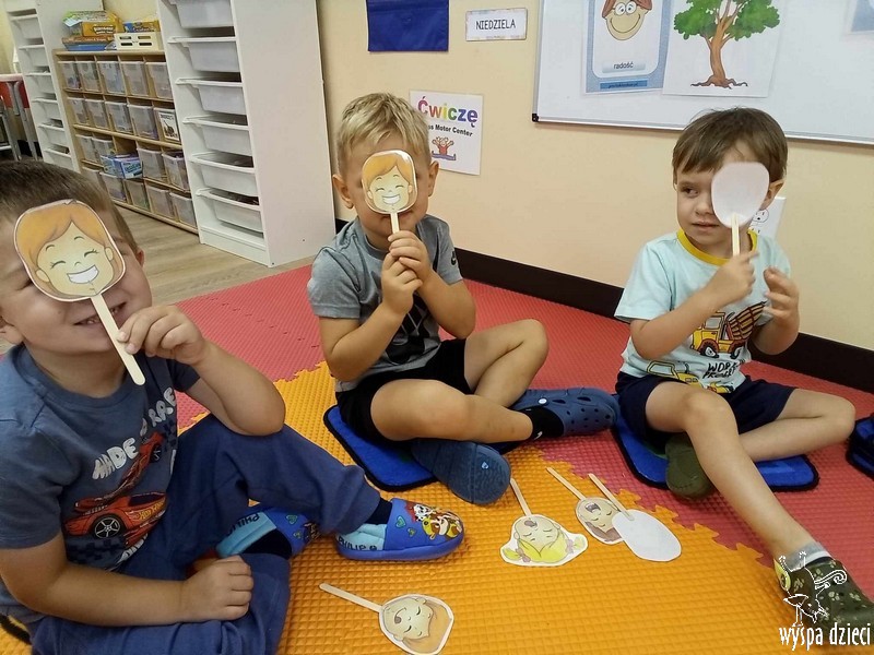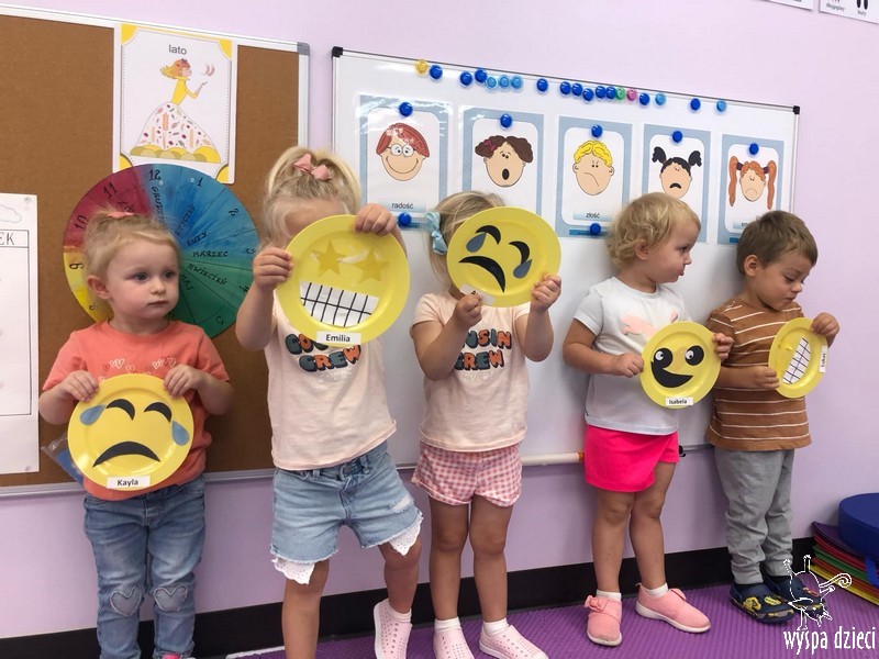Dzieci dowiedziały się co to są emocje, rozpoznawały i nazywały różne stany emocjonalne oraz przedstawiały swoje emocje i uczucia w czasie zabaw organizowanych przez nauczycielki.