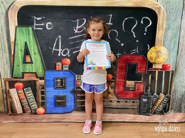 Każdy przedszkolak dostał pamątkowy dyplom oraz piękny zeszyt wspomnień z literkami, cyferkami i pięknymi zdjęciami.