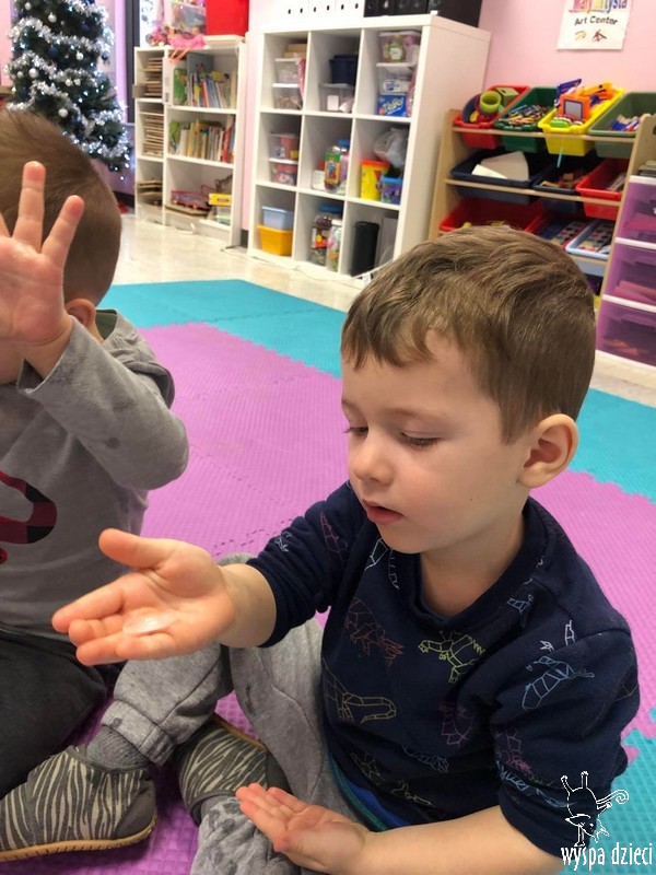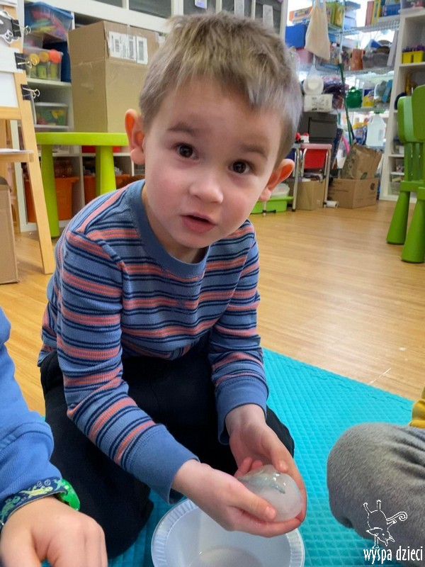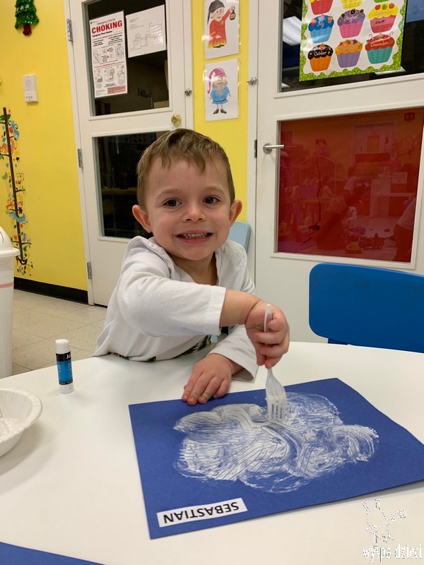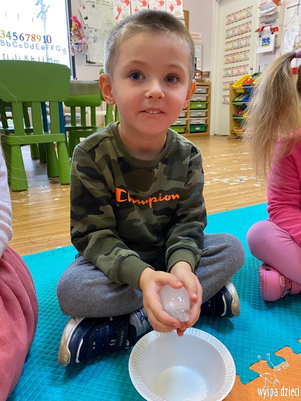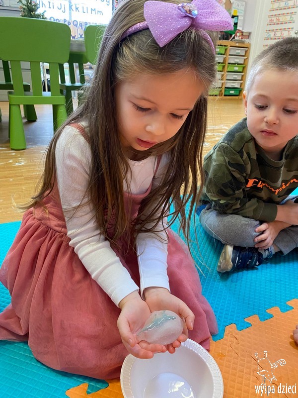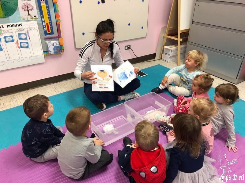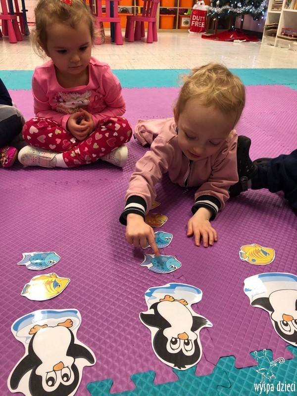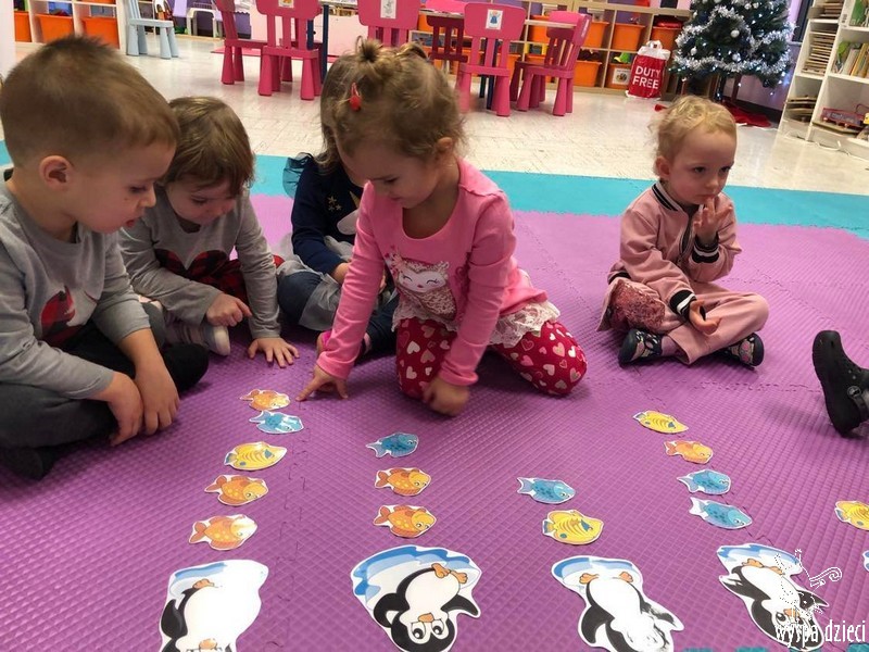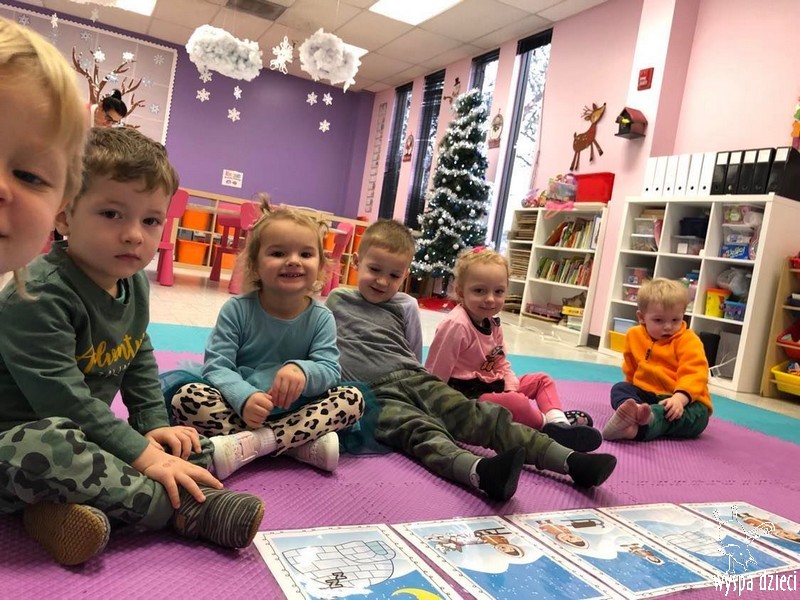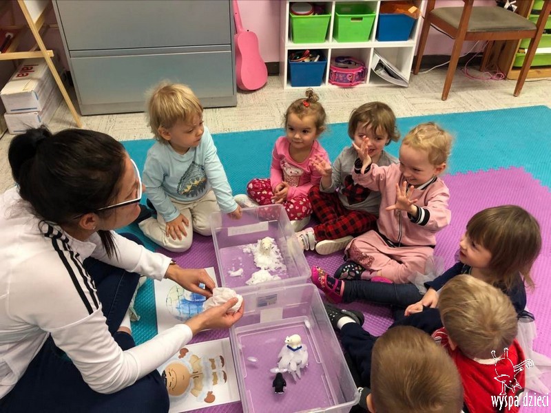 Przedszkolaki zapoznały się z życiem Eskimosów, dowiedziały się również o mieszkających tam zwierzętach- poznały ich wygląd oraz słuchały odgłosów, jakie wydają.