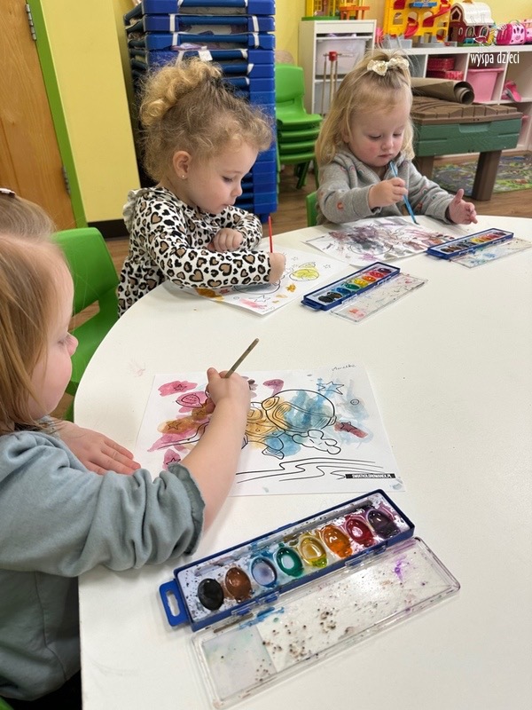 Miniony tydzień minął w Wyspie Dzieci River Grove pod hasłem „KOSMOS”.Wszystkie grupy poznawały tajemnice kosmosu. Dowiedziały się kim jest astronauta, co to jest skafander, jak wyglądał pierwszy lot na Księżyc. Poznały nazwy planet Układu Słonecznego, dowiedziały się, że Ziemia krąży wokół Słońca, rozwiązywały „kosmiczne zagadki”. Codziennie mogły odwiedzić centrum kosmiczne zbudowane w naszym przedszkolu, specjalnie na ten tydzień. Z zainteresowaniem wsiadały do zbudowanych statków kosmicznych. To była dla nich niezwykła podróż w kosmos!  Zrobiły wiele wspaniałych projektów kosmicznych jak również nauczyły się piosenki „Ufoludki”