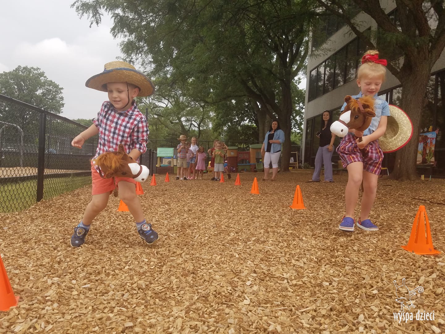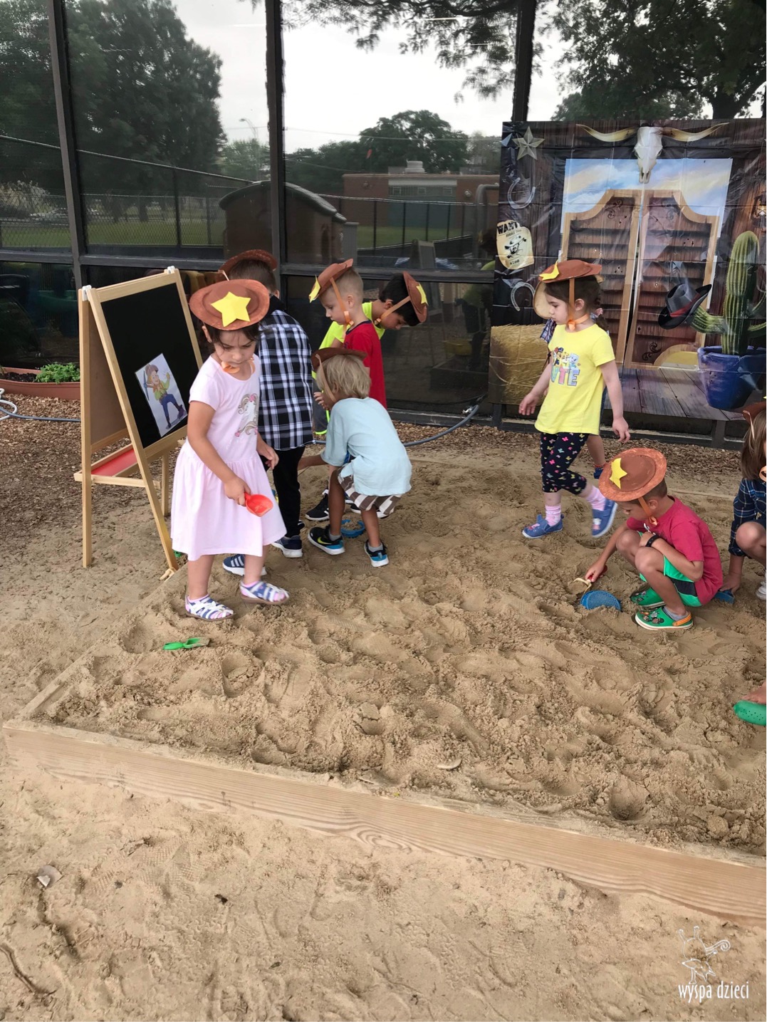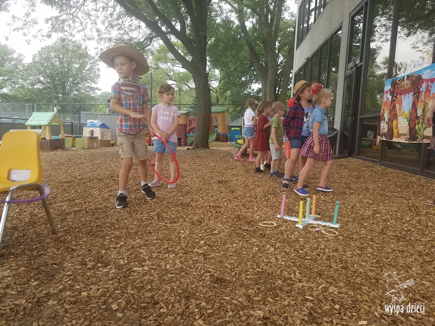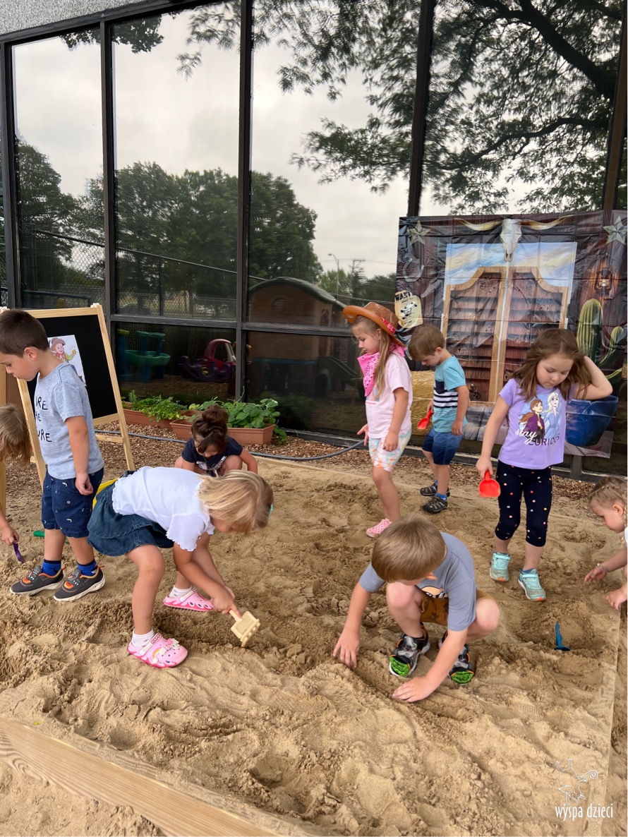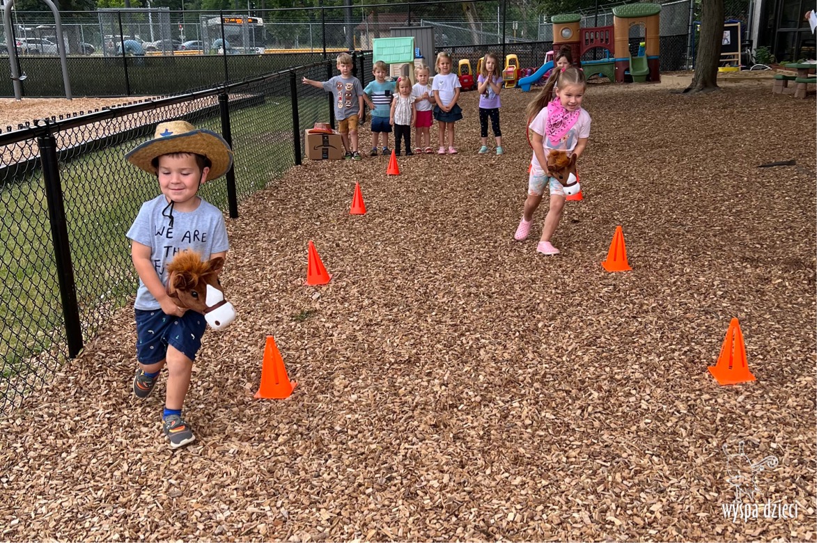 To był tydzień pełen wrażeń! Wszystkie przedszkolaki na Wyspie Dzieci w River Grove przeniosły się w podroż na Dziki Zachód. W trakcie zajęć i zabaw dzieci poznały zwyczaje kowbojów. Nie zabrakło również konkurencji zręcznościowych, w których dzieci wykazywały się sprytem, szybkością i zwinnością, jak na małych kowboi przystało. Szukały skradzionego i zakopanego skarbu-złotych monet w piasku, łapały konia na lasso, miały nawet okazję pojeździć na koniku. Dzieci były bardzo zadowolone- wystarczy spojrzeć na ich uśmiech na naszych zdjęciach ?
