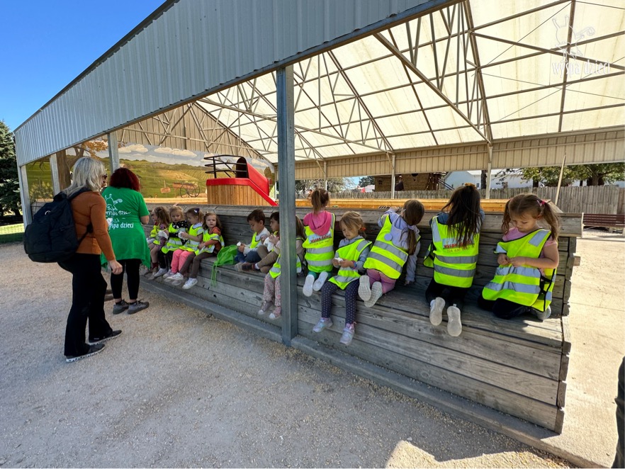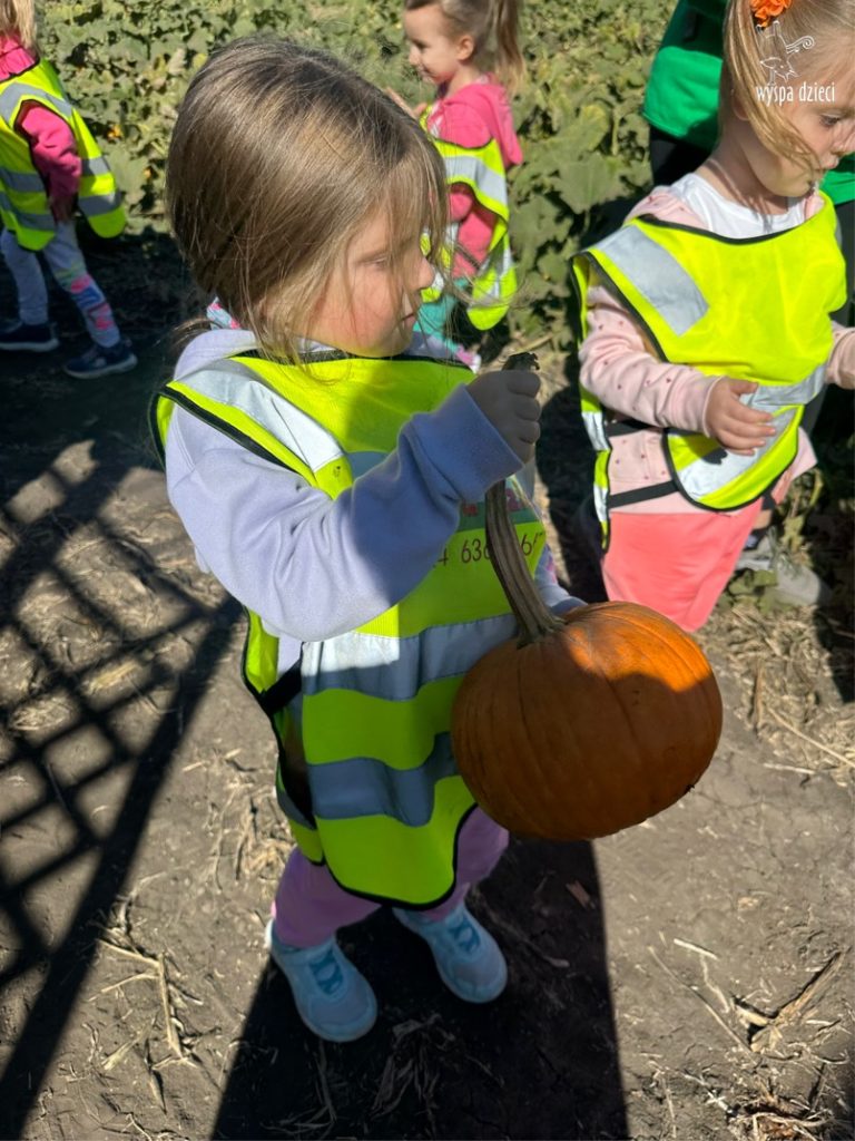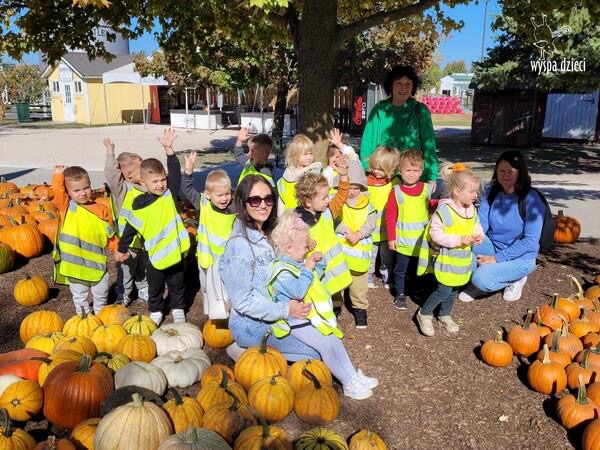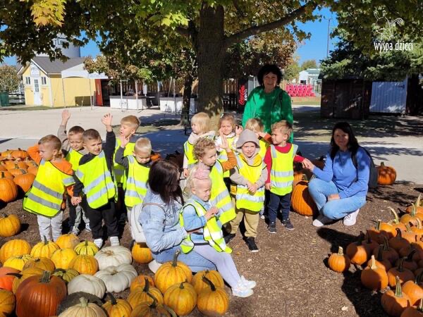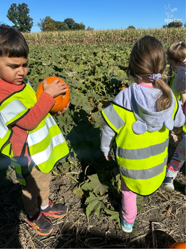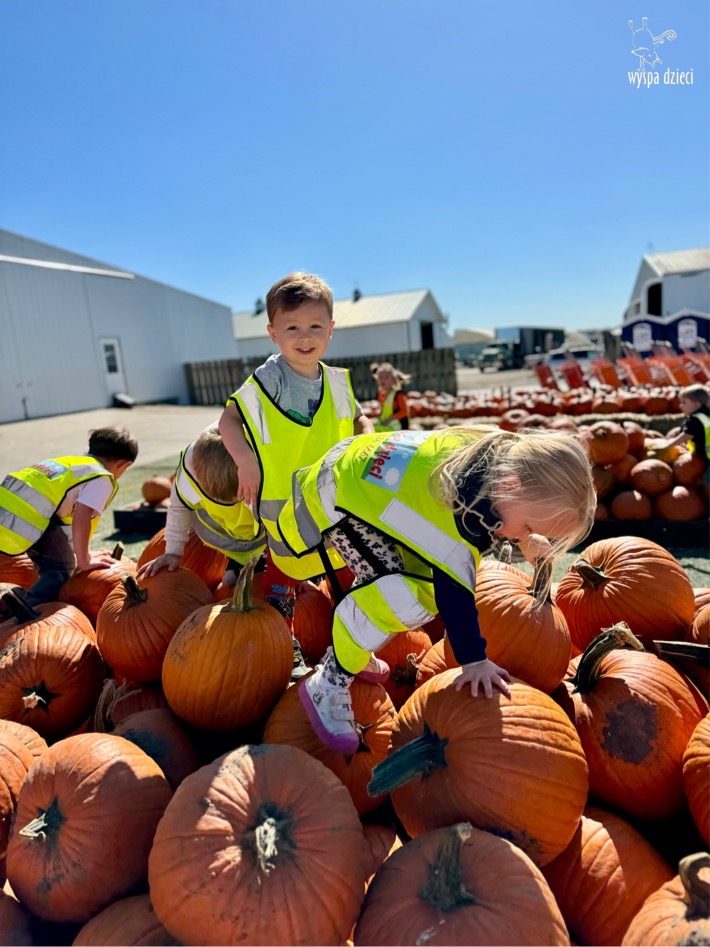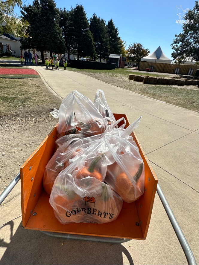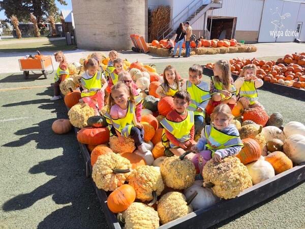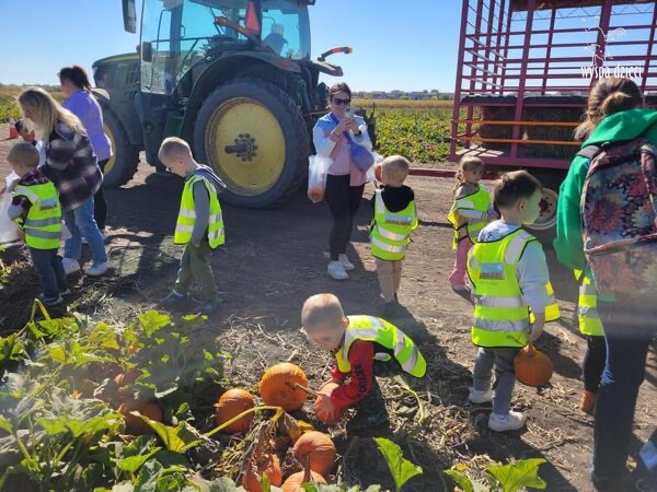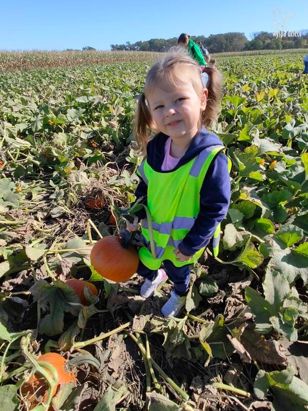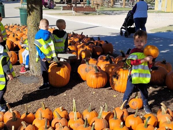 Pobyt na farmie „ Goebbert’s ” dostarczył nam wiele doznań oraz wrażeń. Zmęczeni ale szczęśliwi z dyniami w rękach wróciliśmy do naszego przedszkola na ciepły obiadek.