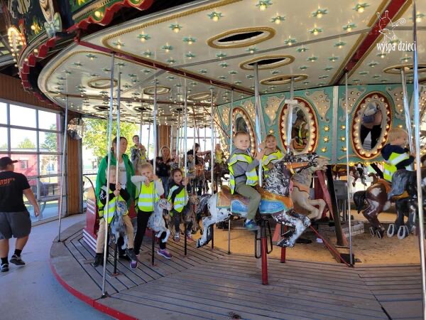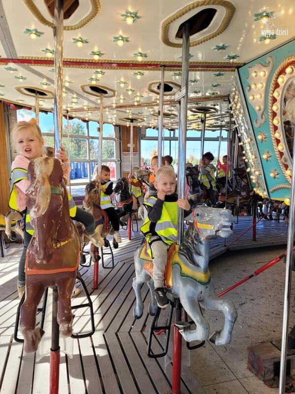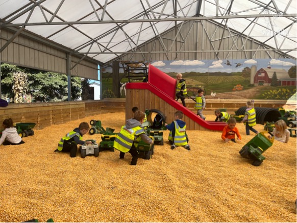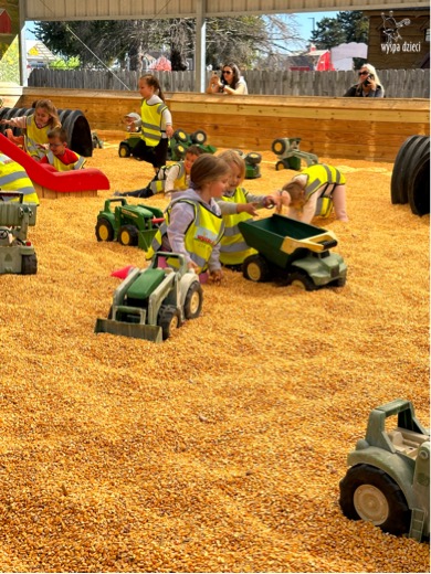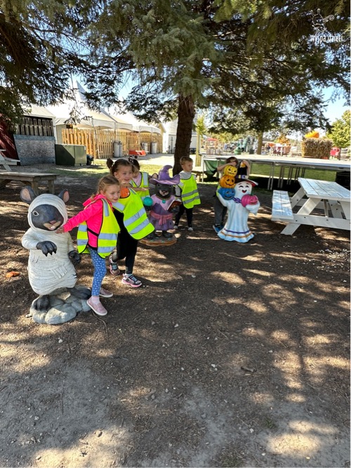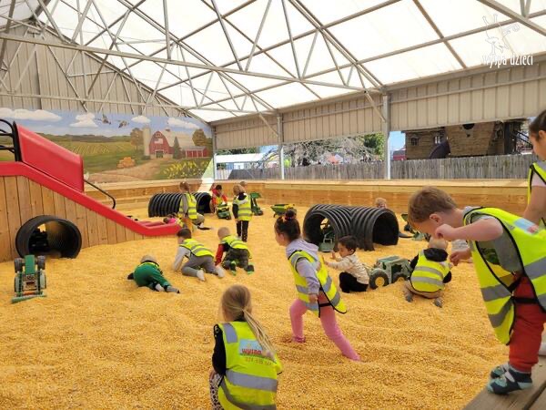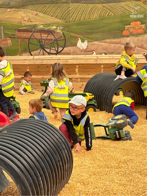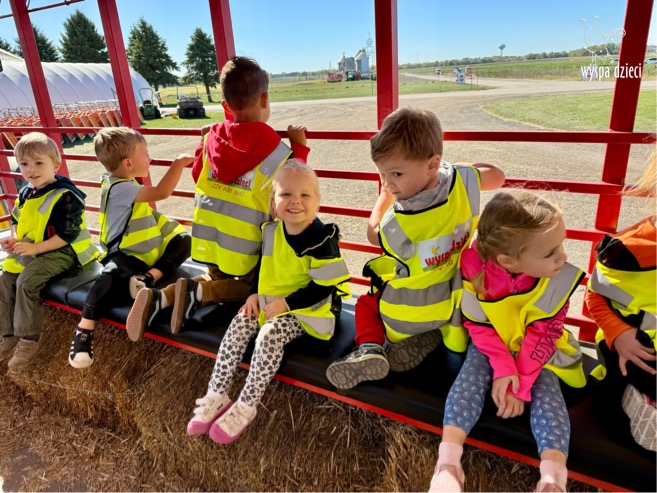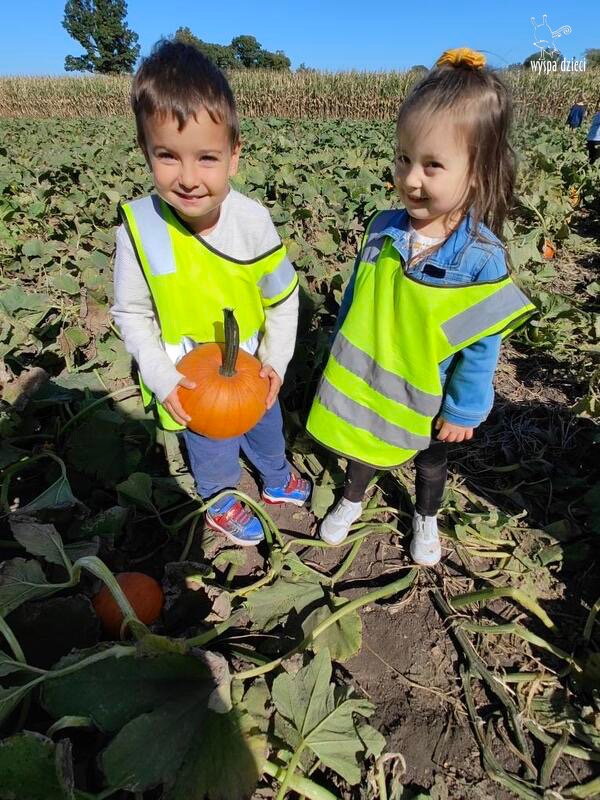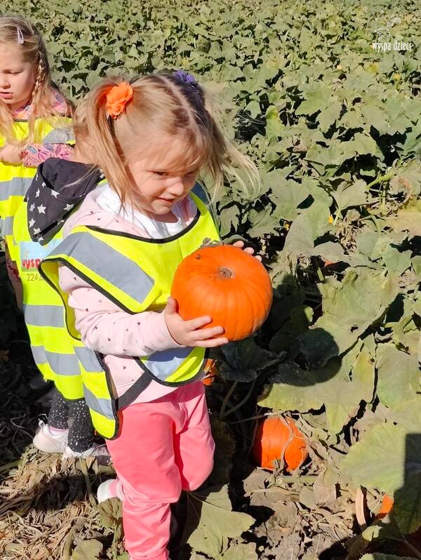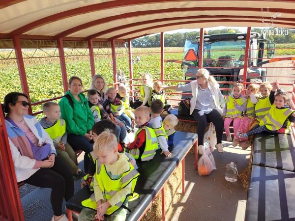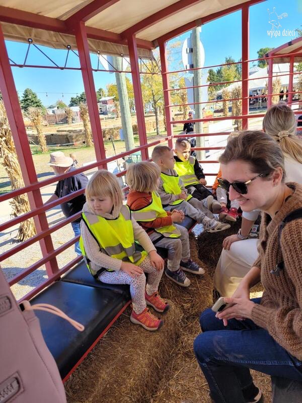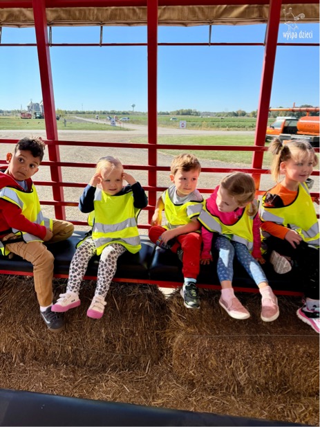 Pobyt na farmie „ Goebbert’s ” dostarczył nam wiele doznań oraz wrażeń. Zmęczeni ale szczęśliwi z dyniami w rękach wróciliśmy do naszego przedszkola na ciepły obiadek.