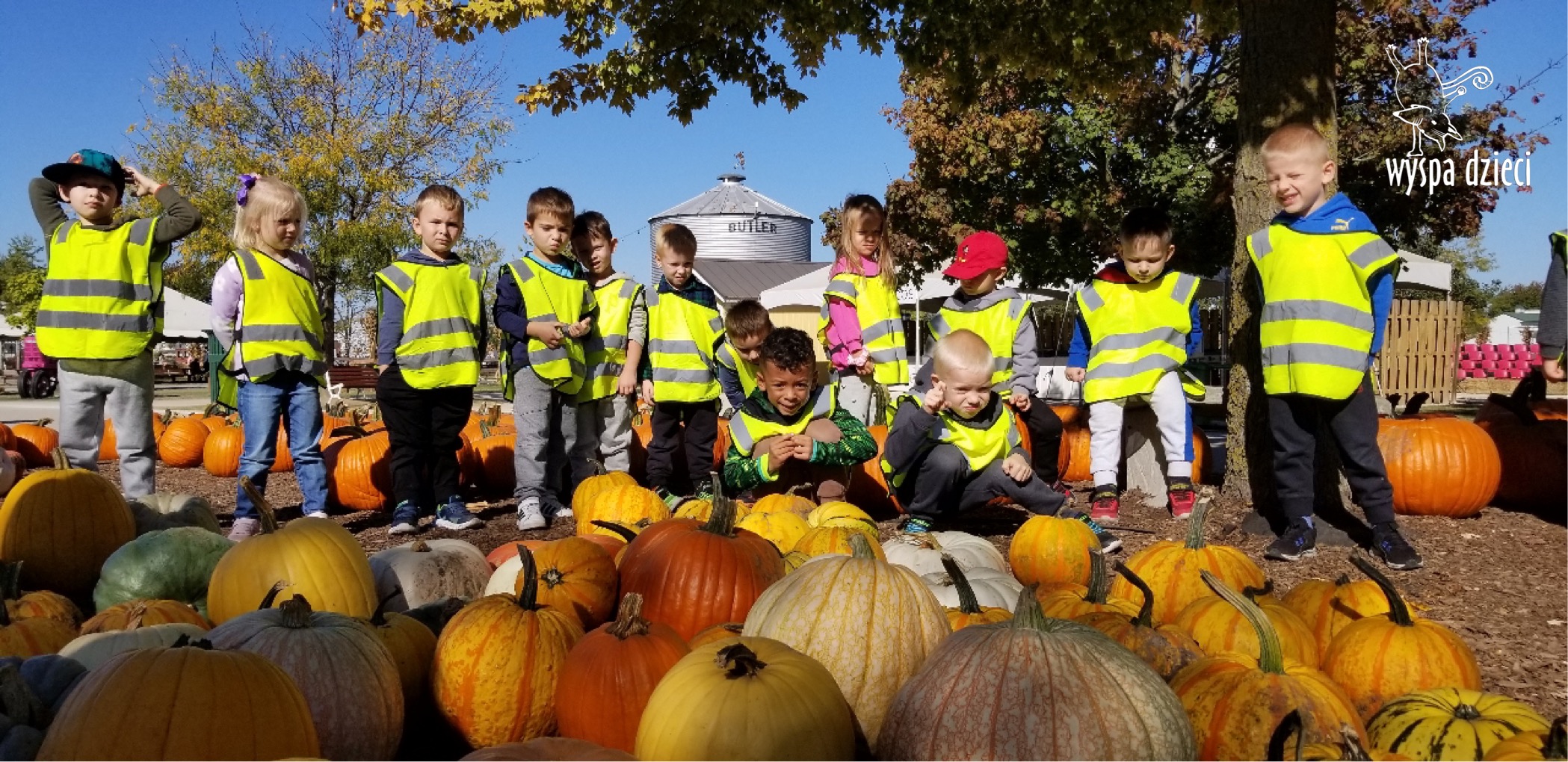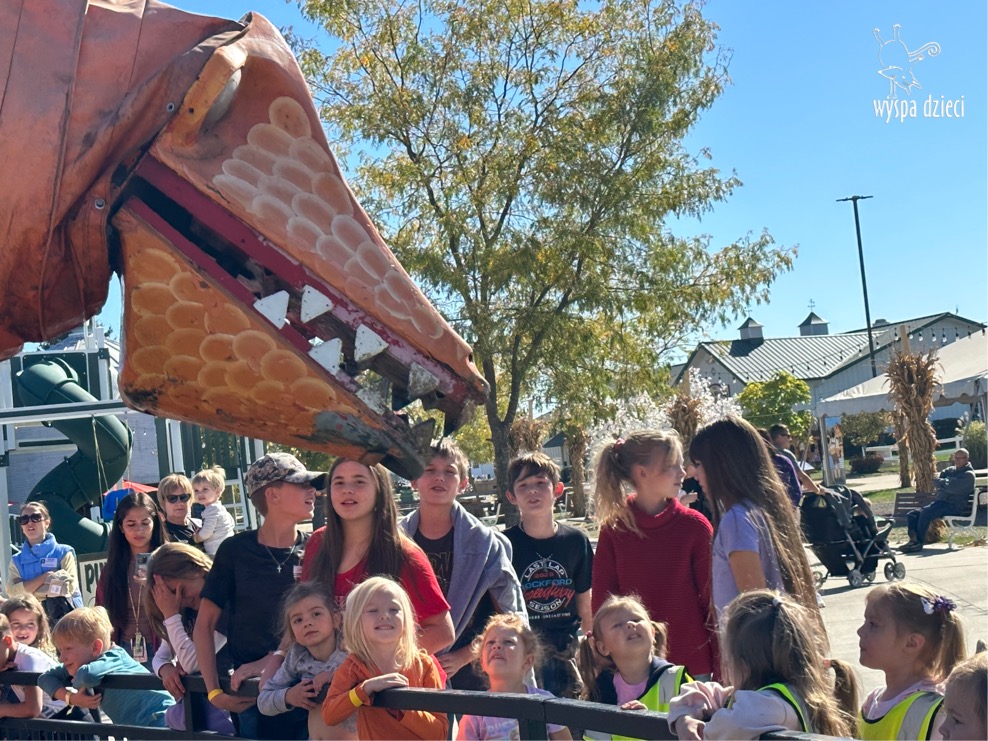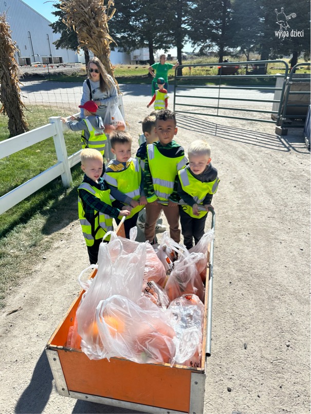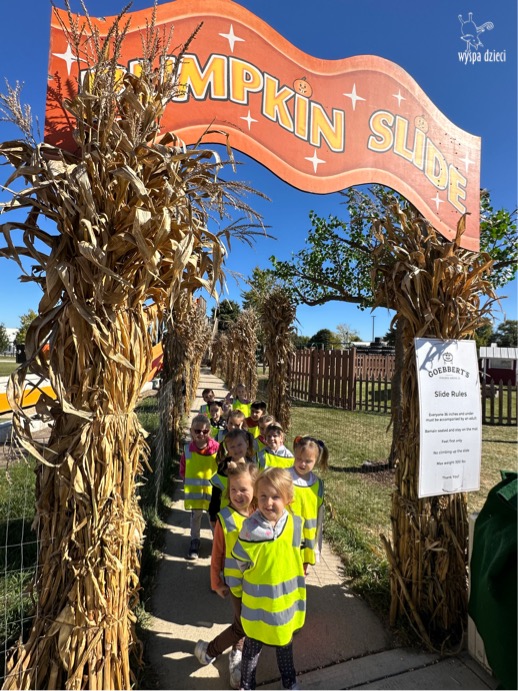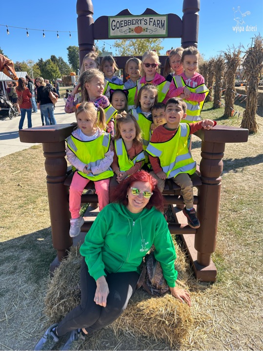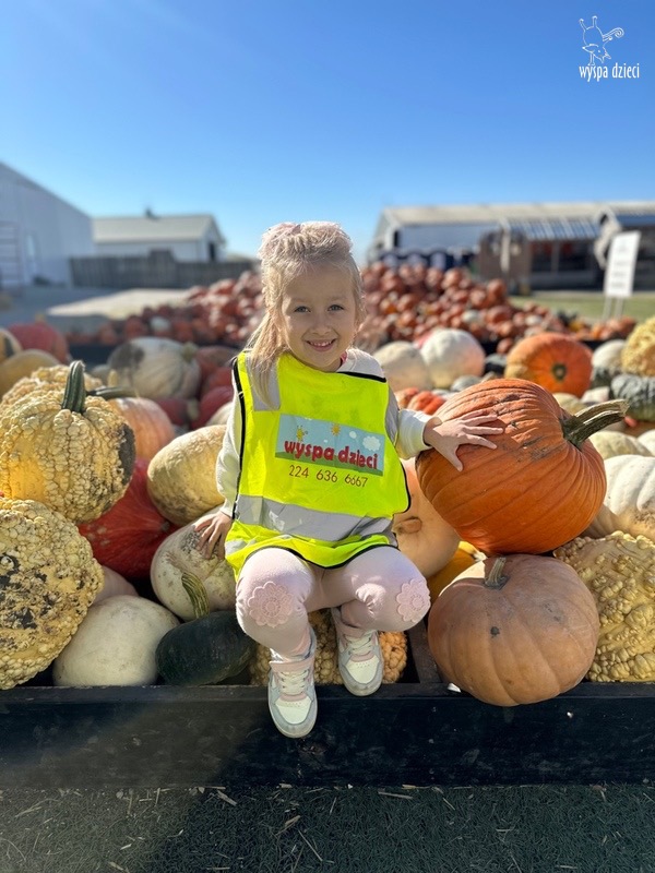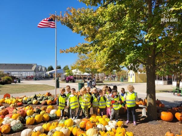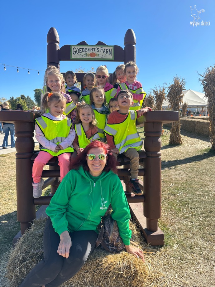 W piękny , sloneczny jesienny dzień przedszkolaki z Wyspy Dzieci River Grove wybrali się autobusami na farmę dyniową Goebbert’s w Pingree Grove. Czekało tam na nich wiele atrakcji i różnorodnych aktywności: przejście labiryntem w kukurydzy, przejażdżka wozem i zrywanie dyń z pola, smok który buchał dymem i zajadał się dyniami, zabawa w kukurydzy, przejażdżka pociągiem, karuzela i wiele wspanialych niespodzianek.