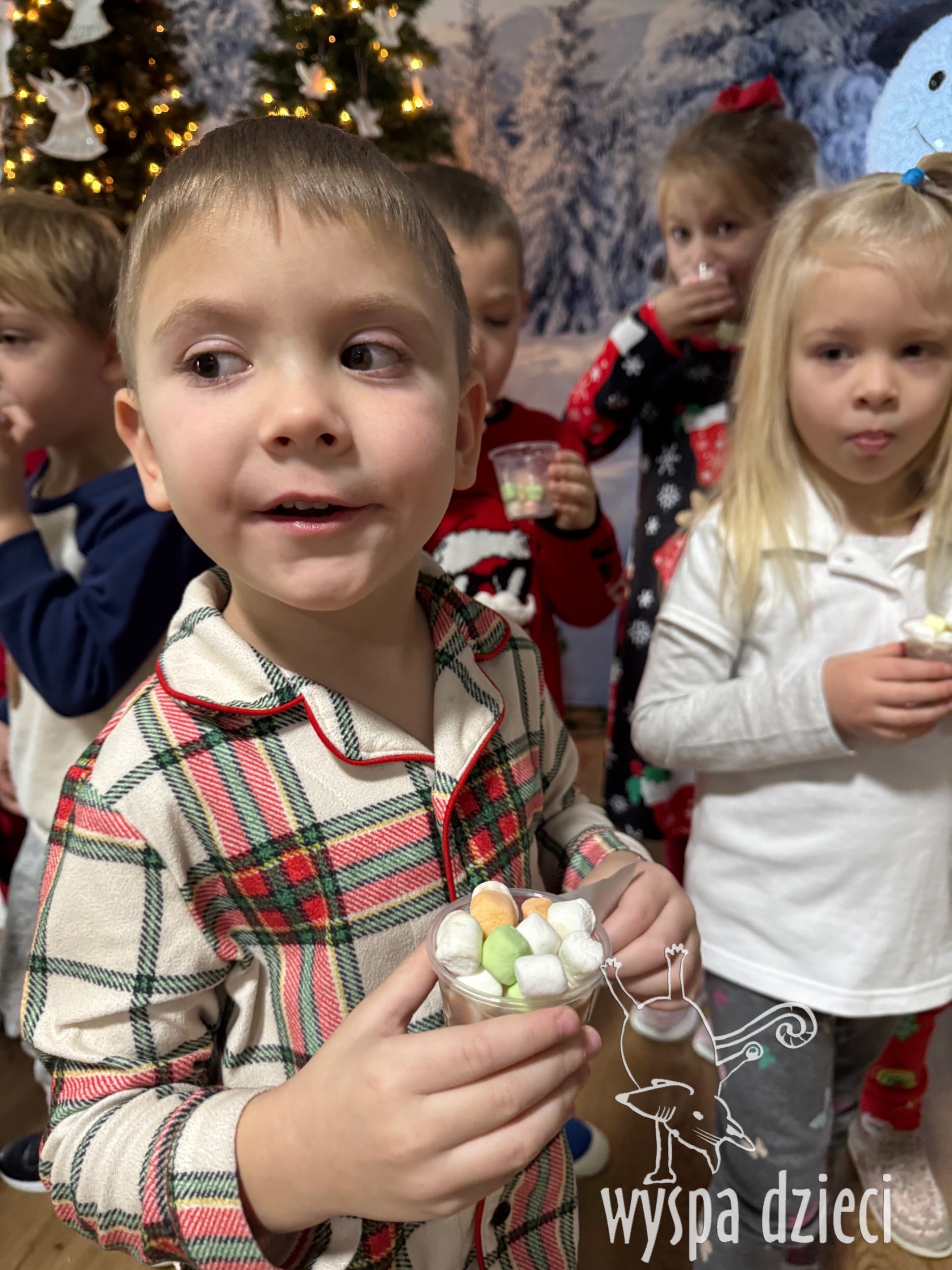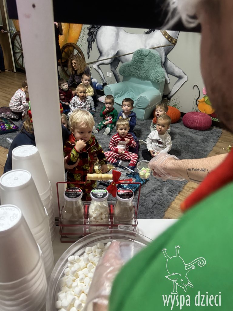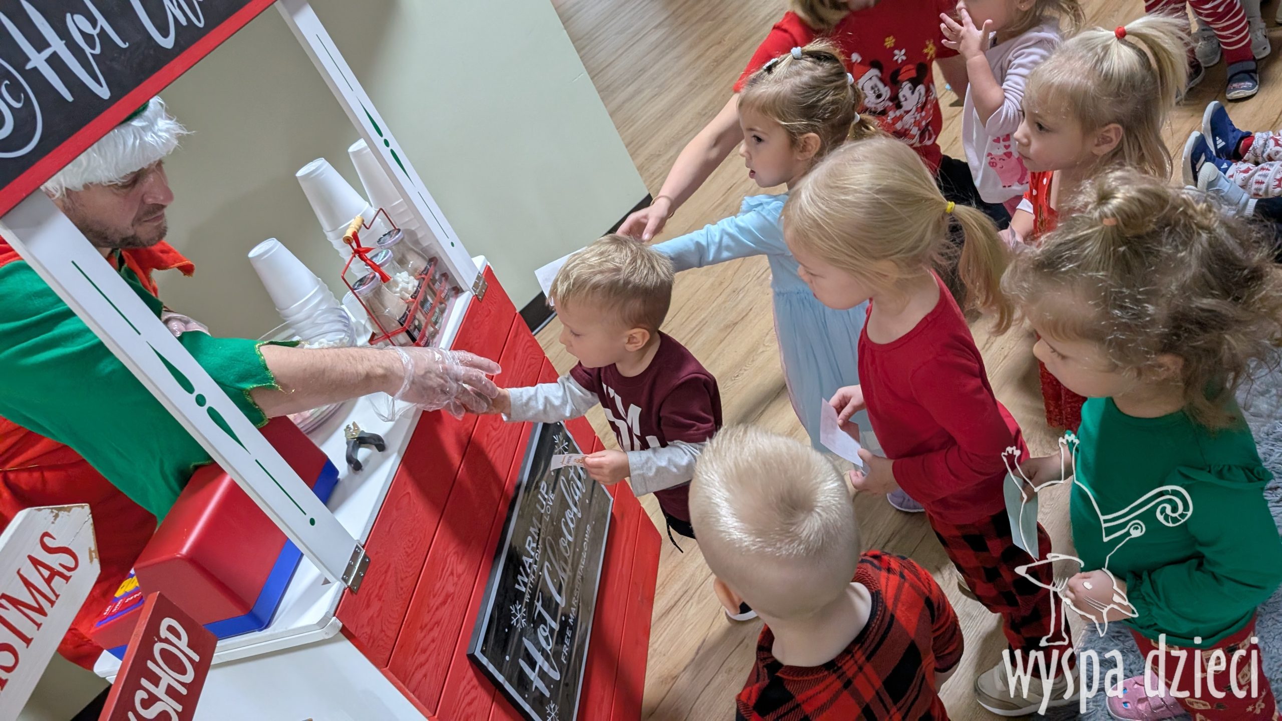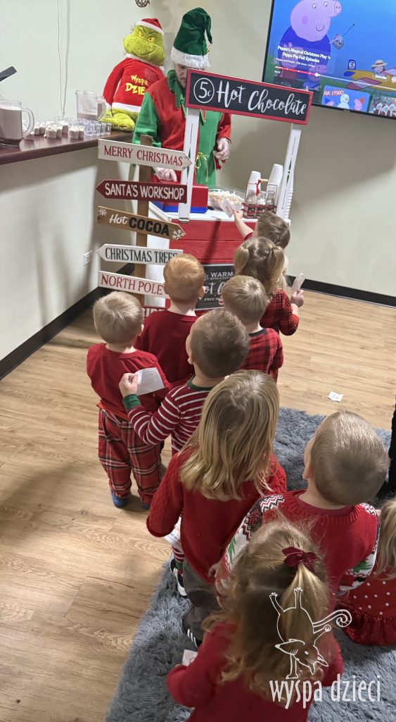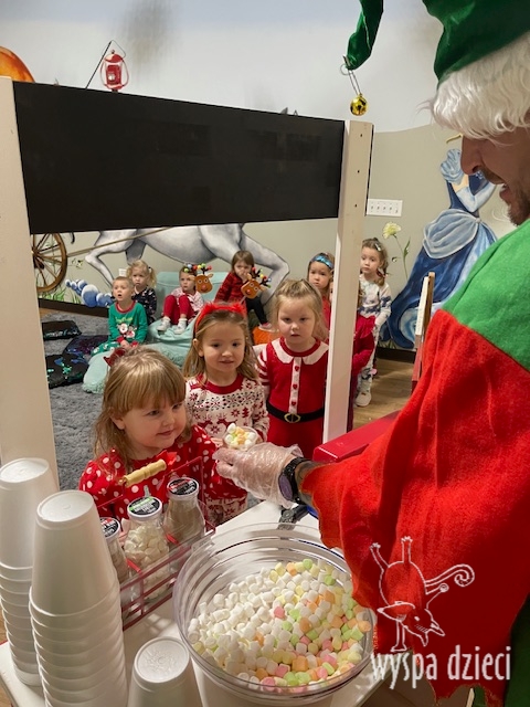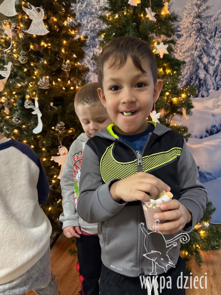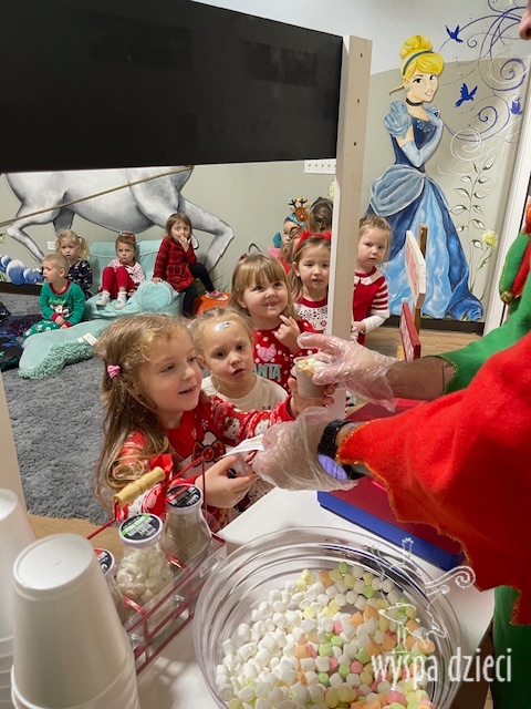 Święta tuż, tuż …. Świąteczny czas jest wyjątkowy w naszym przedszkolu. Każdego dnia czeka na naszych przedszkolaków wiele ciekawych wydarzeń. Każda grupa przygotowała piękne ozdoby, którymi udekorowała nasze przedszkolne choinki. Całe przedszkole wzięło udział w uroczystym zapaleniu światełek. Nasze maluchy najbardziej cieszyły się z naszej słodkiej, świątecznej stacji, gdzie elf przygotował dla każdego dziecka pyszne kakao i marsmallow. Czas umiliła dzieciom dodatkowo świąteczna bajka. Teraz z niecierpliwością czekamy na Święta …