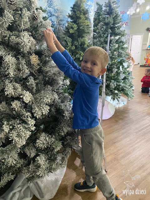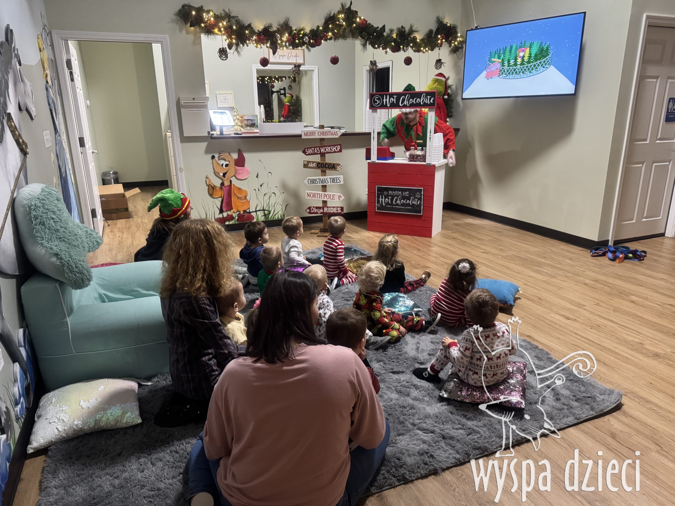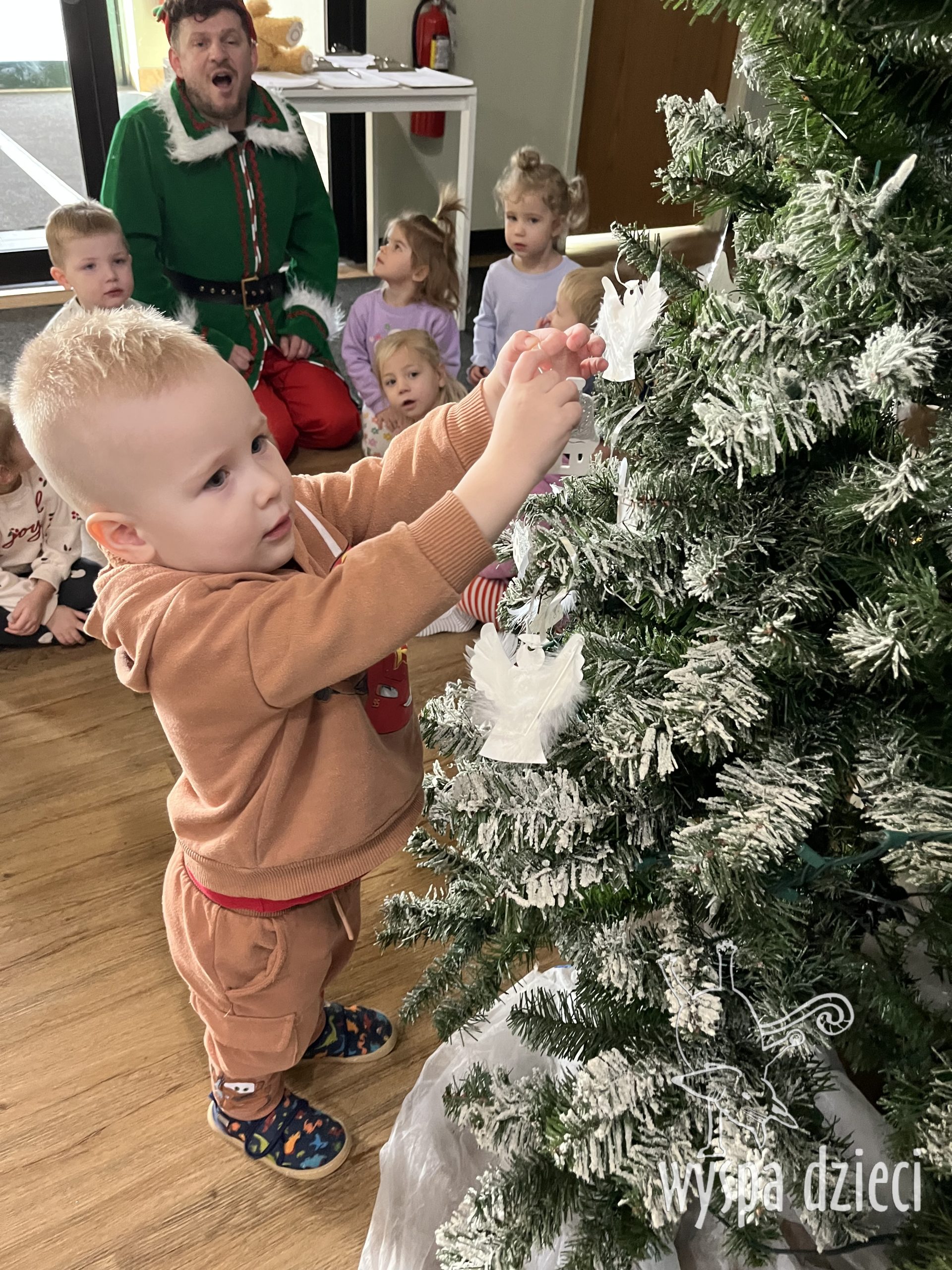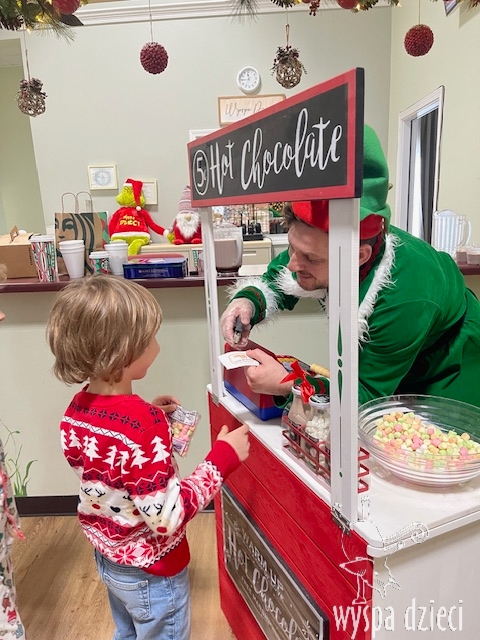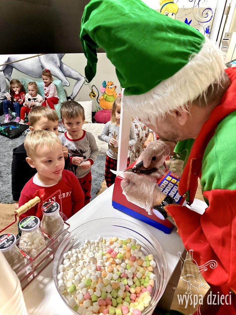 Święta tuż, tuż …. Świąteczny czas jest wyjątkowy w naszym przedszkolu. Każdego dnia czeka na naszych przedszkolaków wiele ciekawych wydarzeń. Każda grupa przygotowała piękne ozdoby, którymi udekorowała nasze przedszkolne choinki. Całe przedszkole wzięło udział w uroczystym zapaleniu światełek. Nasze maluchy najbardziej cieszyły się z naszej słodkiej, świątecznej stacji, gdzie elf przygotował dla każdego dziecka pyszne kakao i marsmallow. Czas umiliła dzieciom dodatkowo świąteczna bajka. Teraz z niecierpliwością czekamy na Święta …