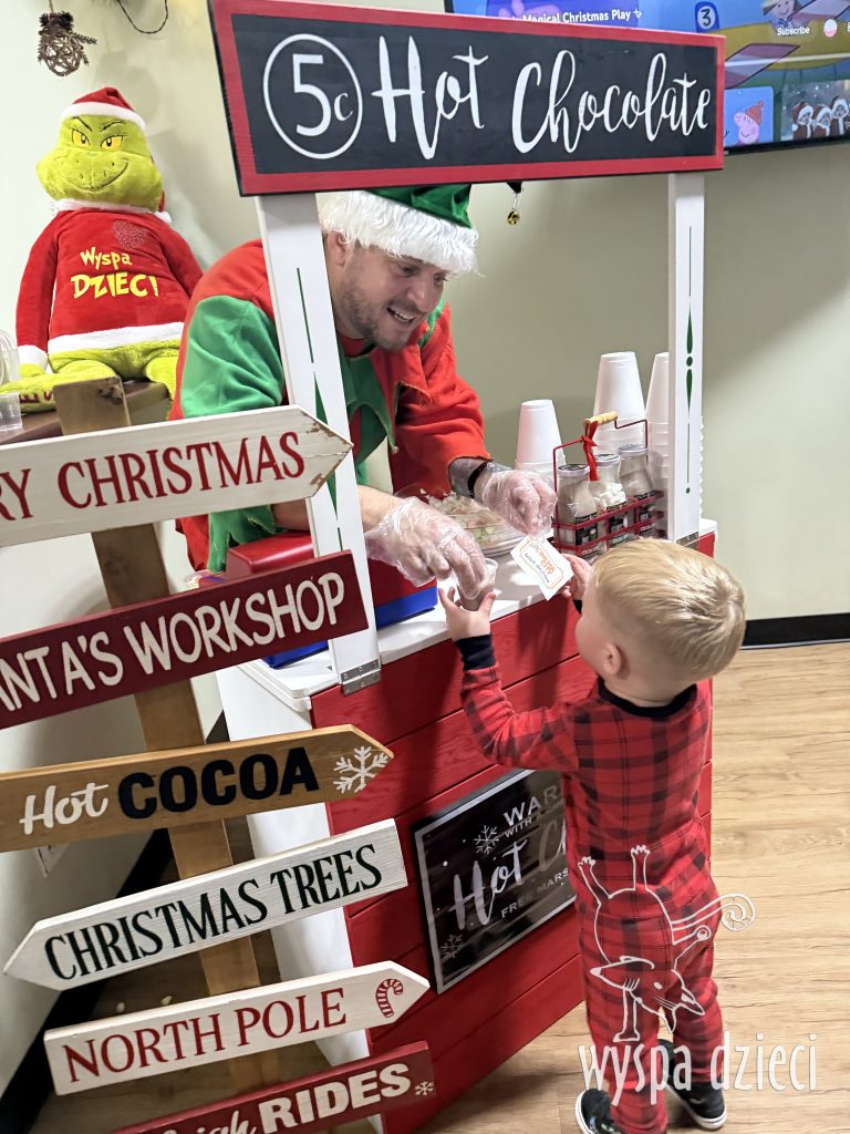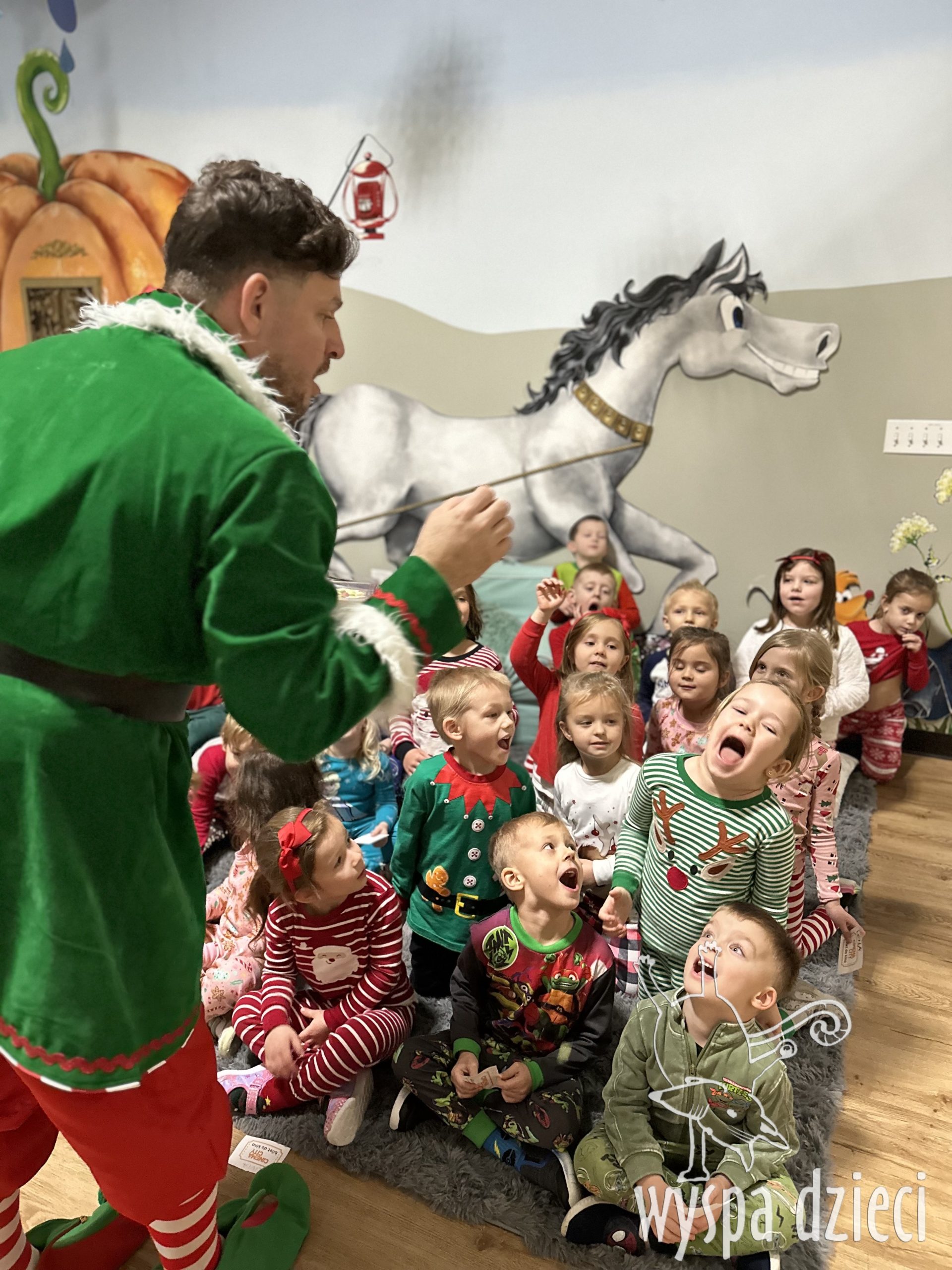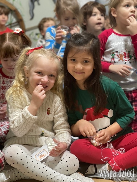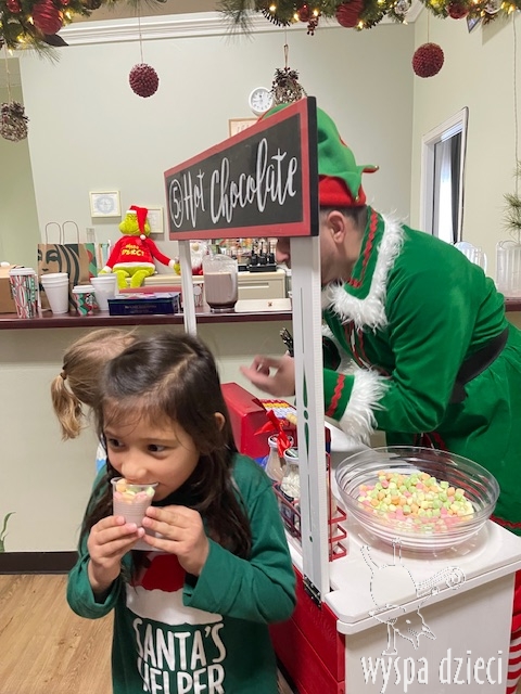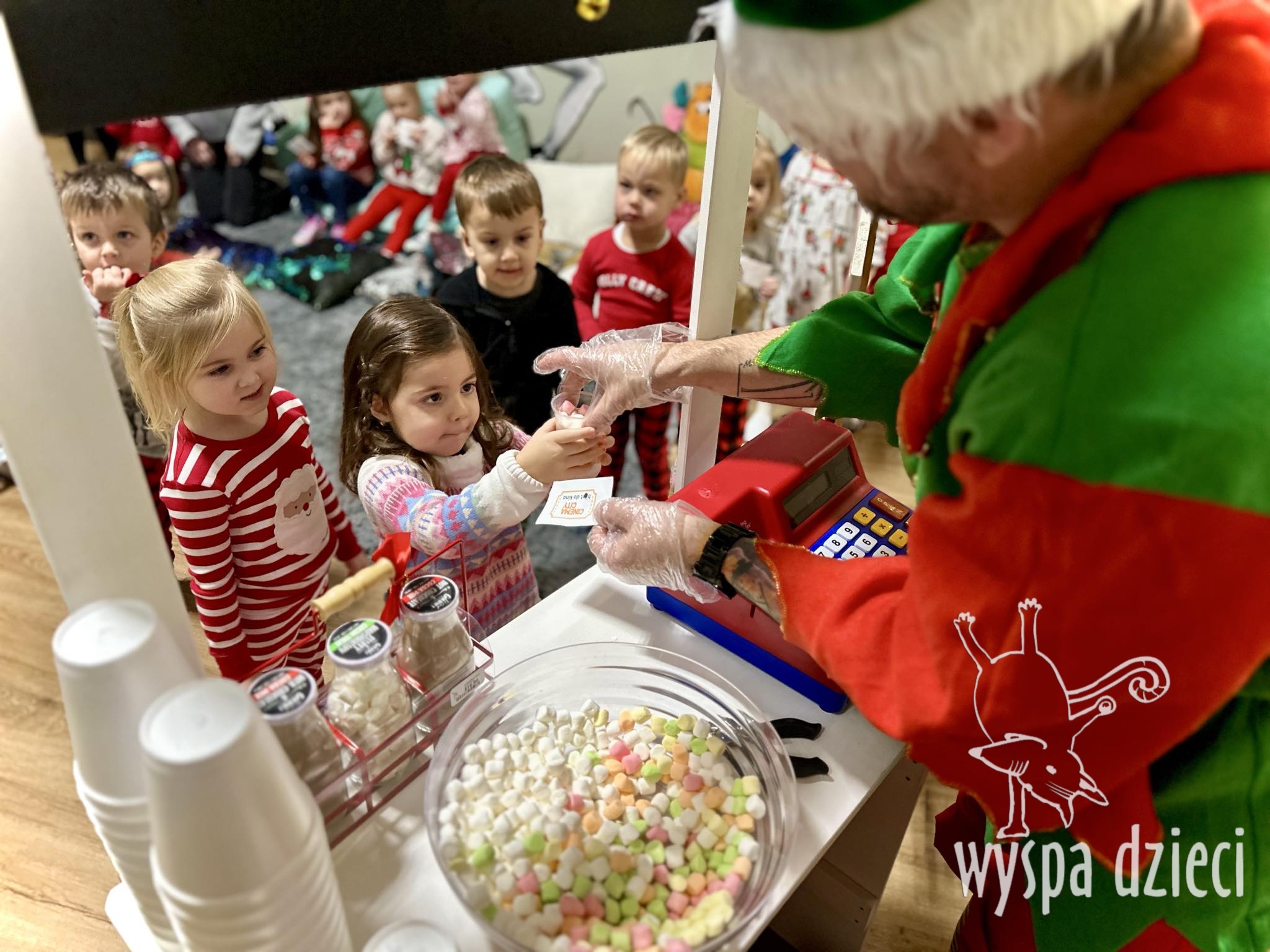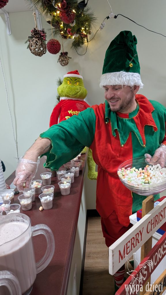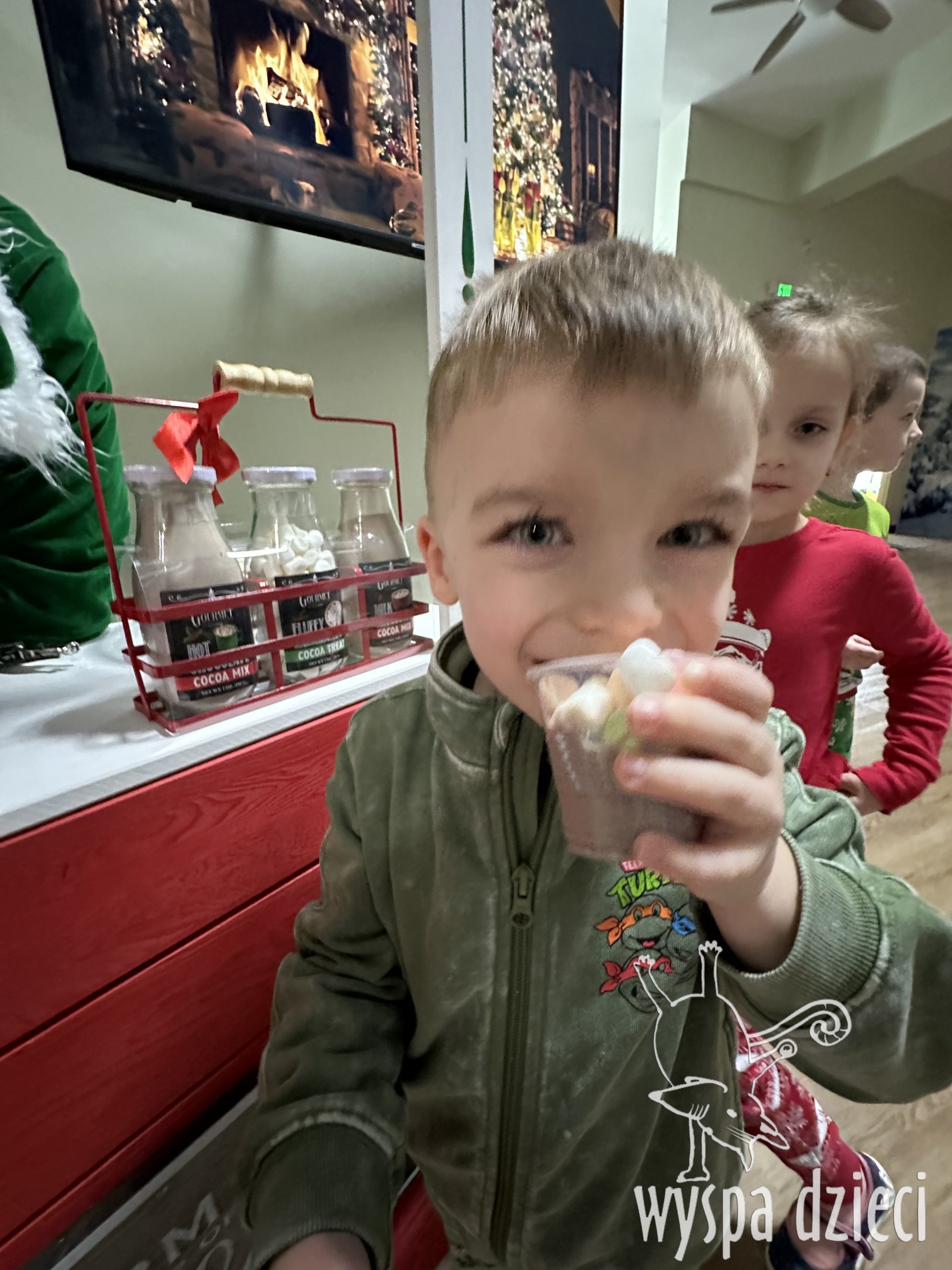 Święta tuż, tuż …. Świąteczny czas jest wyjątkowy w naszym przedszkolu. Każdego dnia czeka na naszych przedszkolaków wiele ciekawych wydarzeń. Każda grupa przygotowała piękne ozdoby, którymi udekorowała nasze przedszkolne choinki. Całe przedszkole wzięło udział w uroczystym zapaleniu światełek. Nasze maluchy najbardziej cieszyły się z naszej słodkiej, świątecznej stacji, gdzie elf przygotował dla każdego dziecka pyszne kakao i marsmallow. Czas umiliła dzieciom dodatkowo świąteczna bajka. Teraz z niecierpliwością czekamy na Święta …