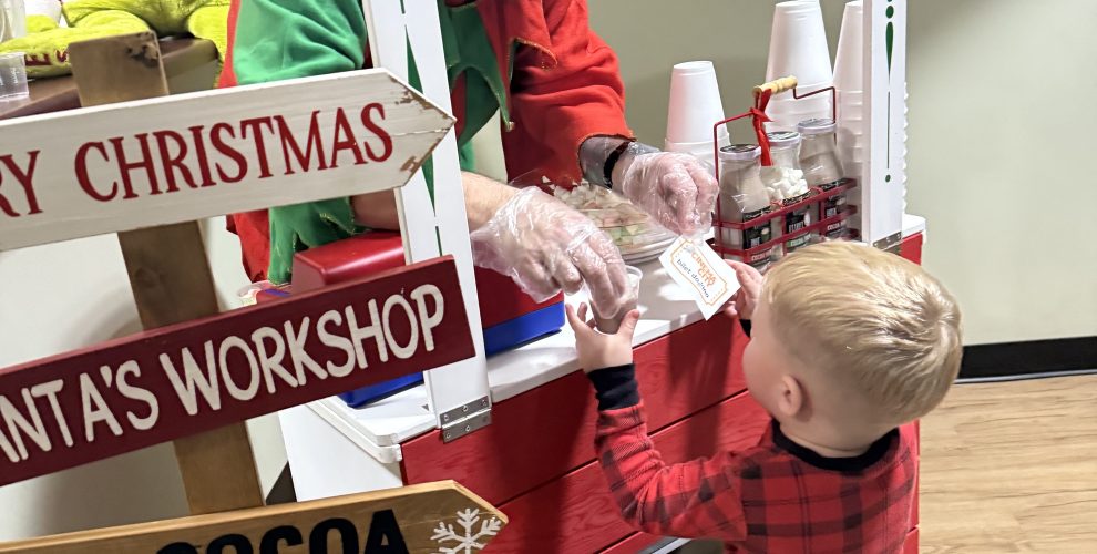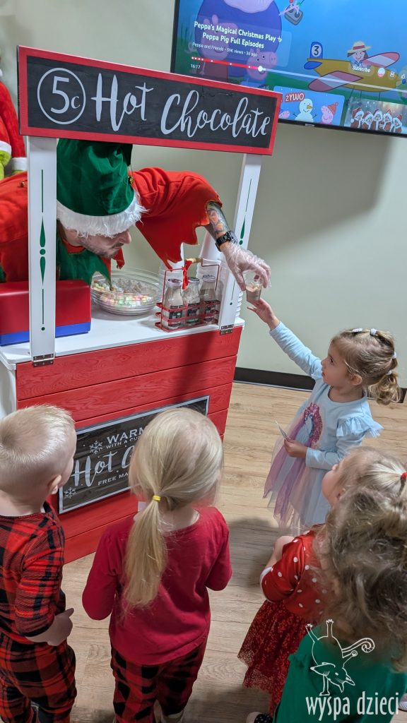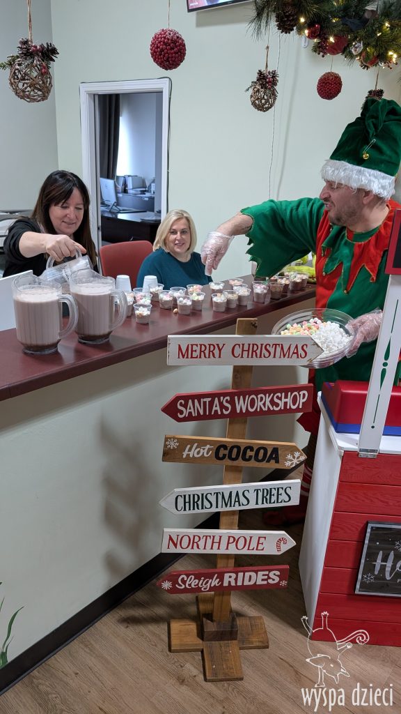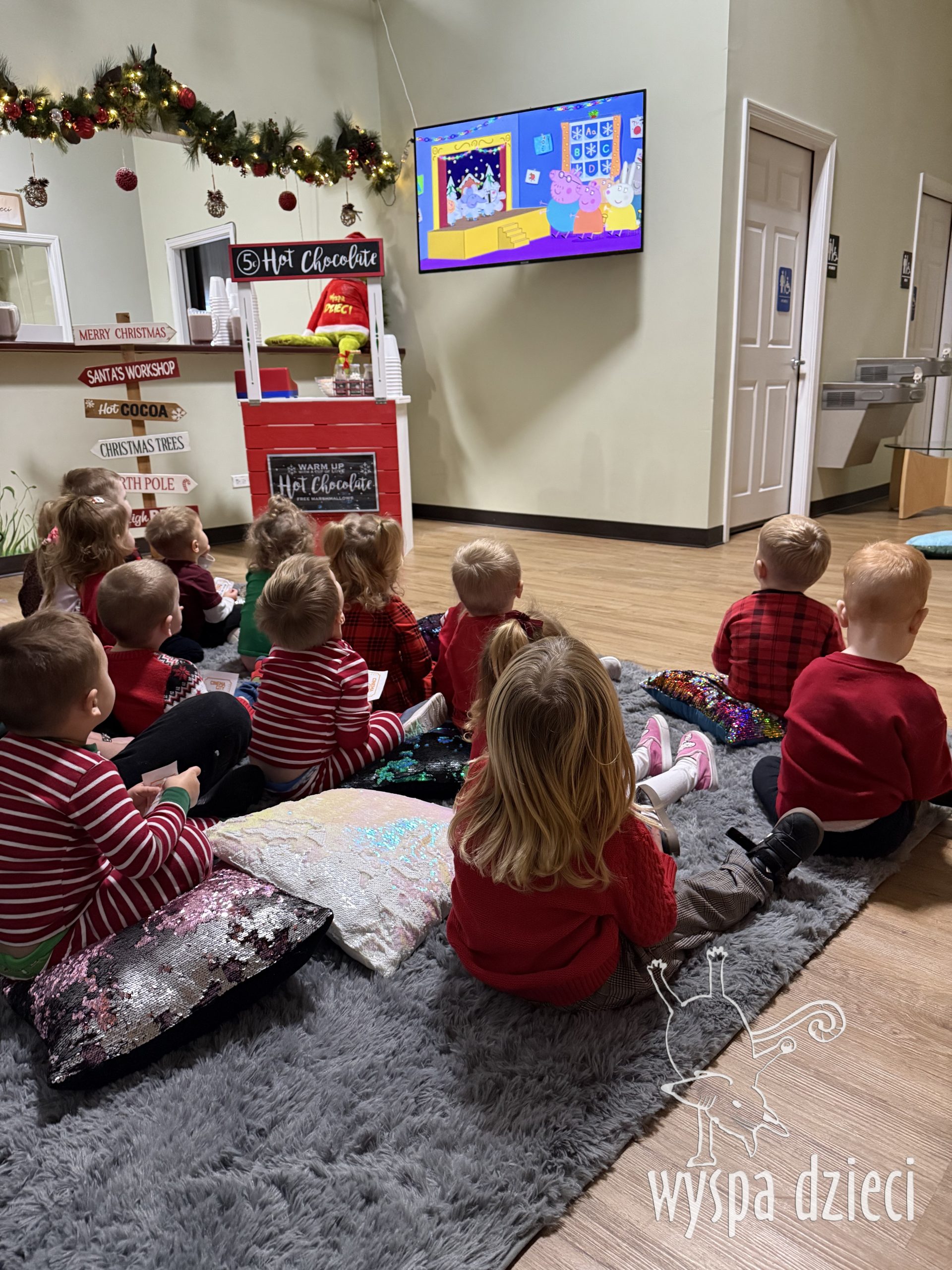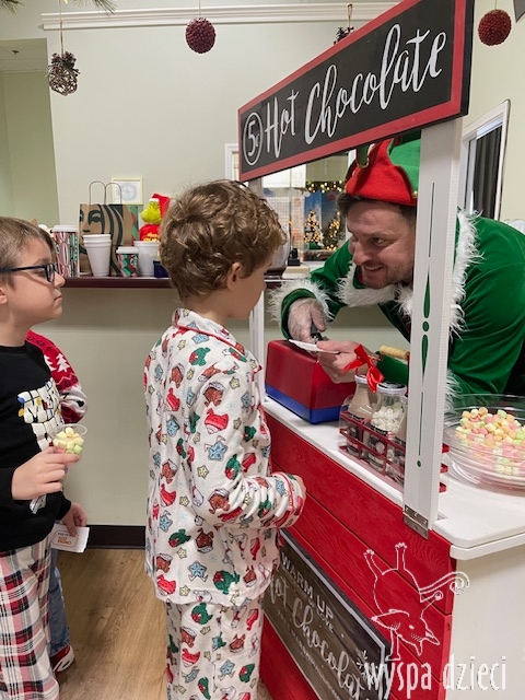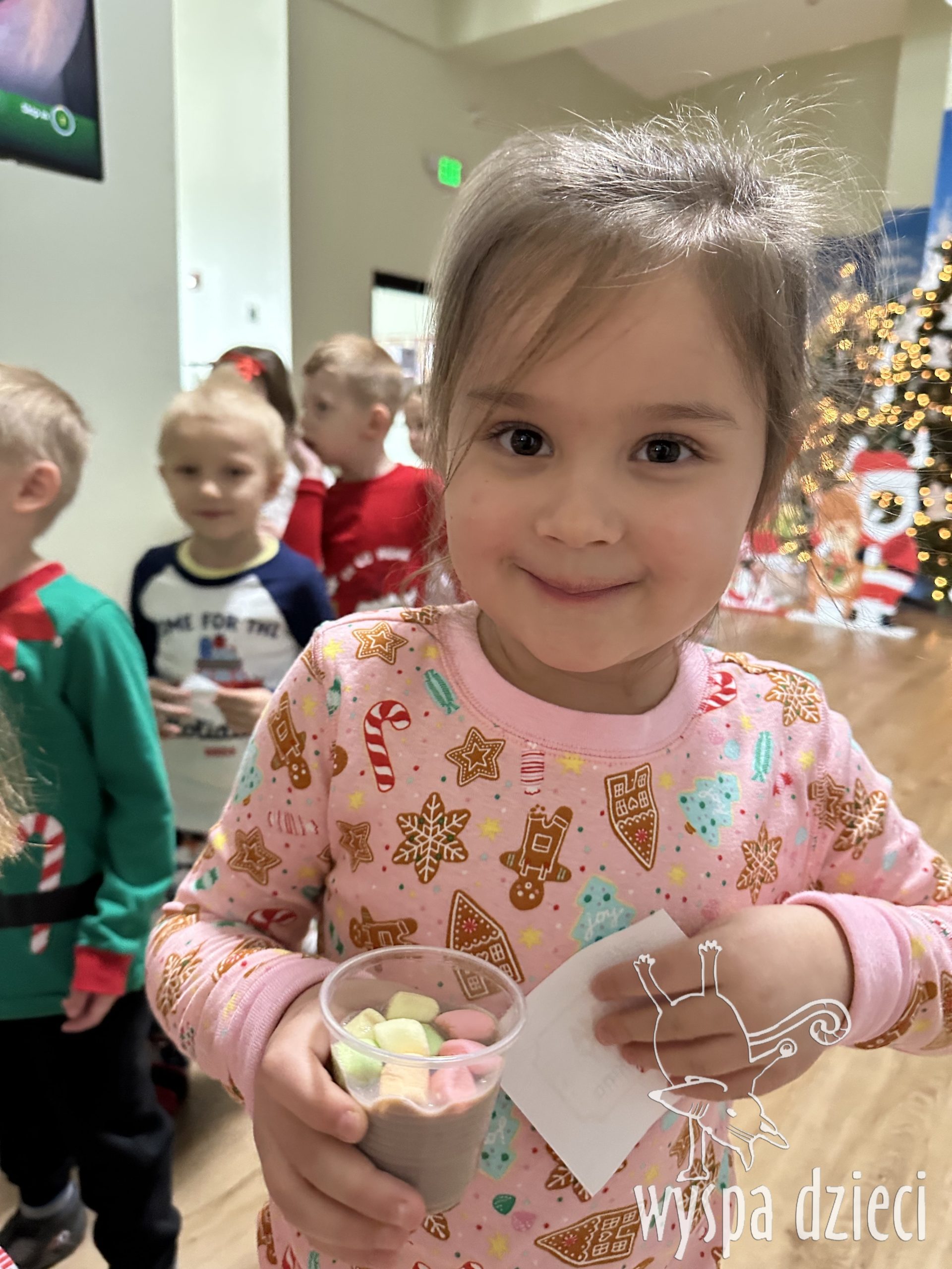 Święta tuż, tuż …. Świąteczny czas jest wyjątkowy w naszym przedszkolu. Każdego dnia czeka na naszych przedszkolaków wiele ciekawych wydarzeń. Każda grupa przygotowała piękne ozdoby, którymi udekorowała nasze przedszkolne choinki. Całe przedszkole wzięło udział w uroczystym zapaleniu światełek. Nasze maluchy najbardziej cieszyły się z naszej słodkiej, świątecznej stacji, gdzie elf przygotował dla każdego dziecka pyszne kakao i marsmallow. Czas umiliła dzieciom dodatkowo świąteczna bajka. Teraz z niecierpliwością czekamy na Święta …