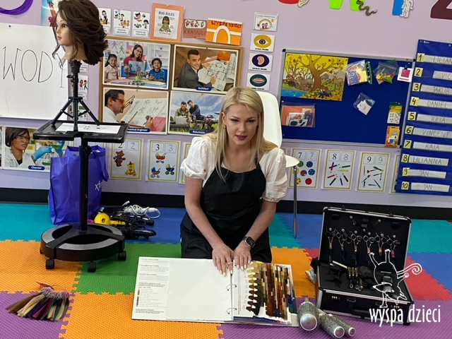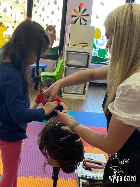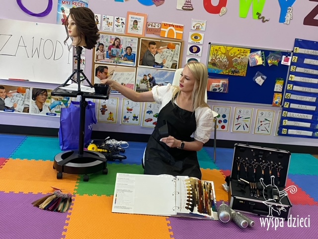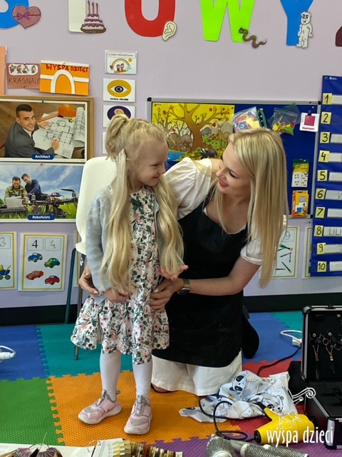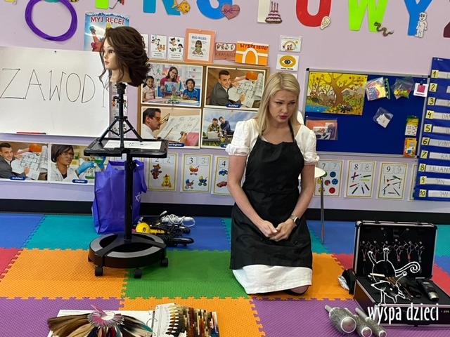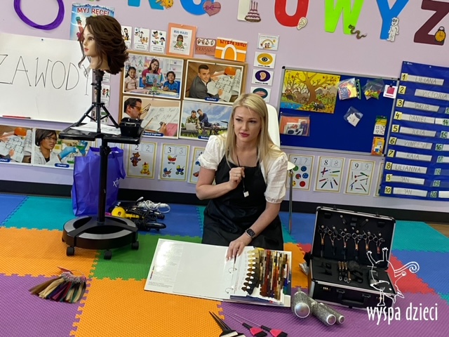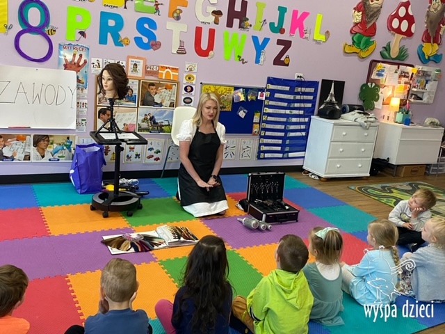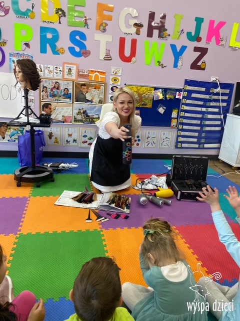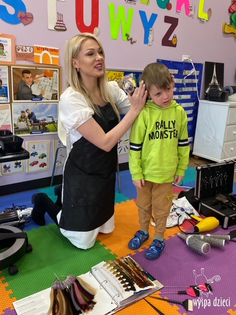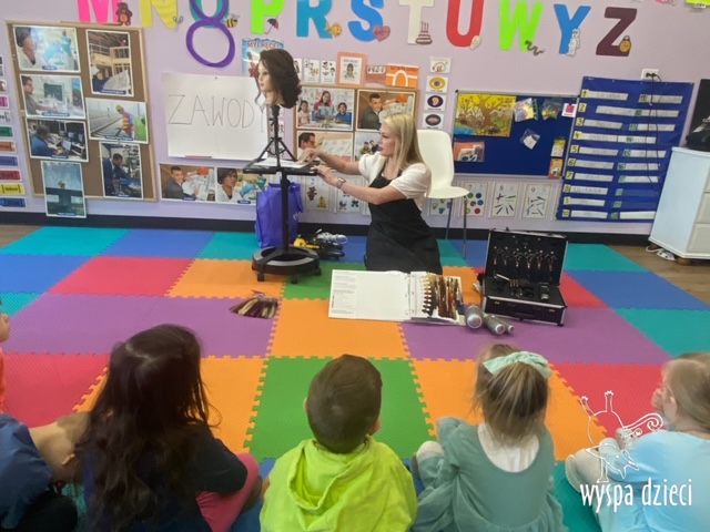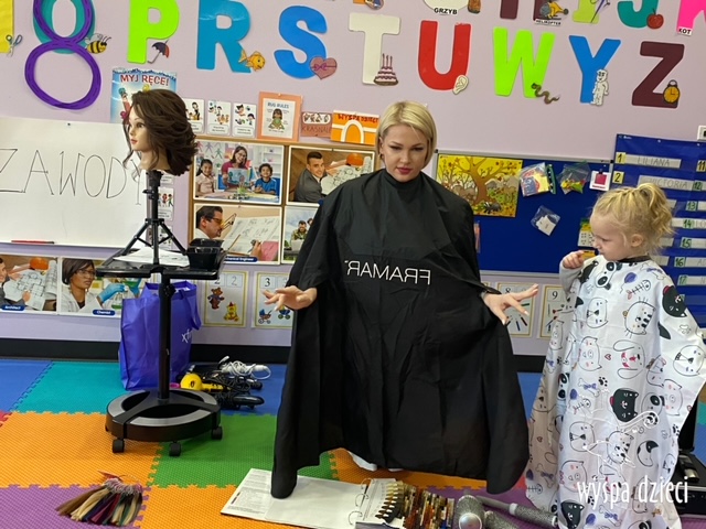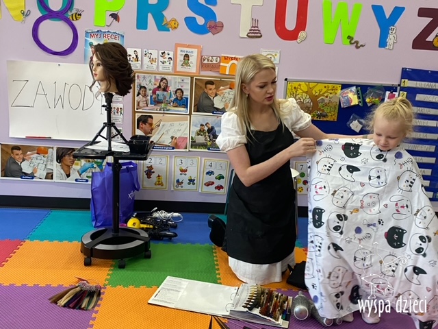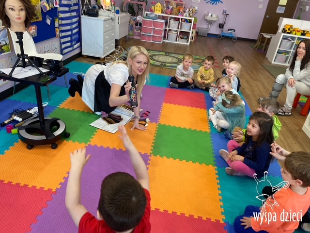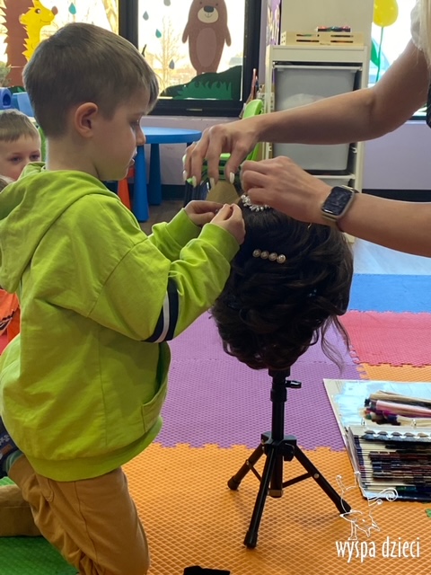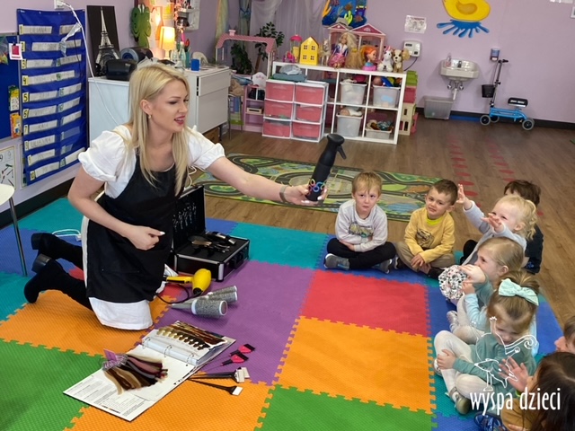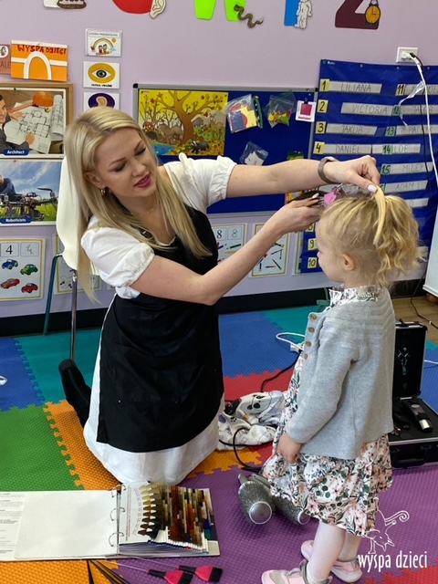 “Kim będę jak dorosnę?” – o tym rozmawiają Krasnale w ostatnim czasie. W pierwszym tygodniu dzieci gościły w swojej klasie: fryzjerkę (mamę Lilianki ), listonosza (tatę Nicholaska), kucharza i cukiernika (rodzice Adasia). Pani Natalia opowiedziała jak wygląda jej dzień pracy w zawodzie fryzjera. Pokazała dzieciom różne akcesoria swojej pracy, a dzieci miały nawet okazję ozdobić fryzurę ułożoną przez panią fryzjerkę. Dzieci dostały od Pani Natalii w prezencie zestaw małego fryzjera. Dziękiujemy Pani Natalii!