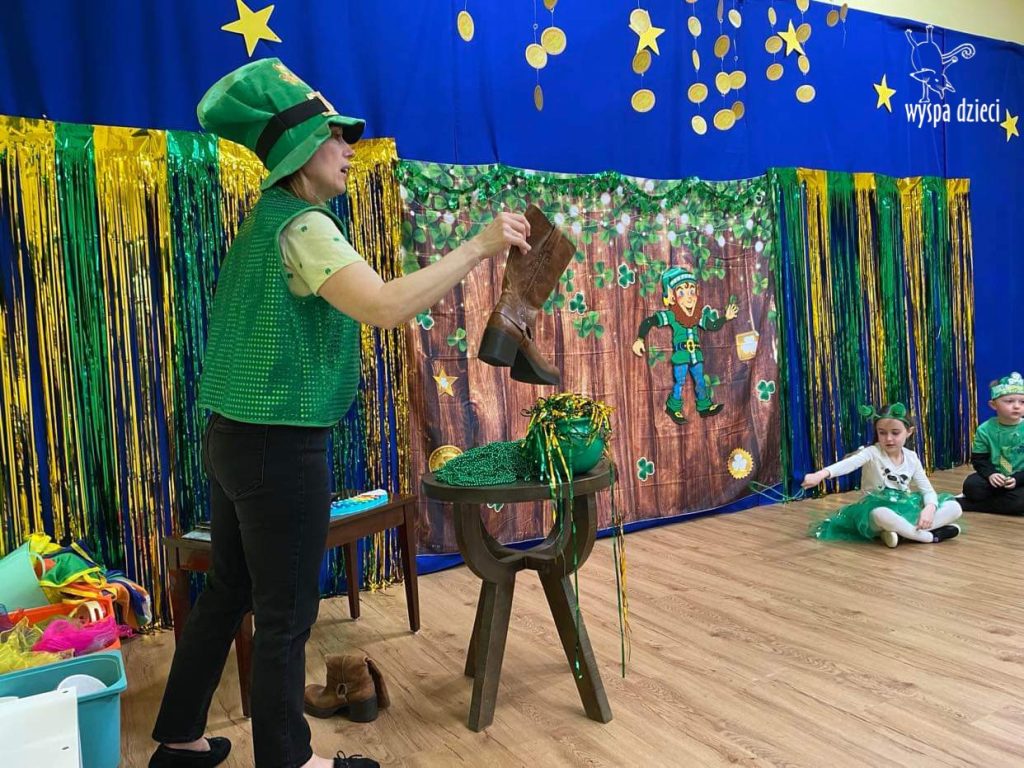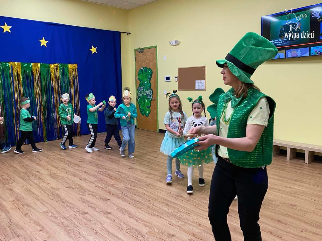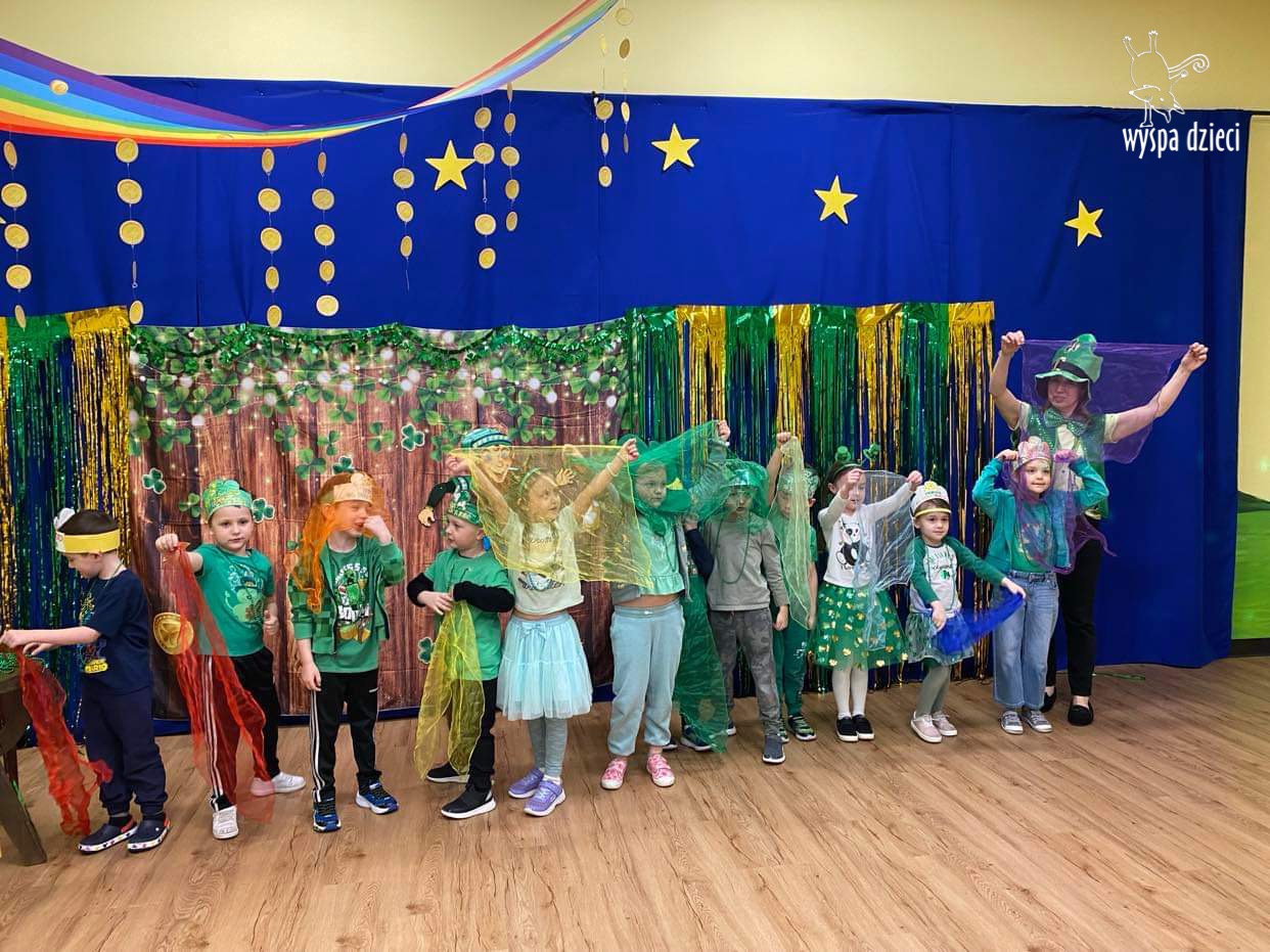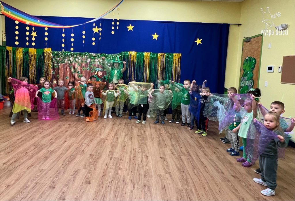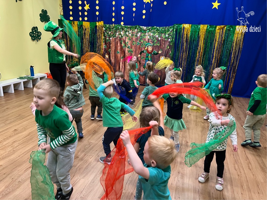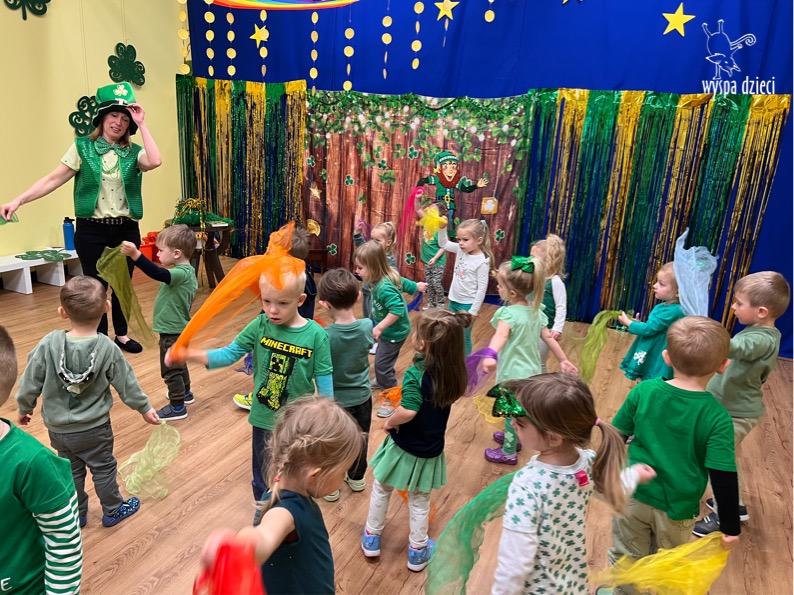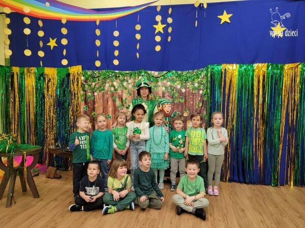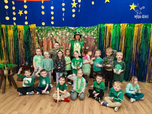 Dzień Świętego Patryka, który obchodzimy 17 marca, nie jest jedynie świętem narodowym Irlandii, ale również jednym z najchętniej obchodzonych świąt na świecie. W naszej Wyspie Dzieci River Grove również przedszkolaki miały okazję zapoznać się z tradycjami irlandzkiego święta. Zaznajomiły się z symbolami tej Zielonej Wyspy, takimi jak trójlistna koniczyna, kolor zielony, flaga i godło Irlandii. Dzieci poznały historię patrona Irlandii oraz legendę o skrzacie Leprechaun. Na koniec Leprechaun podarowal kazdemu Przedszkolakowi zielony naszyjnik .